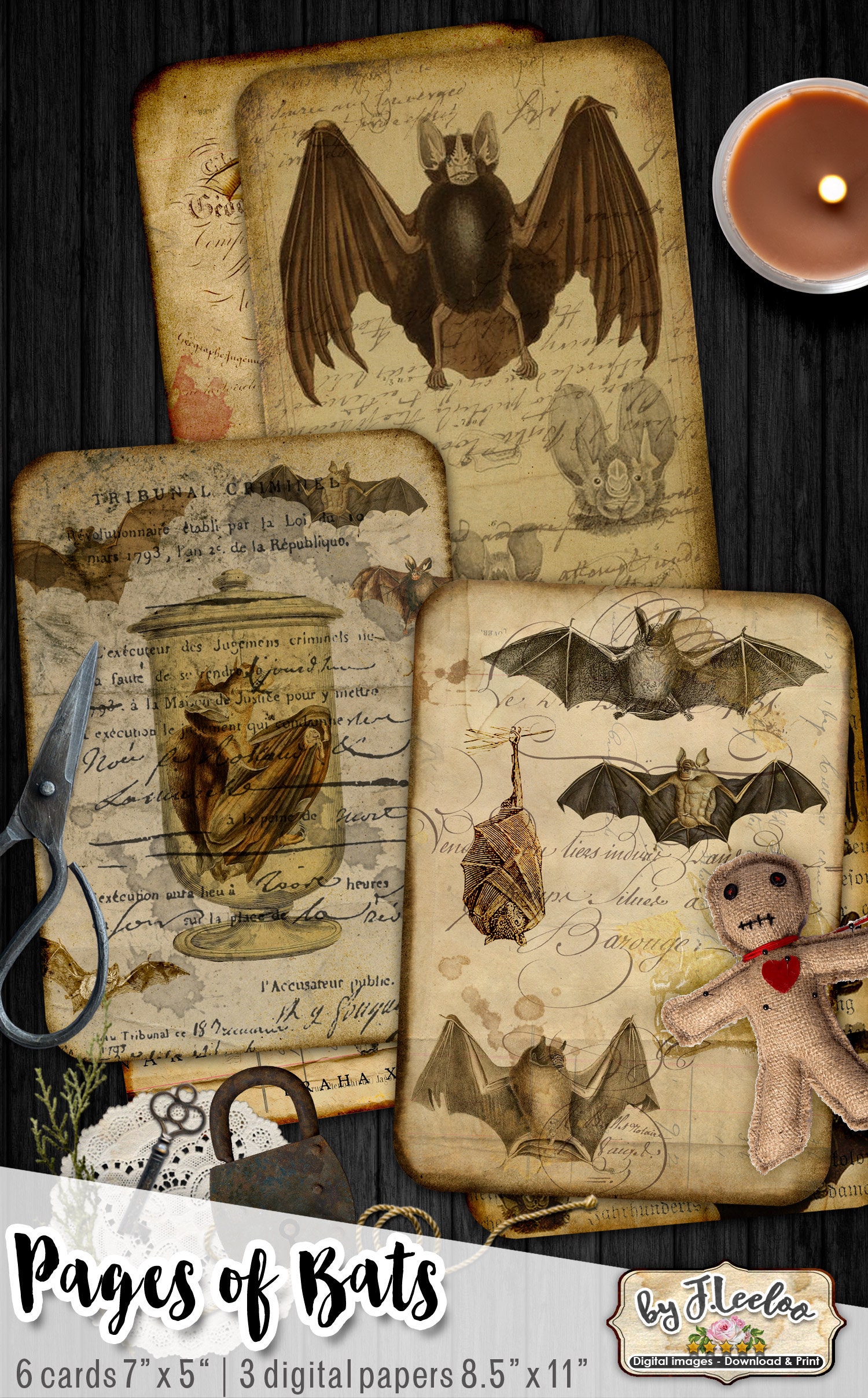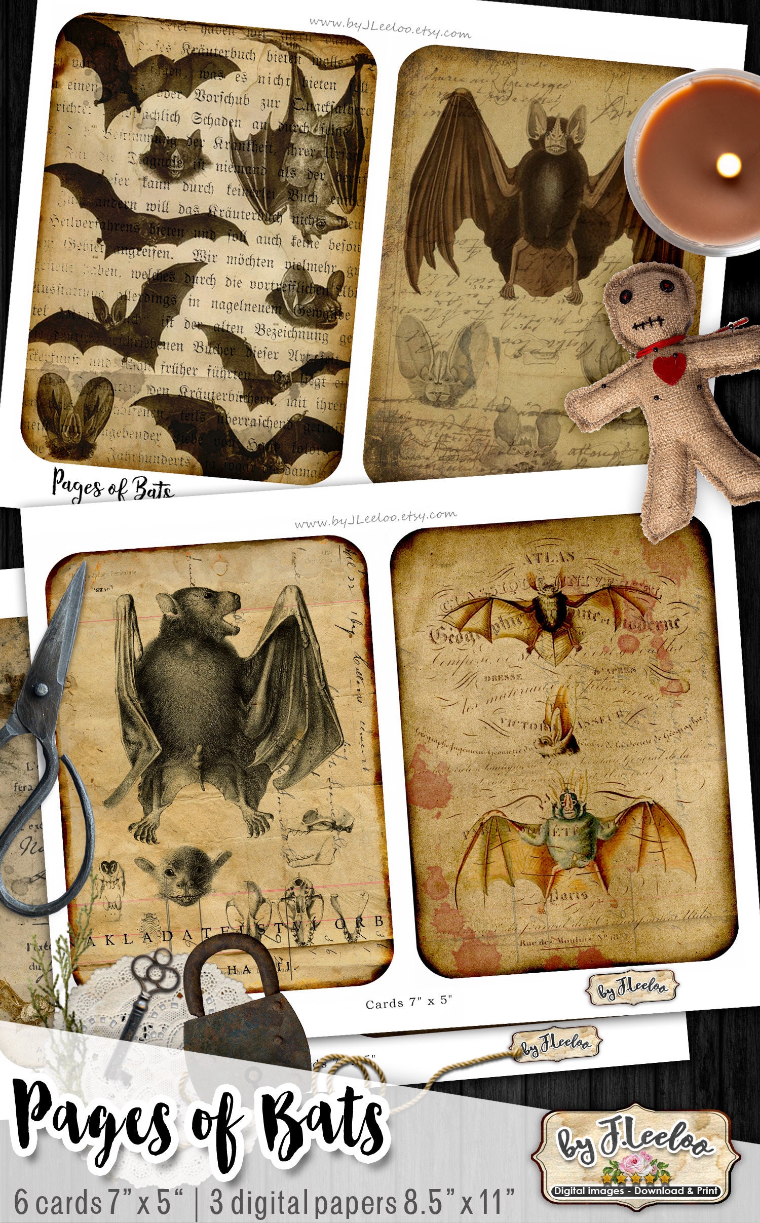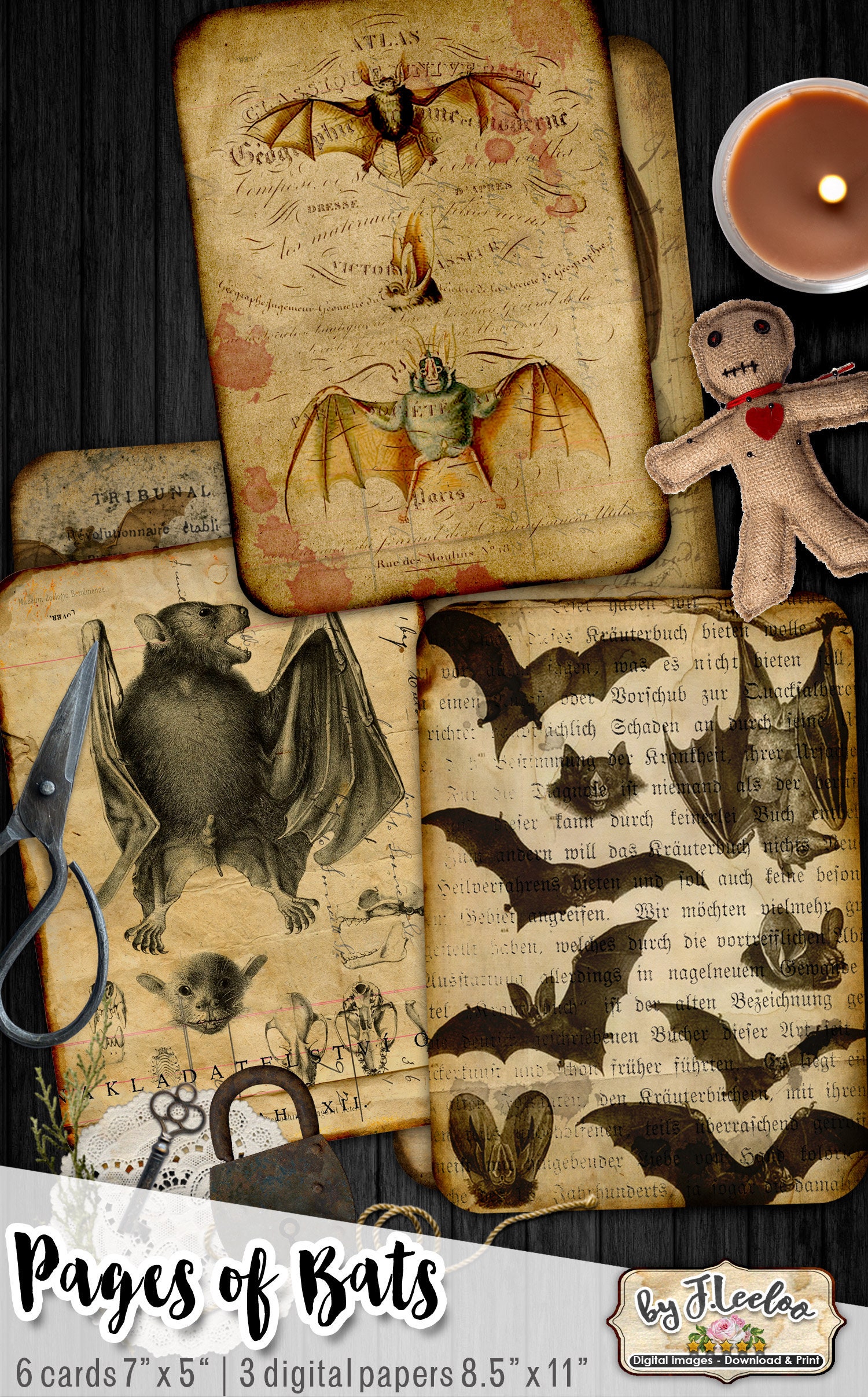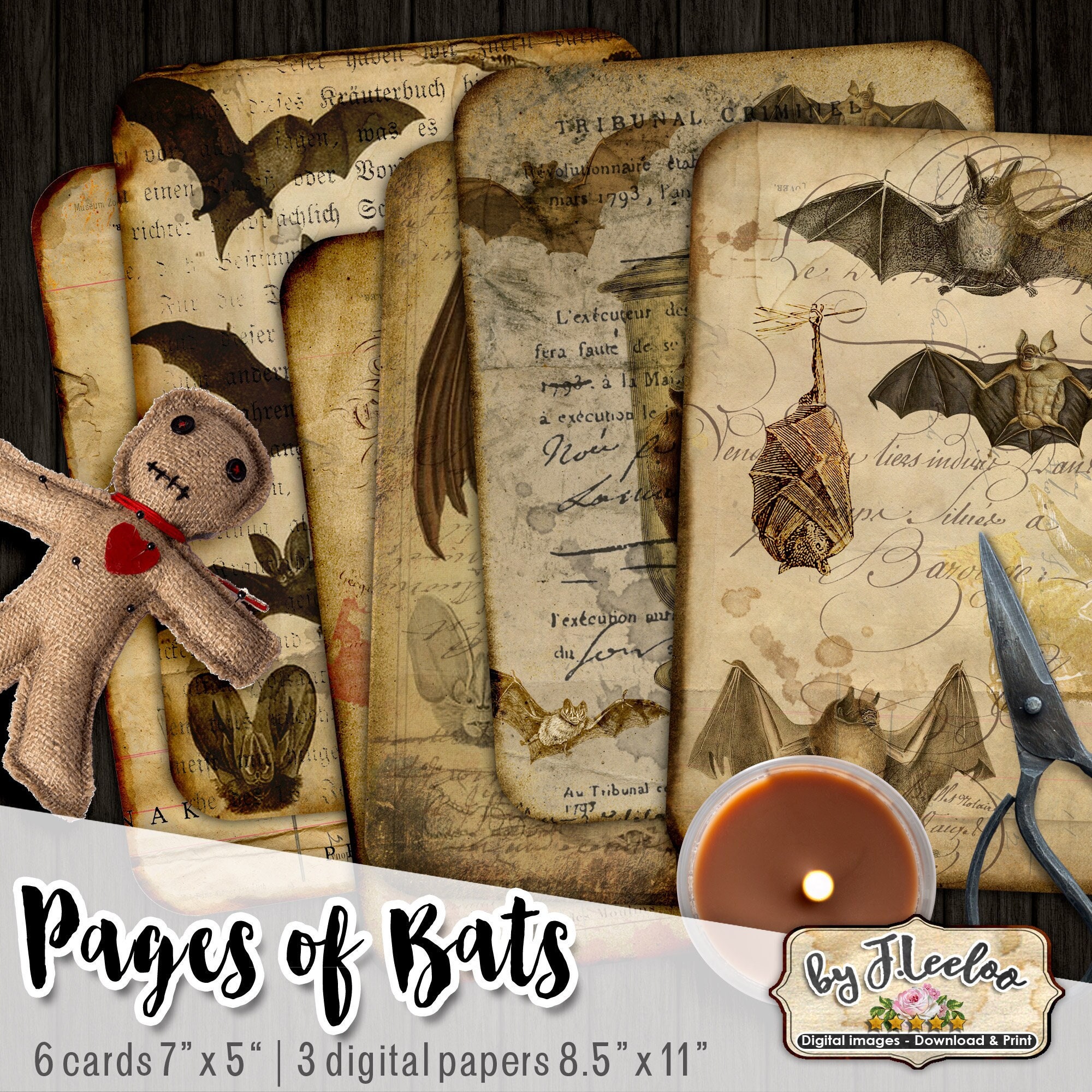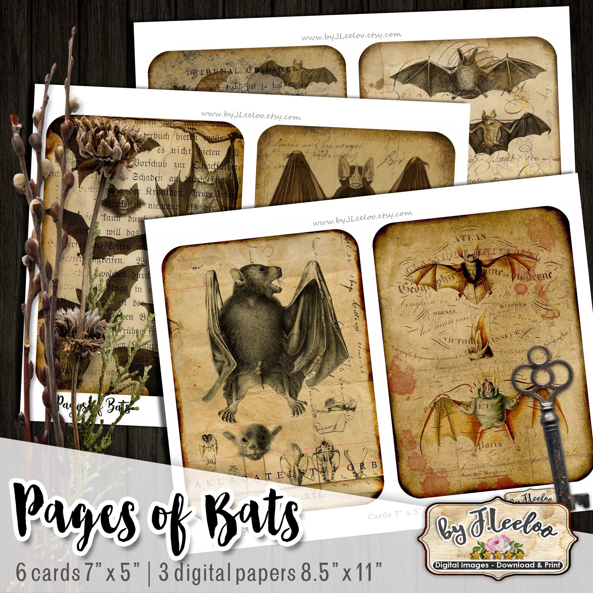 PAGES OF BATS Digital collage sheet - Ghotic dark Halloween digital papers, junk journal : images for your diary, artwork, postcards, hang tags, invitations, greeting cards, annuncements, scrapbook, backing cards.... all for your crafting project!