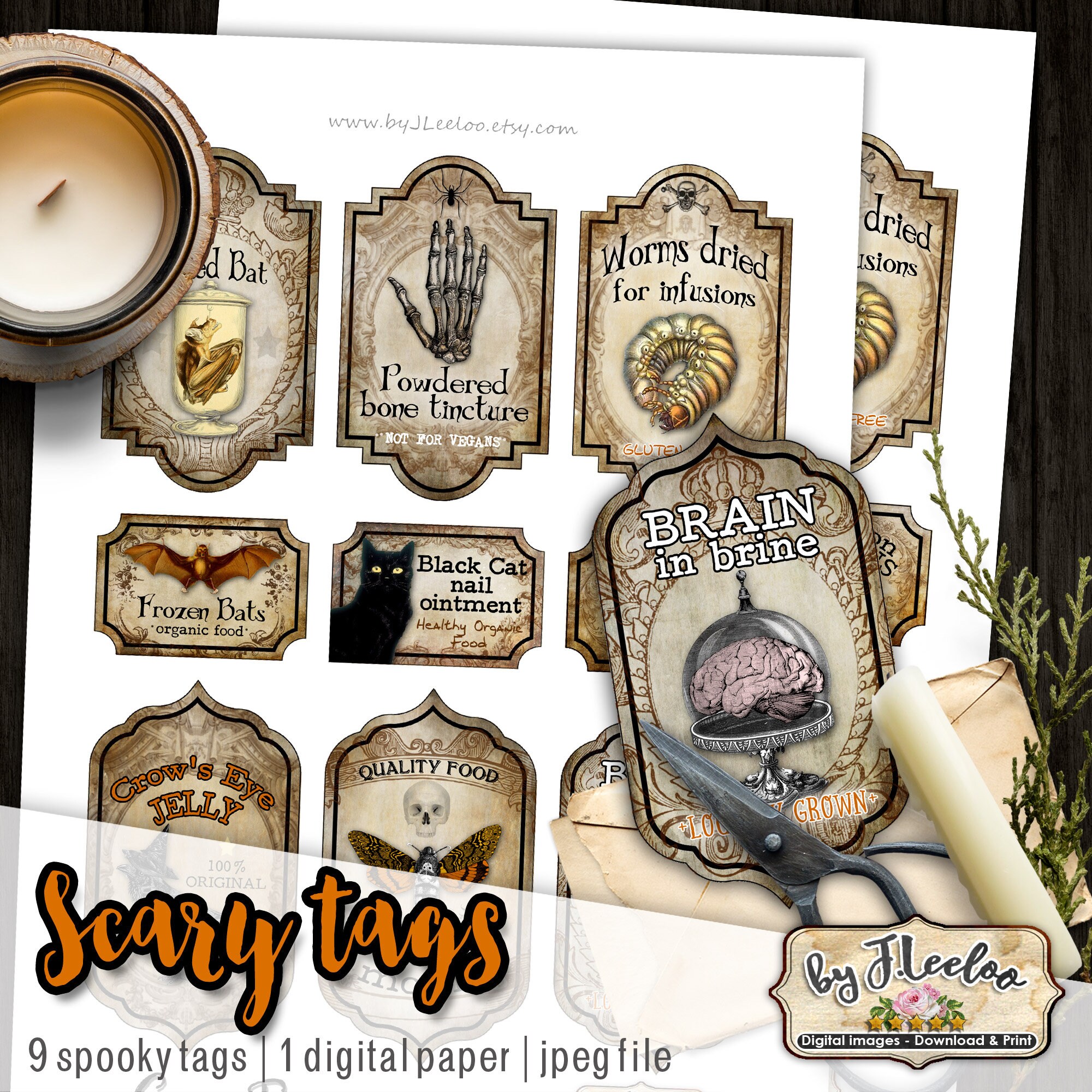 SCARY TAGS - Digital collage sheets - Halloween Potion labels tags images Apothecary ready to print for your bottle jar, invitation, jewelry making, stickers, scrapbook and your others craft project.
