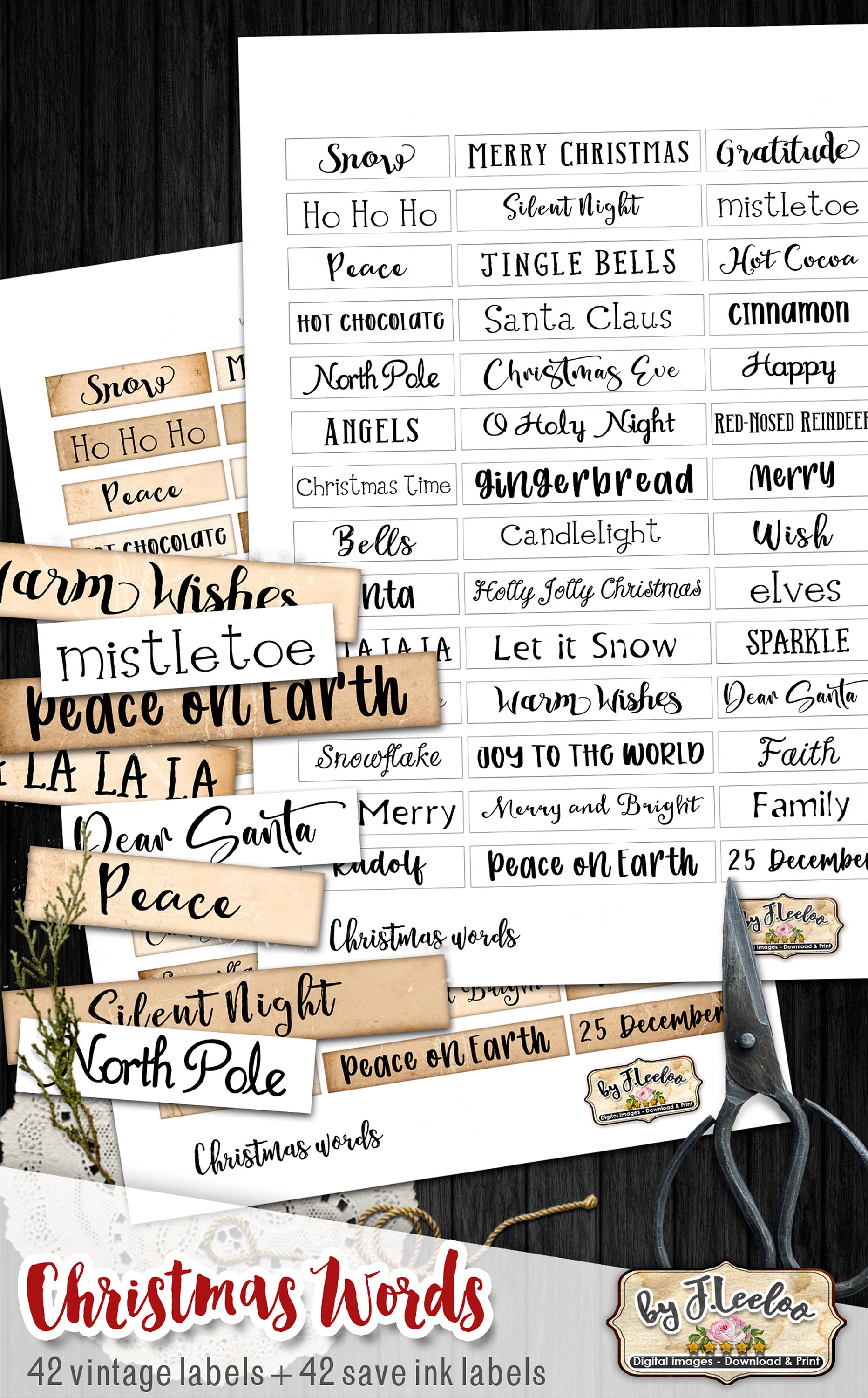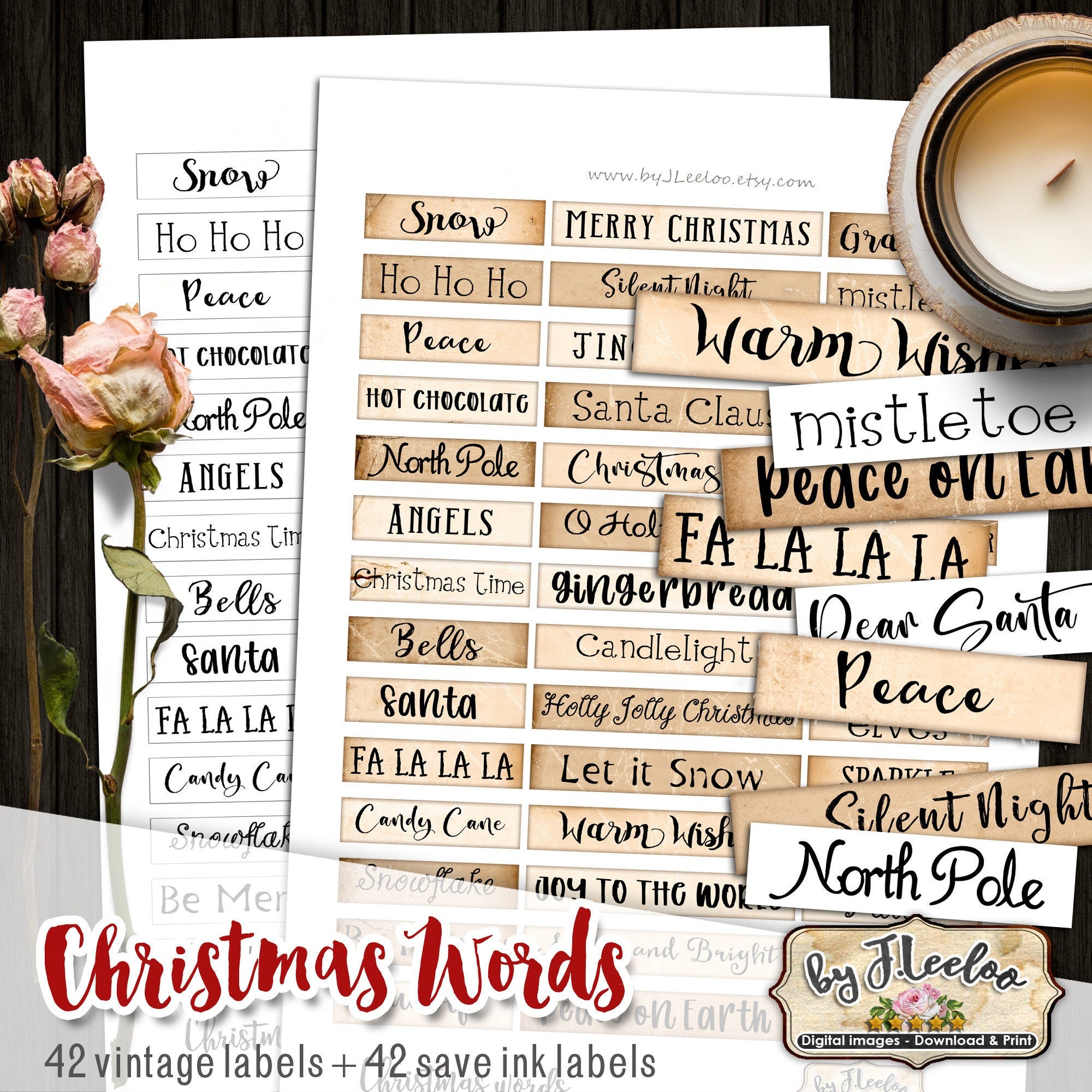 CHRISTMAS WORDS - Christmas Sayings and quote collage sheet Digital label images instant download ready to print for your junk journal, scrapbook and your others craft project.