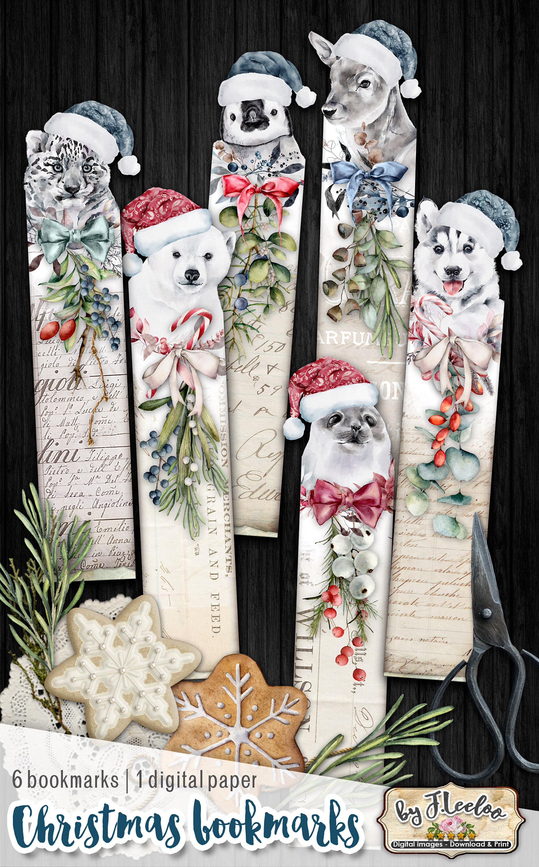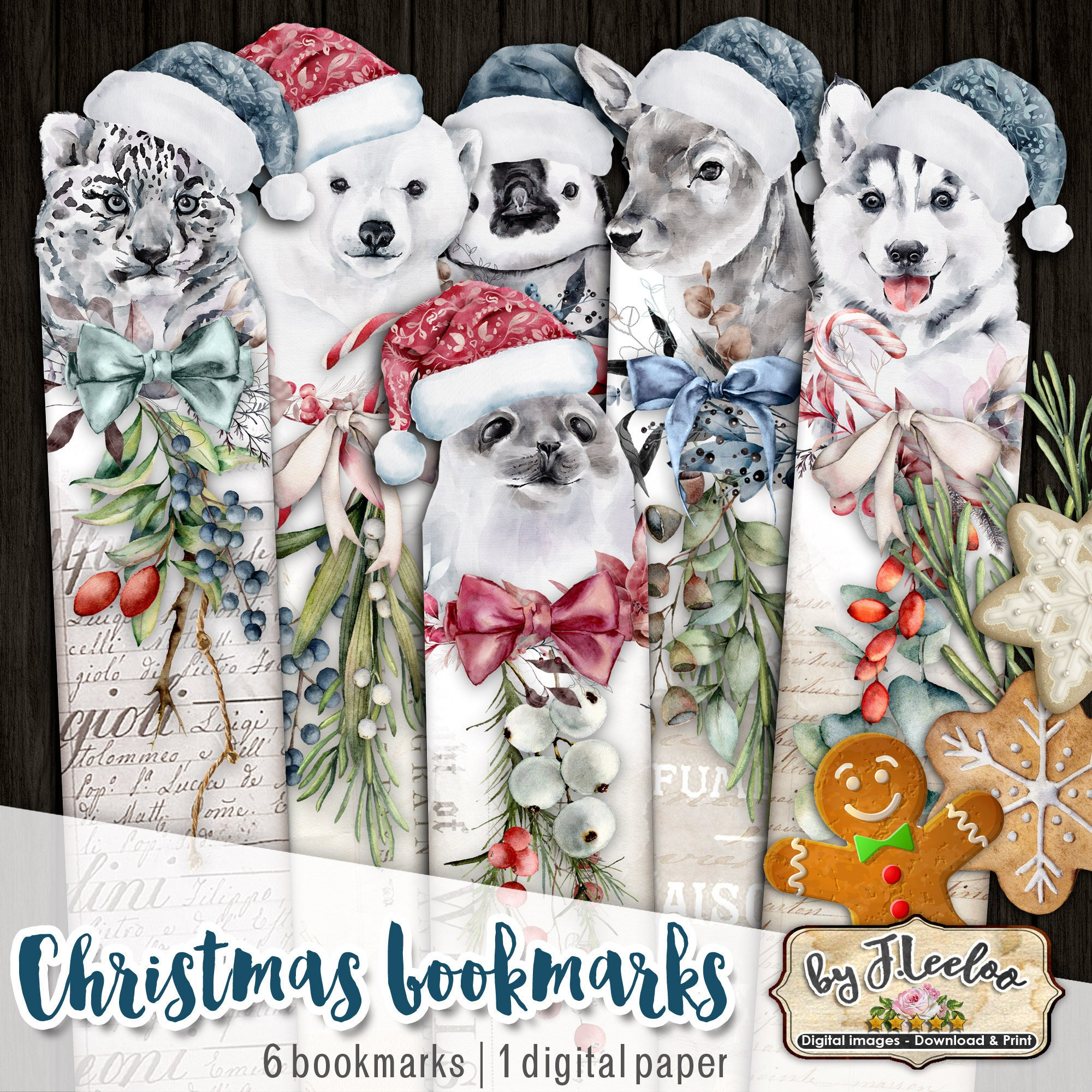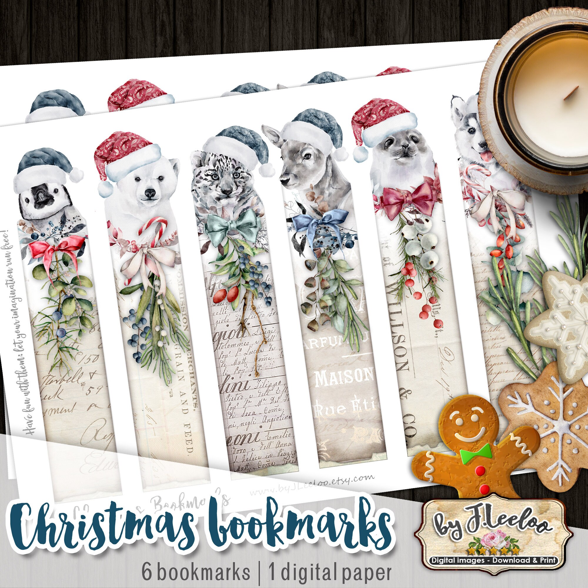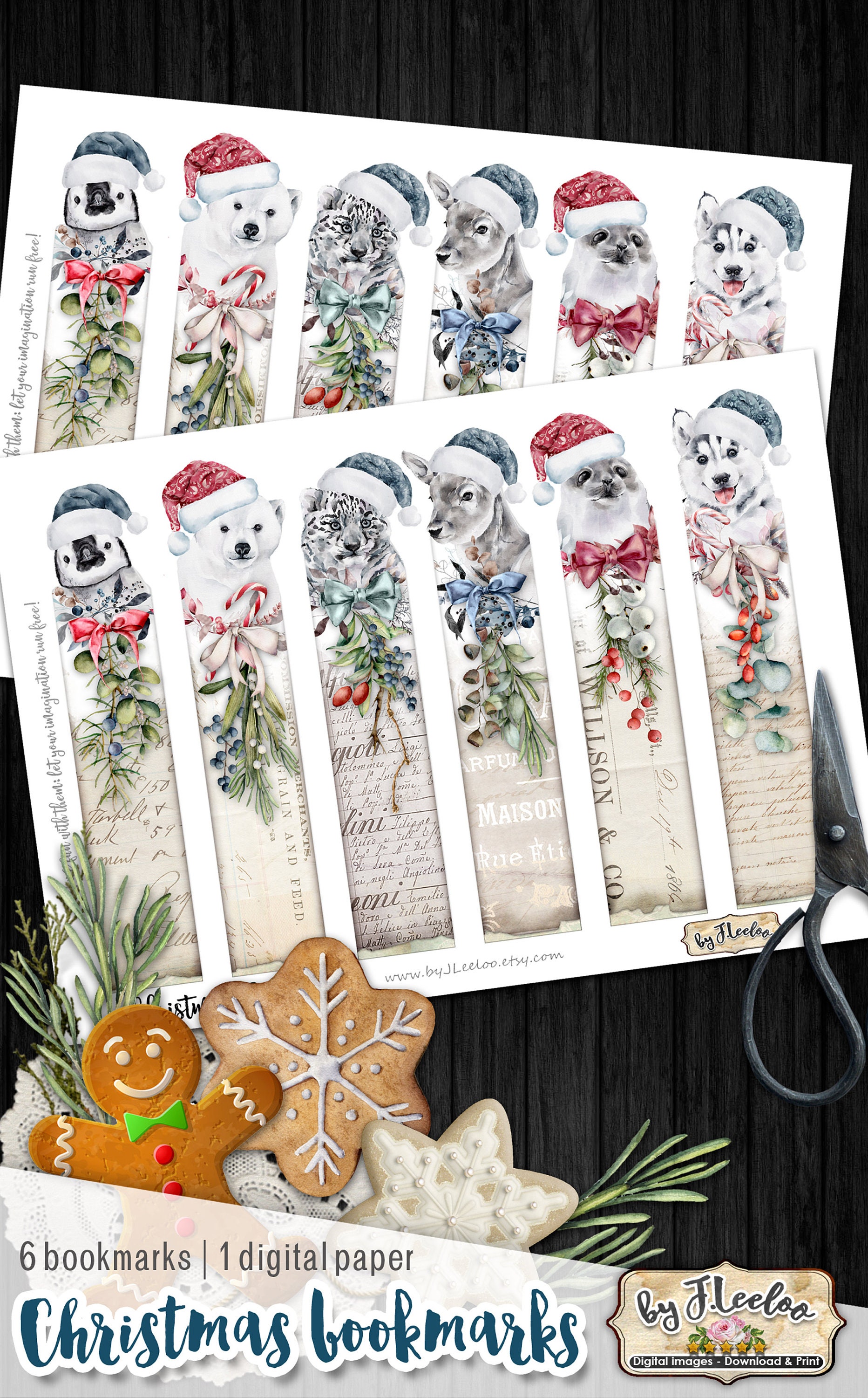 CHRISTMAS BOOKMARK - Digital collage sheet baby animals Images for your artwork: bookmarks, scrapbook, diary art, hang tags, invitations or announcements, greetings cards or backing cards.... for your creativity!