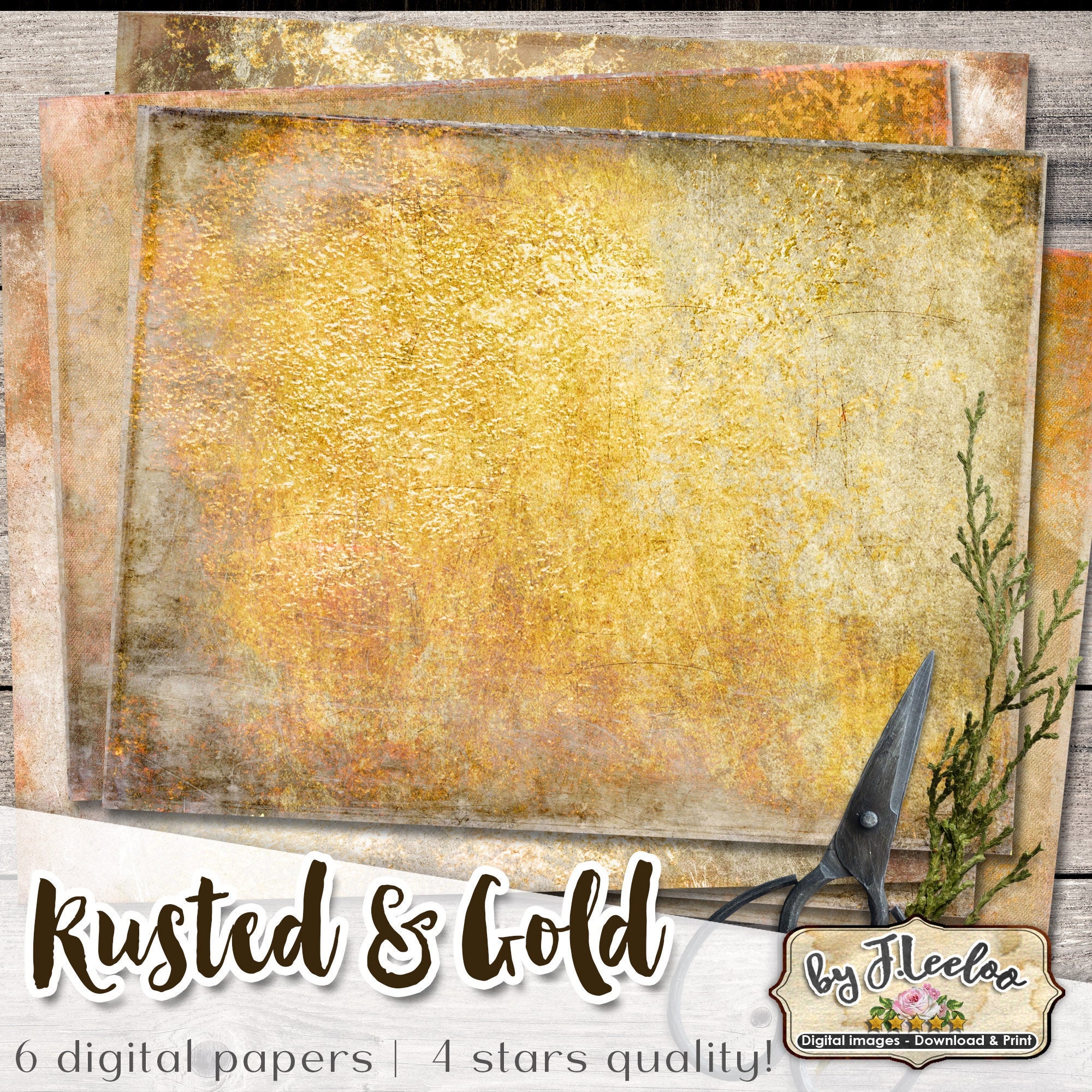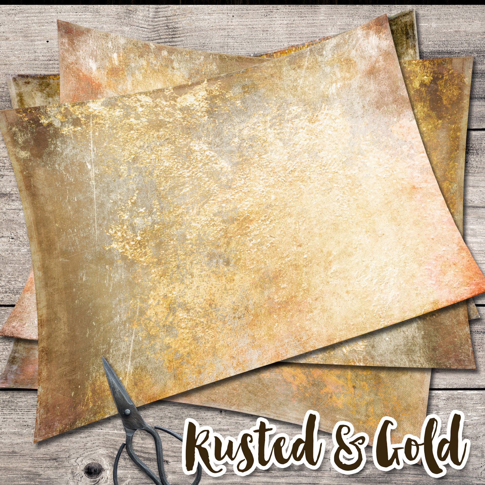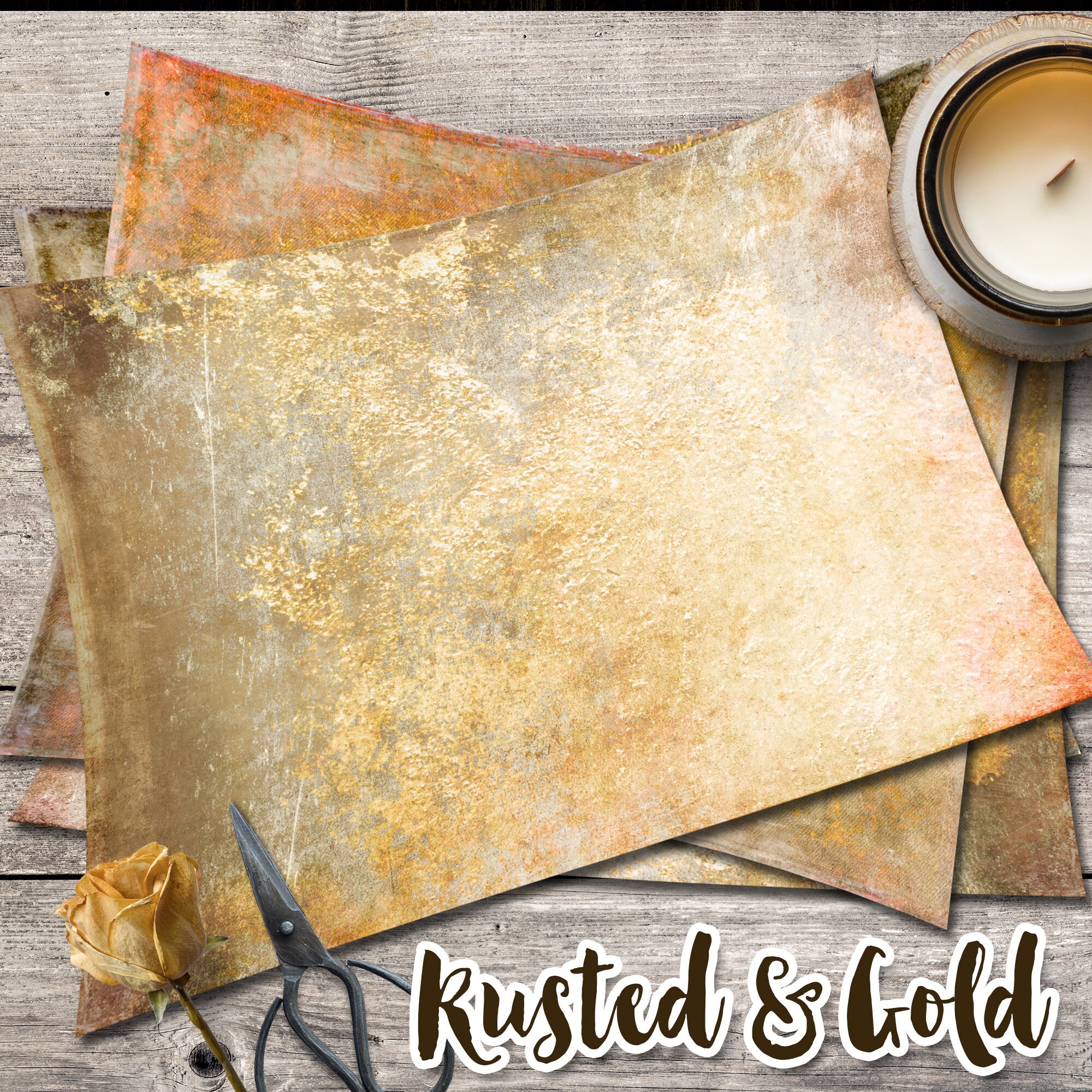 RUSTED GOLD PAPERS junk journal background collage sheets diary gelli print collage art texture printable digital download