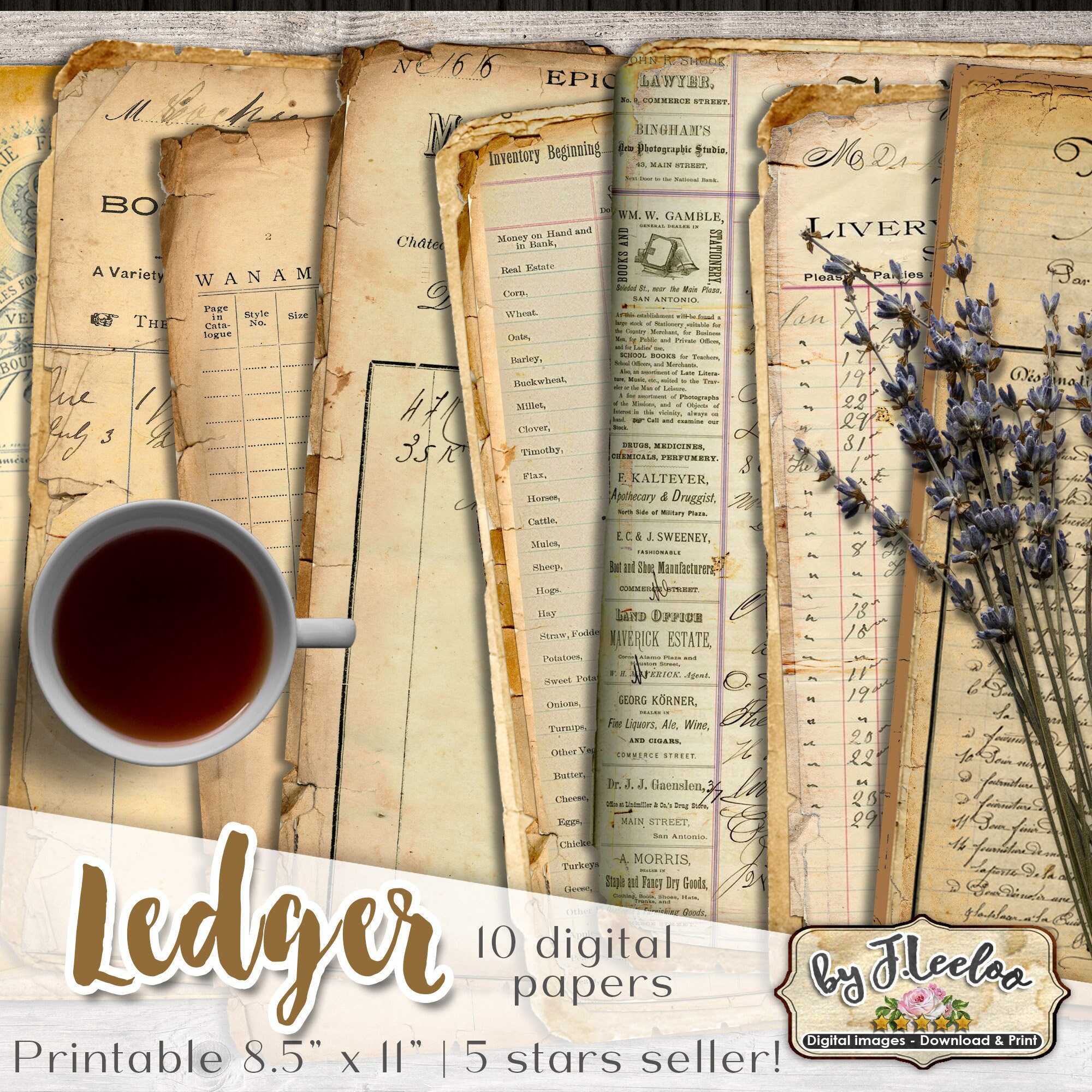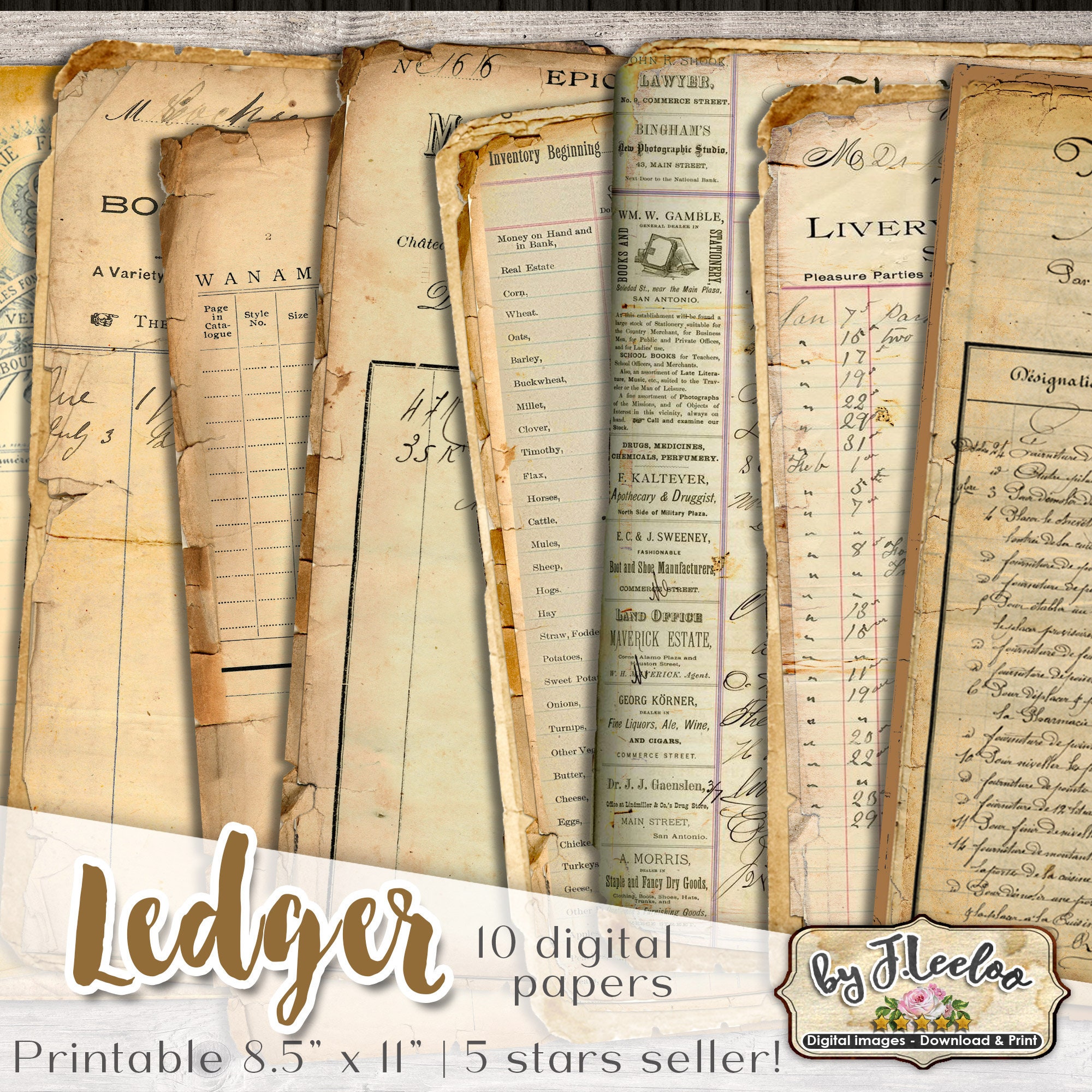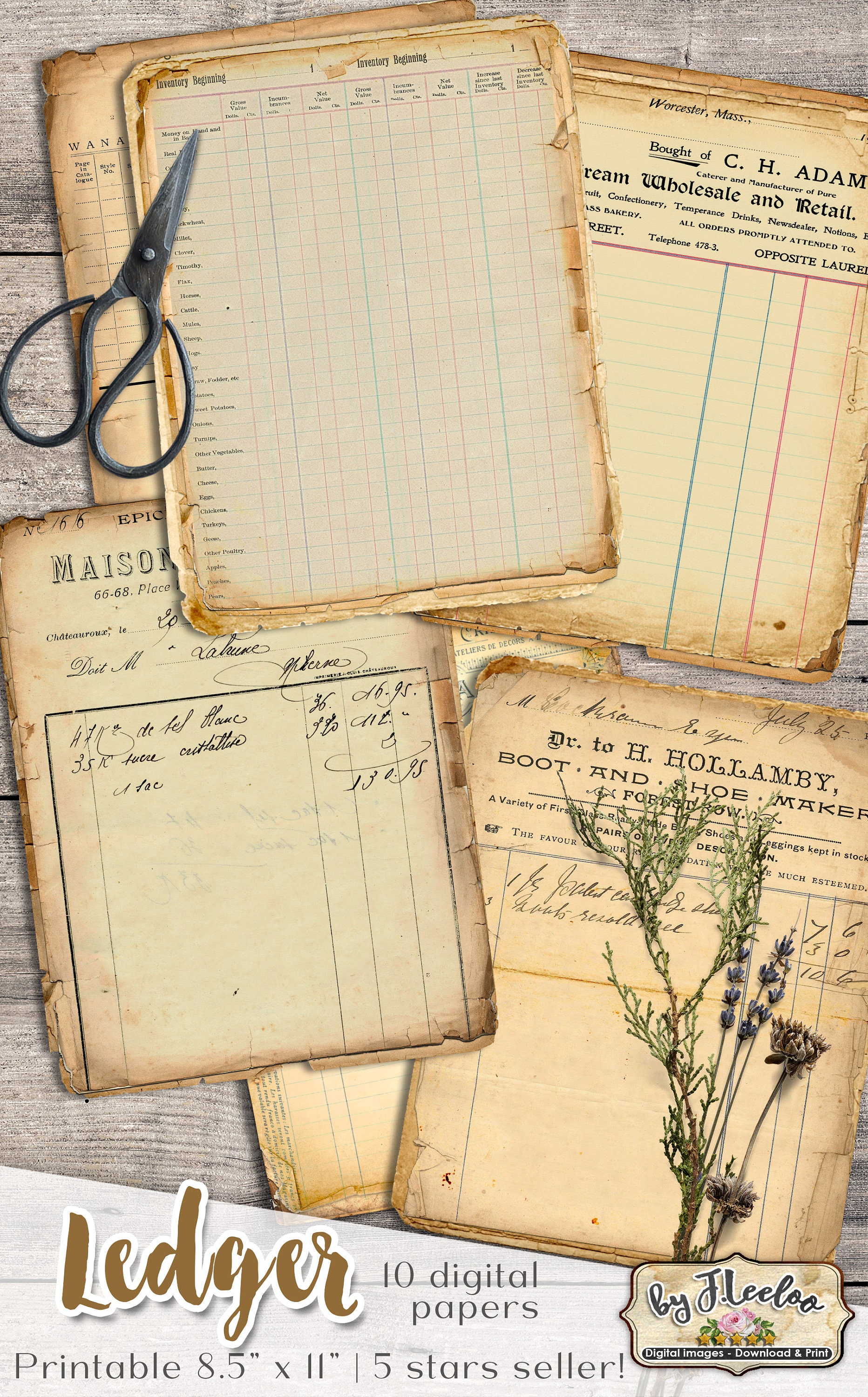 LEDGER Digital Vintage Ephemera for Junk Journals - Grunge diary - Digital scrapbook notebook collage sheet vintage paper download.... print it as many time as you want.