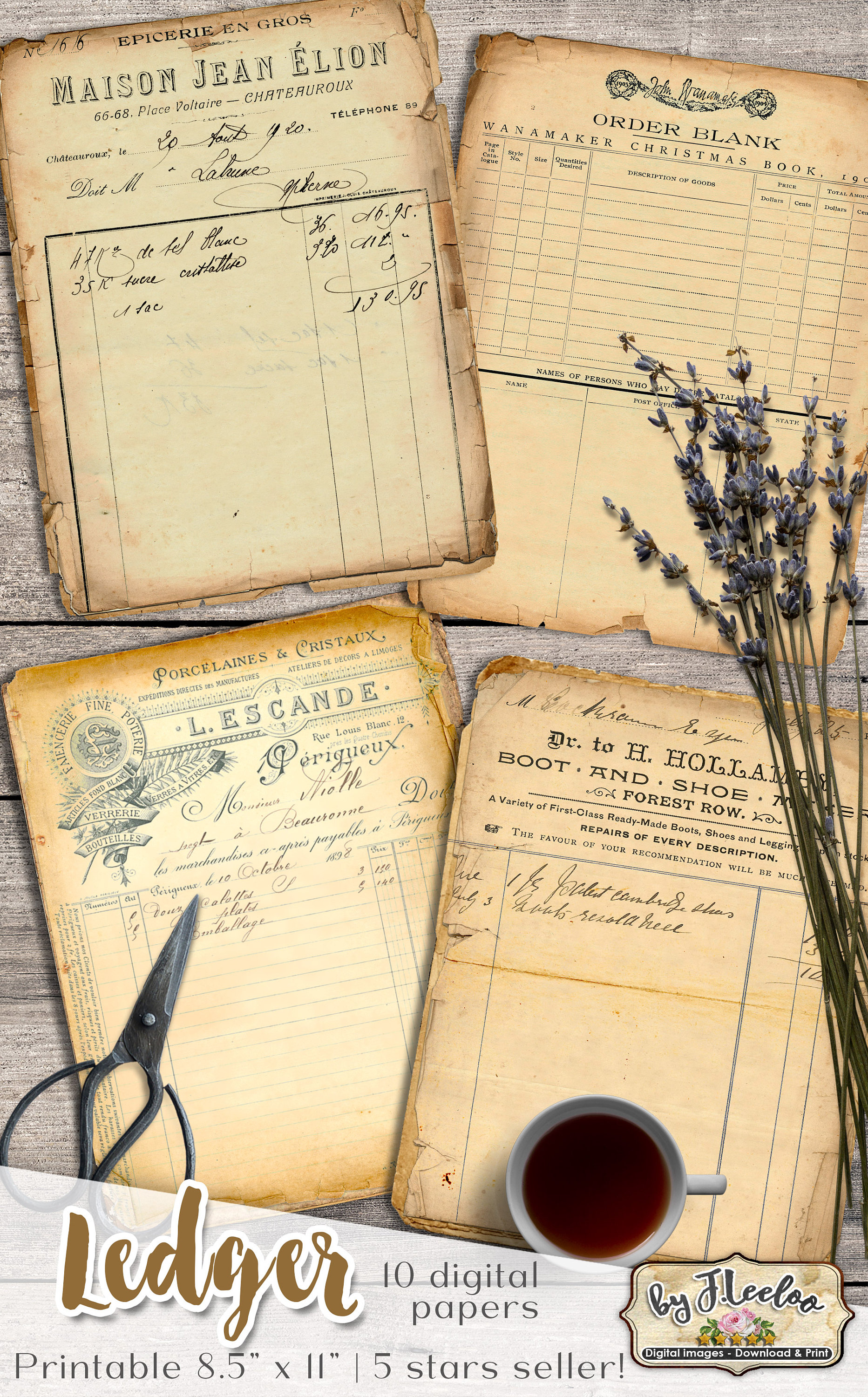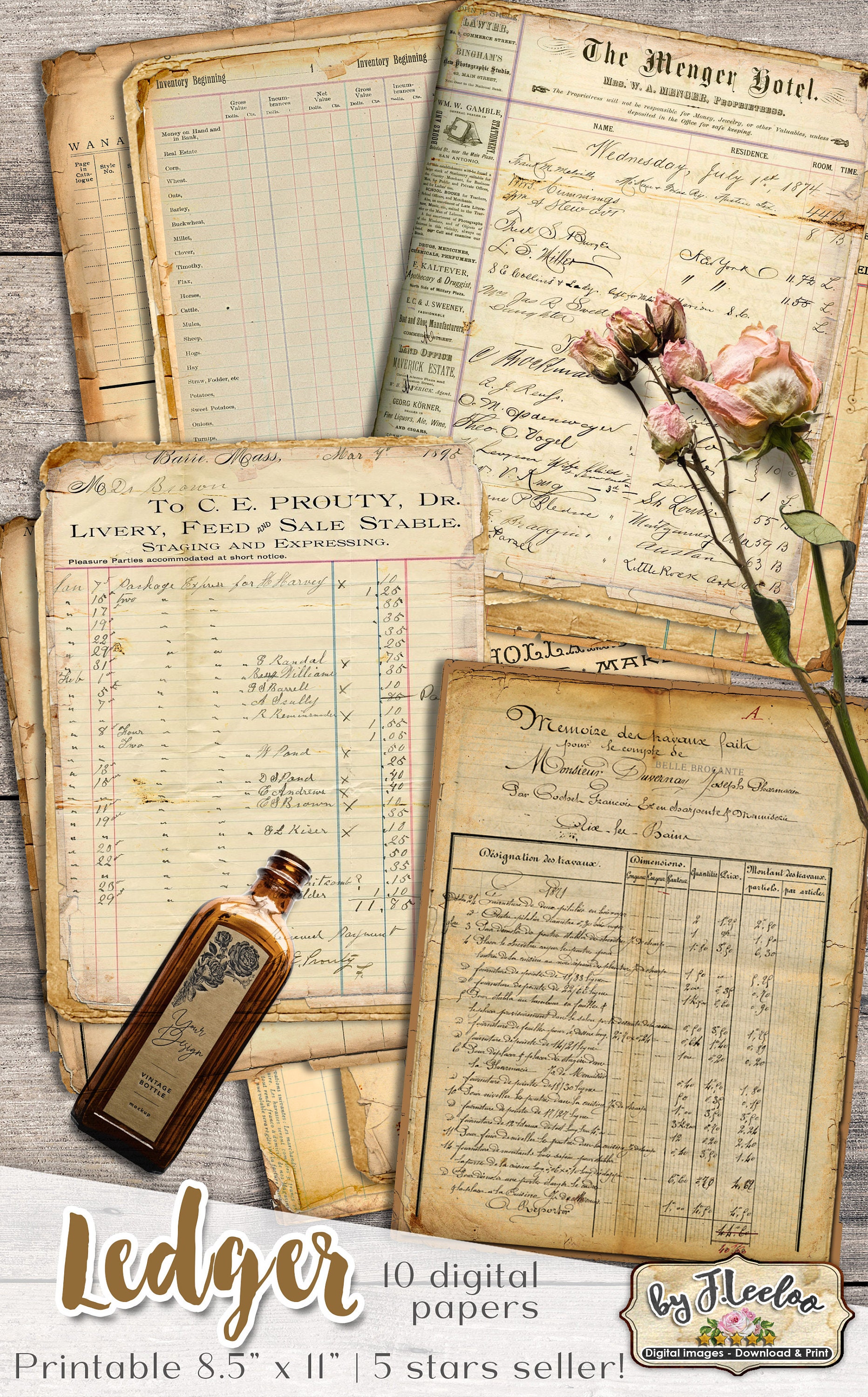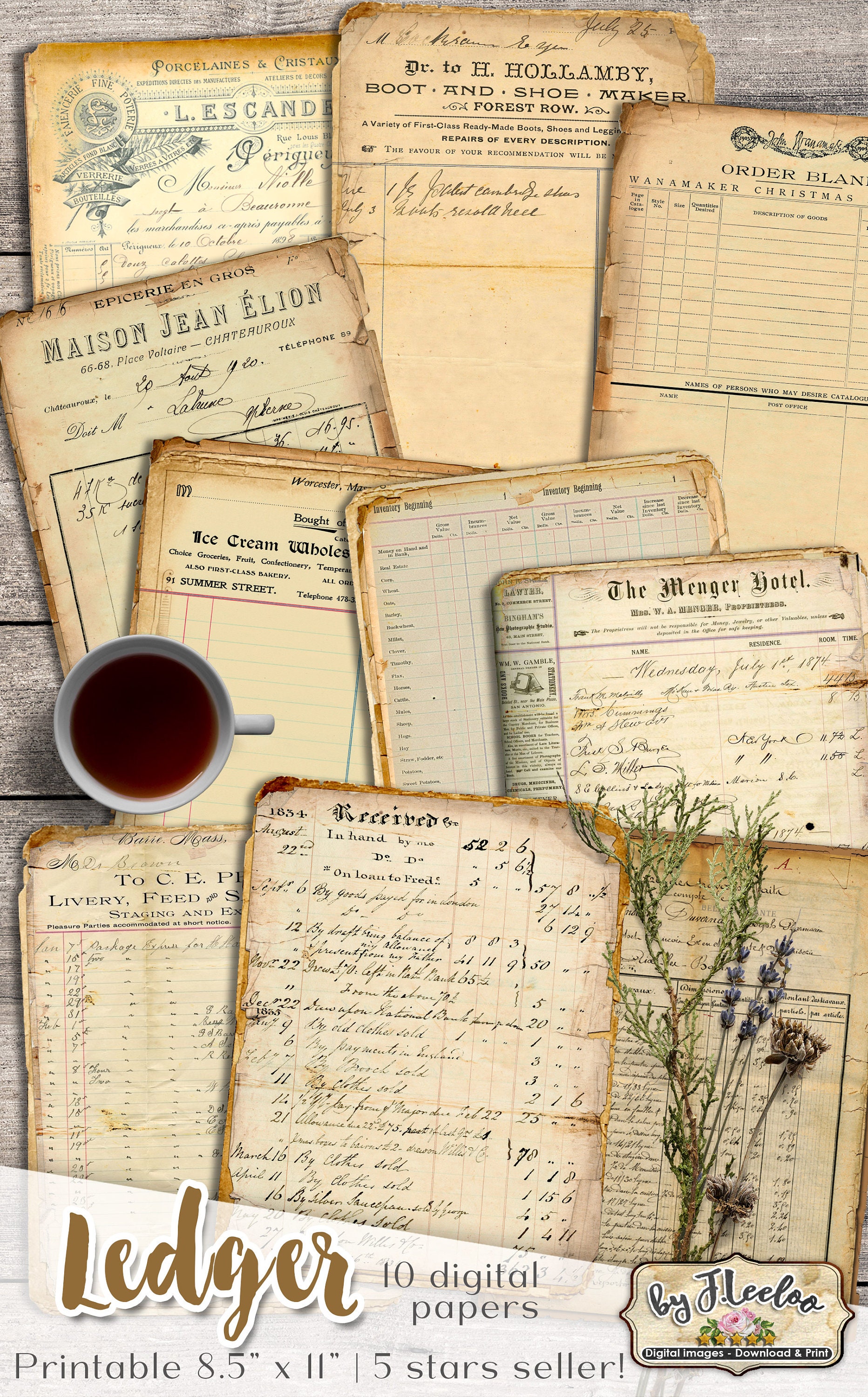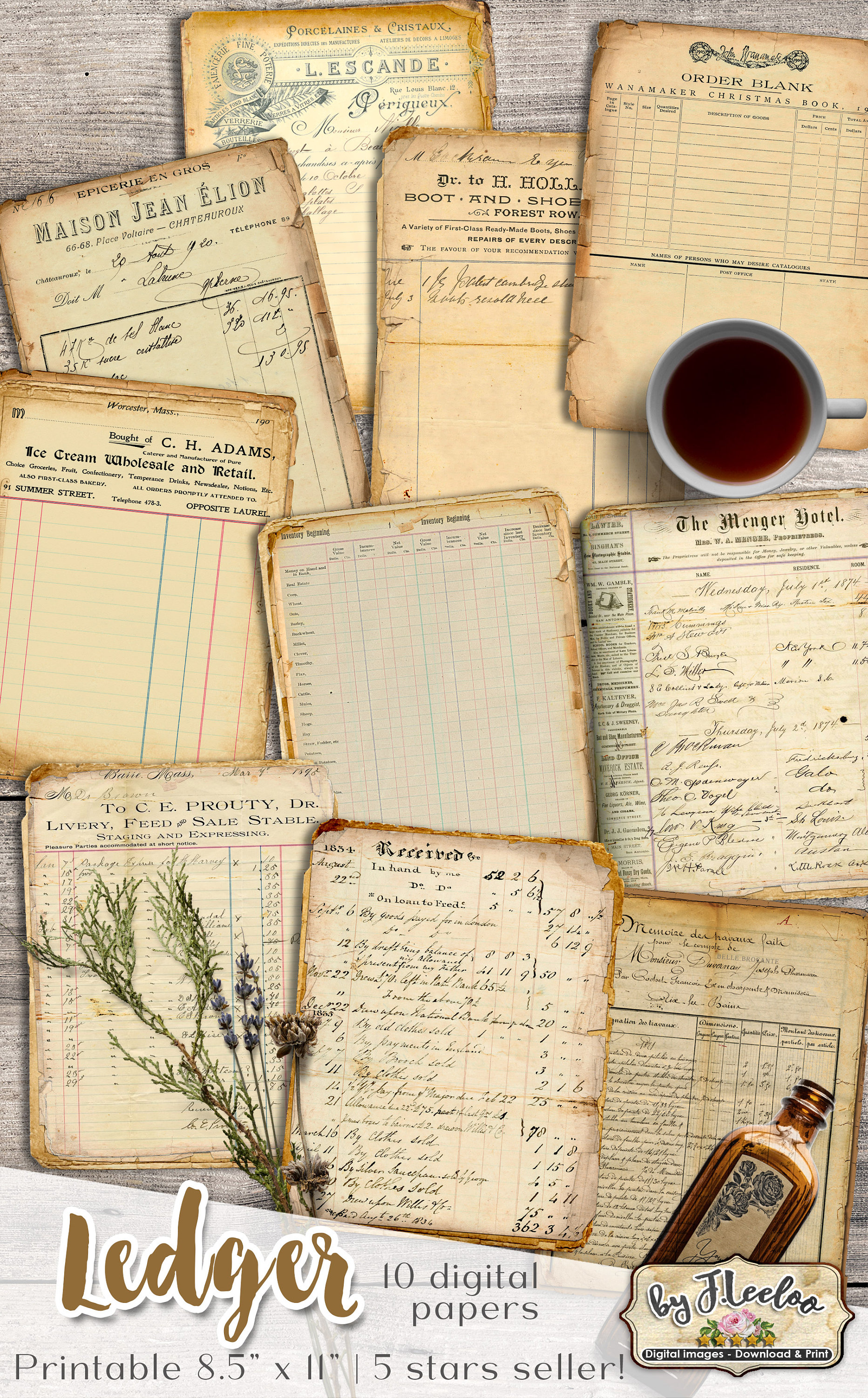 LEDGER Digital Vintage Ephemera for Junk Journals - Grunge diary - Digital scrapbook notebook collage sheet vintage paper download.... print it as many time as you want.