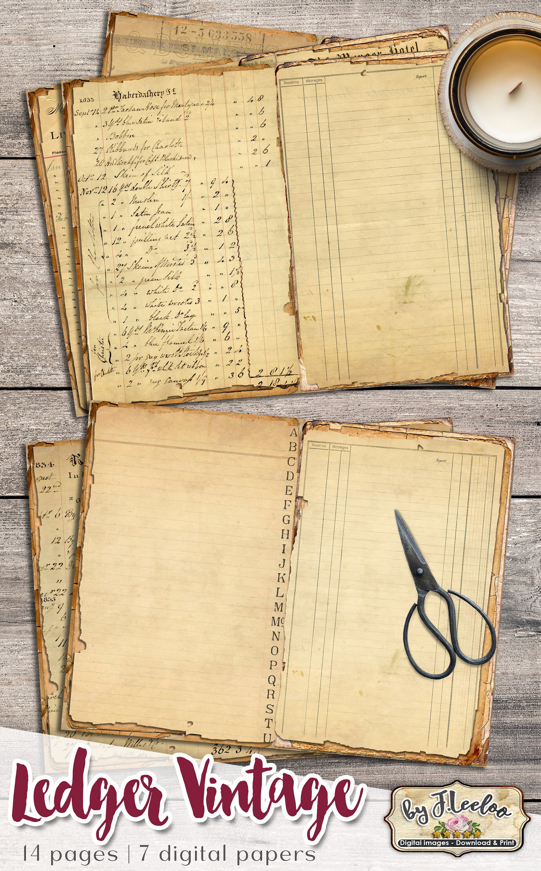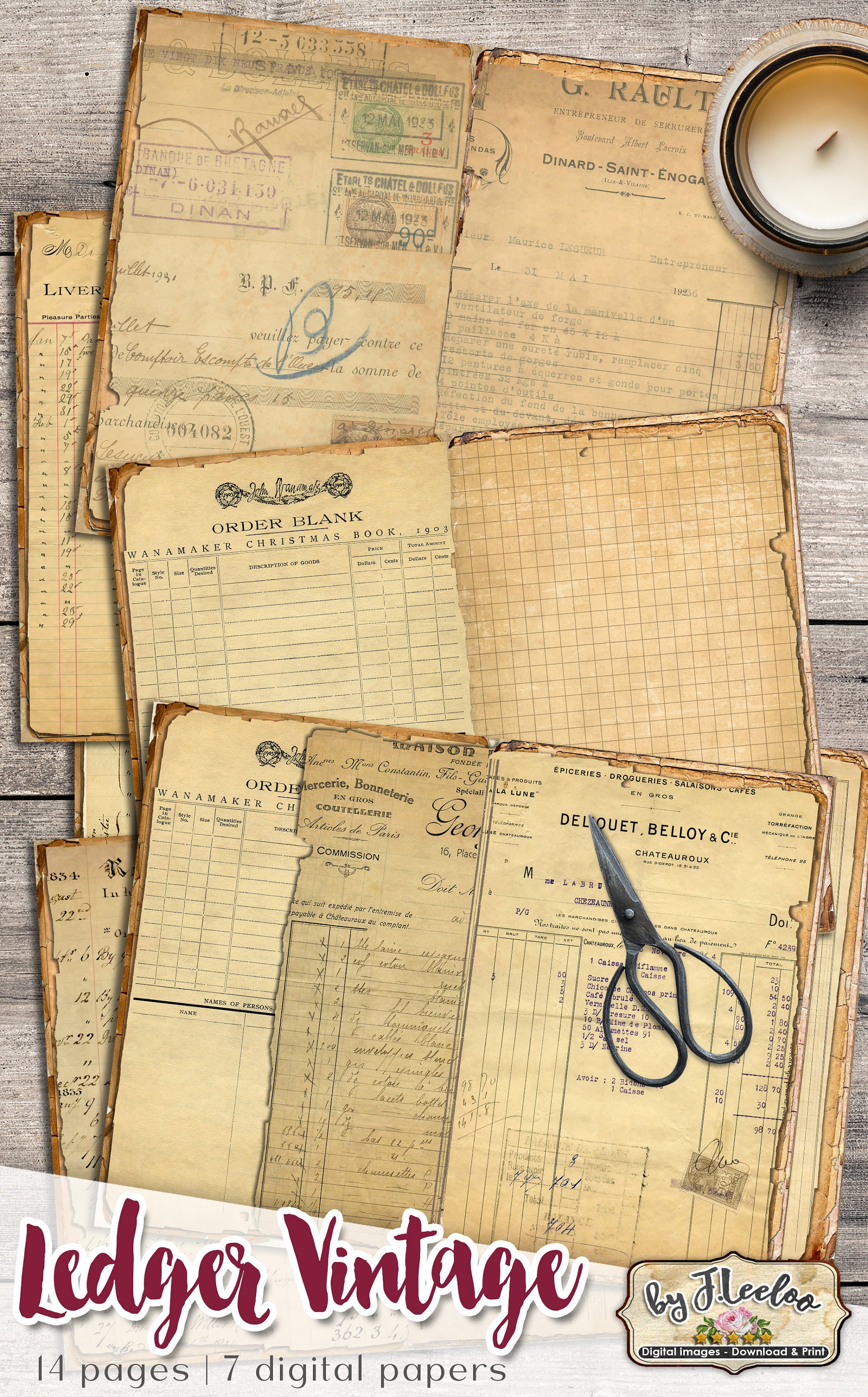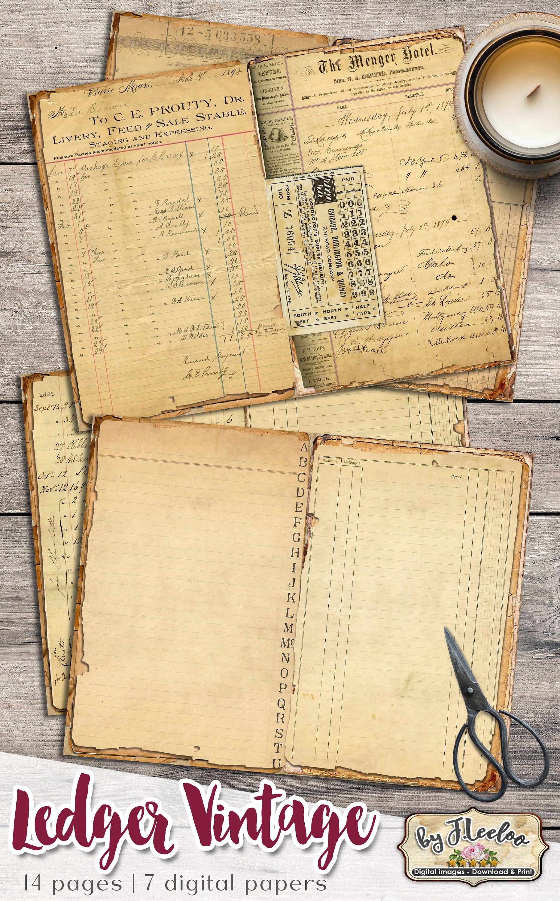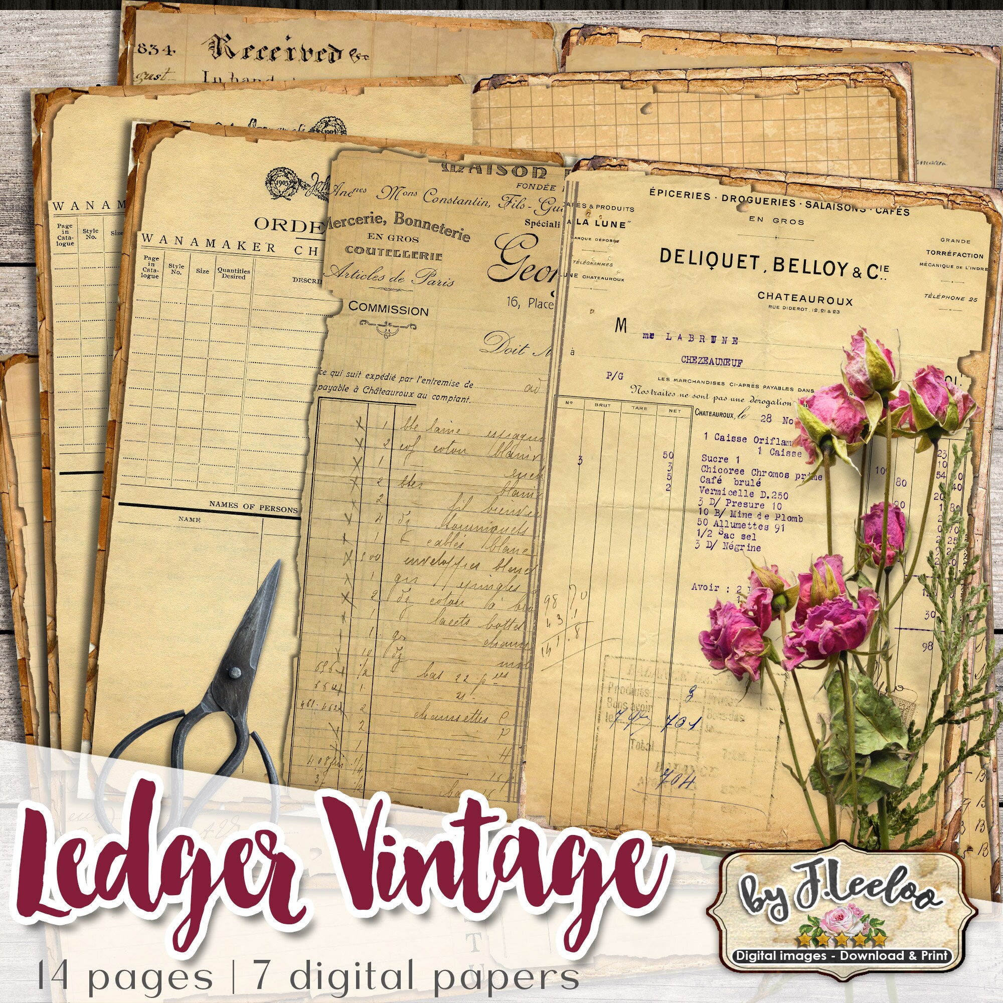 LEDGER VINTAGE Half pages - digital collage sheet bookmaking pages journal art stationery crafting ephemera - Digital papers: images for your artwork, postcards, hang tags, invitations, greeting cards, announcements, scrapbook, backing cards.... all for your crafting project!