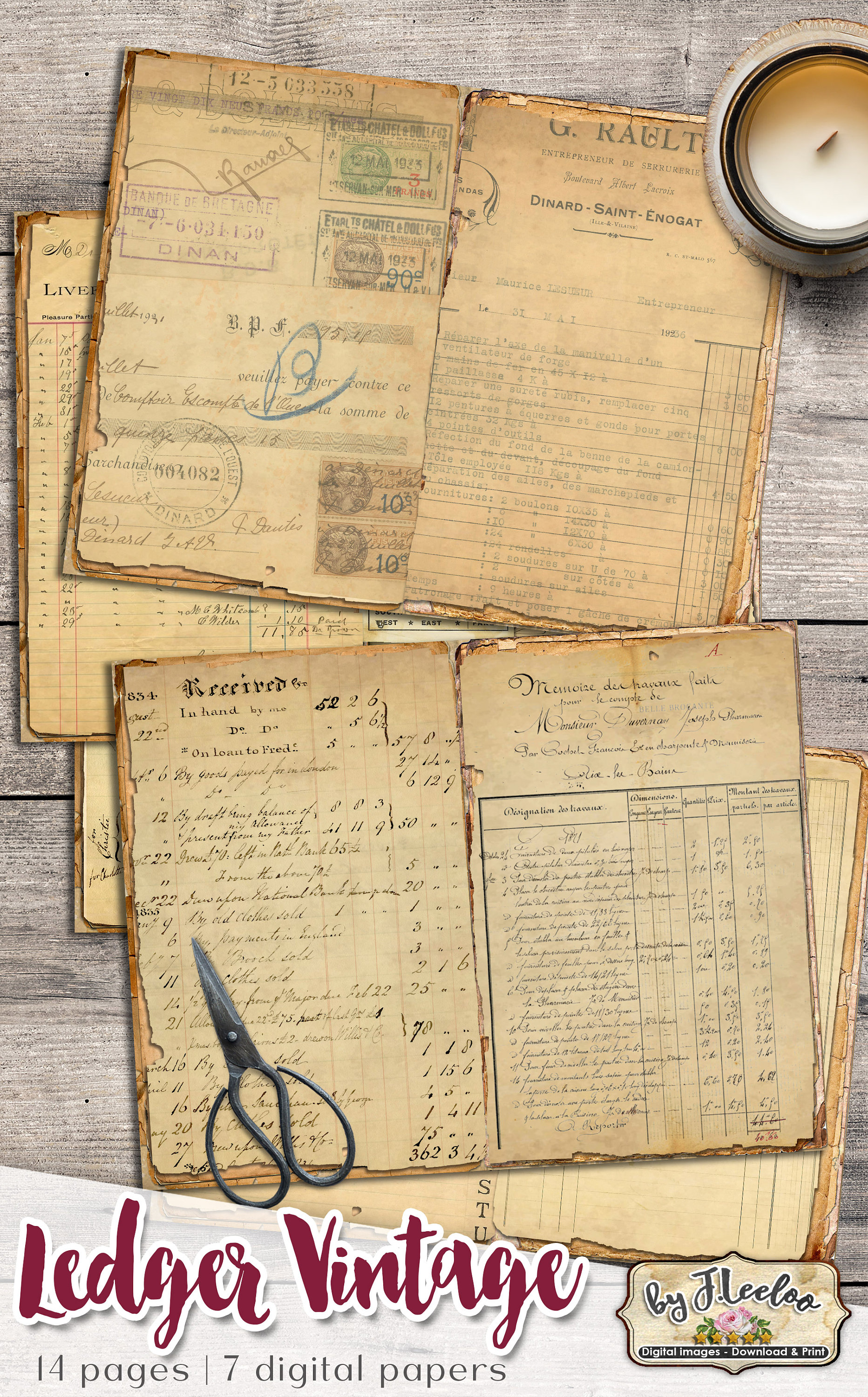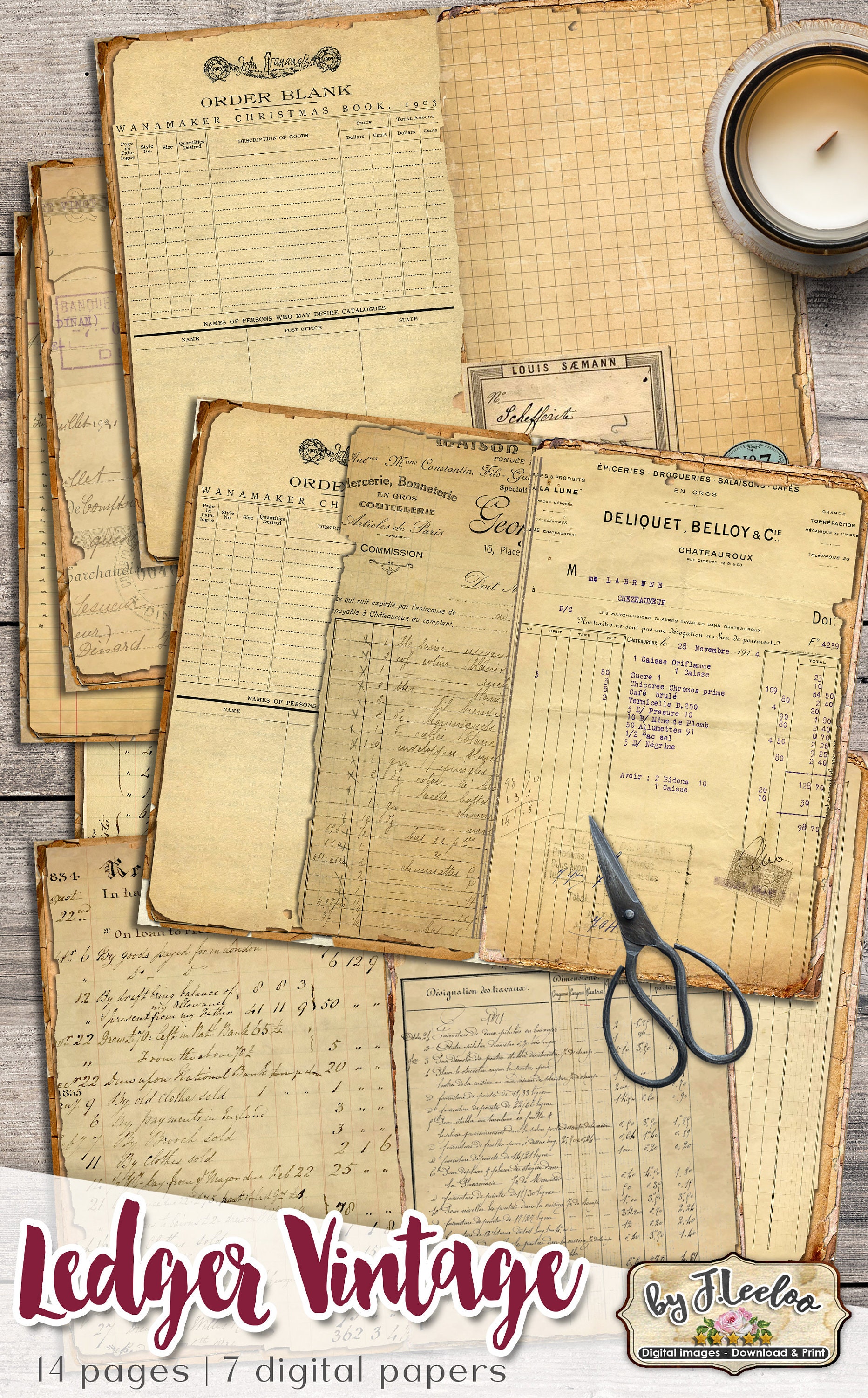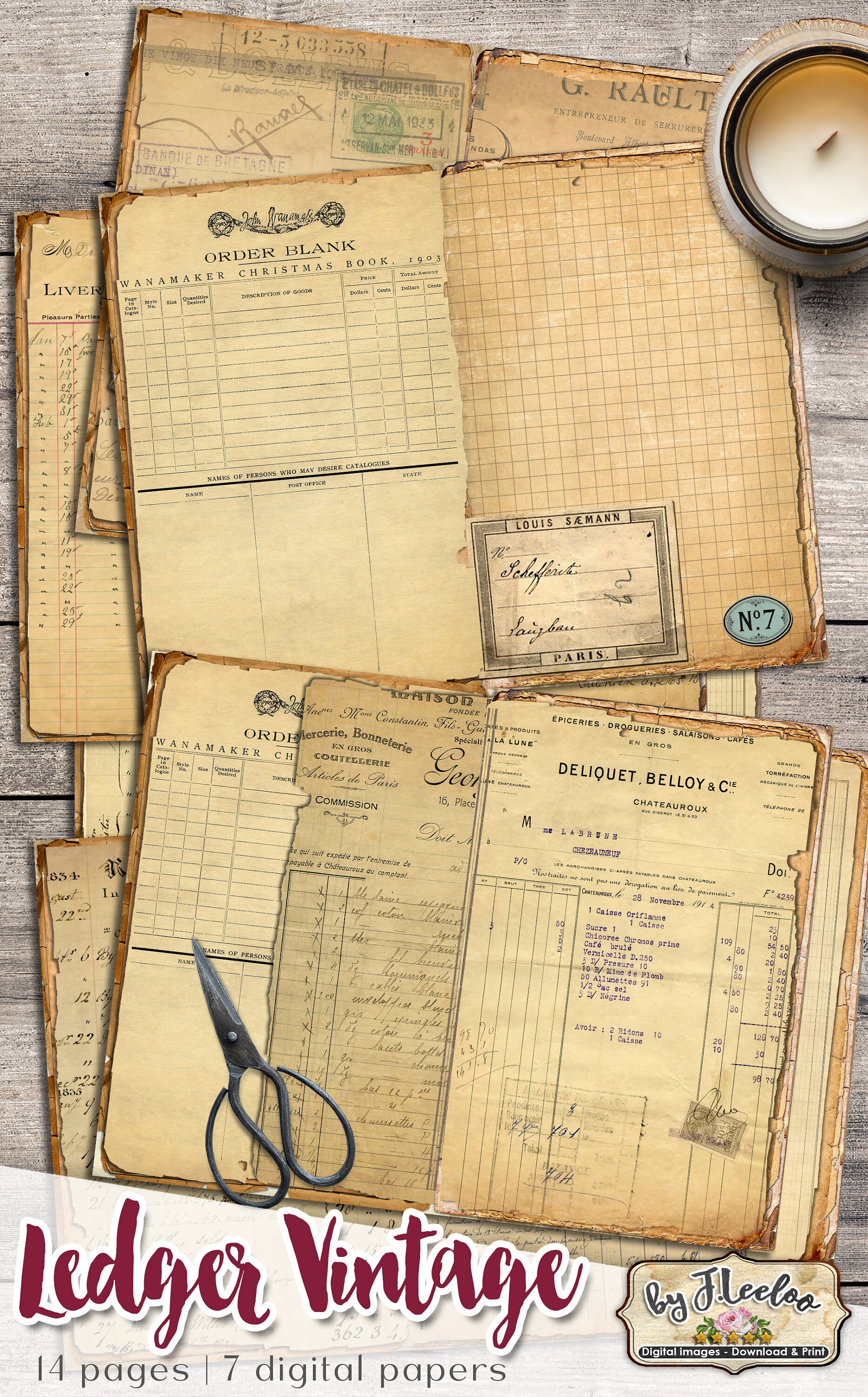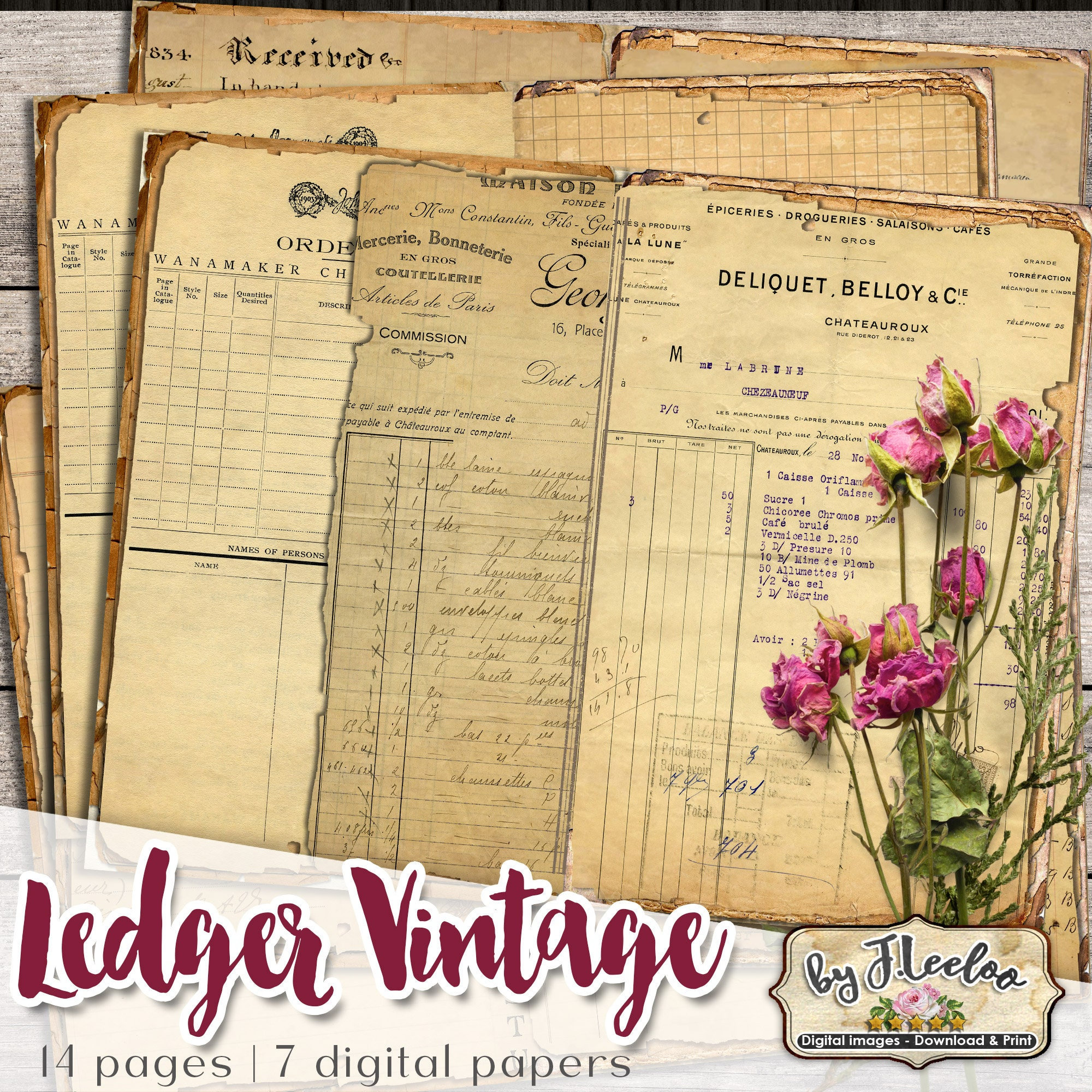 LEDGER VINTAGE Half pages - digital collage sheet bookmaking pages journal art stationery crafting ephemera - Digital papers: images for your artwork, postcards, hang tags, invitations, greeting cards, announcements, scrapbook, backing cards.... all for your crafting project!