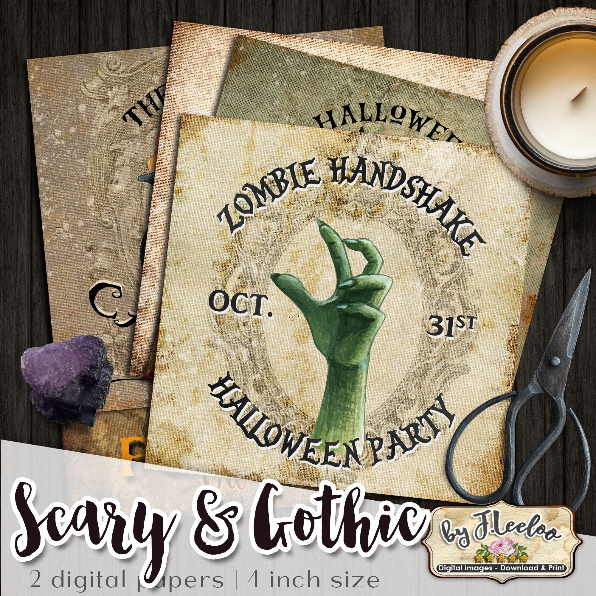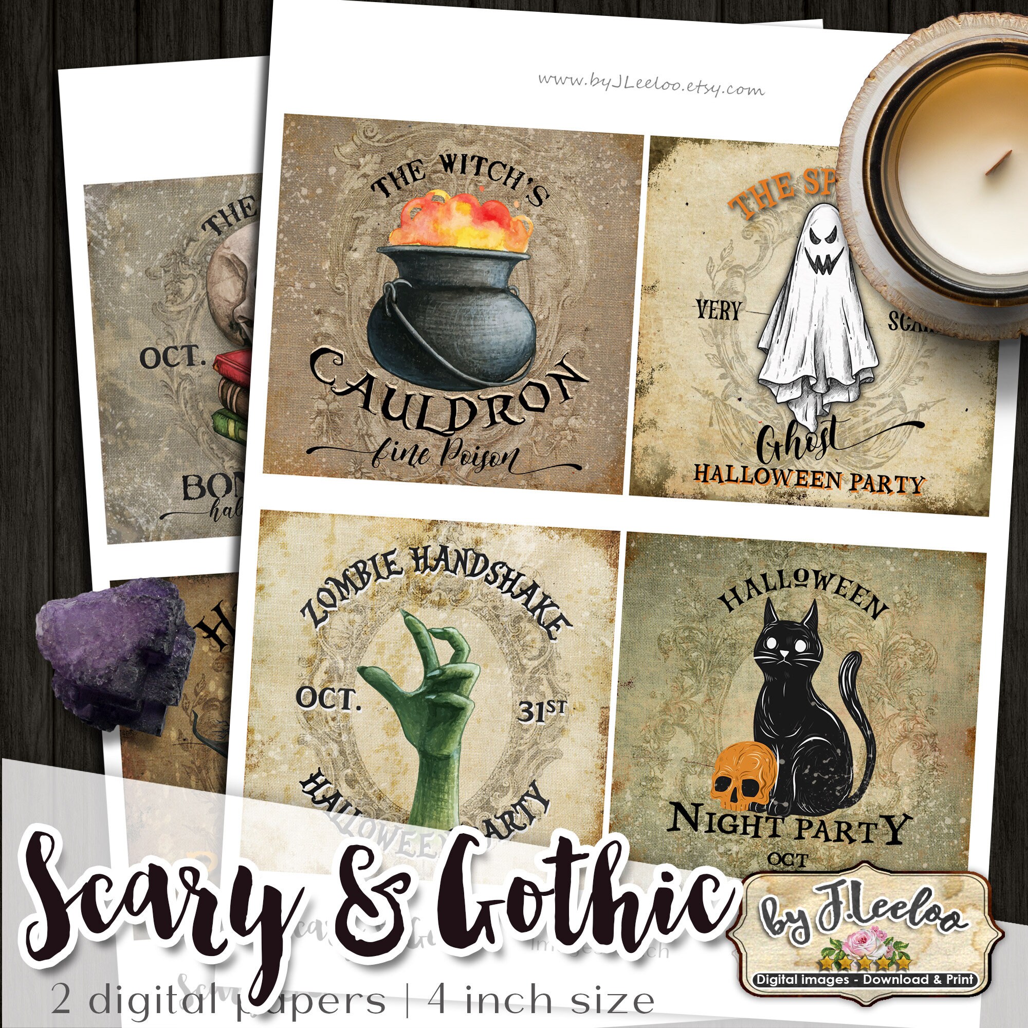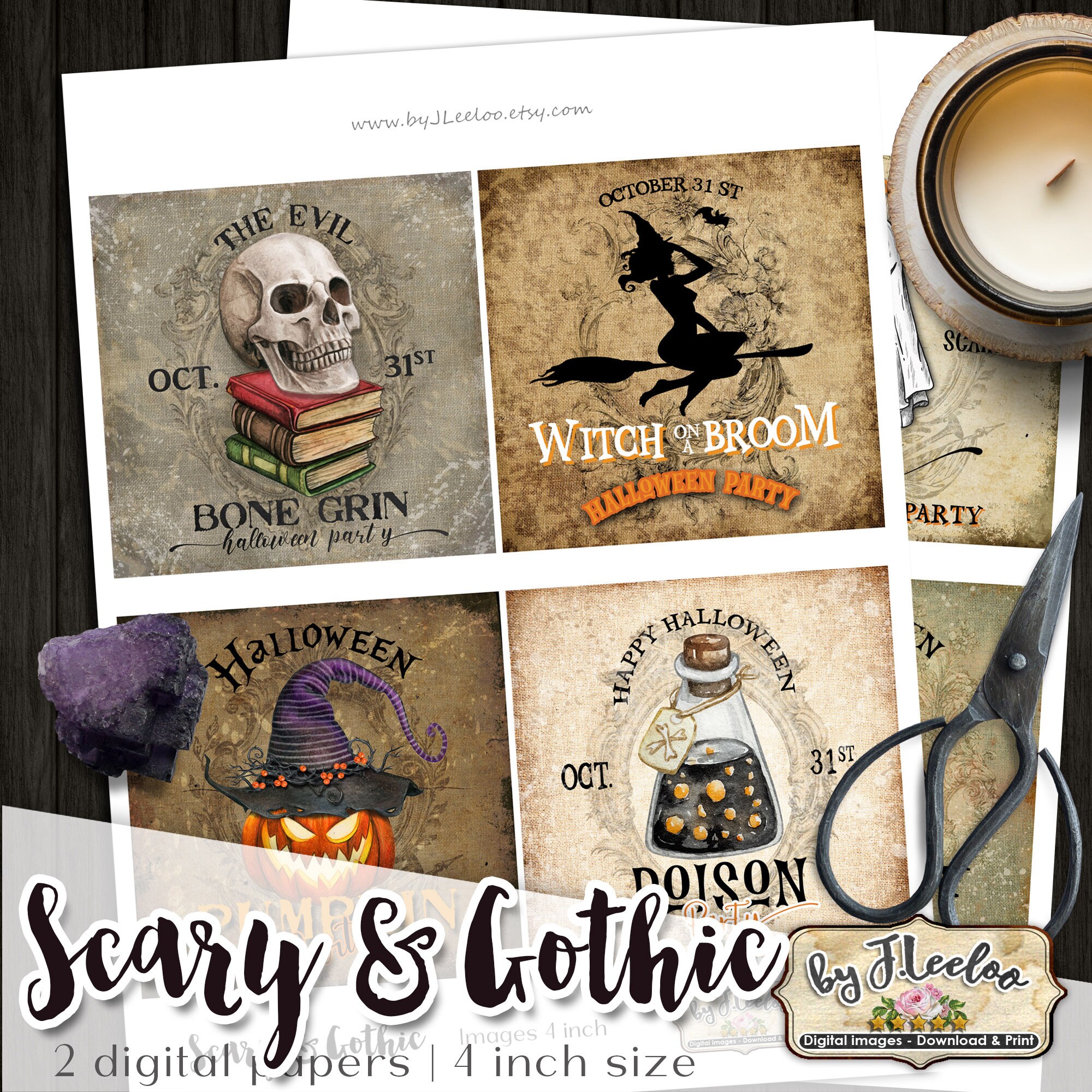 SCARY & GOTHIC Halloween digital printable vintage Images for coasters - Square images instant download ready to print for coaster, thank you cards or hang tags, your jewelry making, resin pendants, rings, earrings and button, for magnets, stickers, scrapbook and your others craft project.