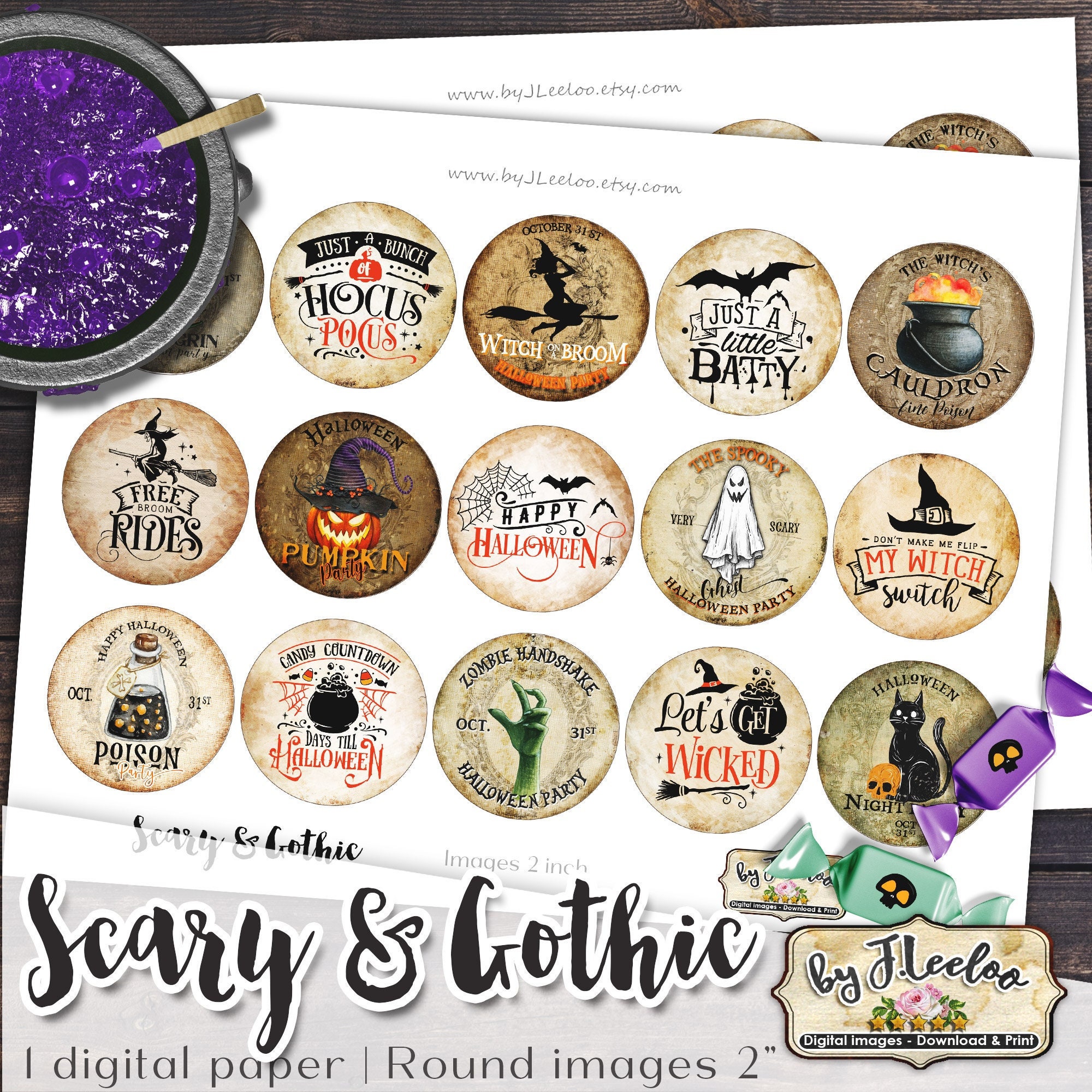 SCARY & GOTHIC 2 inch digital Halloween printable vintage dirty images for topping coasters scrapbooking diary journal grunge ephemera and your others craft project.