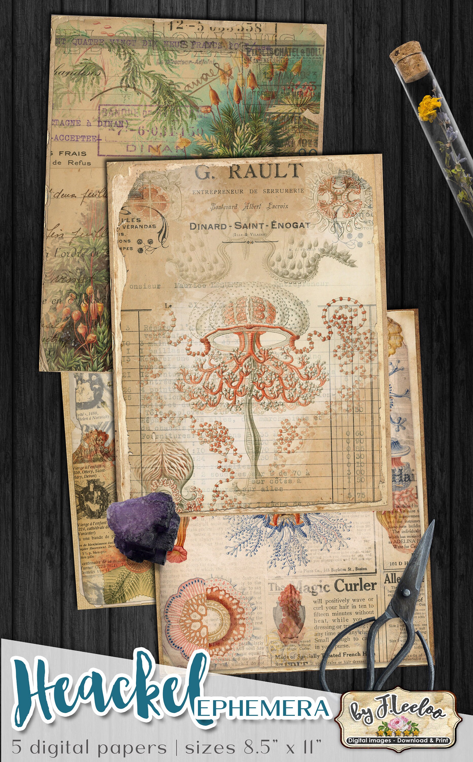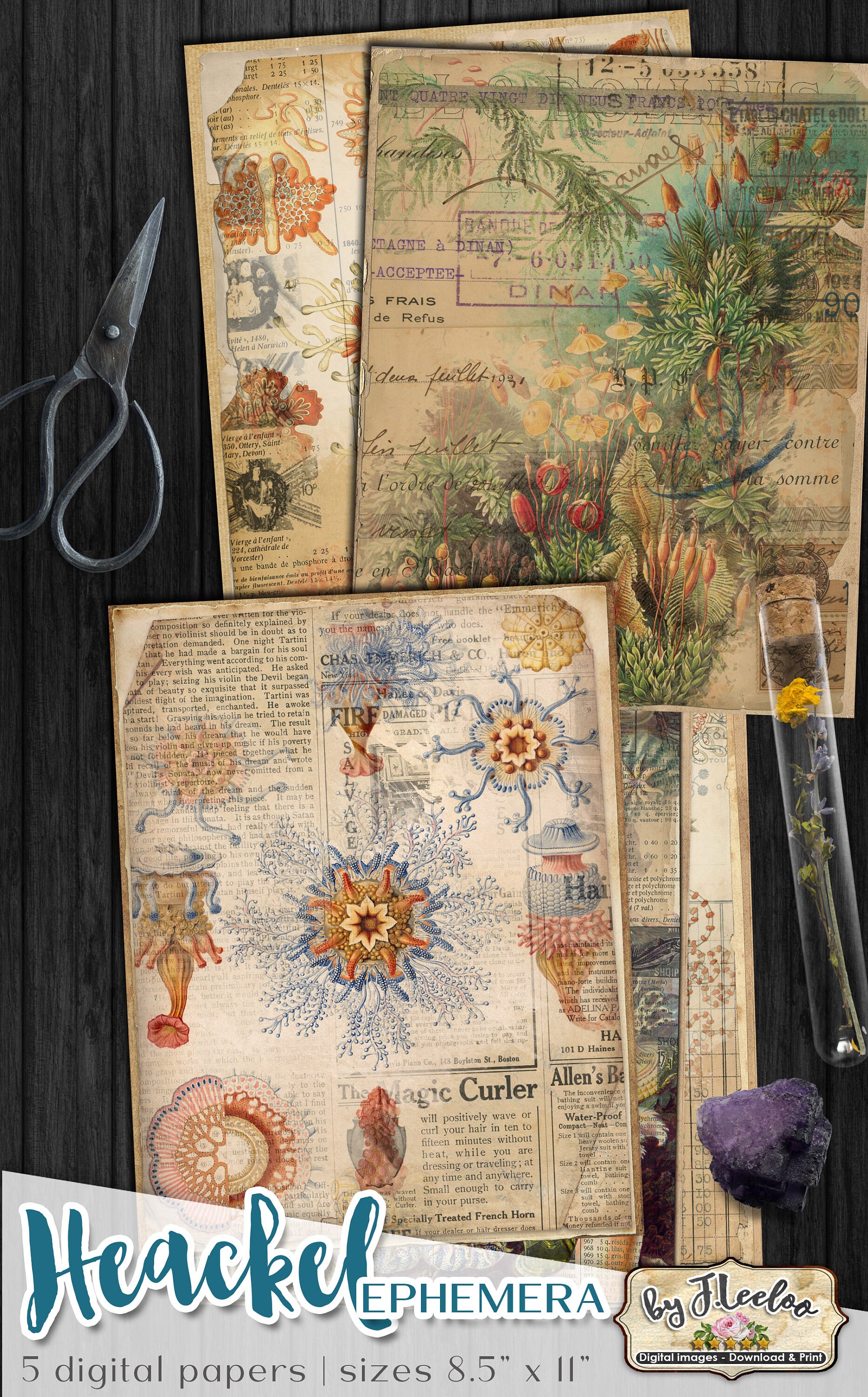HEACKEL EPHEMERA Digital Vintage Ephemera for Junk Journals - Grunge diary - Digital scrapbook notebook collage sheet vintage paper download.... print it as many time as you want.