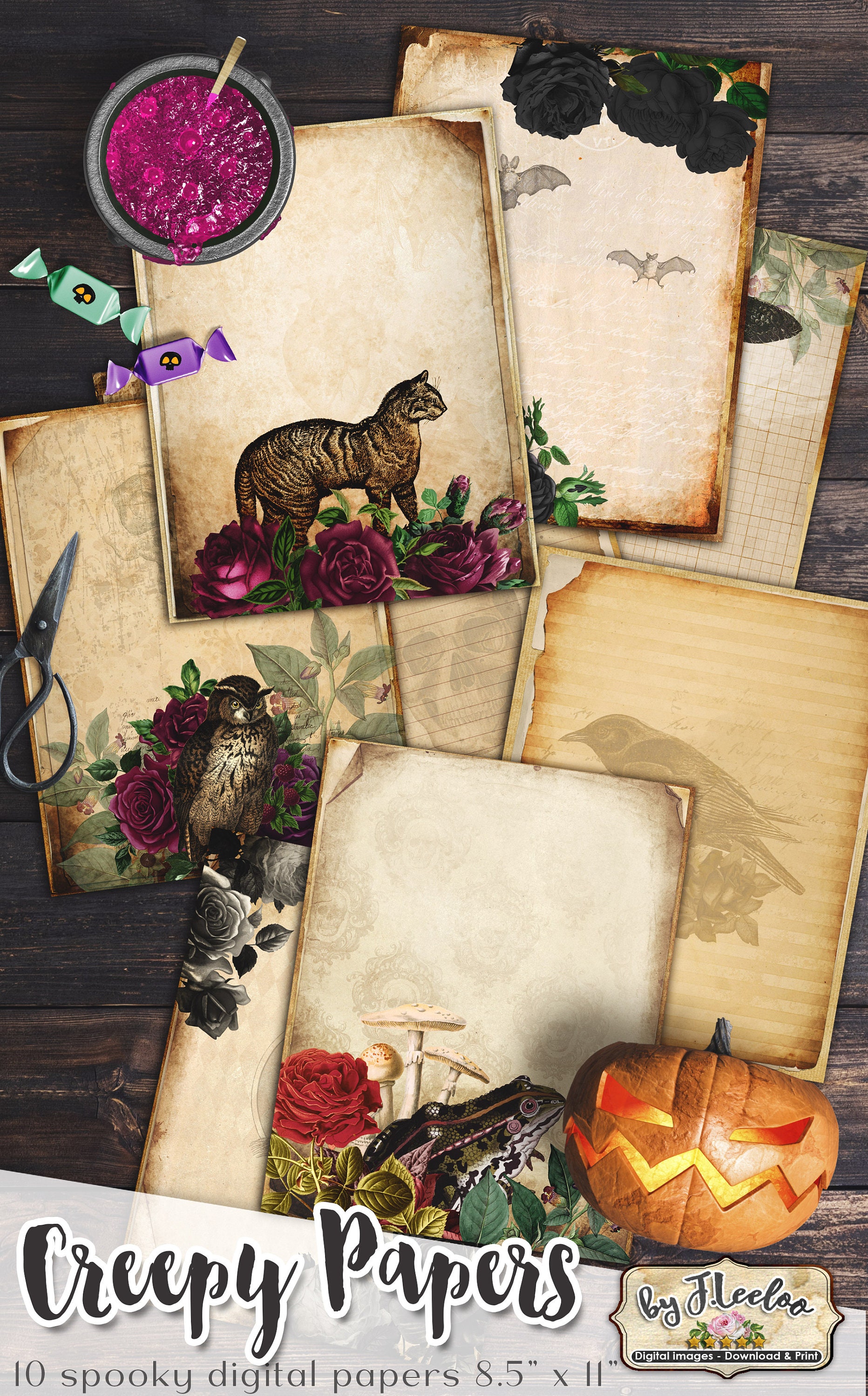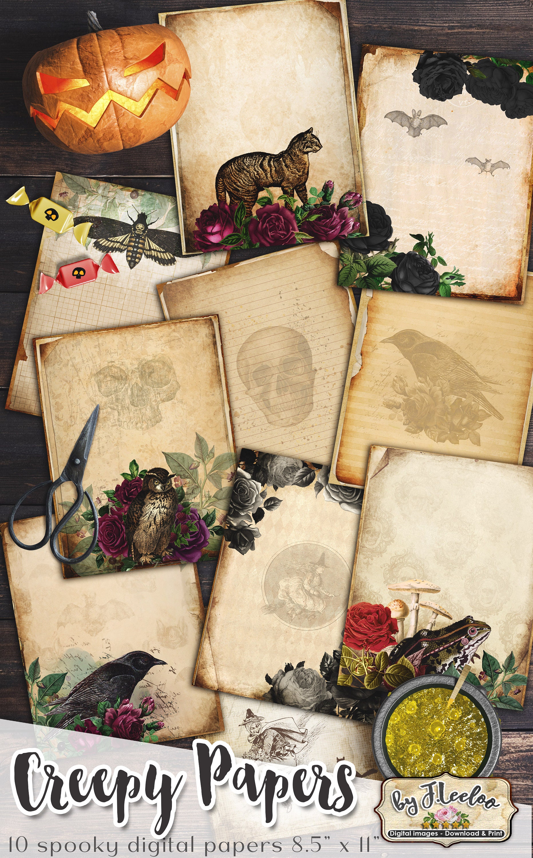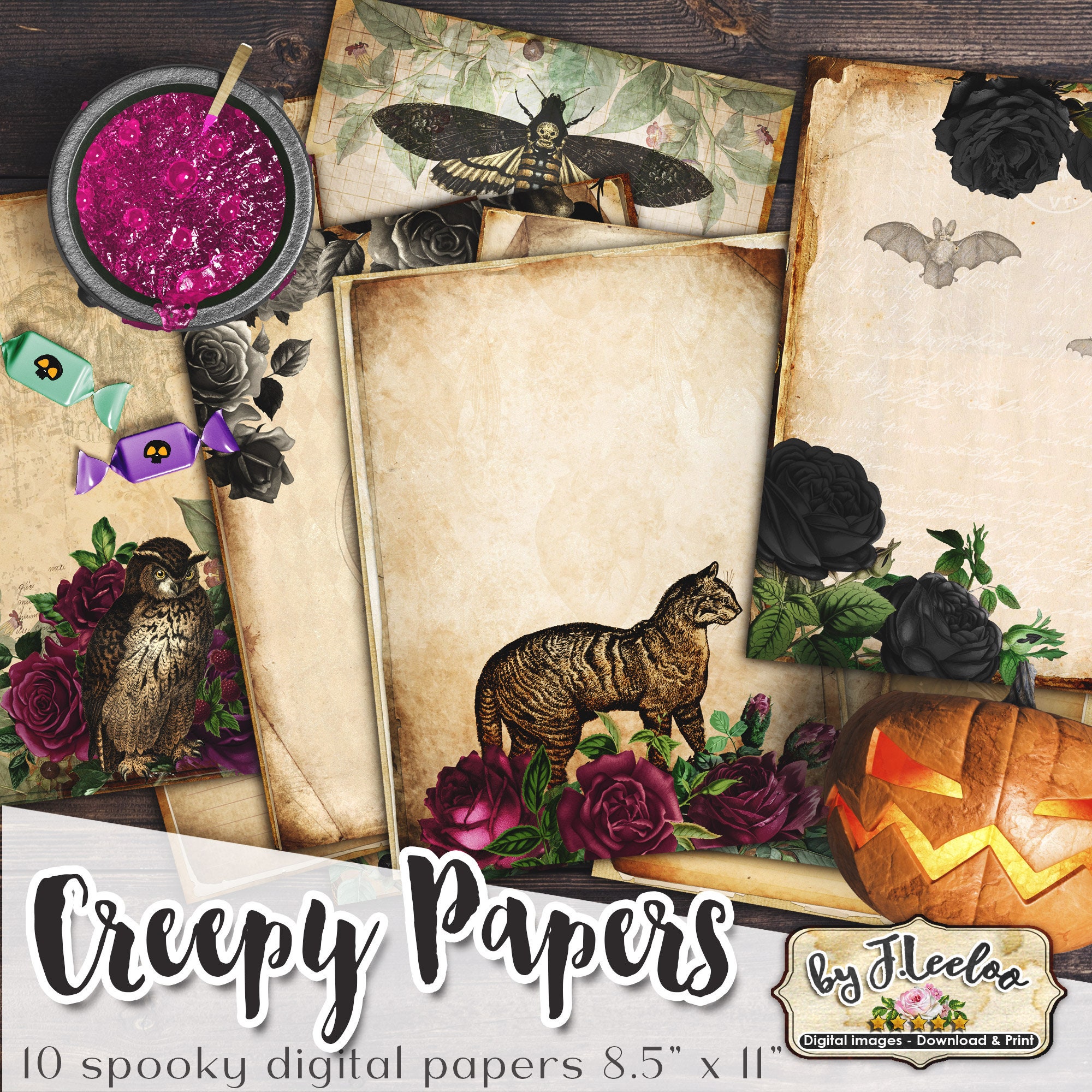 CREEPY HALLOWEEN 10 large 8.5 x 11 inch papers gothic junk journal art crafting tattered backgrounds scrapbooking instant download printable diary.
