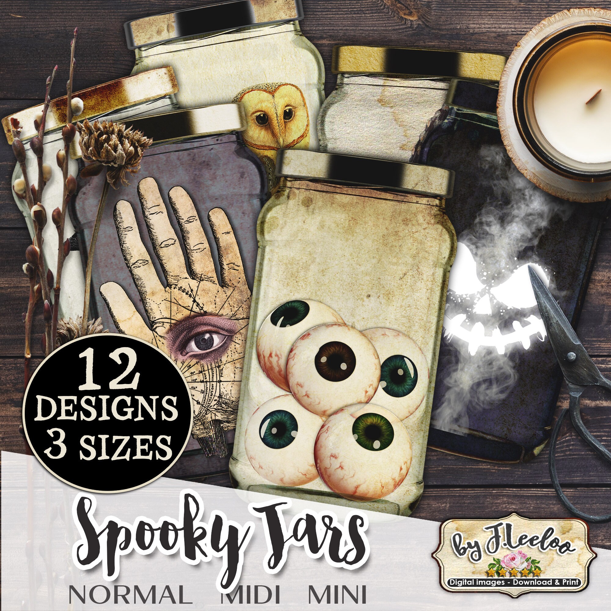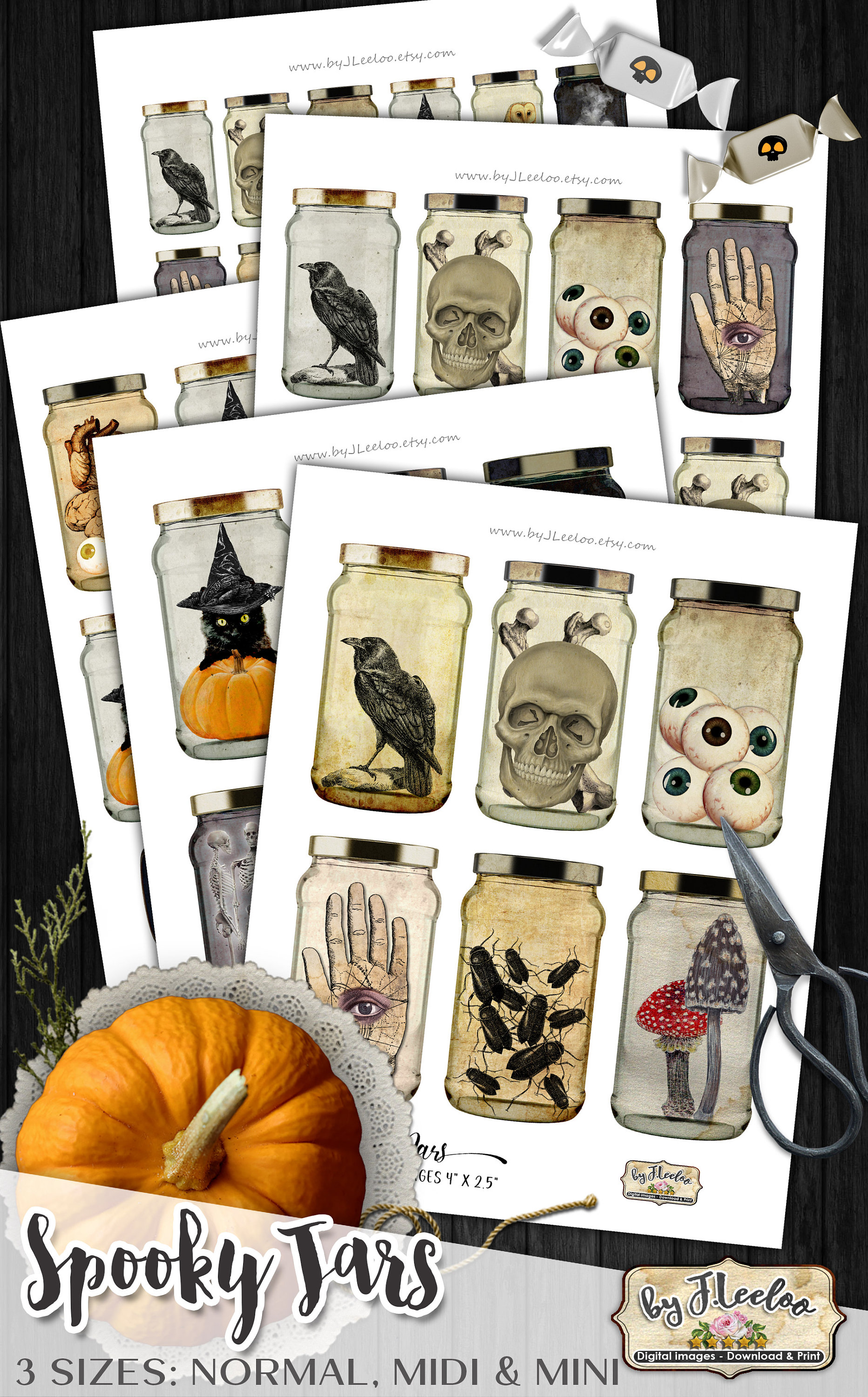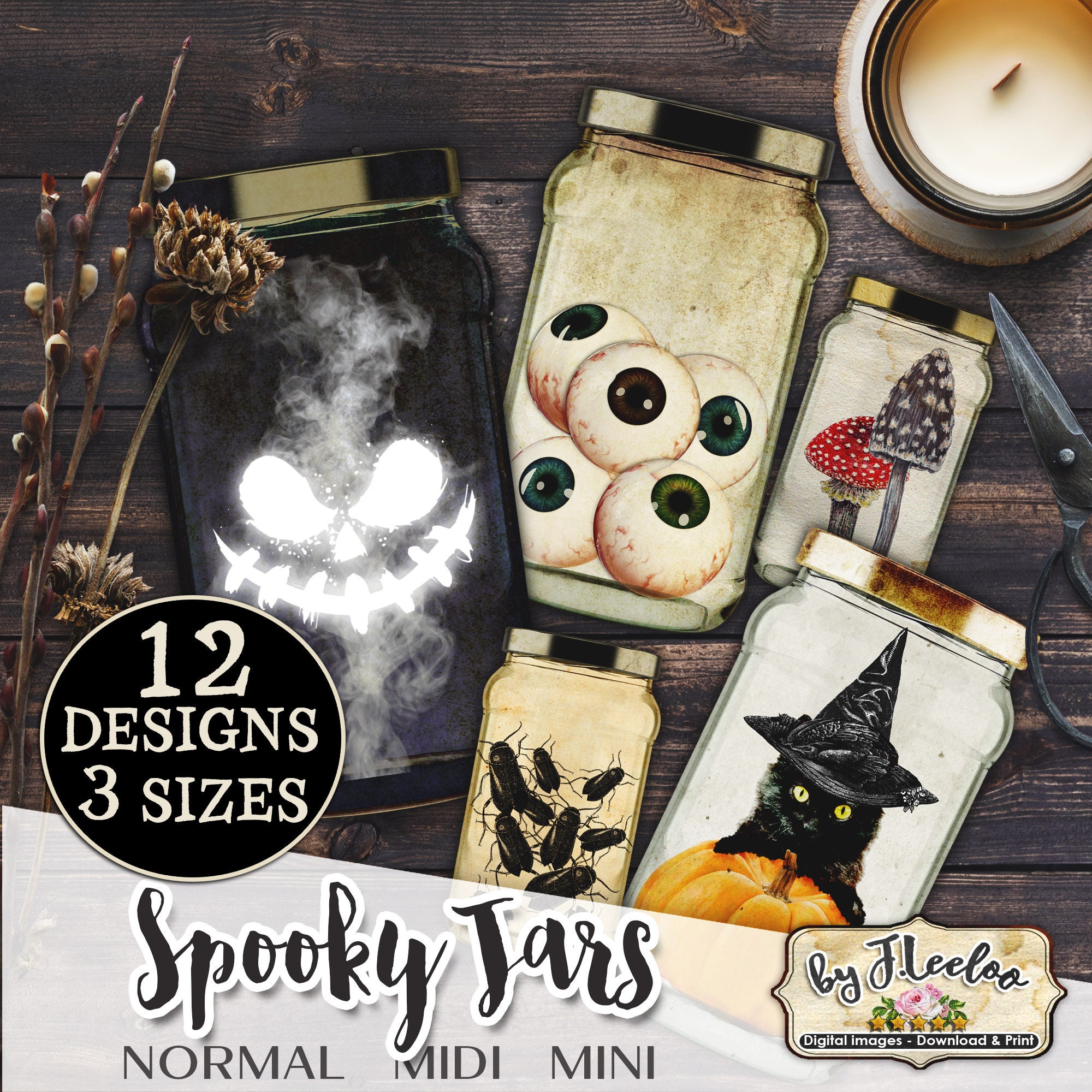 SPOOKY JARS stampabile Halloween barattolo di vetro effimero fornisce tag spazzatura giornale vintage festa santificato gotico e gli altri progetti artigianali.