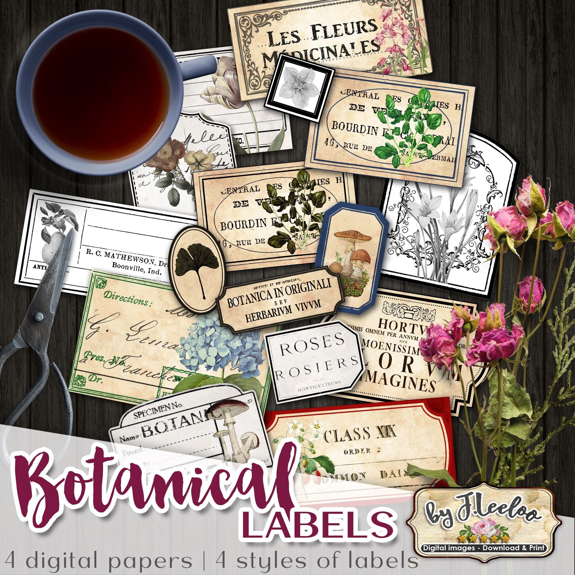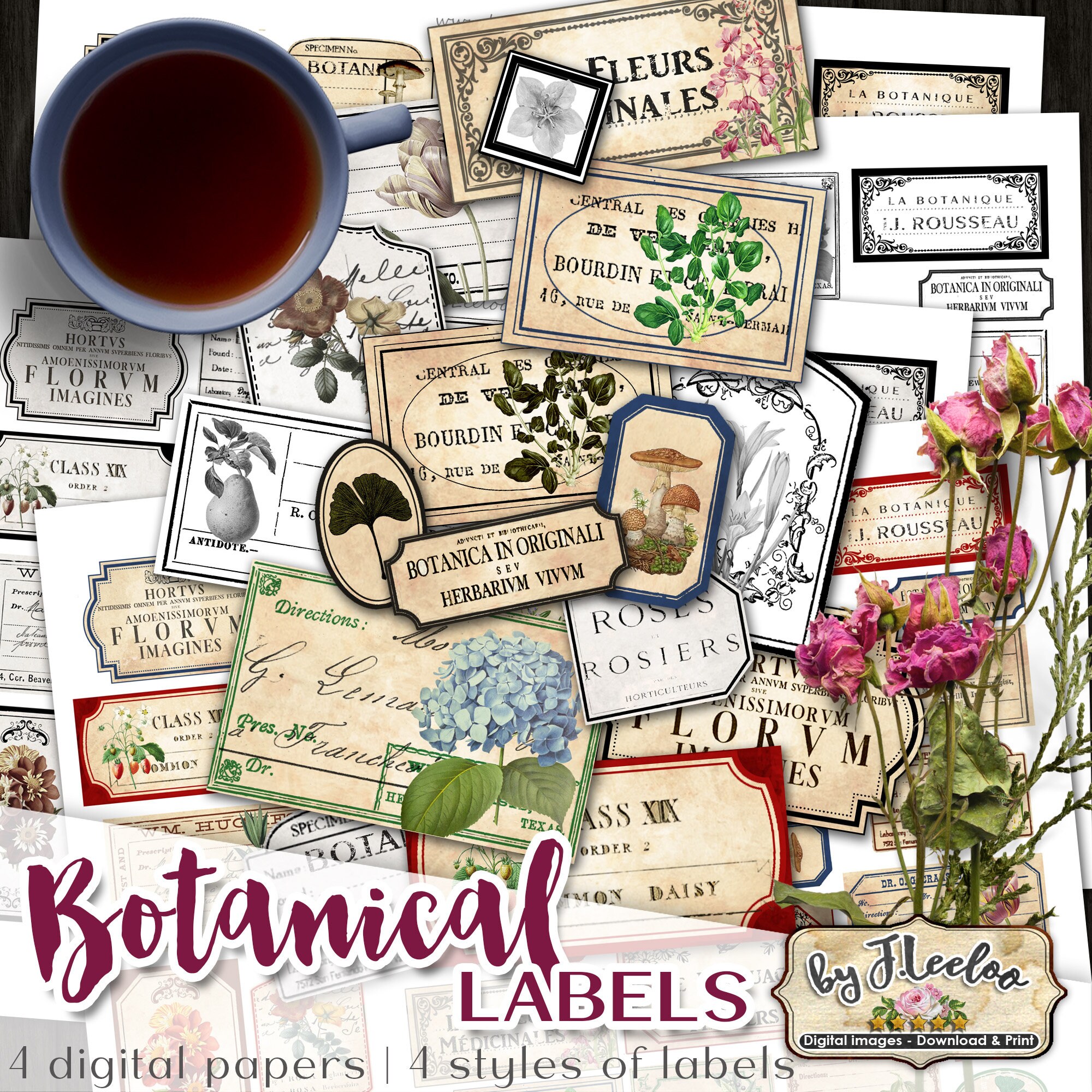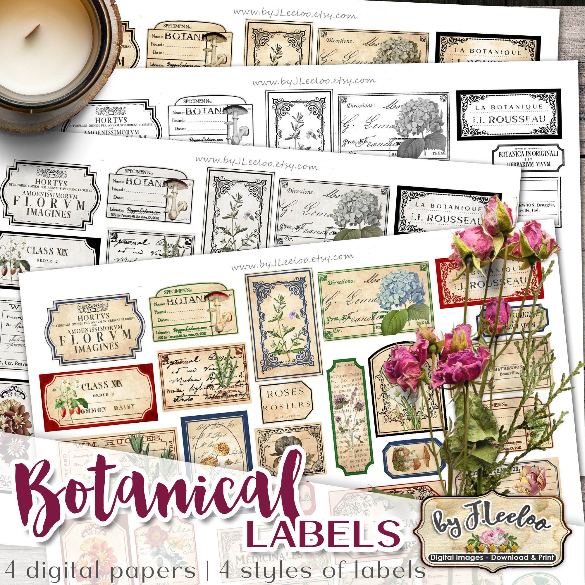 BOTANICAL etichette kit stampabile vintage ephemera junk journal download istantaneo immagini stampabili foglio di collage digitale