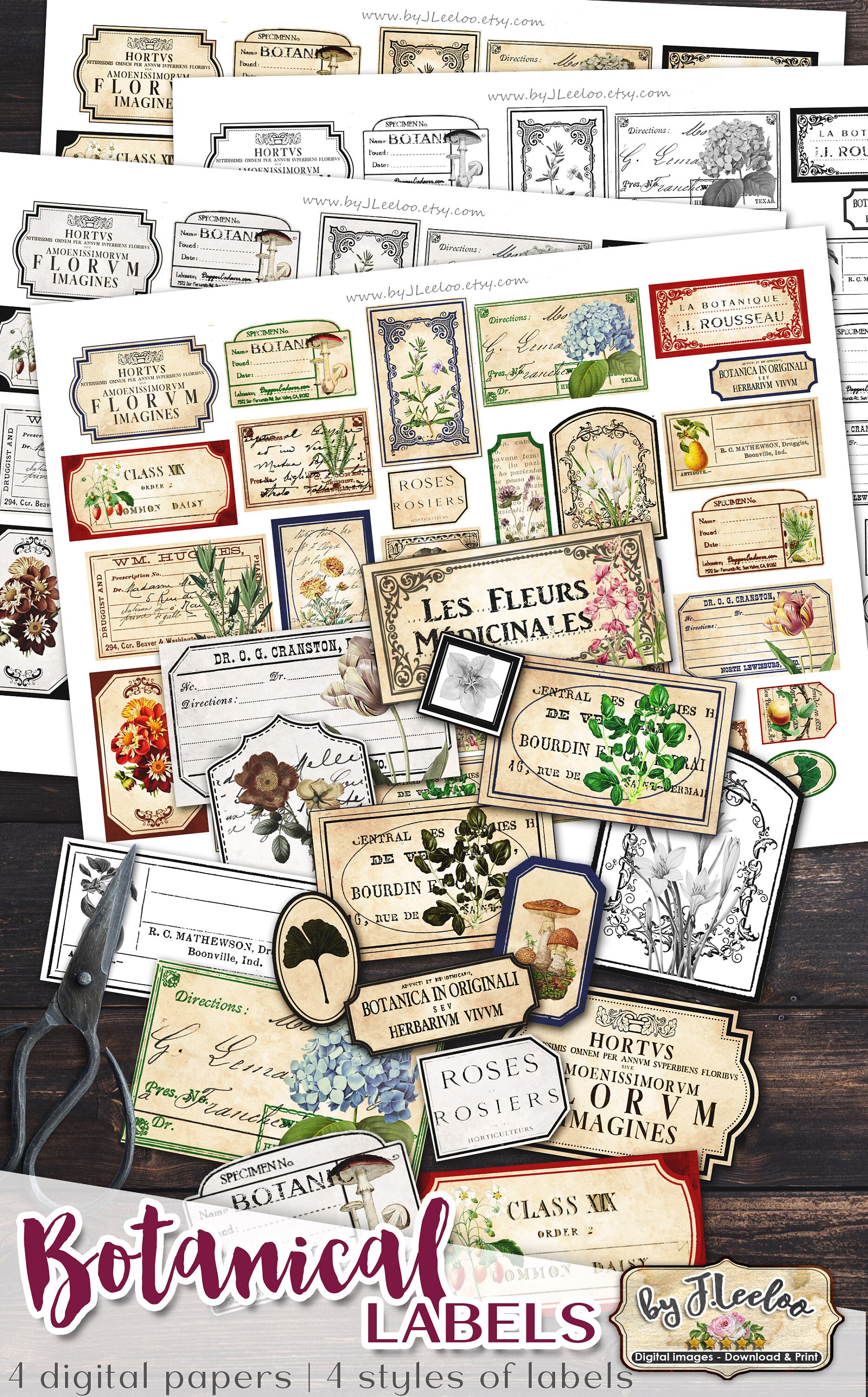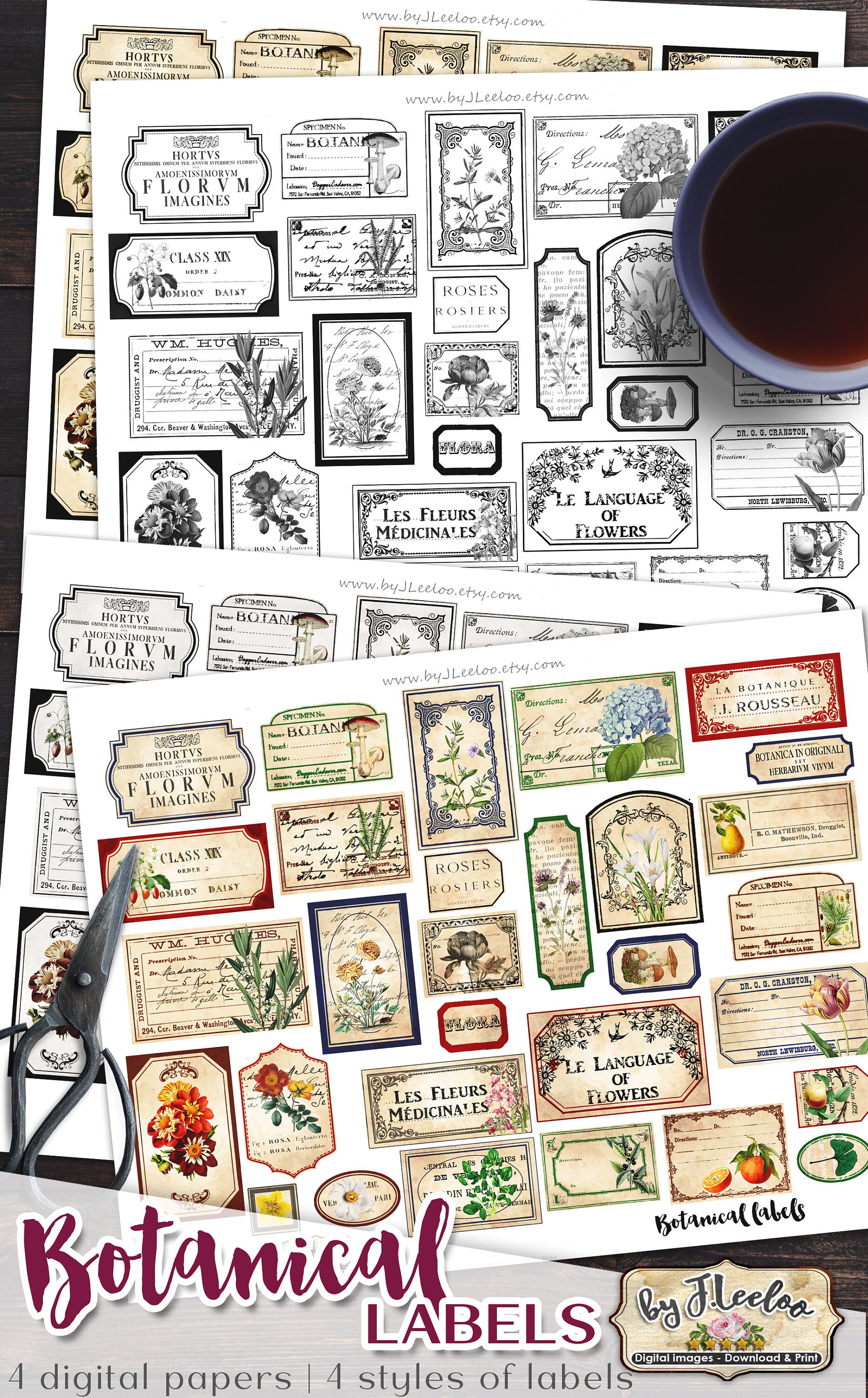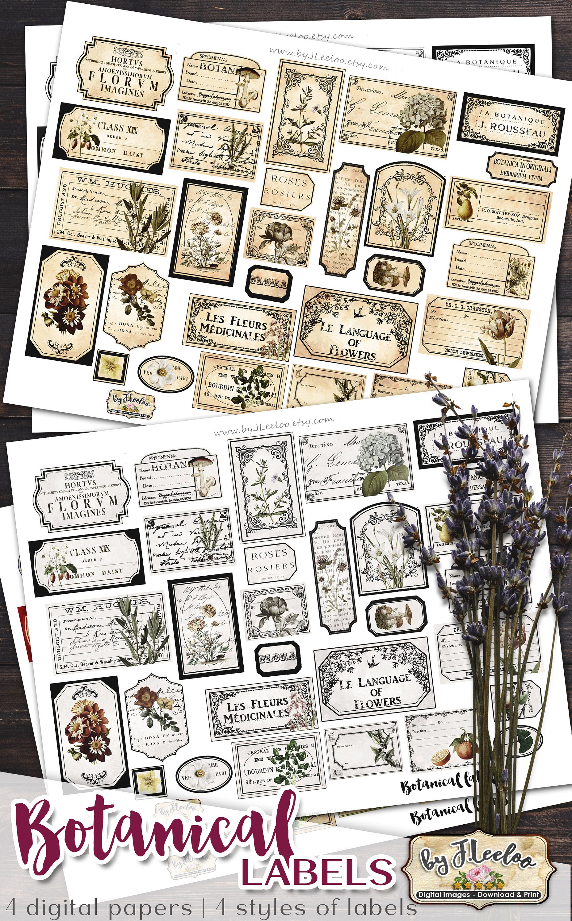 BOTANICAL etichette kit stampabile vintage ephemera junk journal download istantaneo immagini stampabili foglio di collage digitale