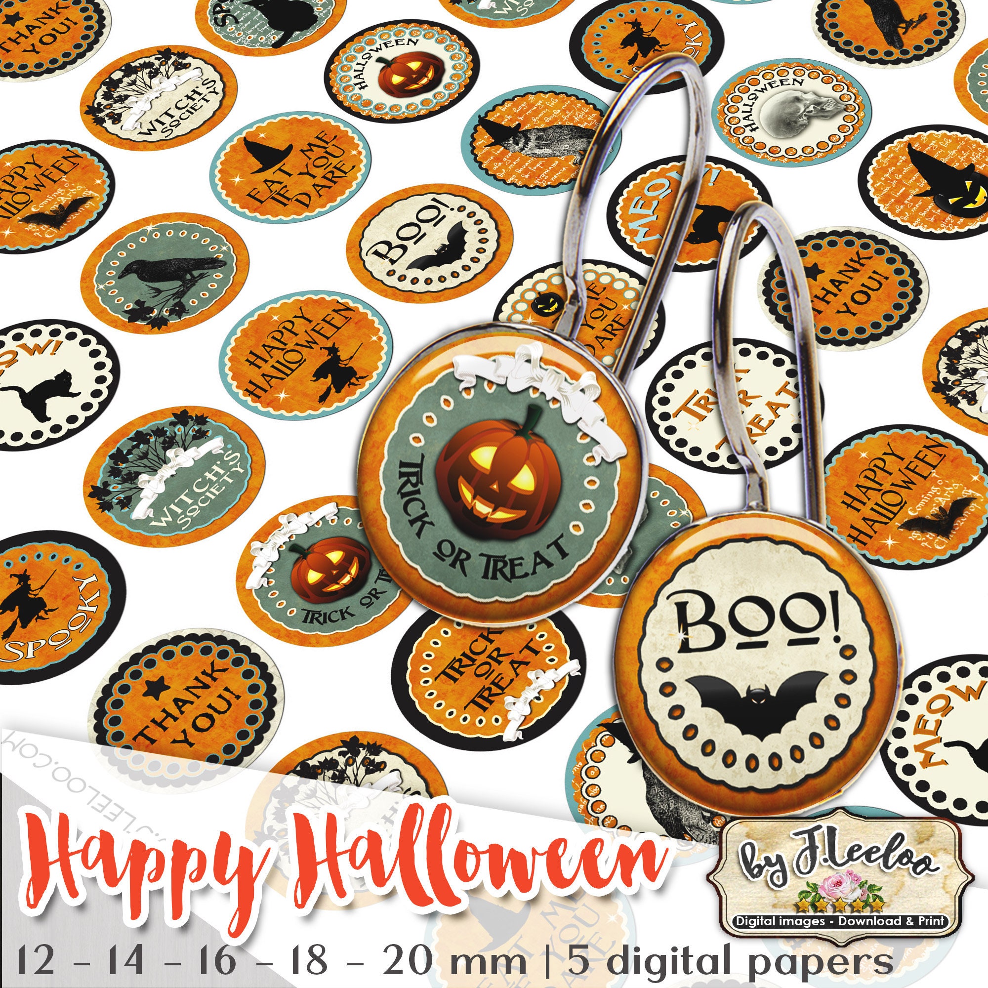 HAPPY HALLOWEEN - Digital collage sheets - Circles images instant download ready to print for your jewelry making, resin pendants, rings, earrings and button, for magnets, stickers, scrapbook and your others craft project.