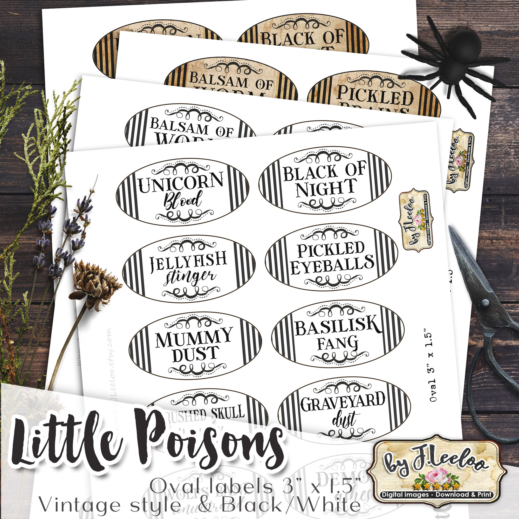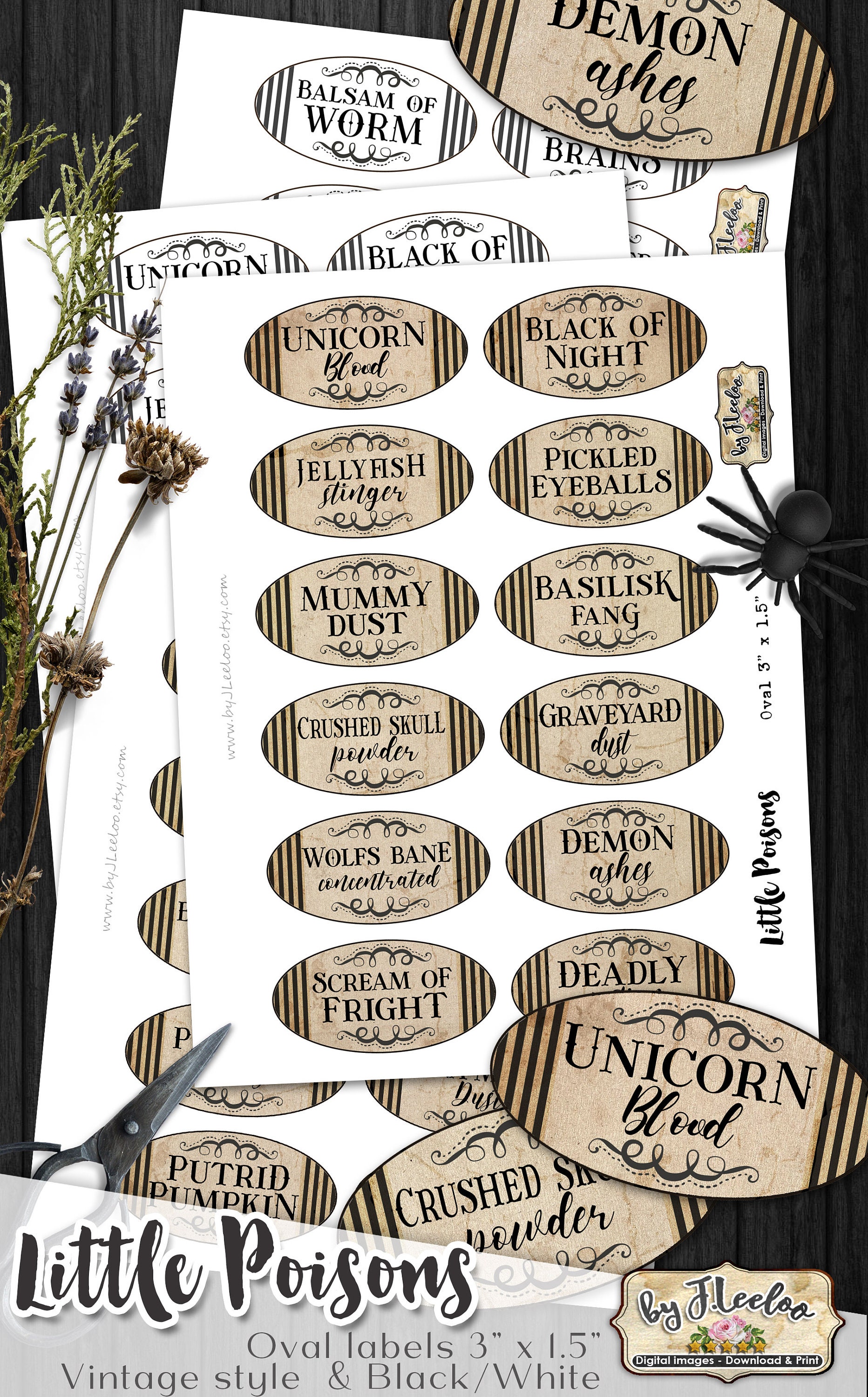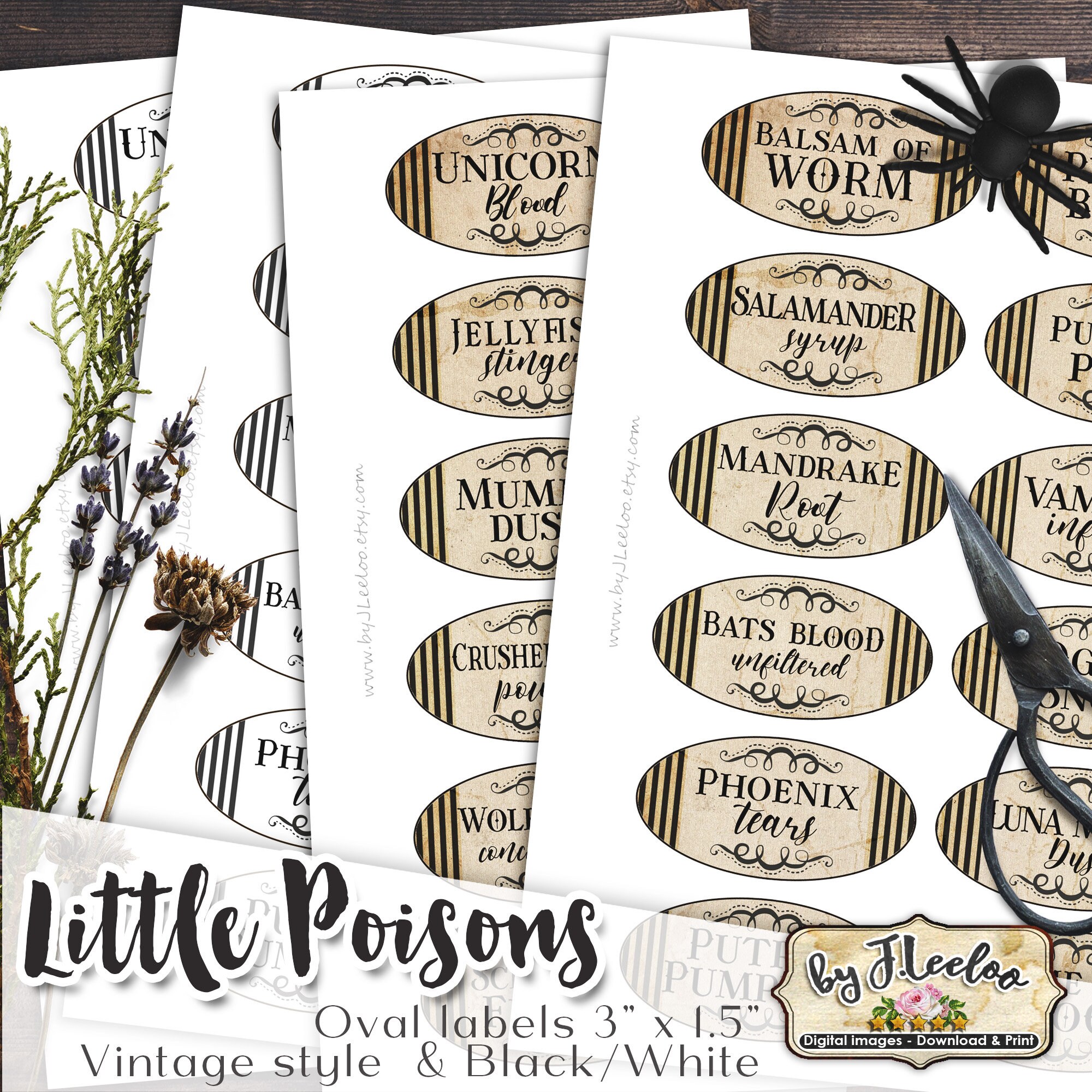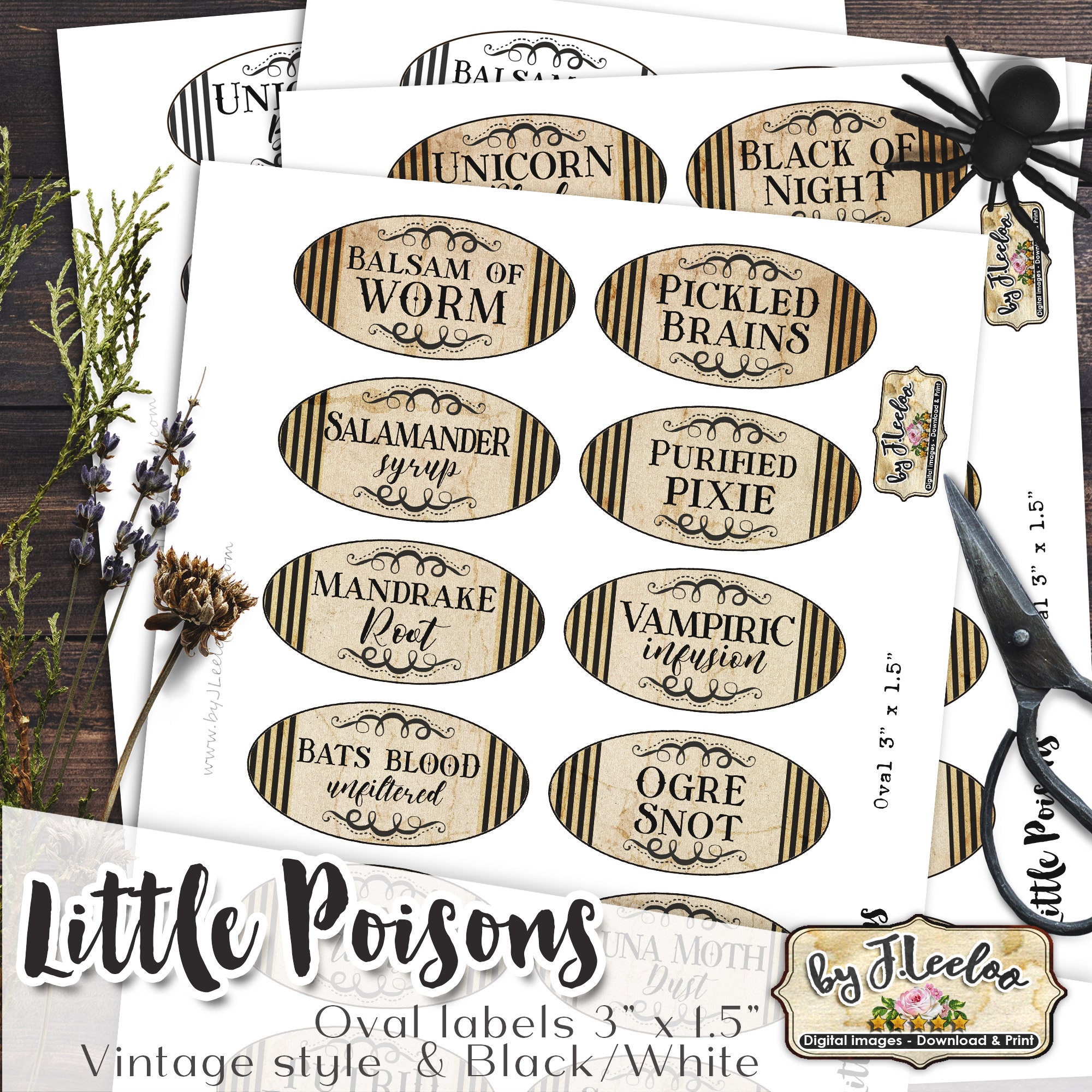 LITTLE POISONS vintage jar labels apothecary Witch Halloween bottle junk journal stickers potion poison labels Digital Download