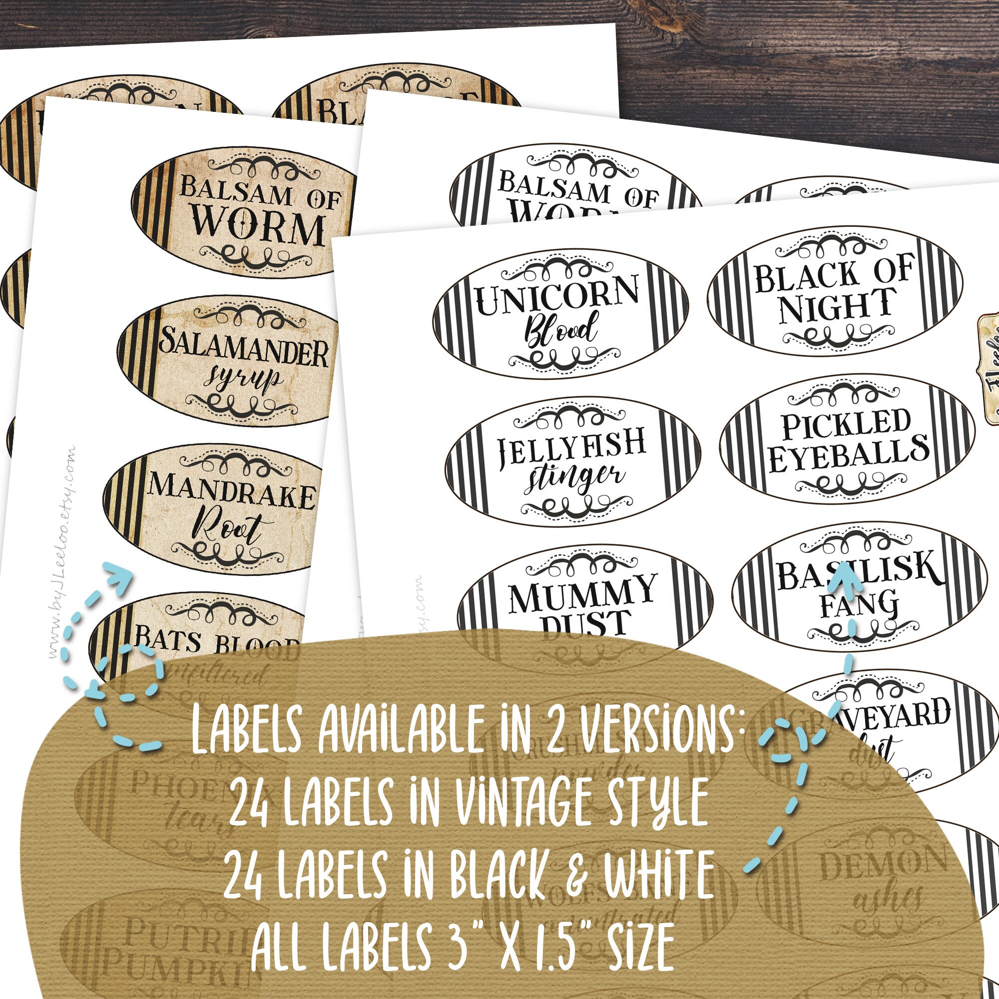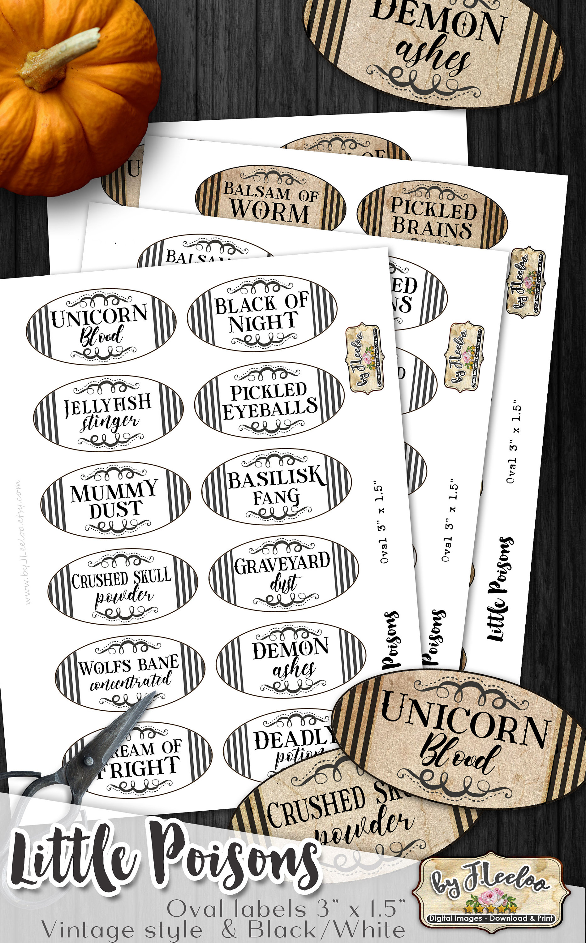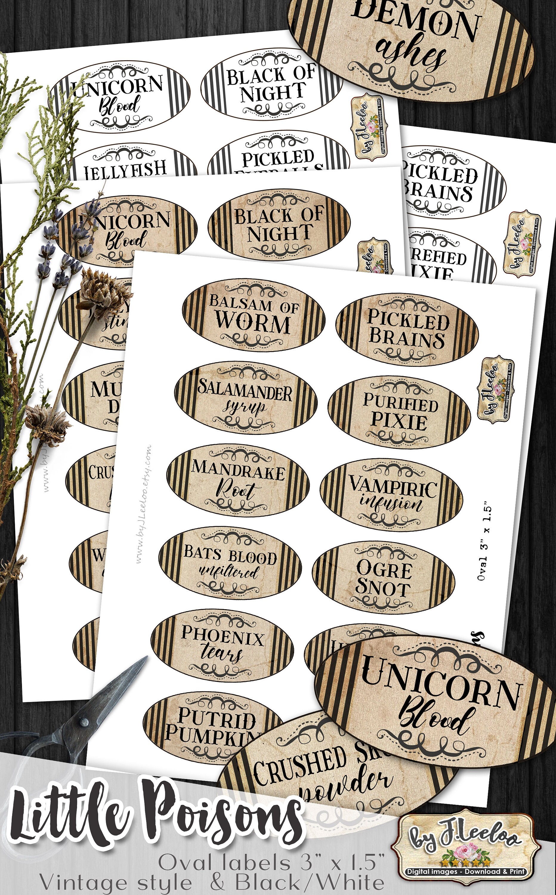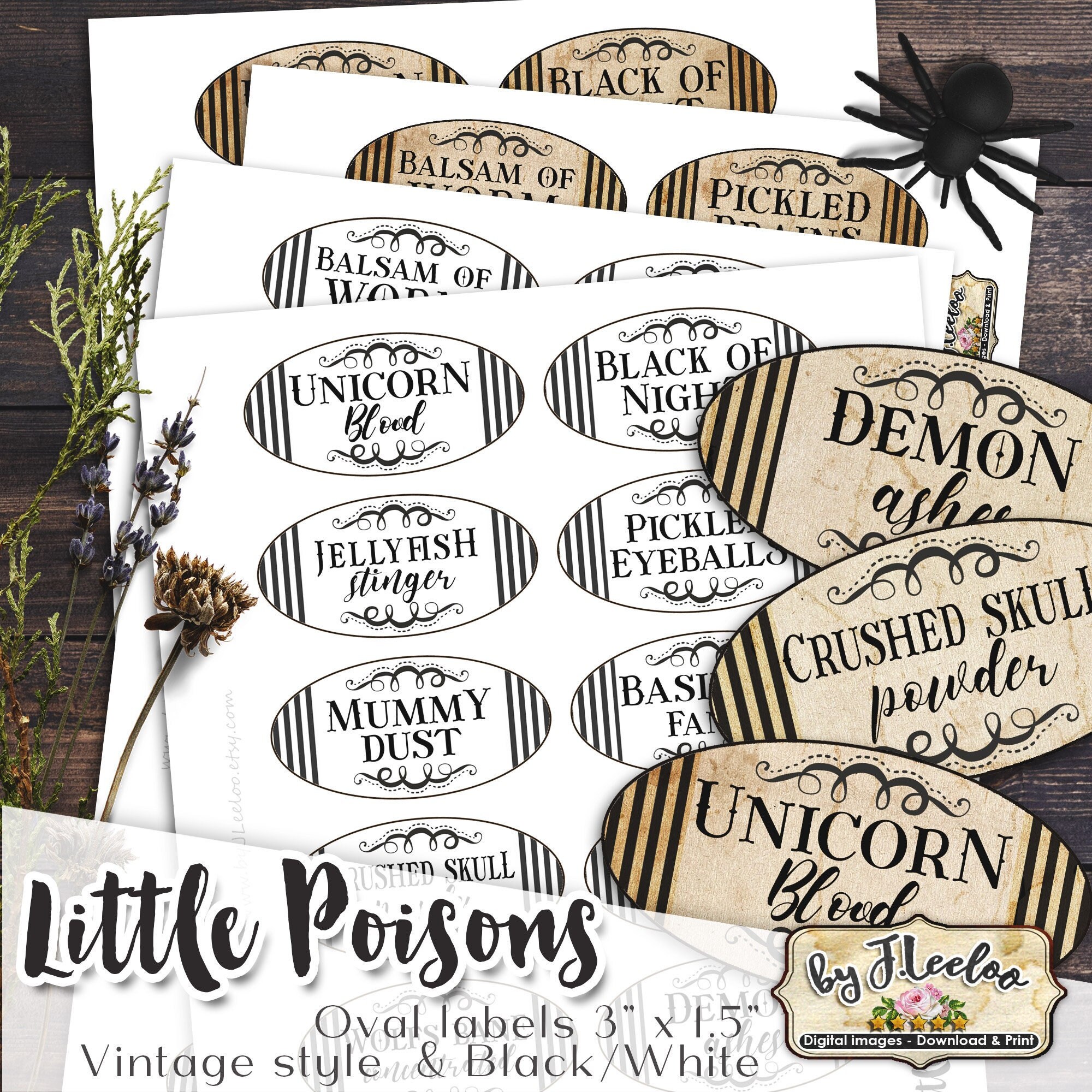 LITTLE POISONS vintage jar labels apothecary Witch Halloween bottle junk journal stickers potion poison labels Digital Download