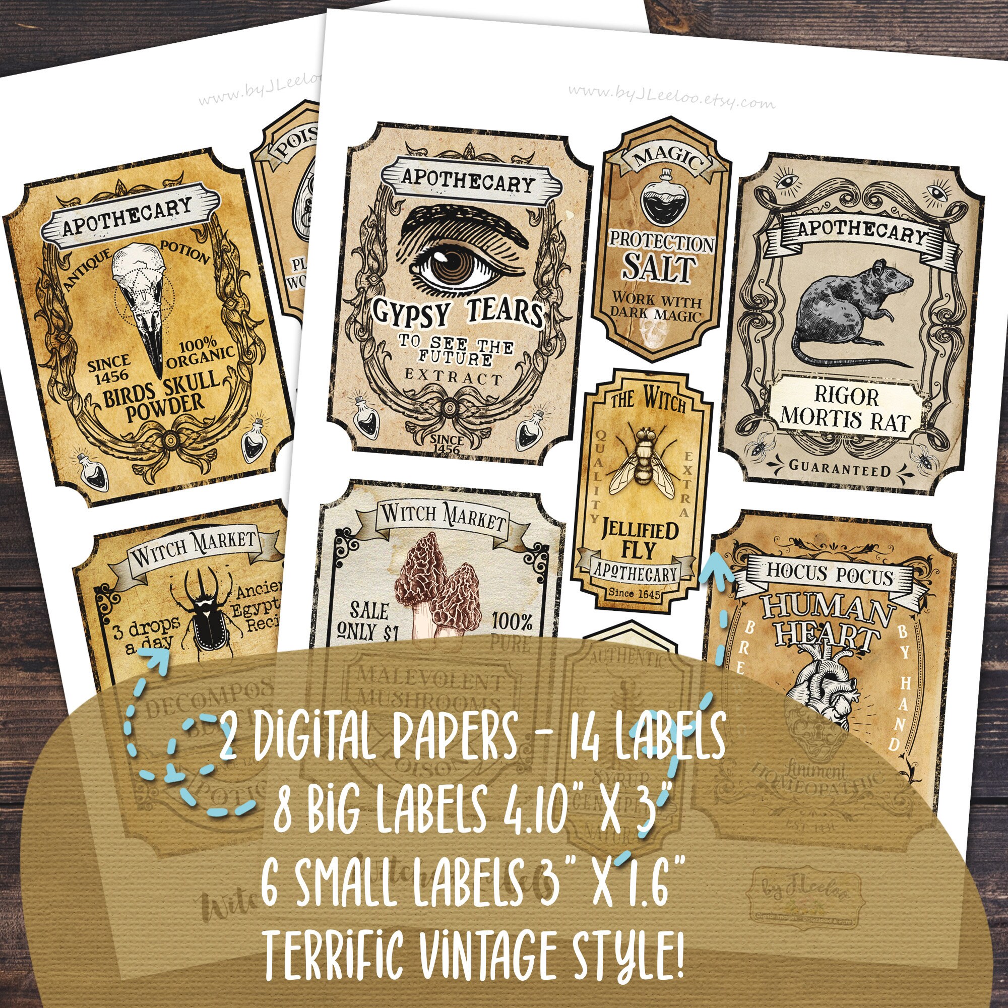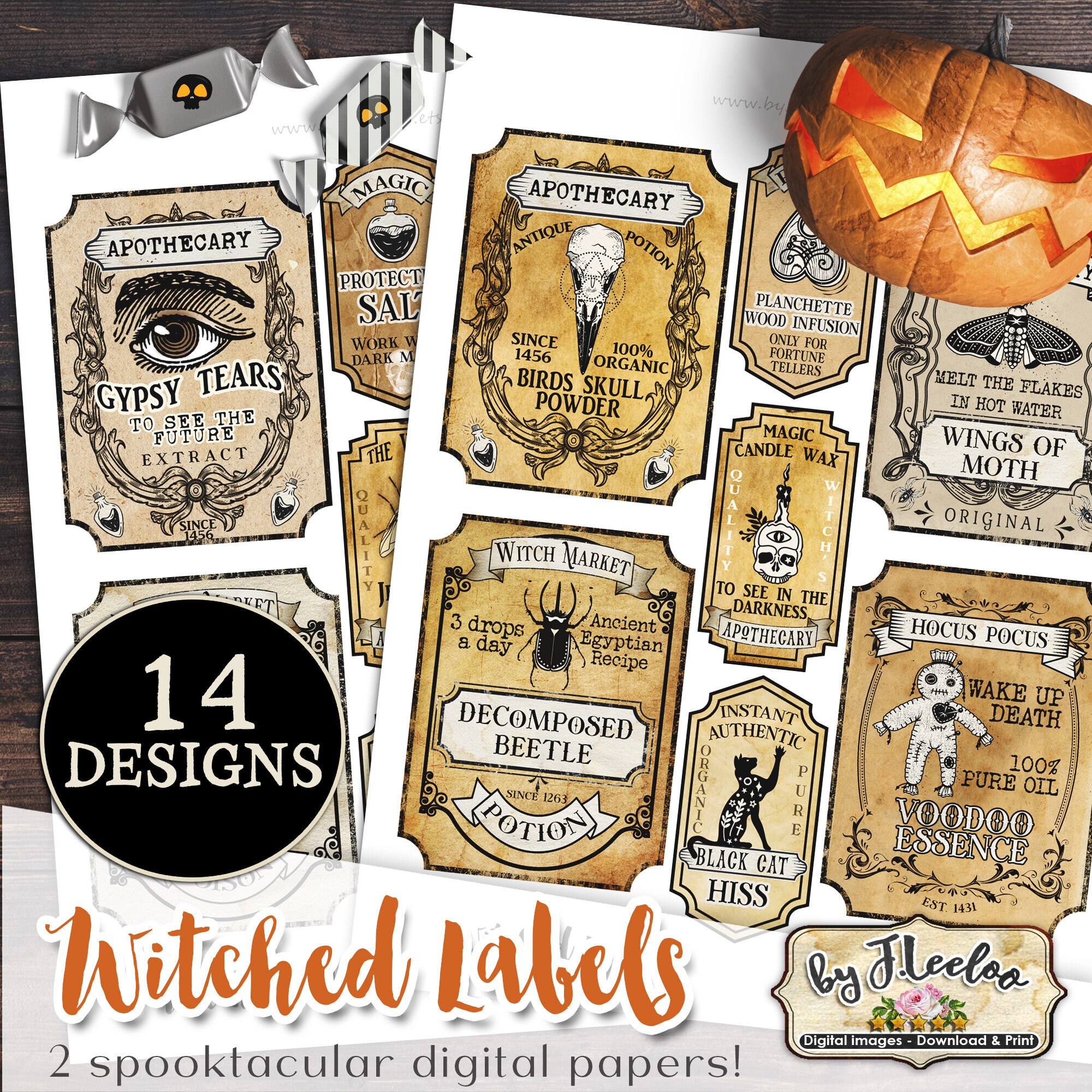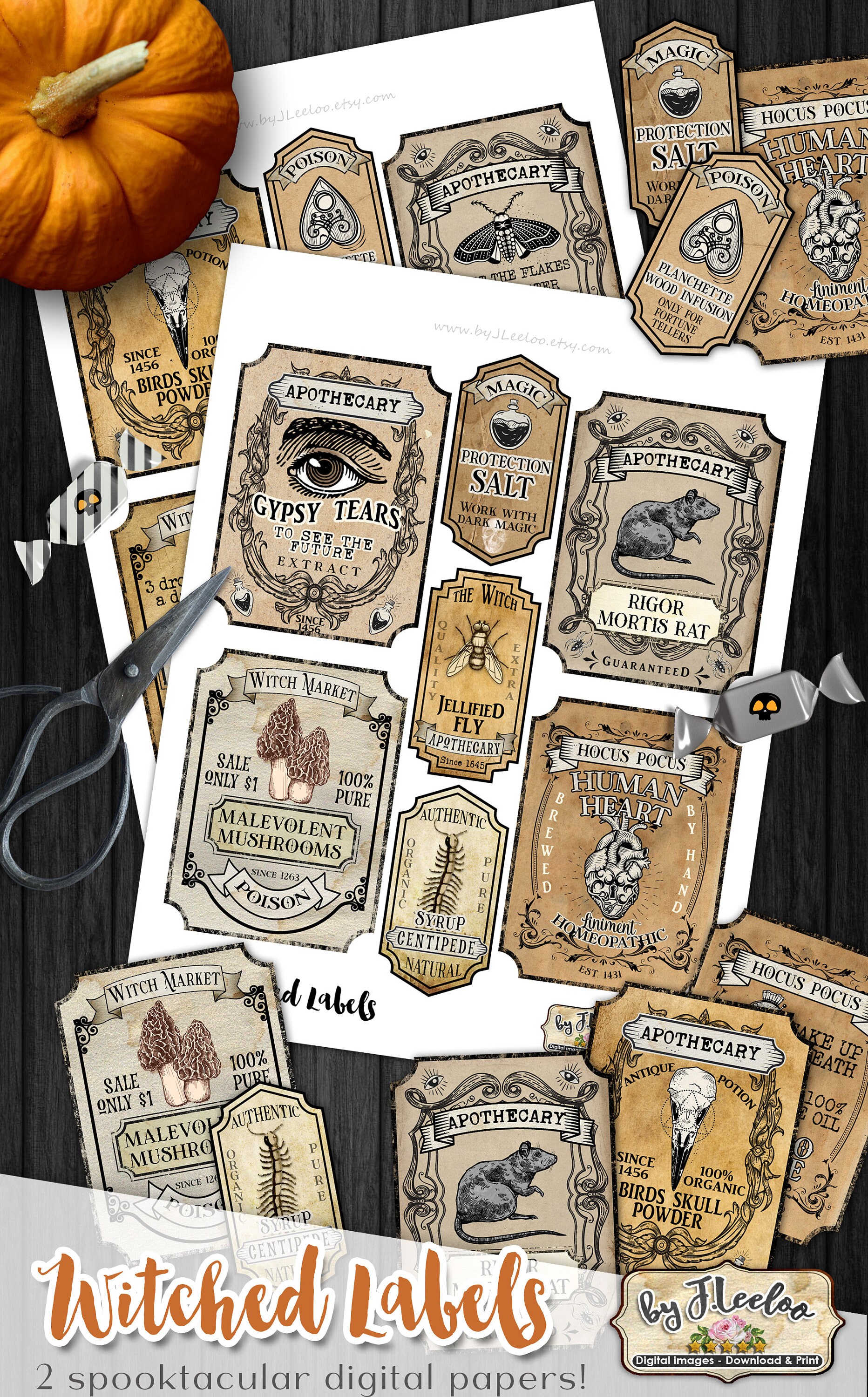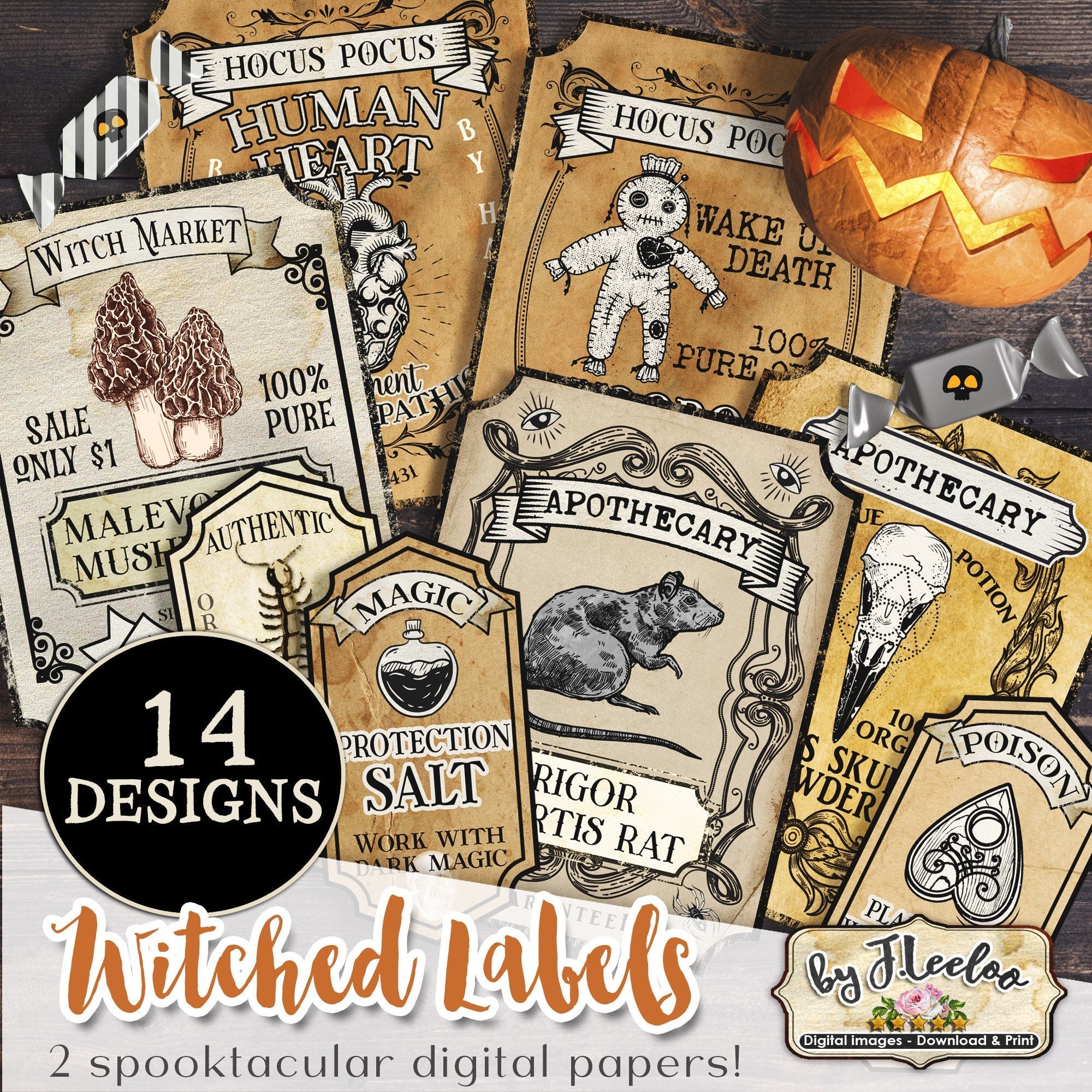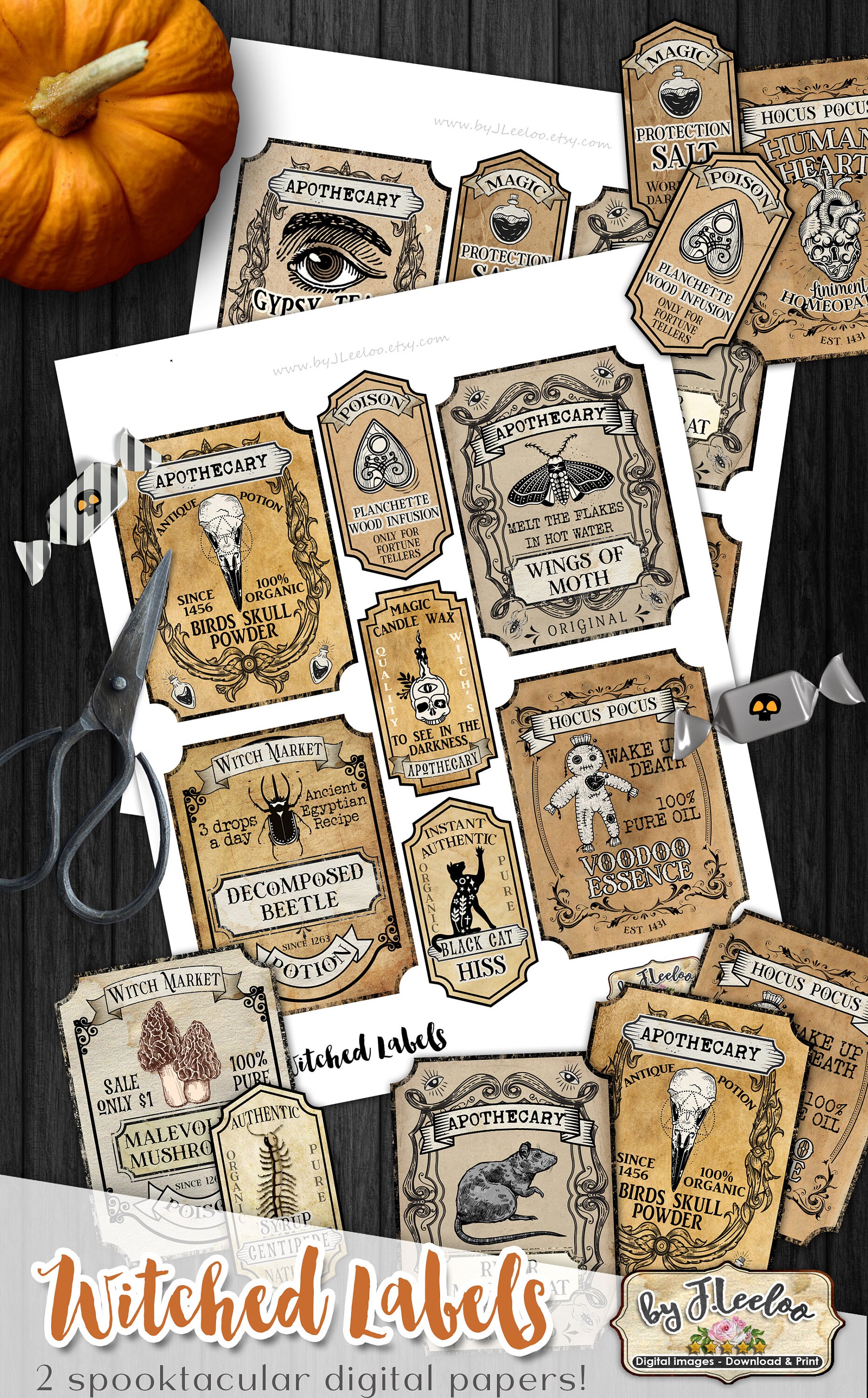 WITCHED LABELS printable Apothecary bottle Potion & Poison Halloween instant download Gothic digital collage sheet ready to print for your bottle jar, invitation, jewelry making, stickers, scrapbook and your others craft project.