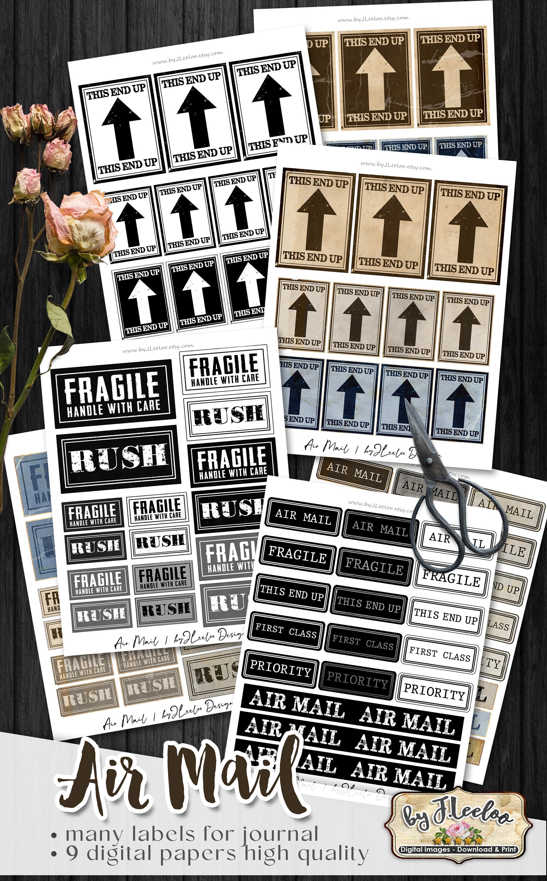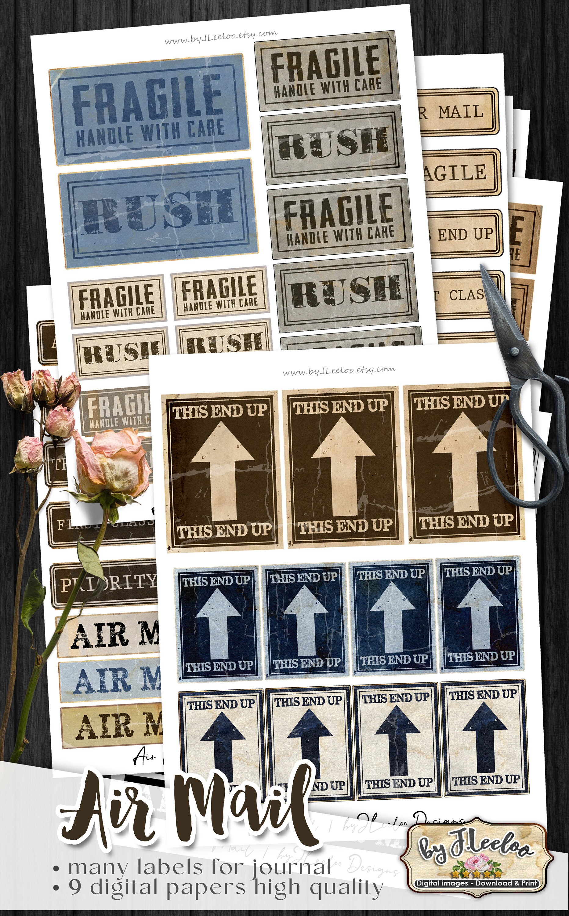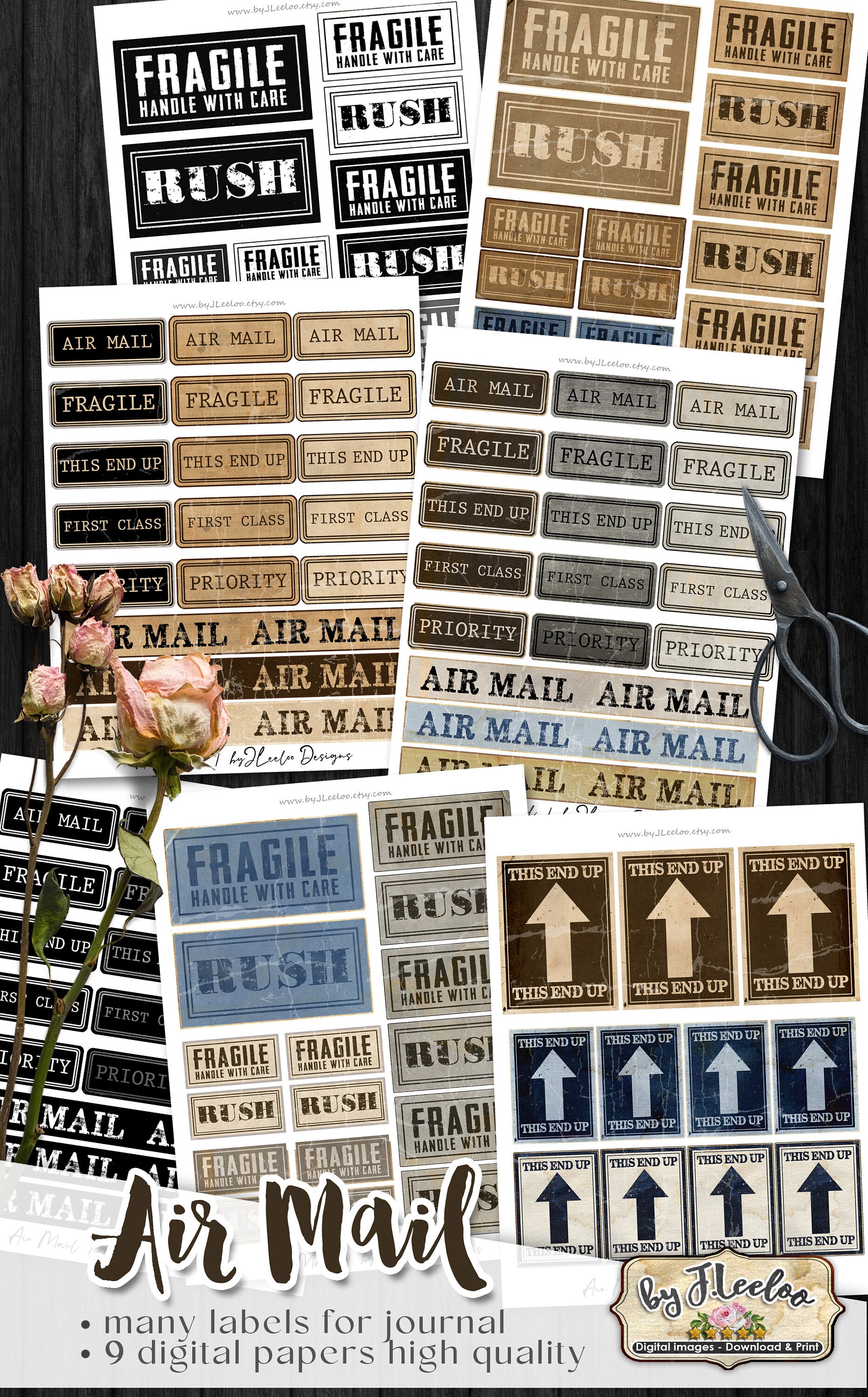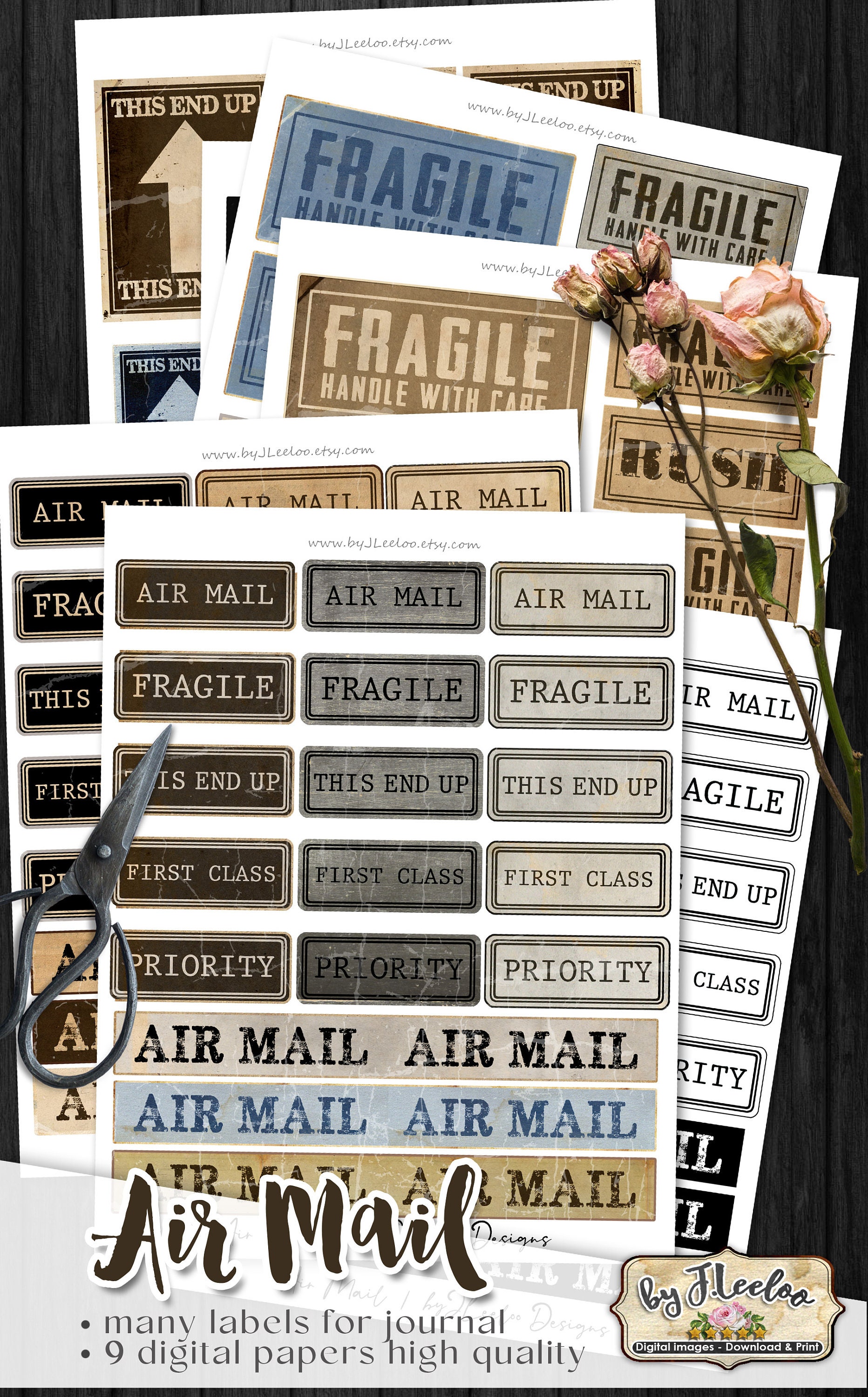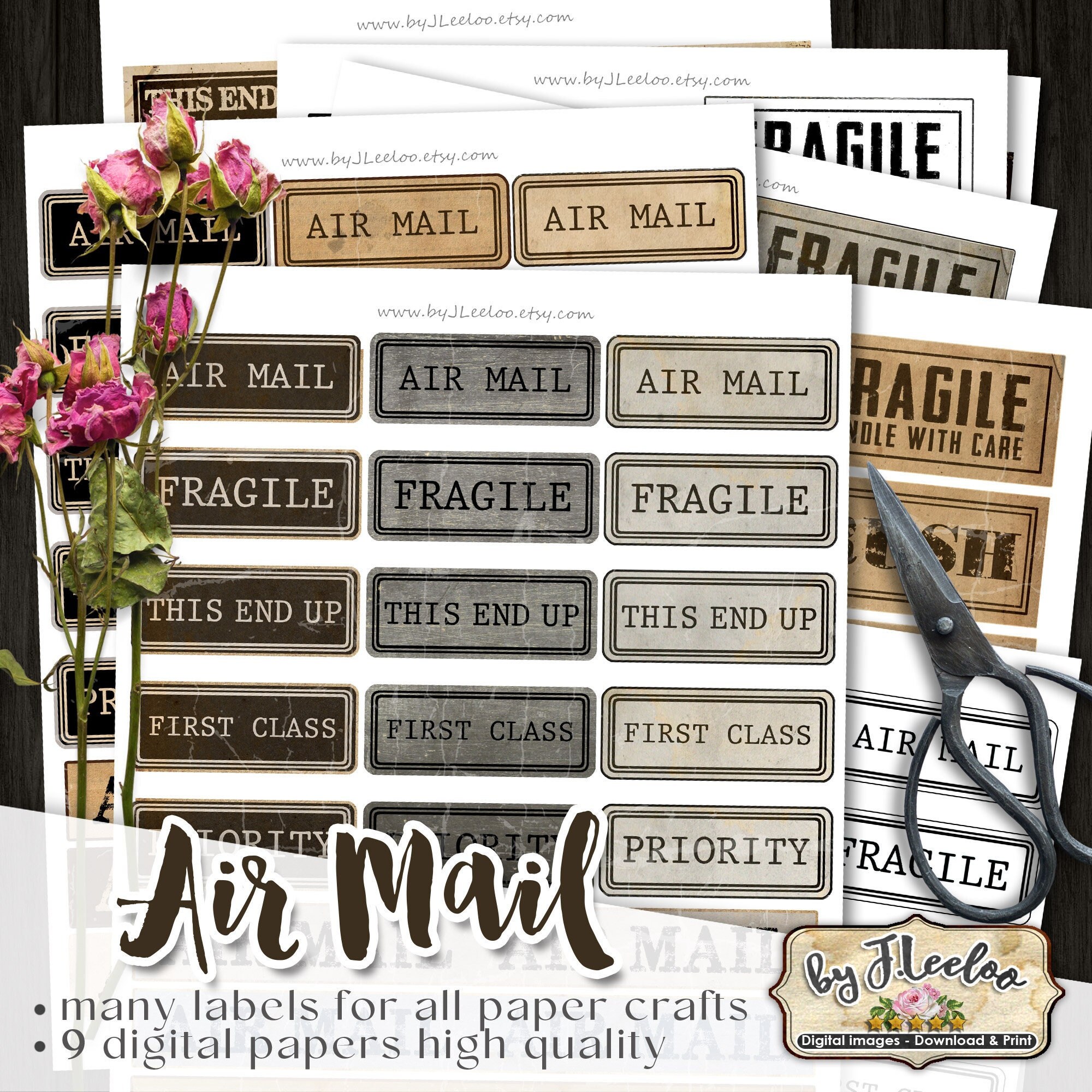 AIR MAIL labels - steampunk vintage images instant download ready to print for your junk journal, scrapbook and your others craft project.
