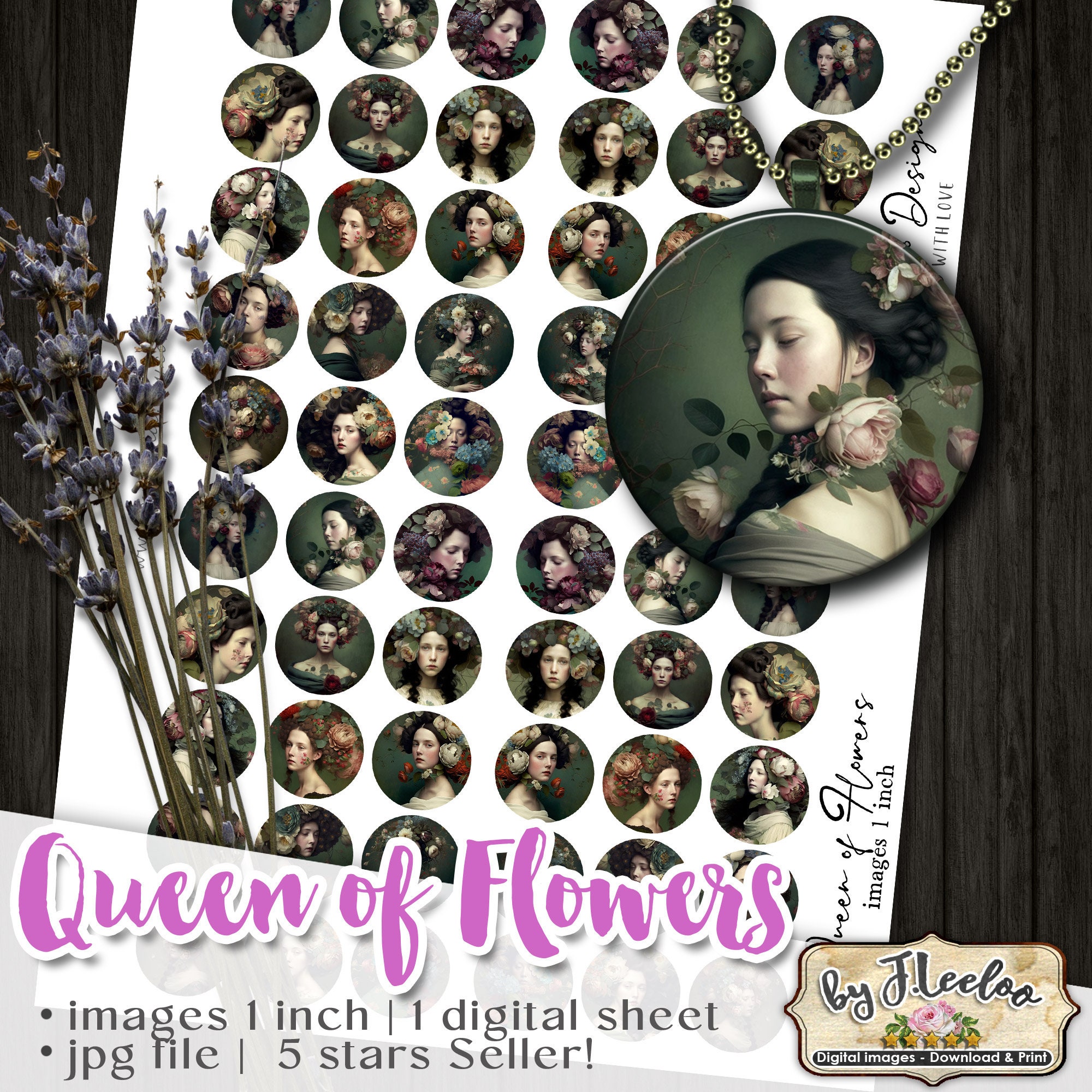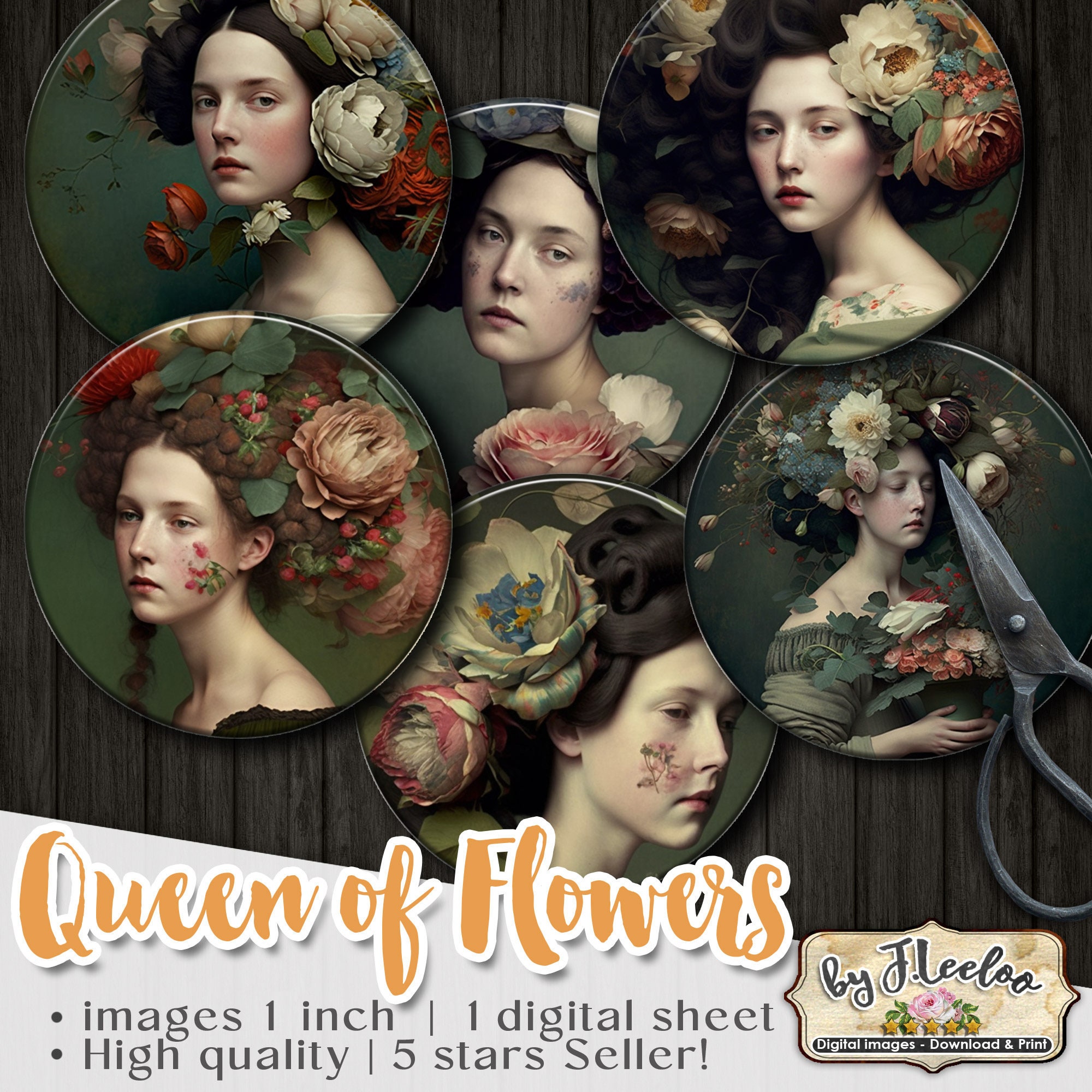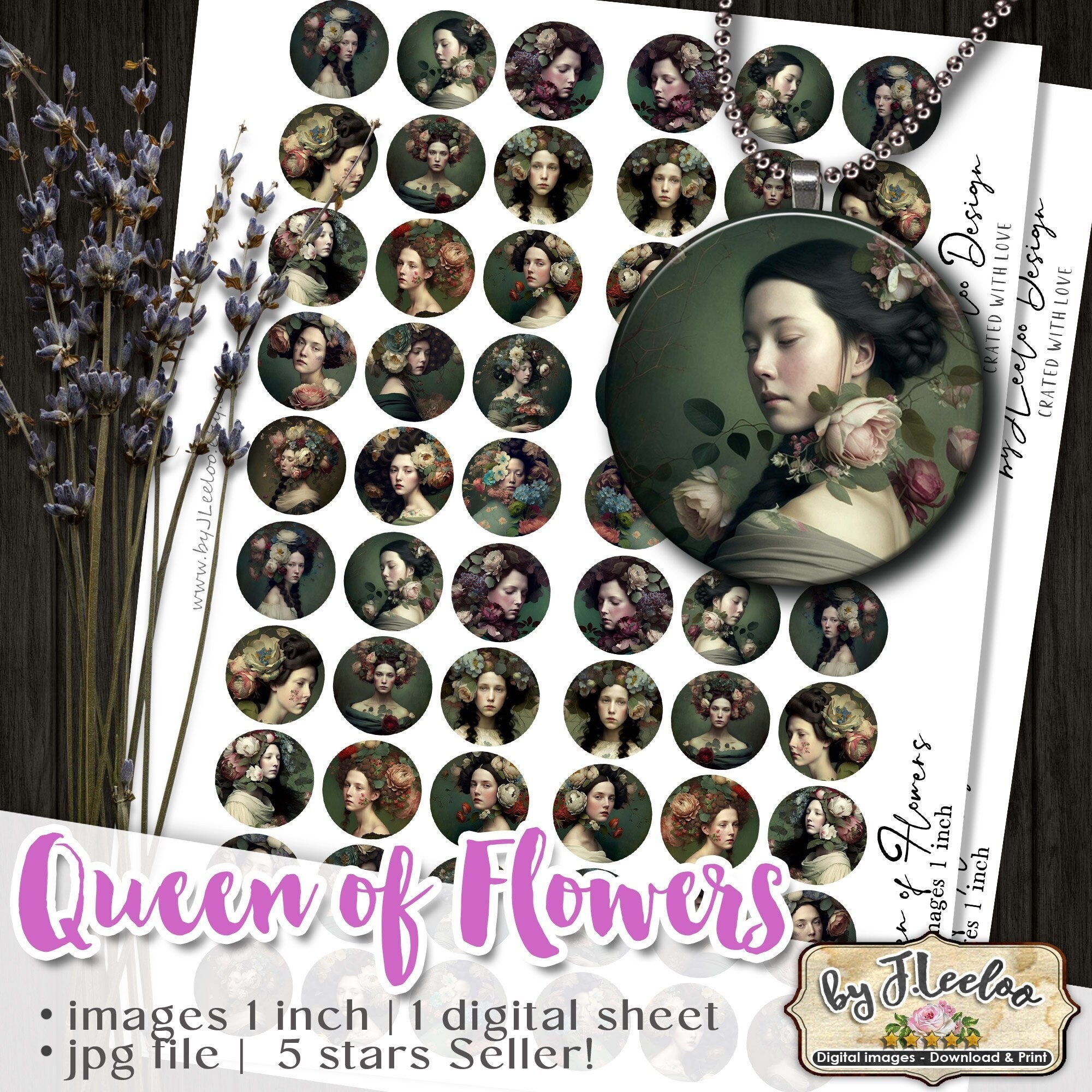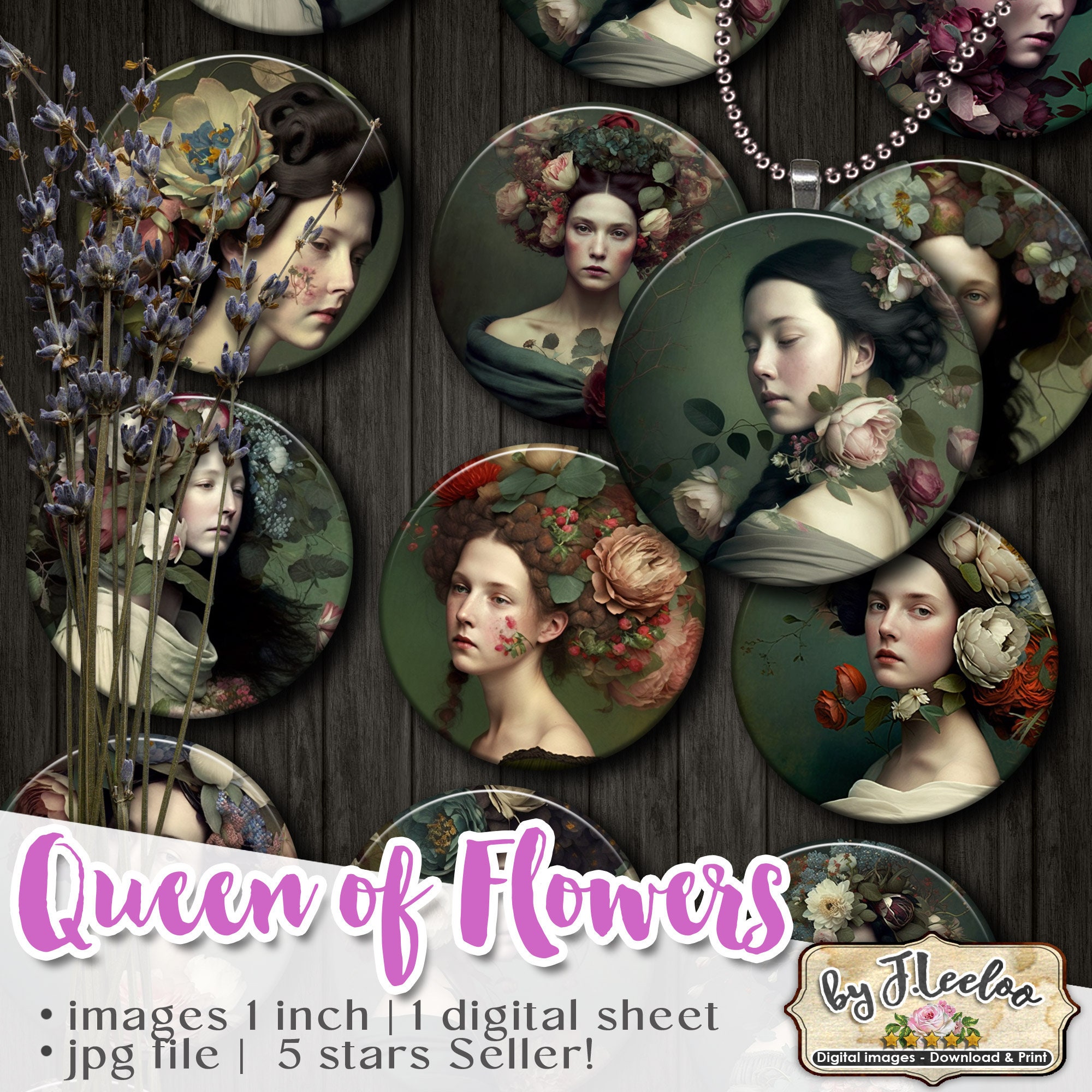 QUEEN of FLOWERS round pendants | women with romantic flowers | chic french portrait | vintage botanical portraits | flowery spring qu548