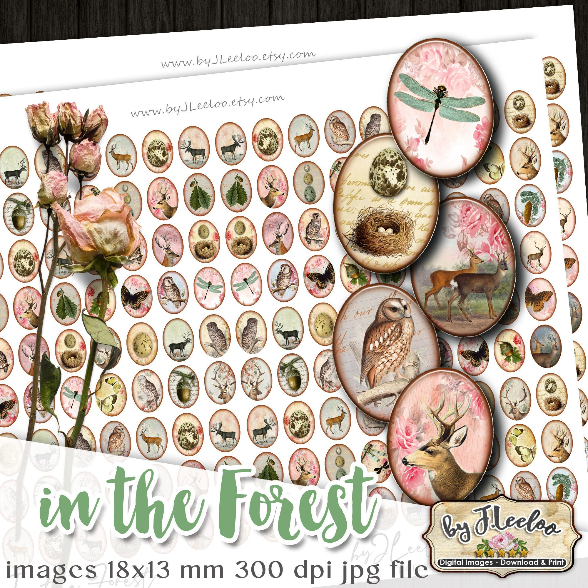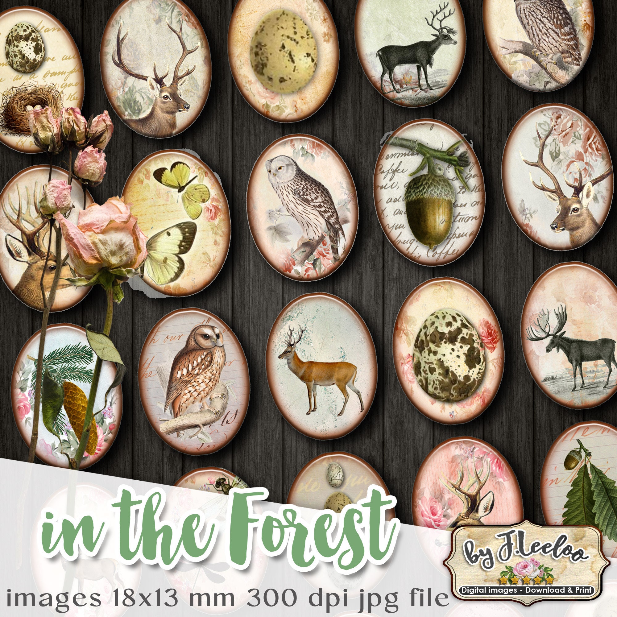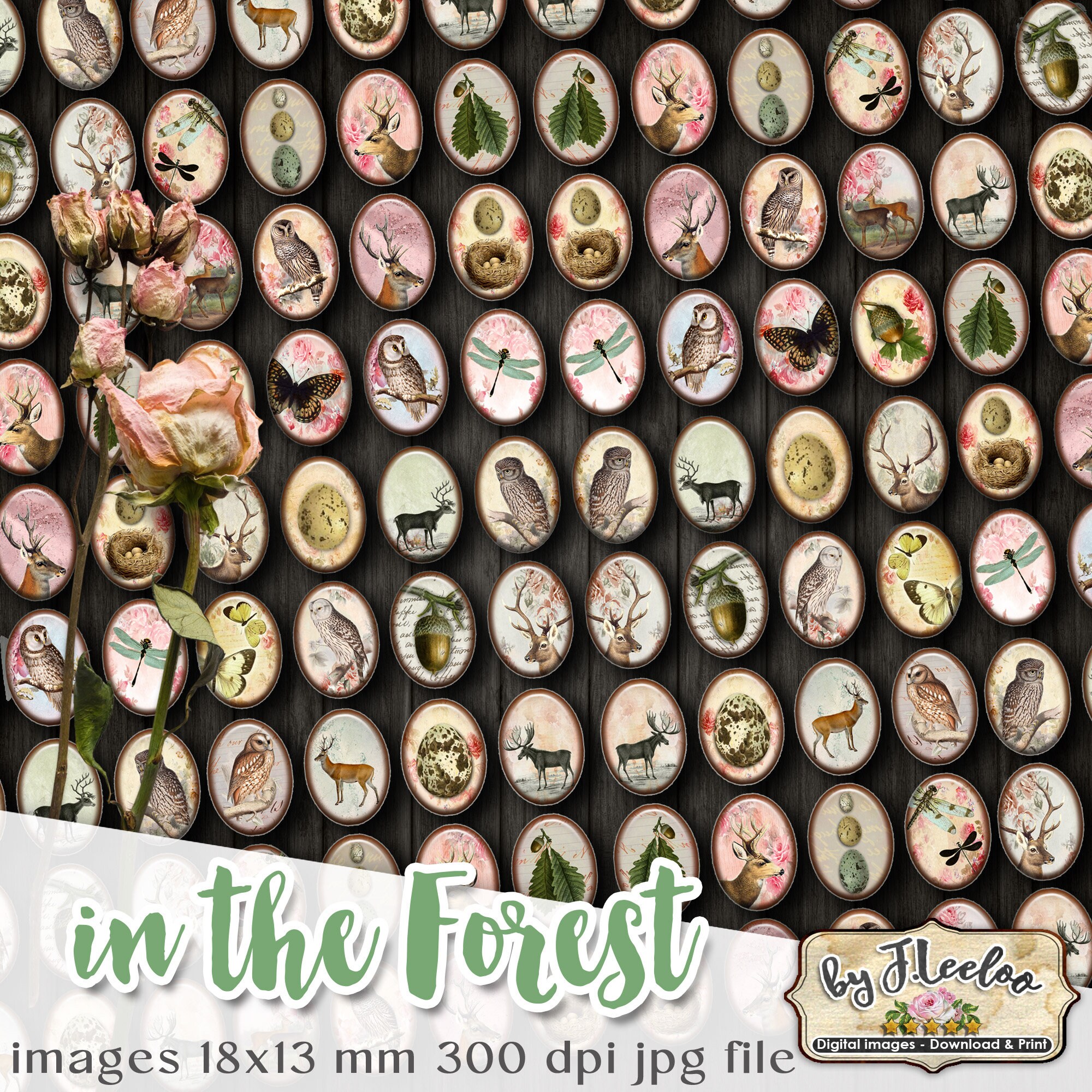 IN THE FOREST Instant Download - Digital collage sheets - Oval printable images for jewelry, glass cabochons, bottle caps, stickers, hang tags and all your artwork.