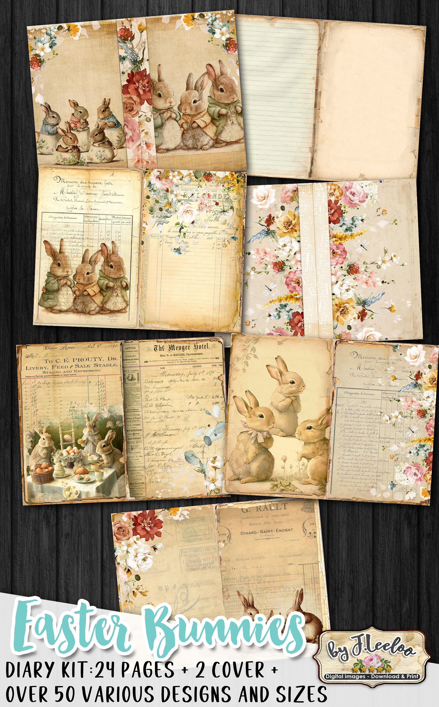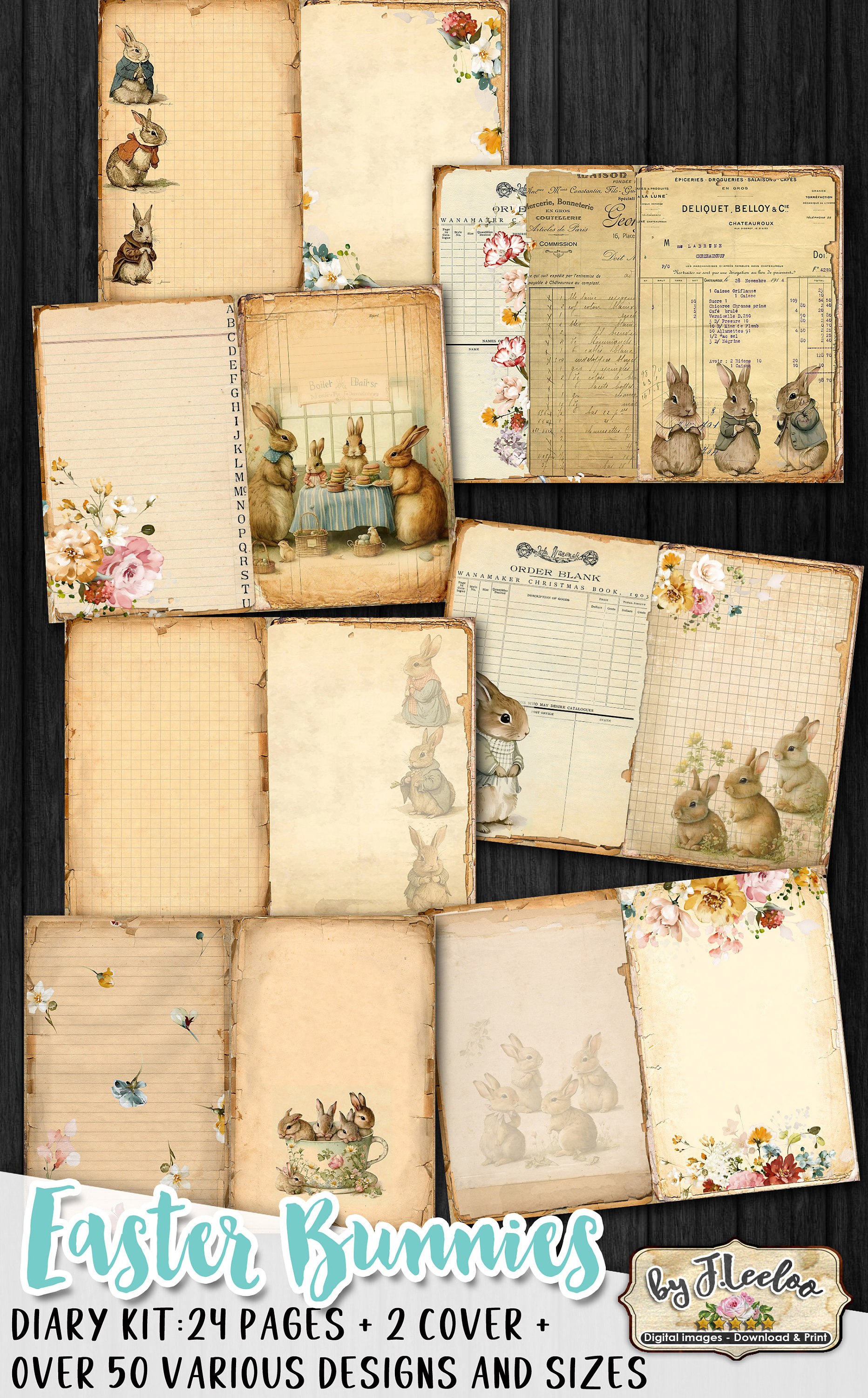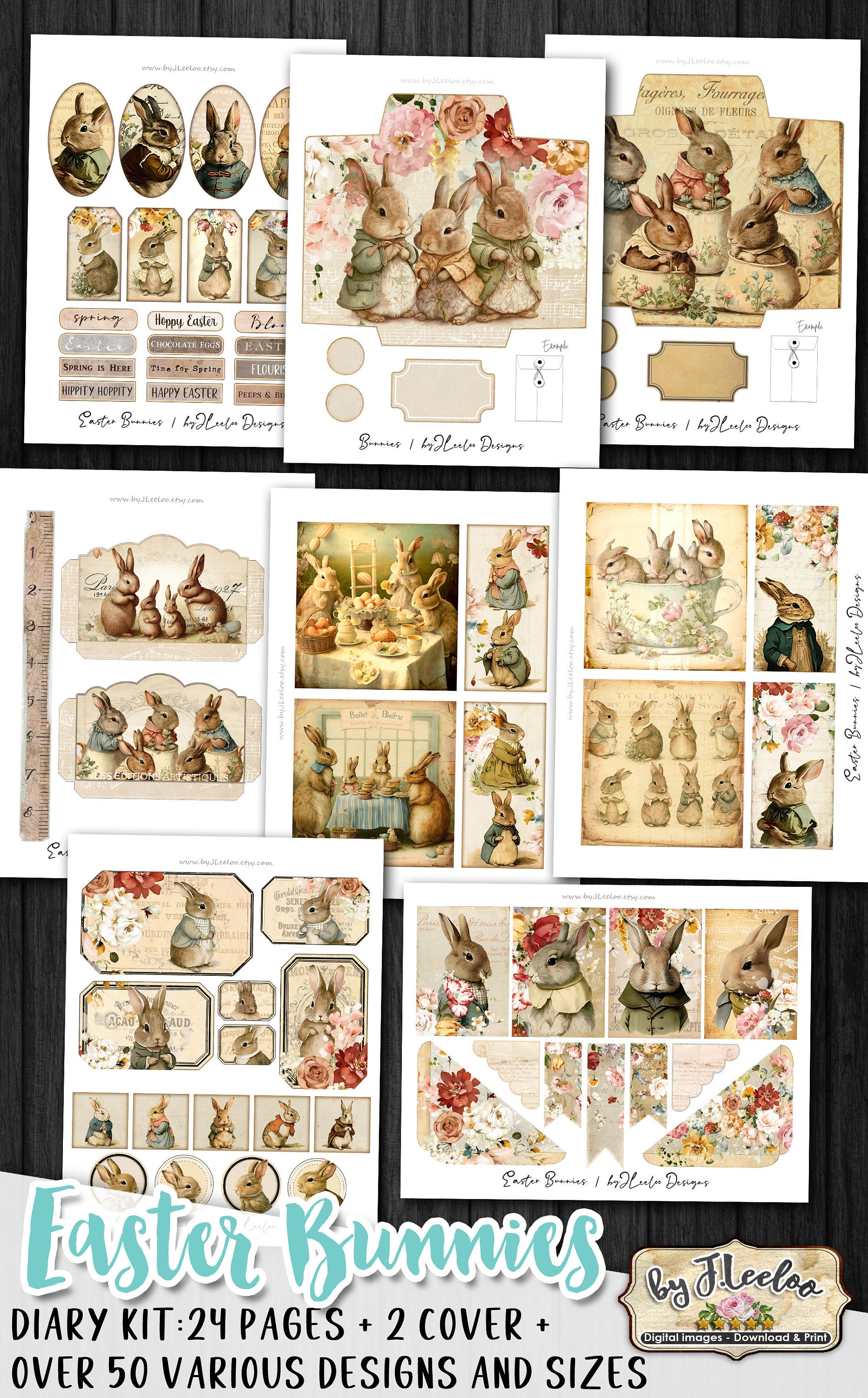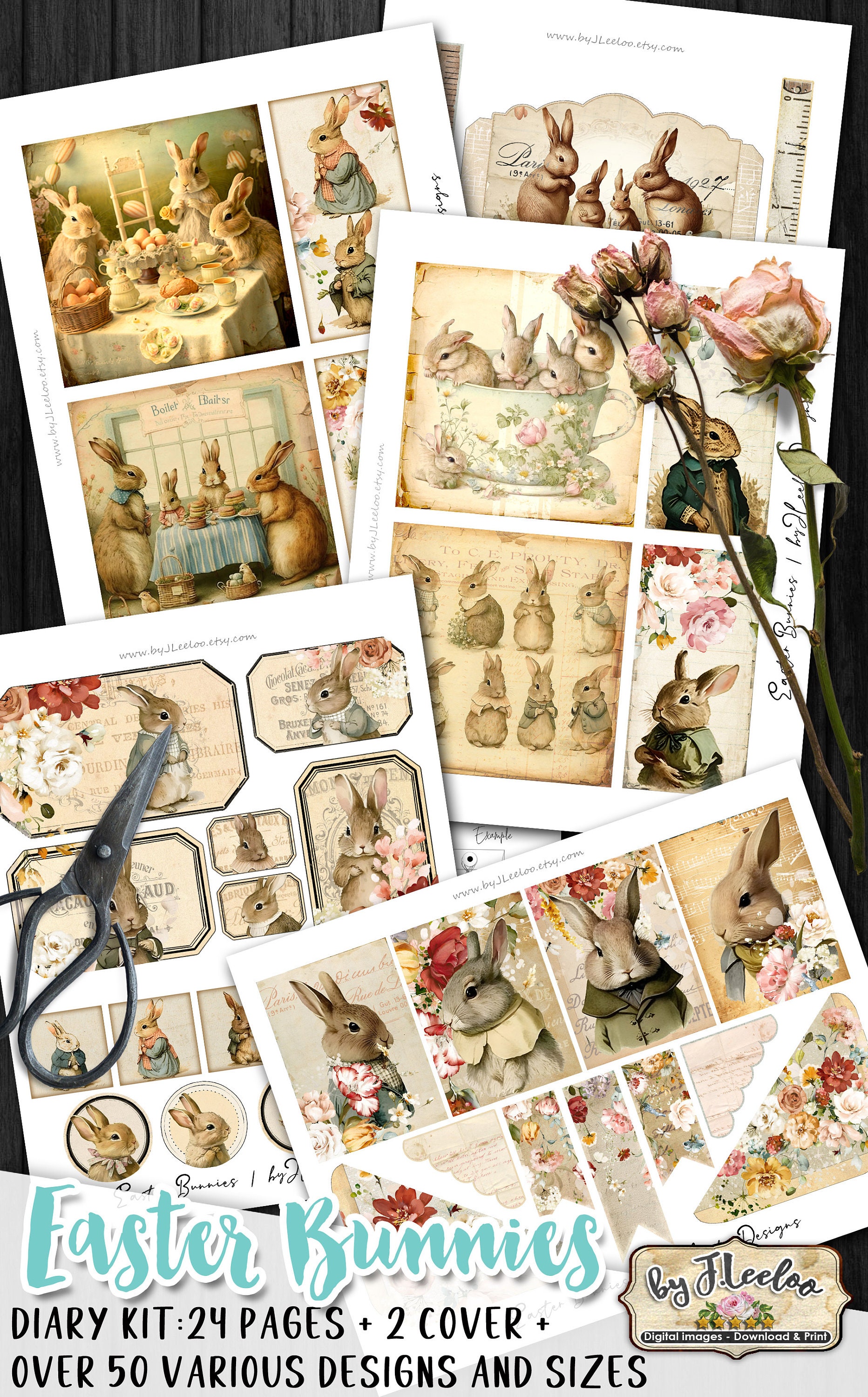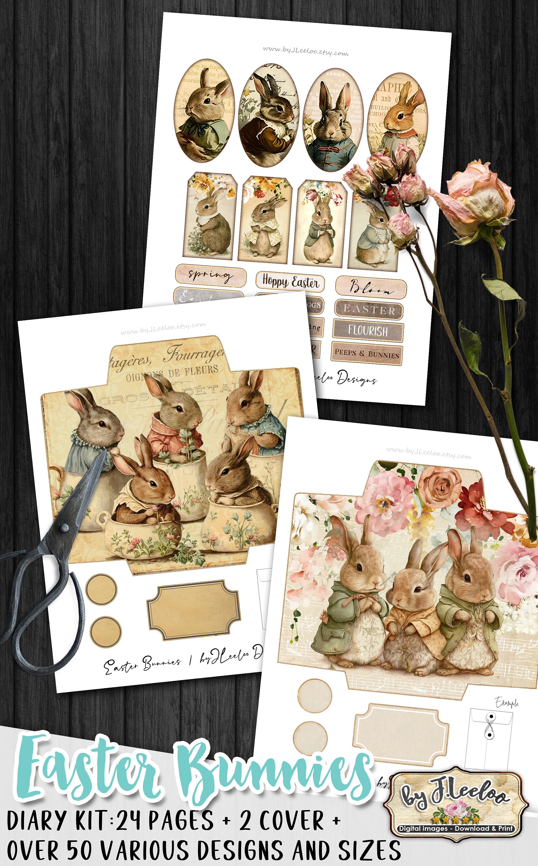 Easter Bunnies | Junk journal Kit | Easter shabby | chic French | Beatrix Potter style | Digital download | Peter Rabbit | scrapbooking | ephemera printable