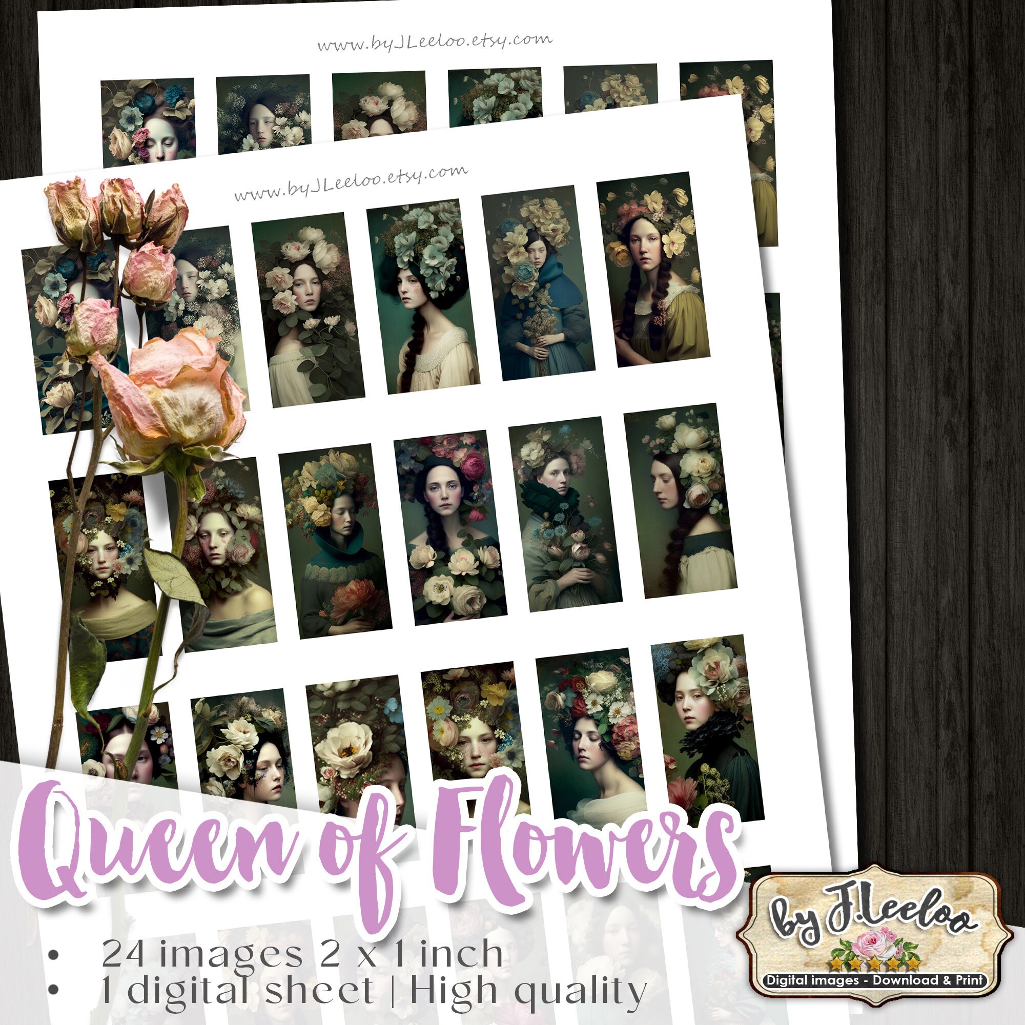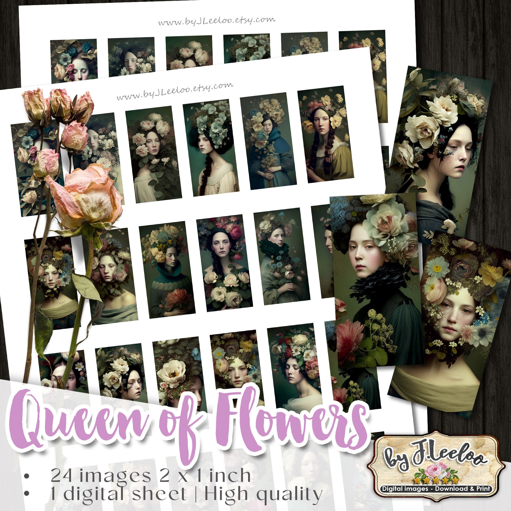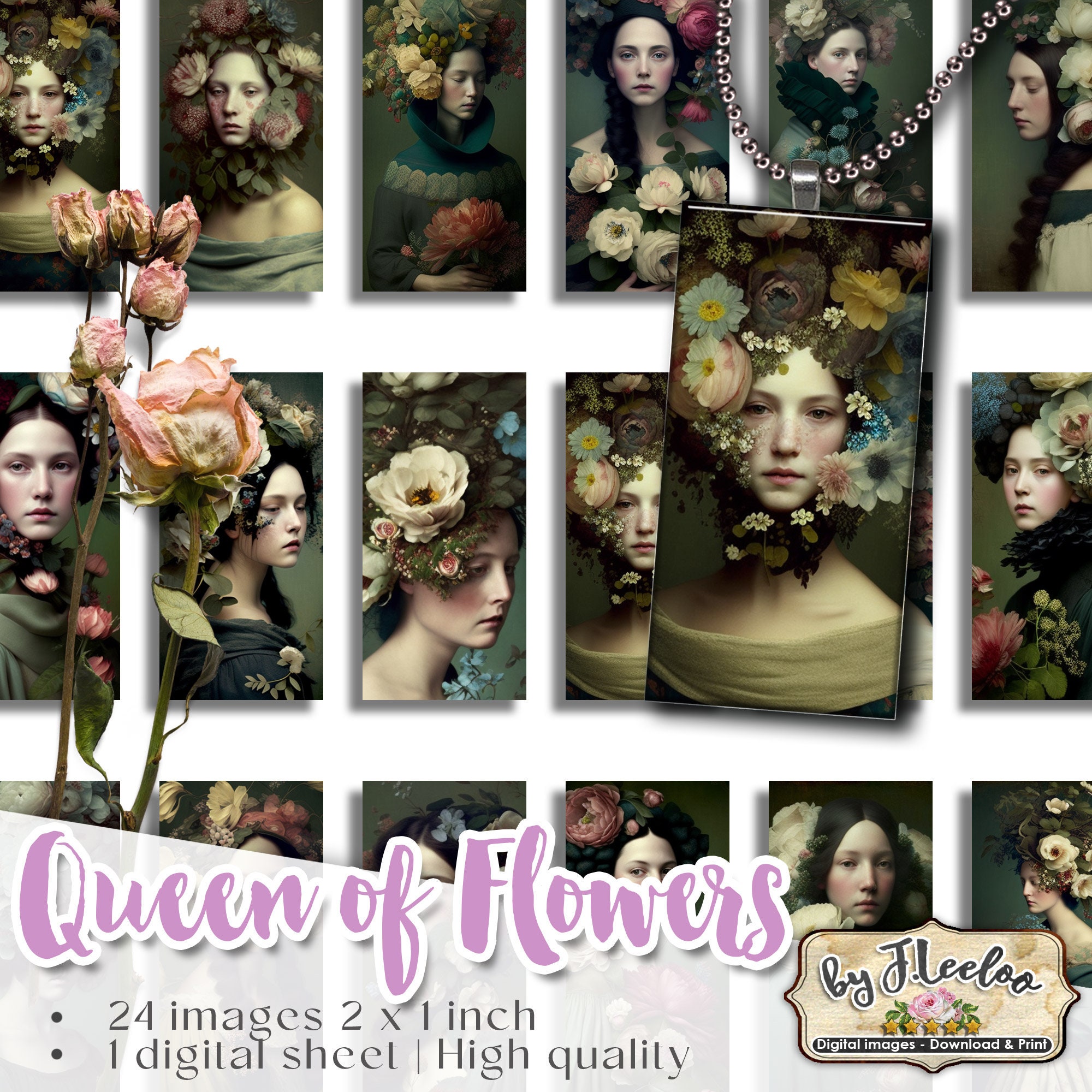 QUEEN of FLOWERS printable domino pendants | sheet digital images | romantic french | flower chic vintage | instant download.