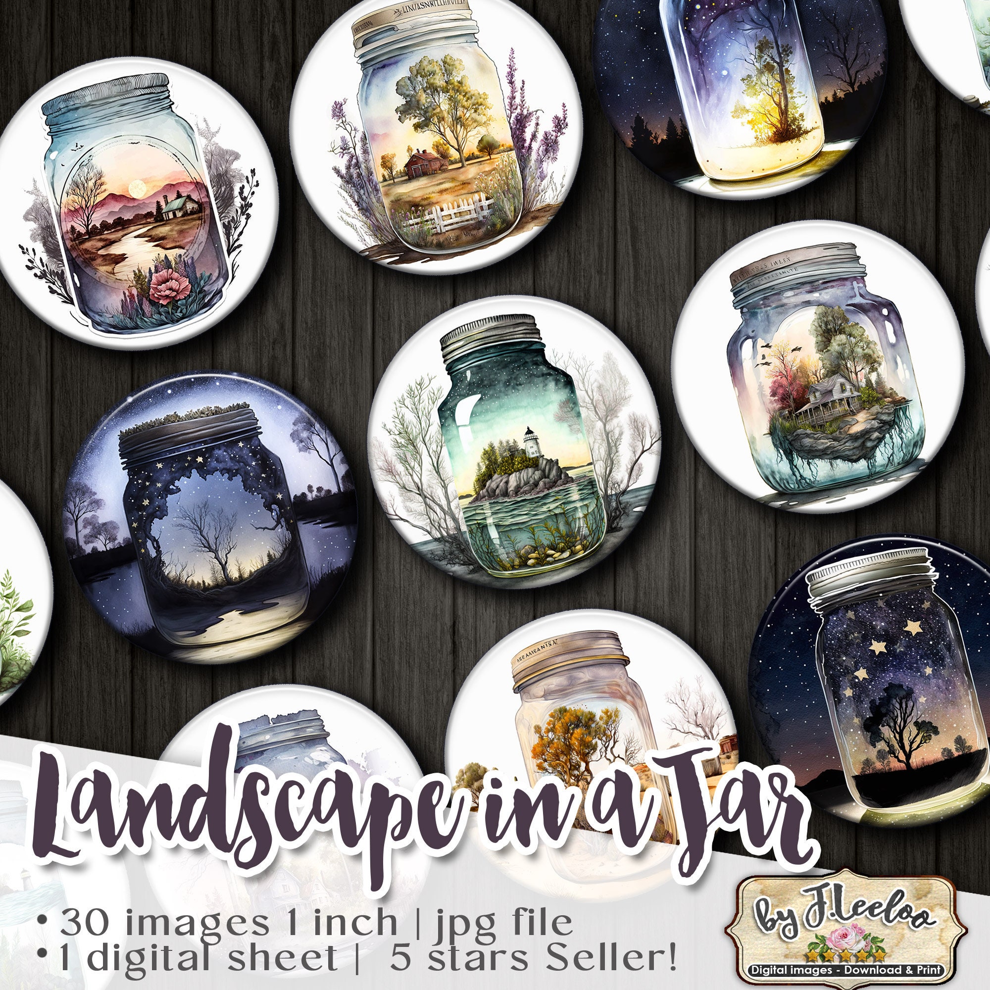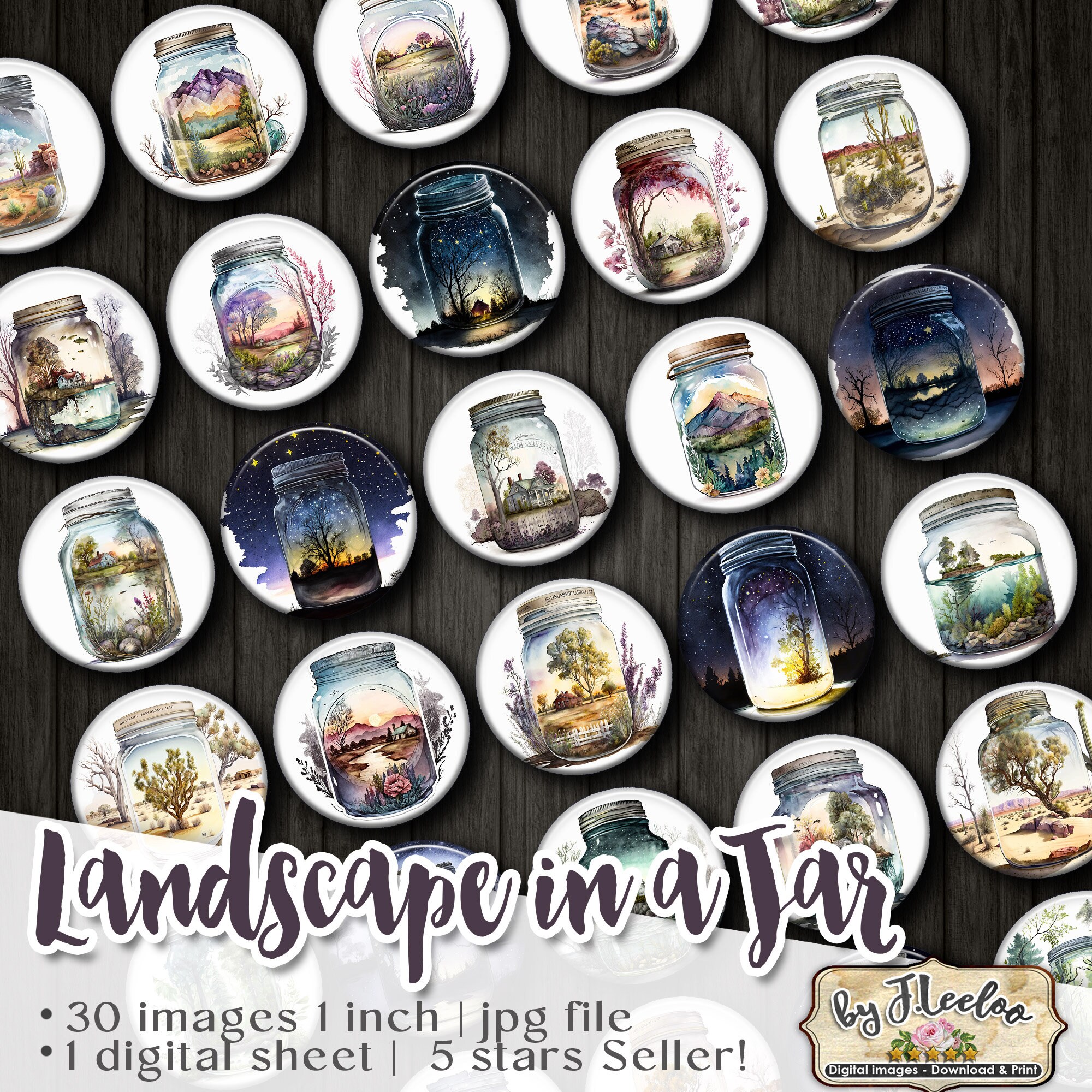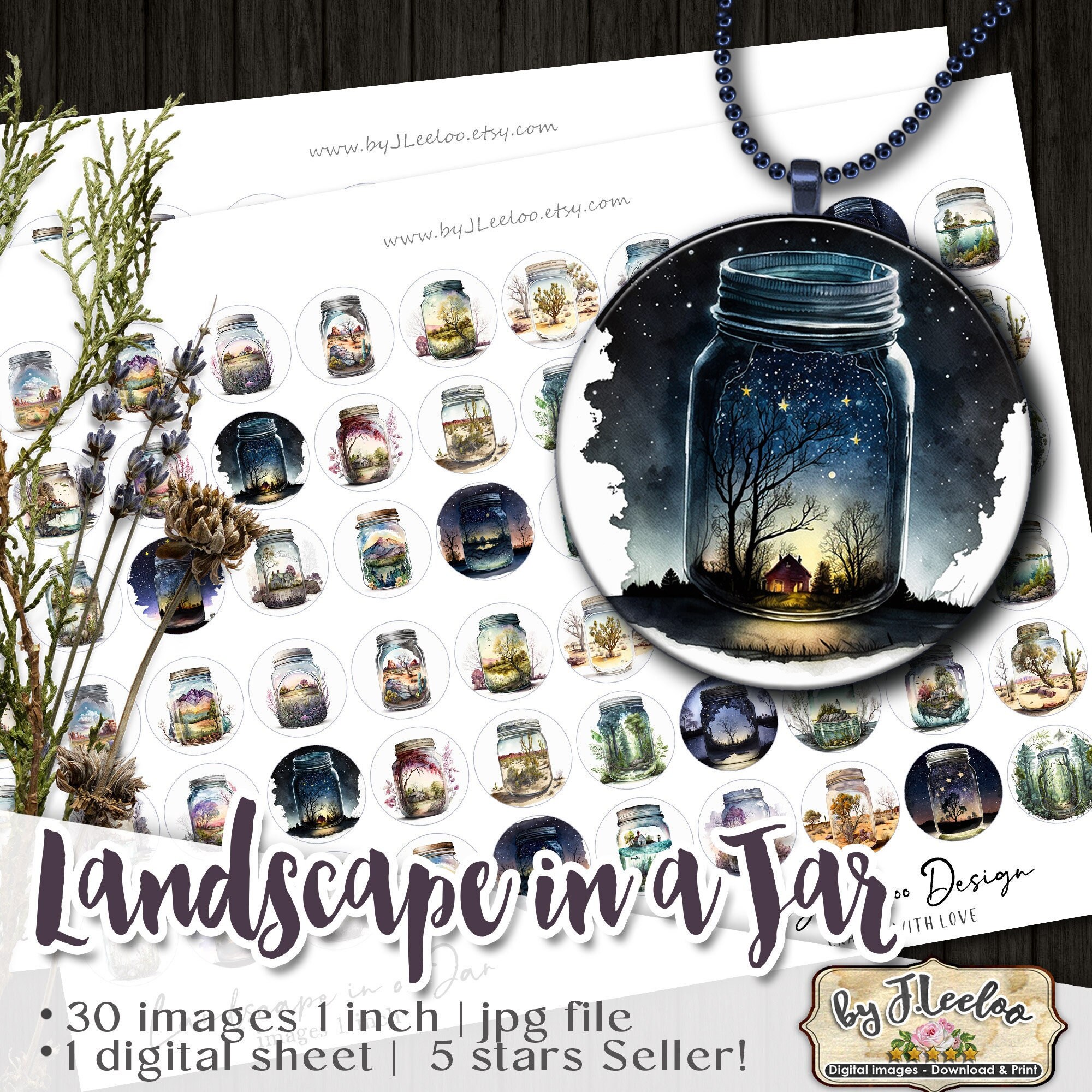 LANDSCAPE in a JAR 1 inch printable | magical places | romantic forest | quiete home | mountain magnets |desert pendant | craft instant download diy tn646