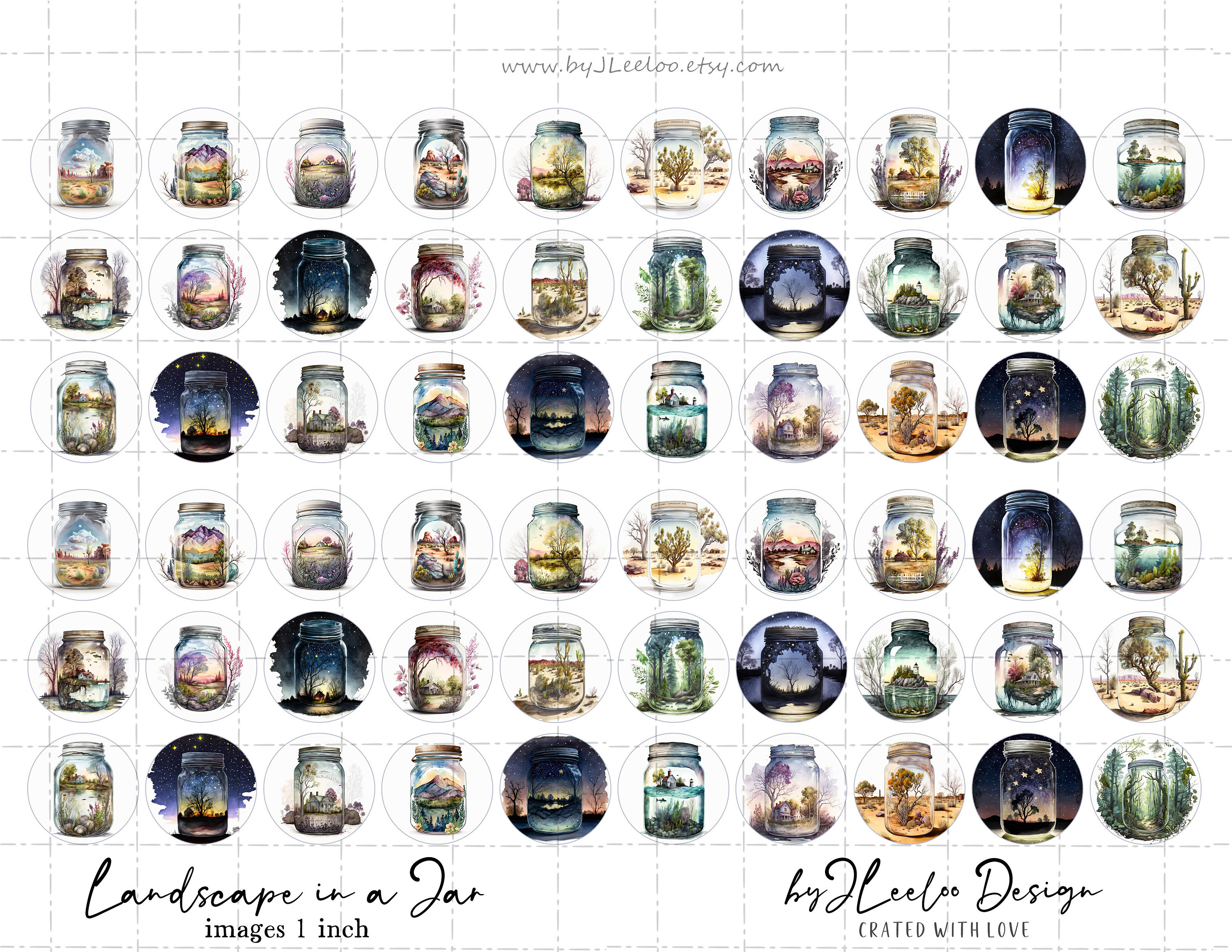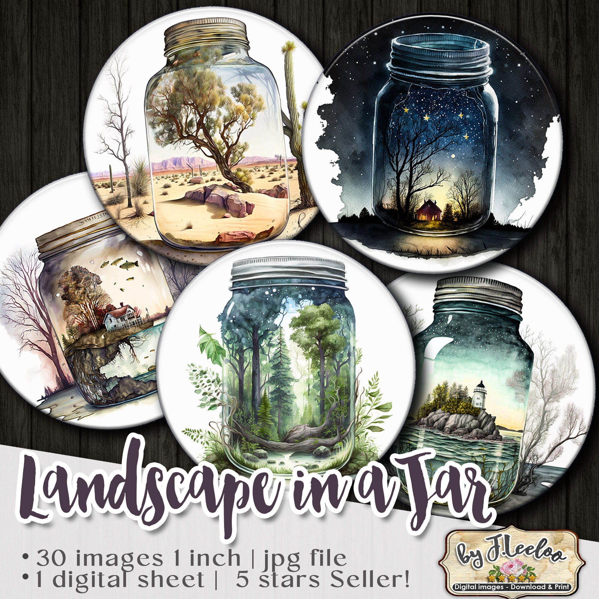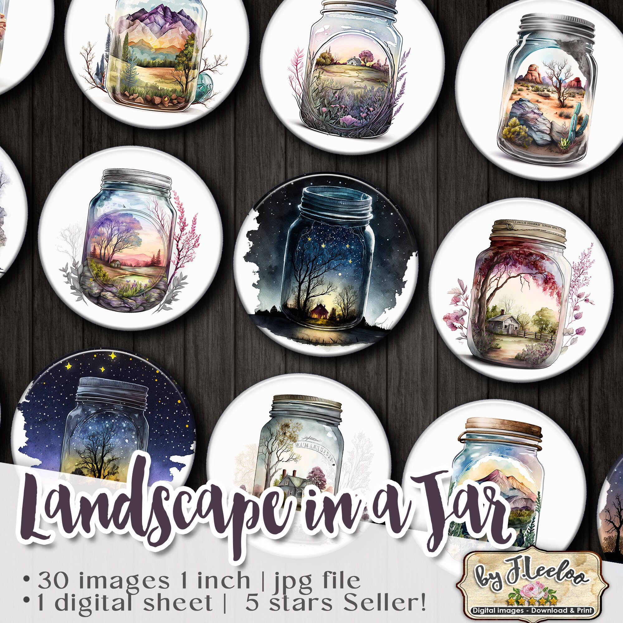 LANDSCAPE in a JAR 1 inch printable | magical places | romantic forest | quiete home | mountain magnets |desert pendant | craft instant download diy tn646