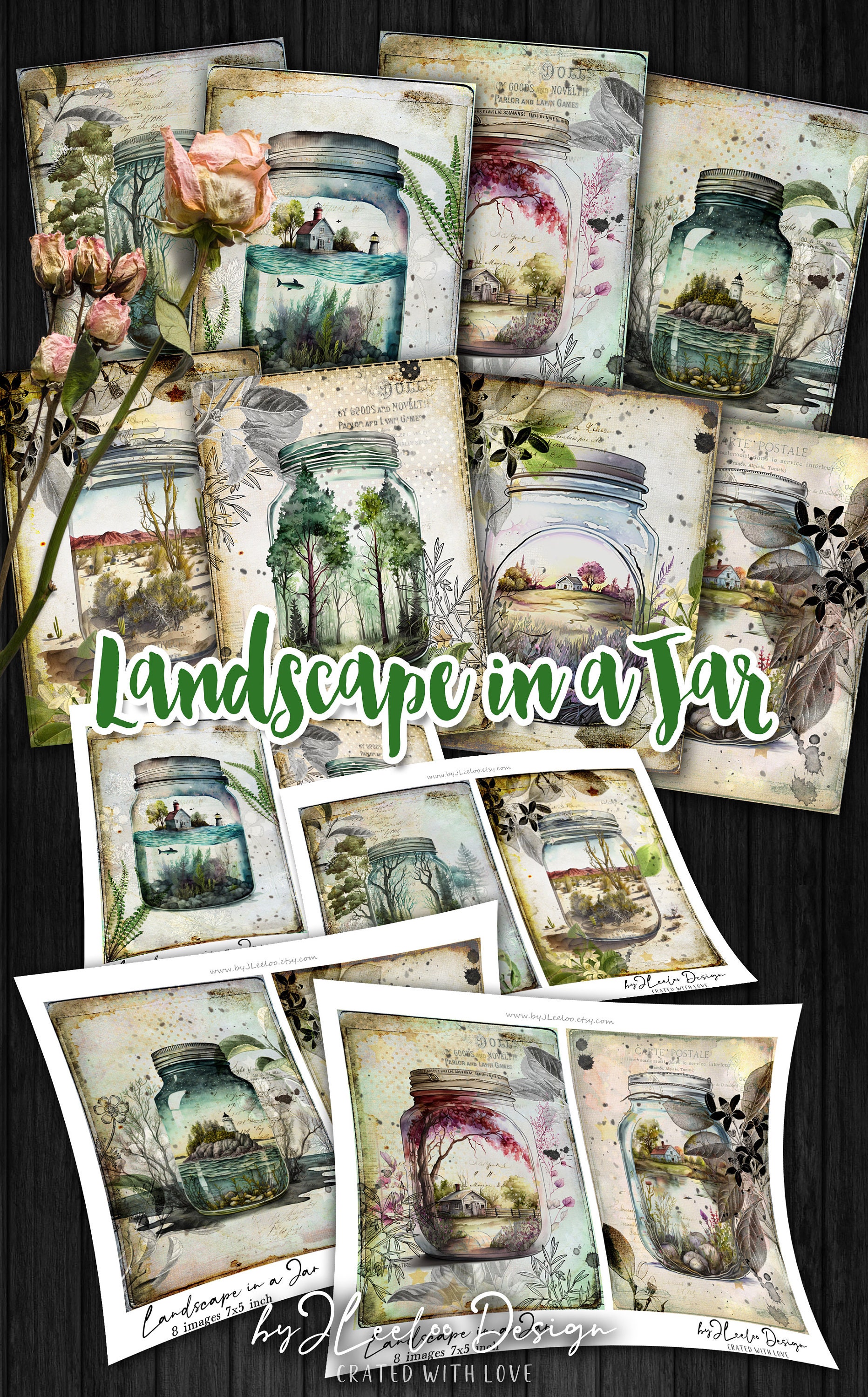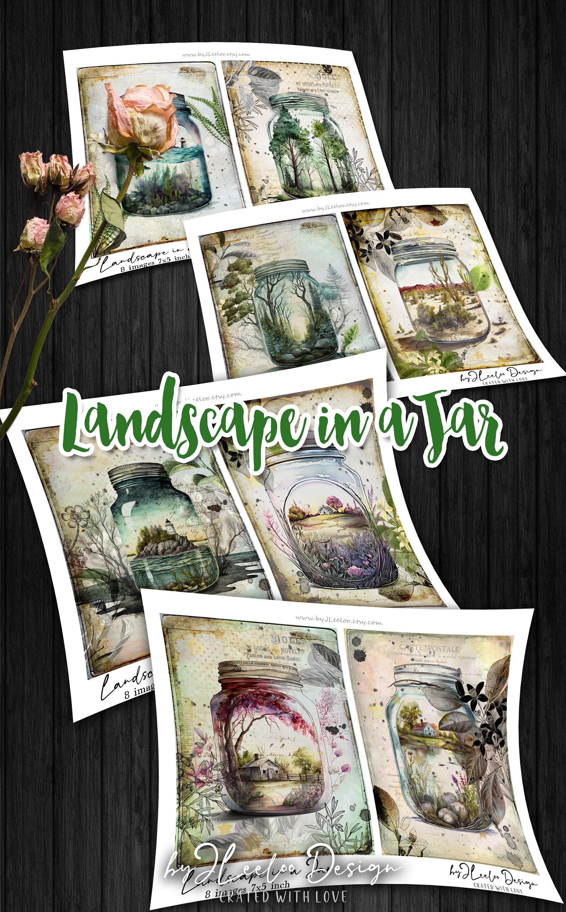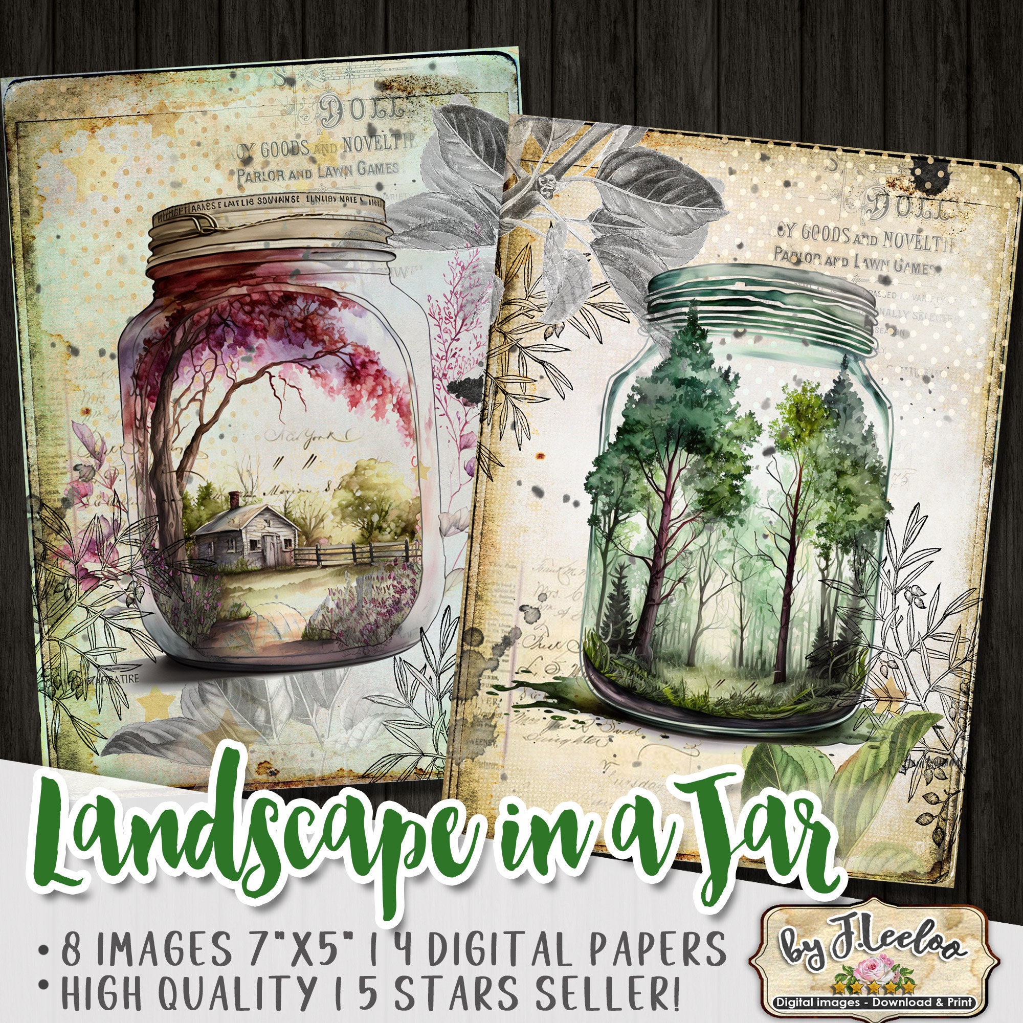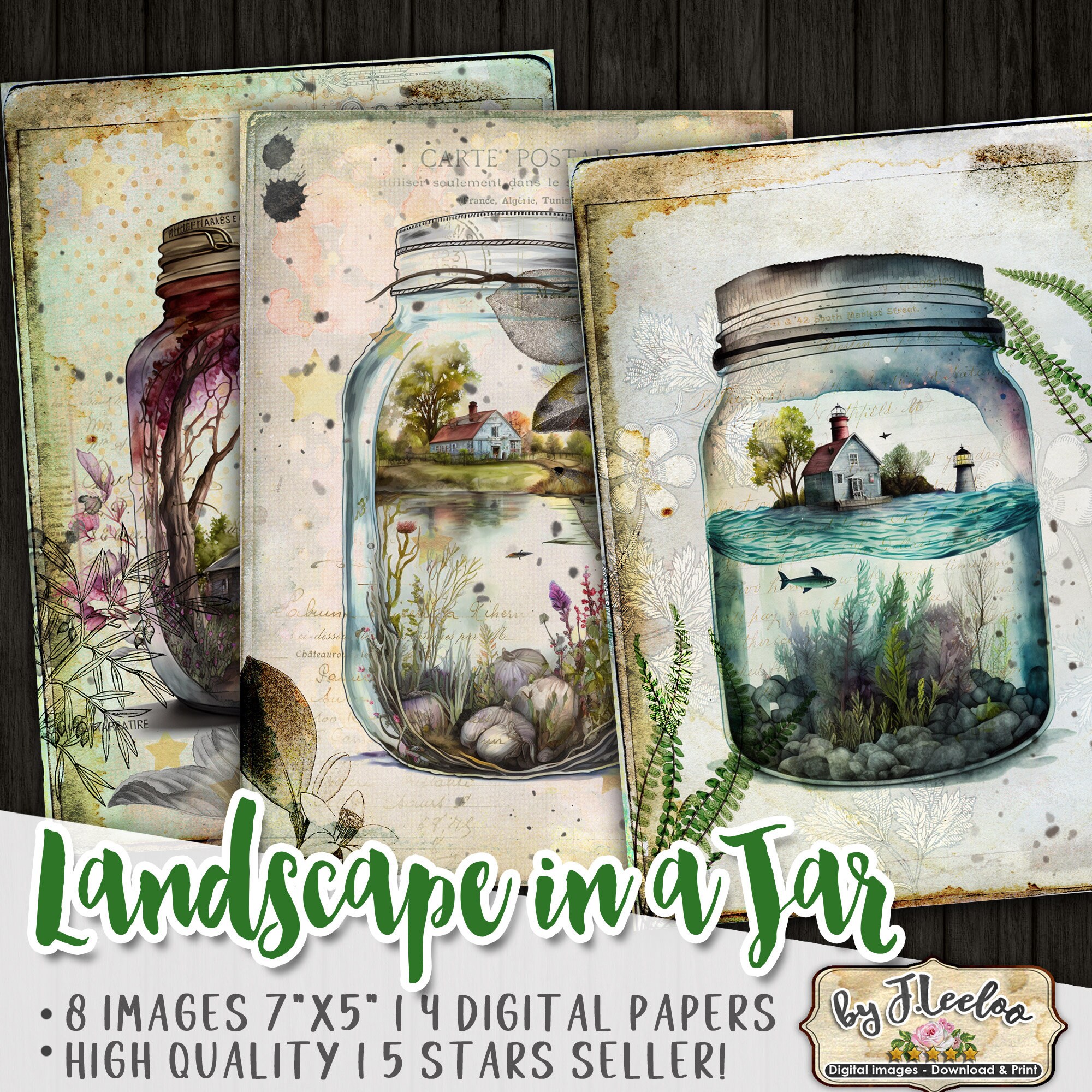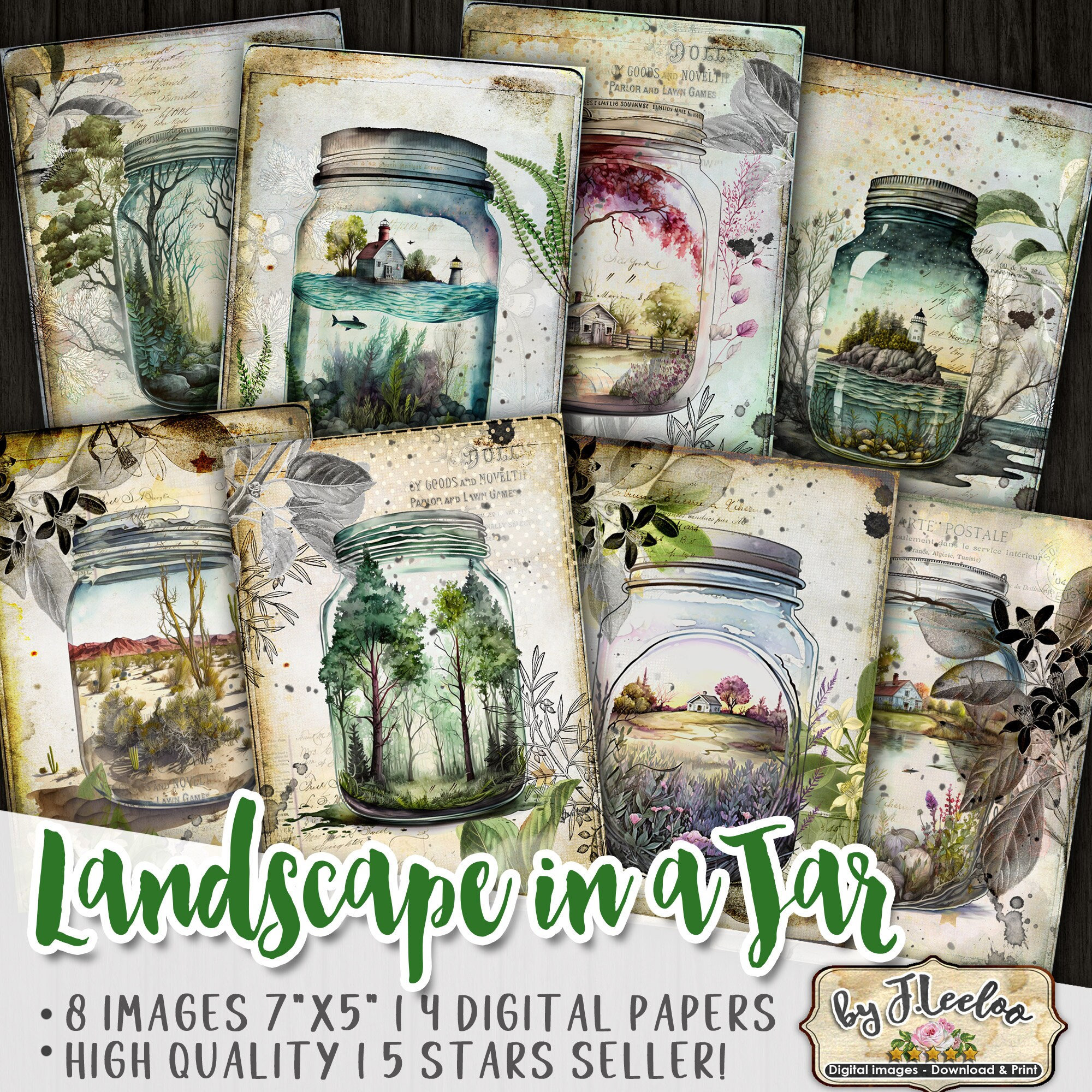 LANDSCAPE in a JAR 5x7 inch digital cards | ephemera vintage for junk journal | scrapbook travel diary | Diy home lucky place