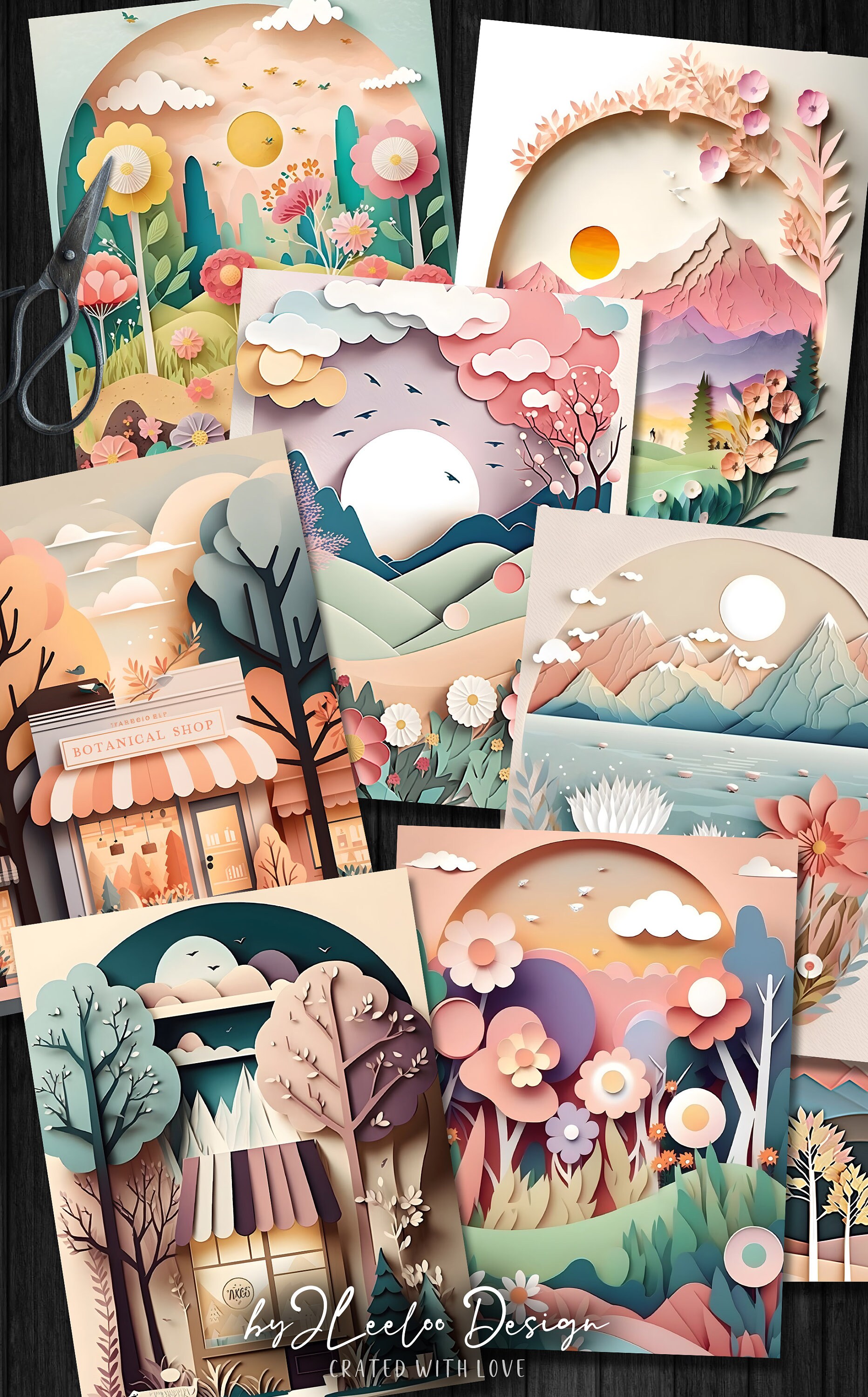 8 sceneries full sheet 8.5“ x 11”