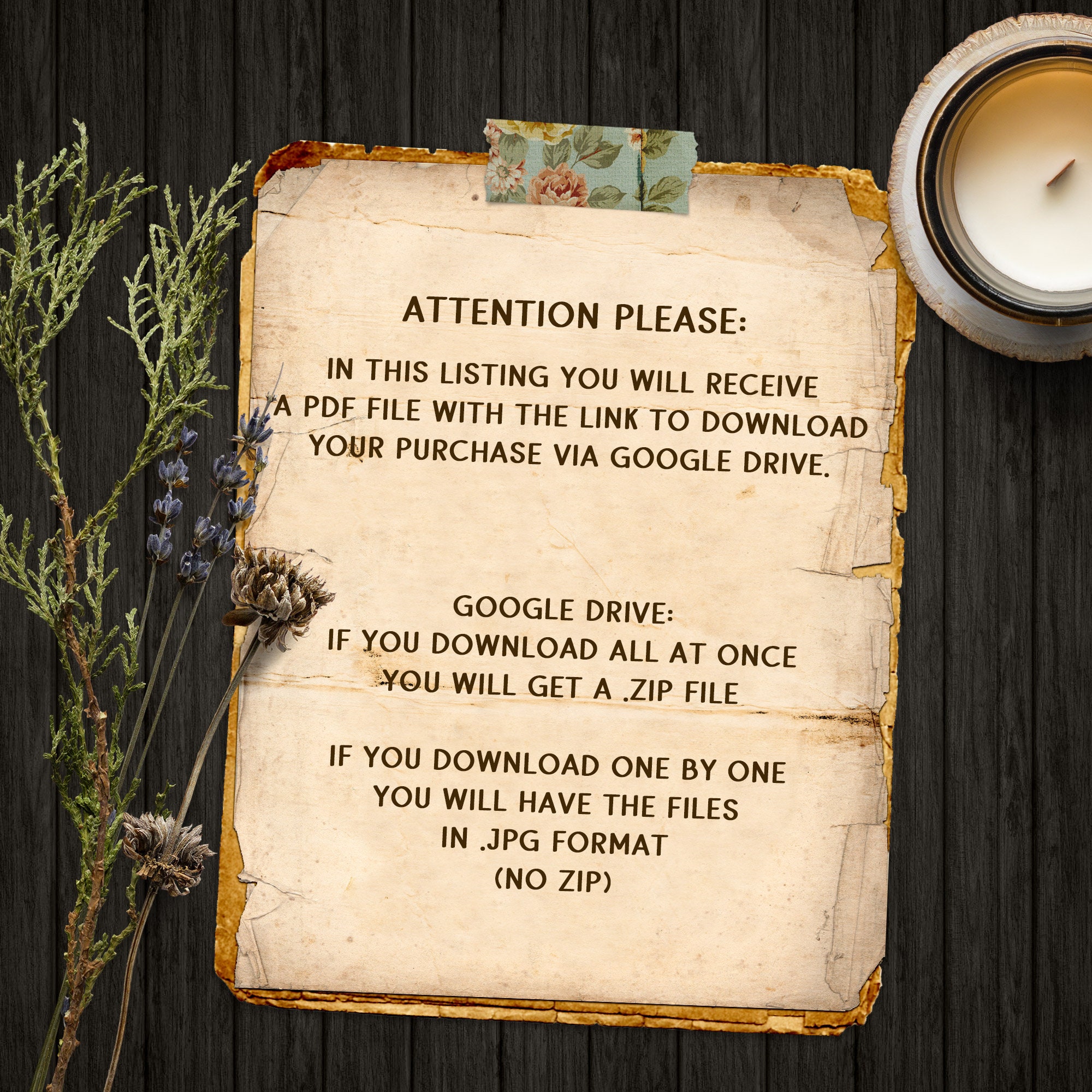 In the download you will also find a .Pdf with the link to download them from Google Drive in .jpg format (no .zip files)
