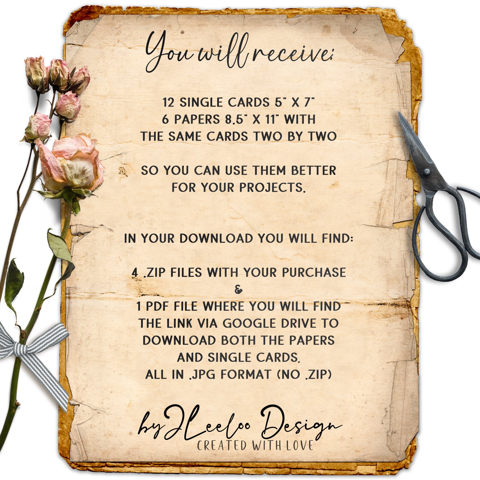 6 digital collage sheets with 2 cards each (pages 8.5x11 inch)