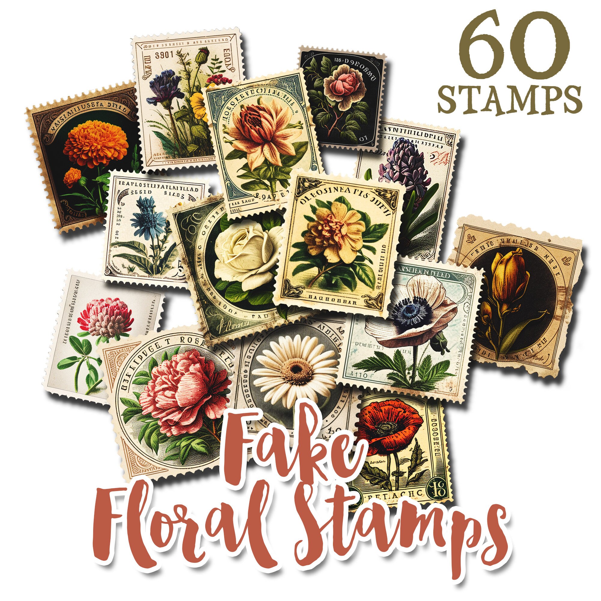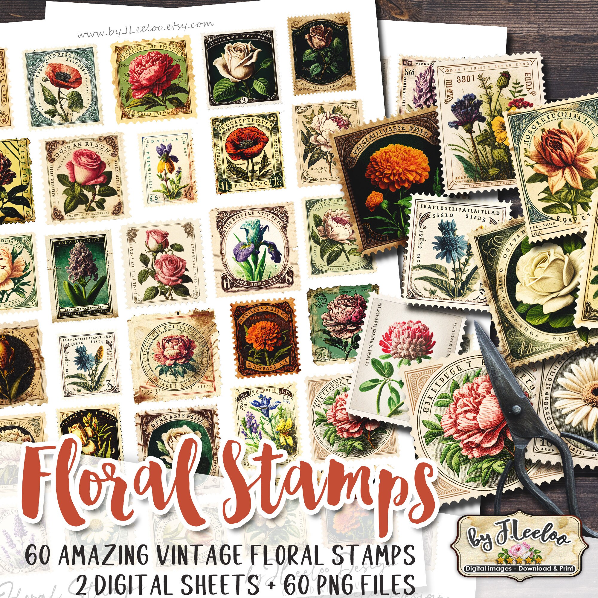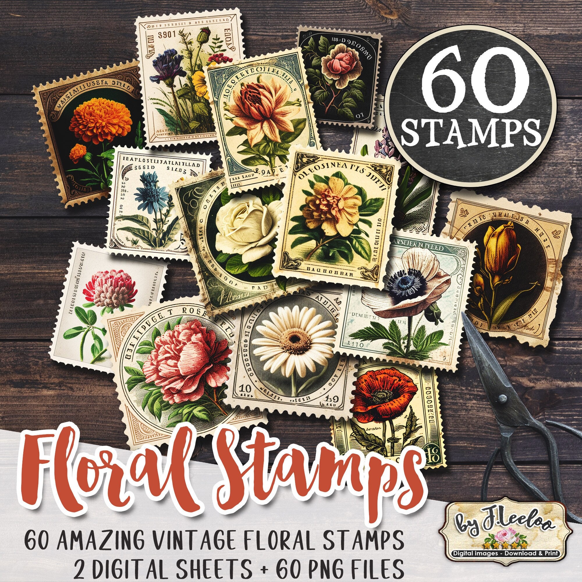 Fake FLORAL STAMPS postage Png printable | Junk Journal flower supplies | Botanical vintage ephemera instant download collage | cl138