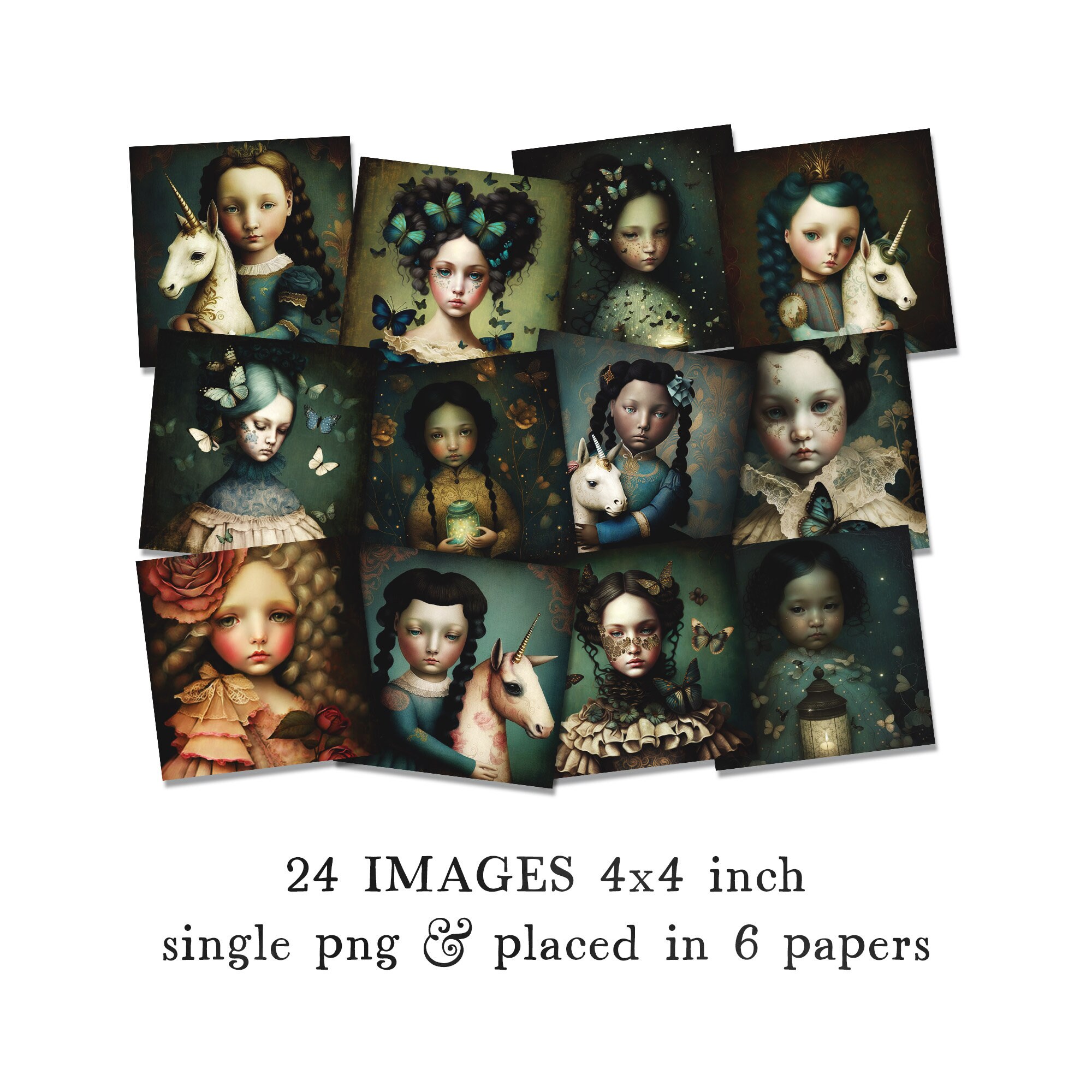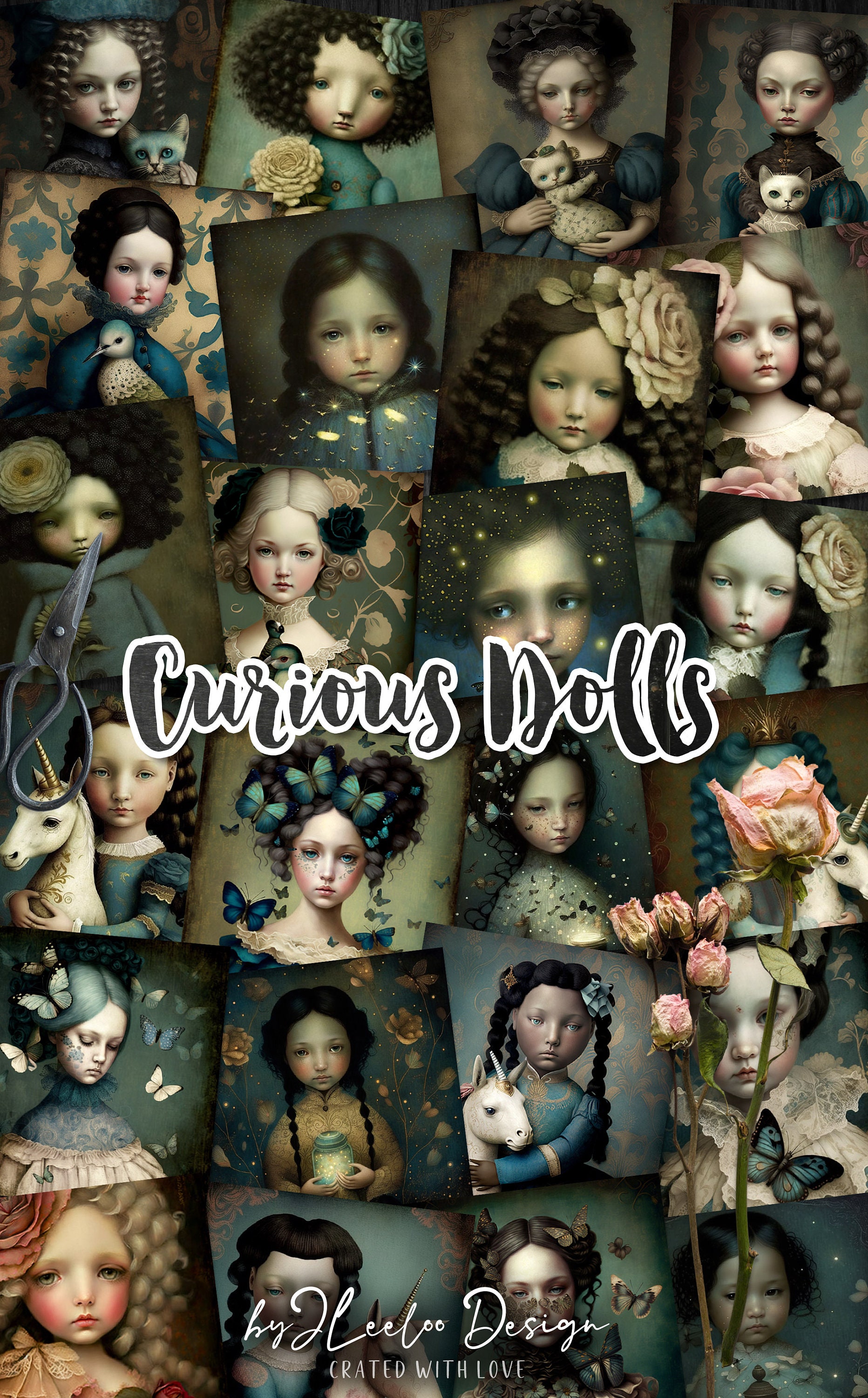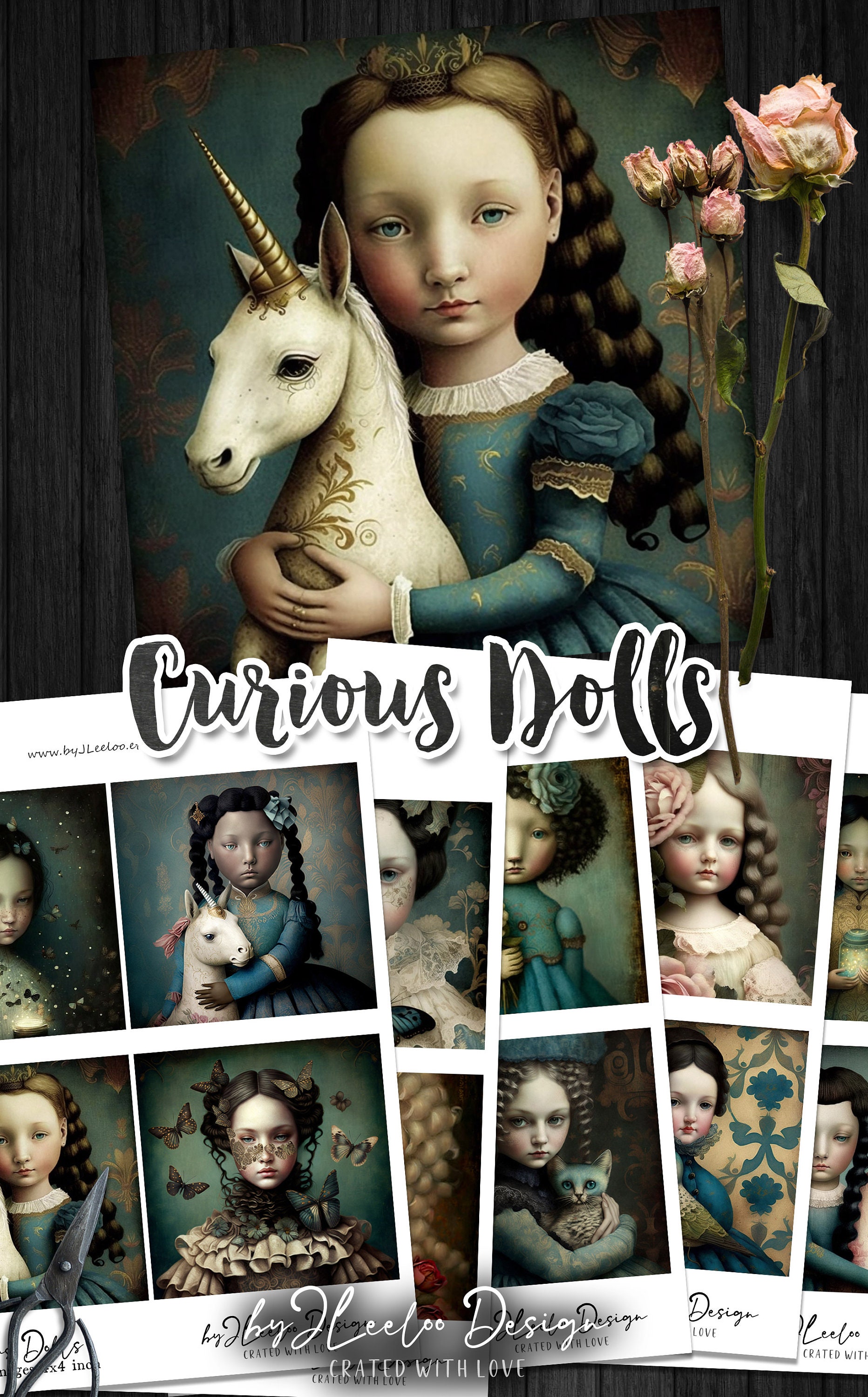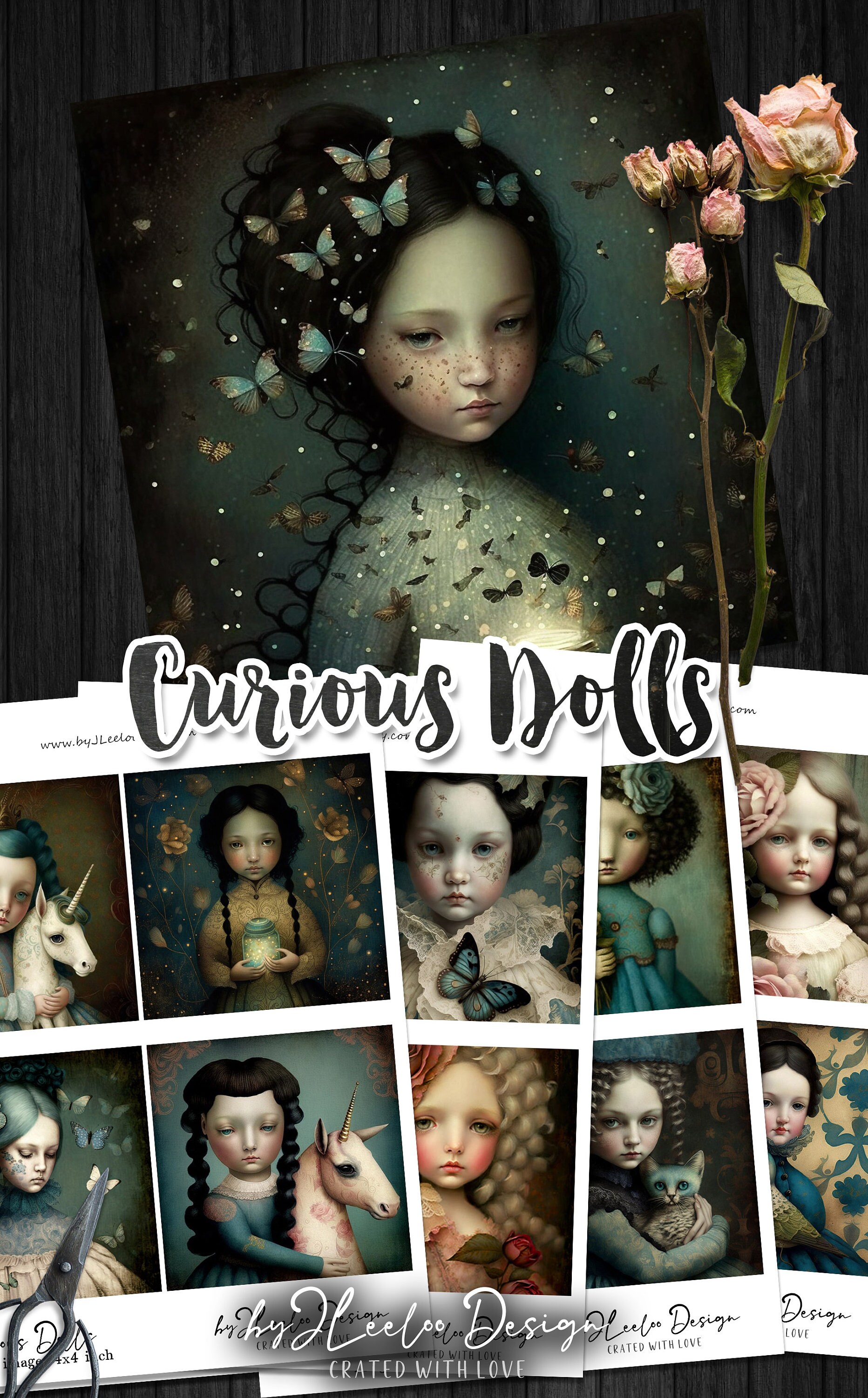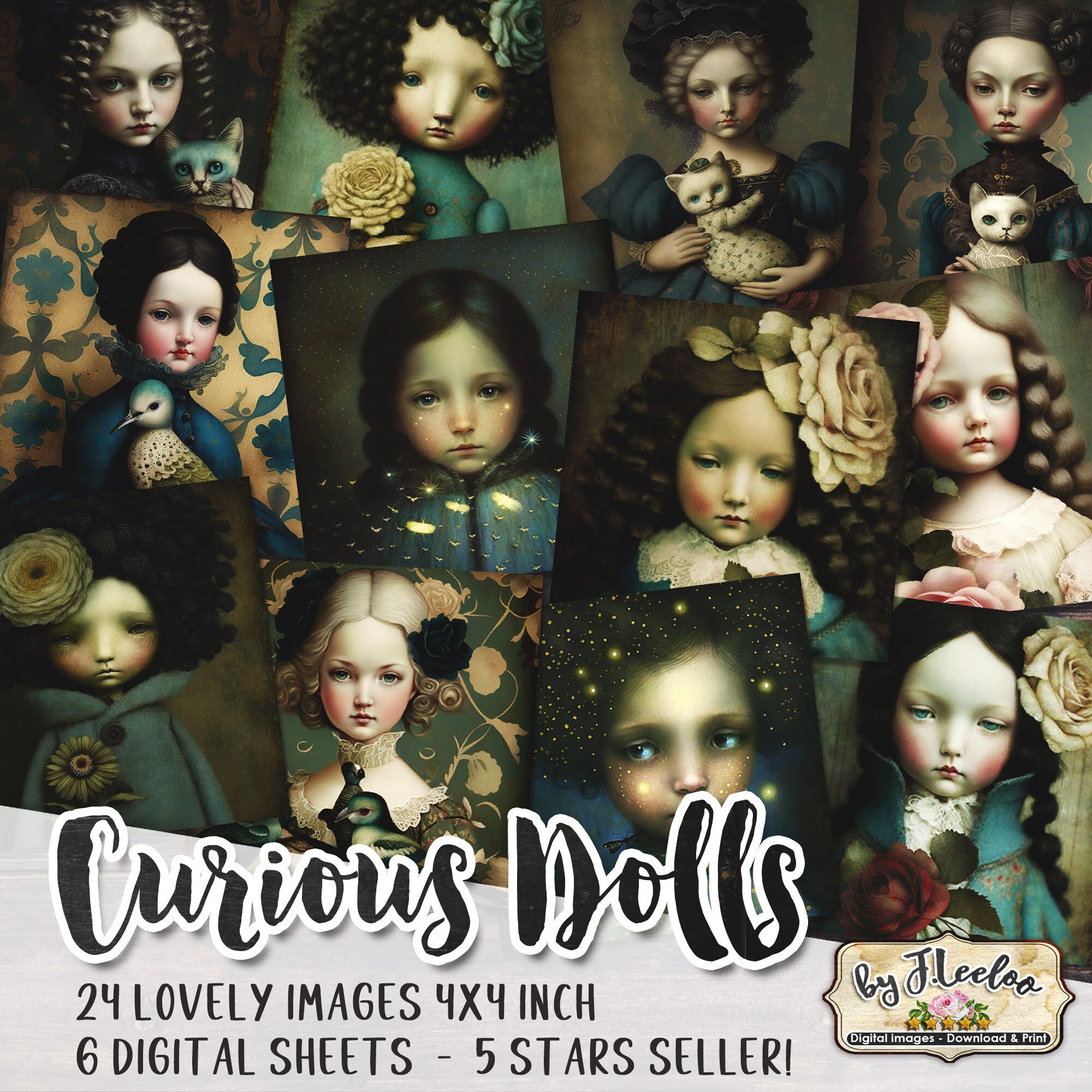 CURIOUS DOLLS 4x4 printable Junk Journal supplies | Digital ephemeral Collage paper | Mixed Media Package Kit | DiY cards vintage | qu554