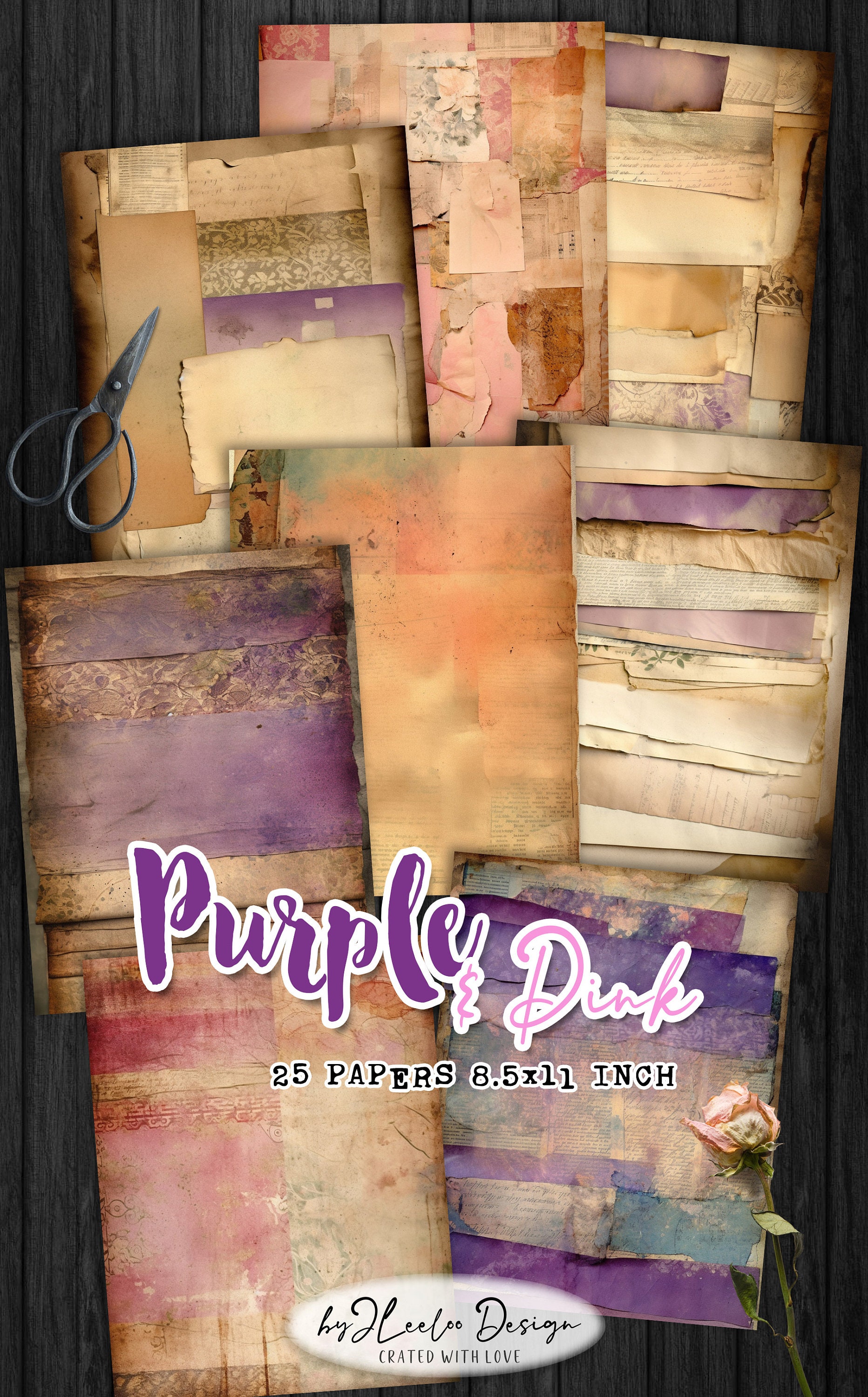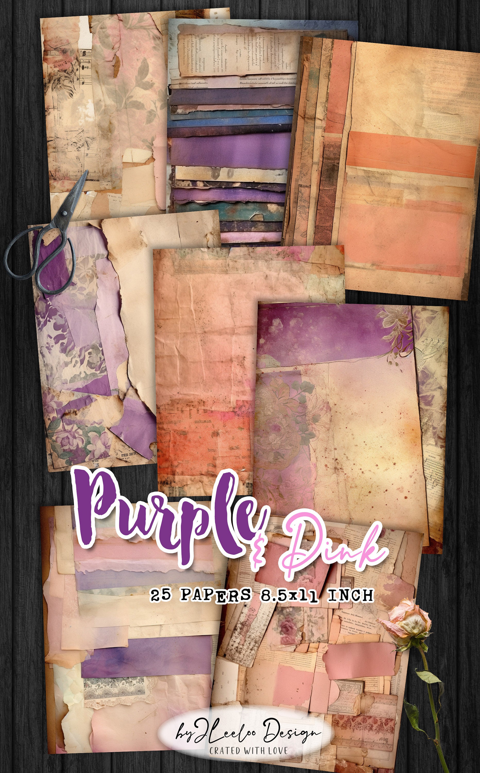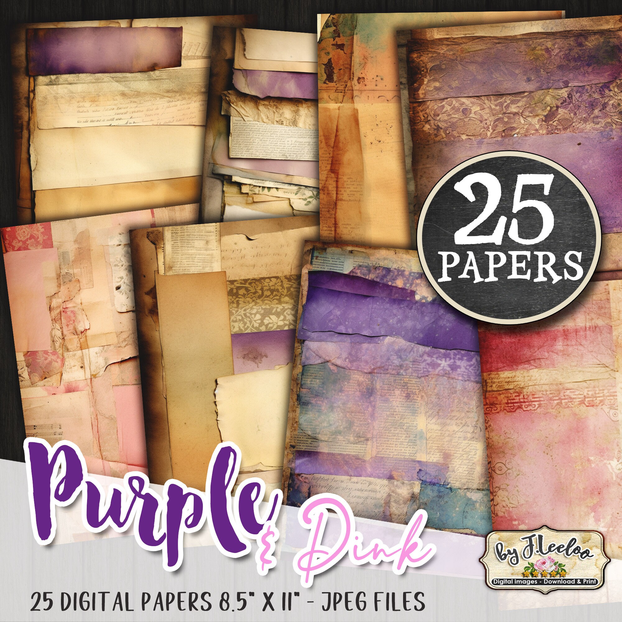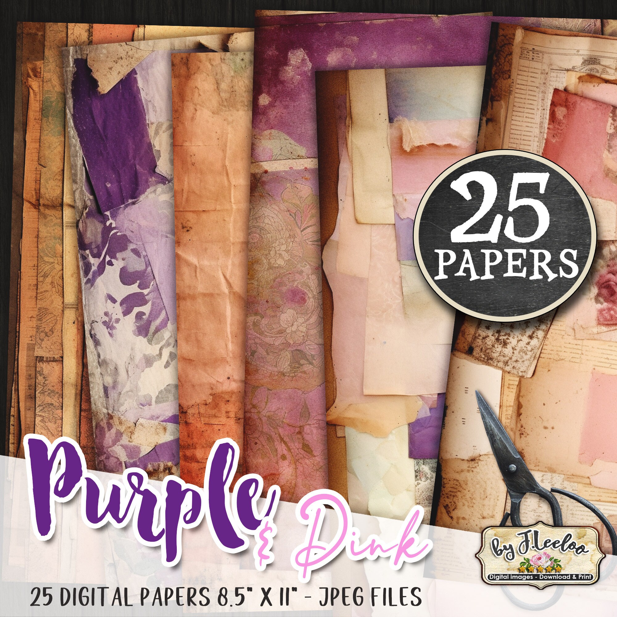 PINK & PURPLE distressed Junk Journal pages for scrapbook | Tattered supplies papers card making | Printable grunge journaling DiY | pp608
