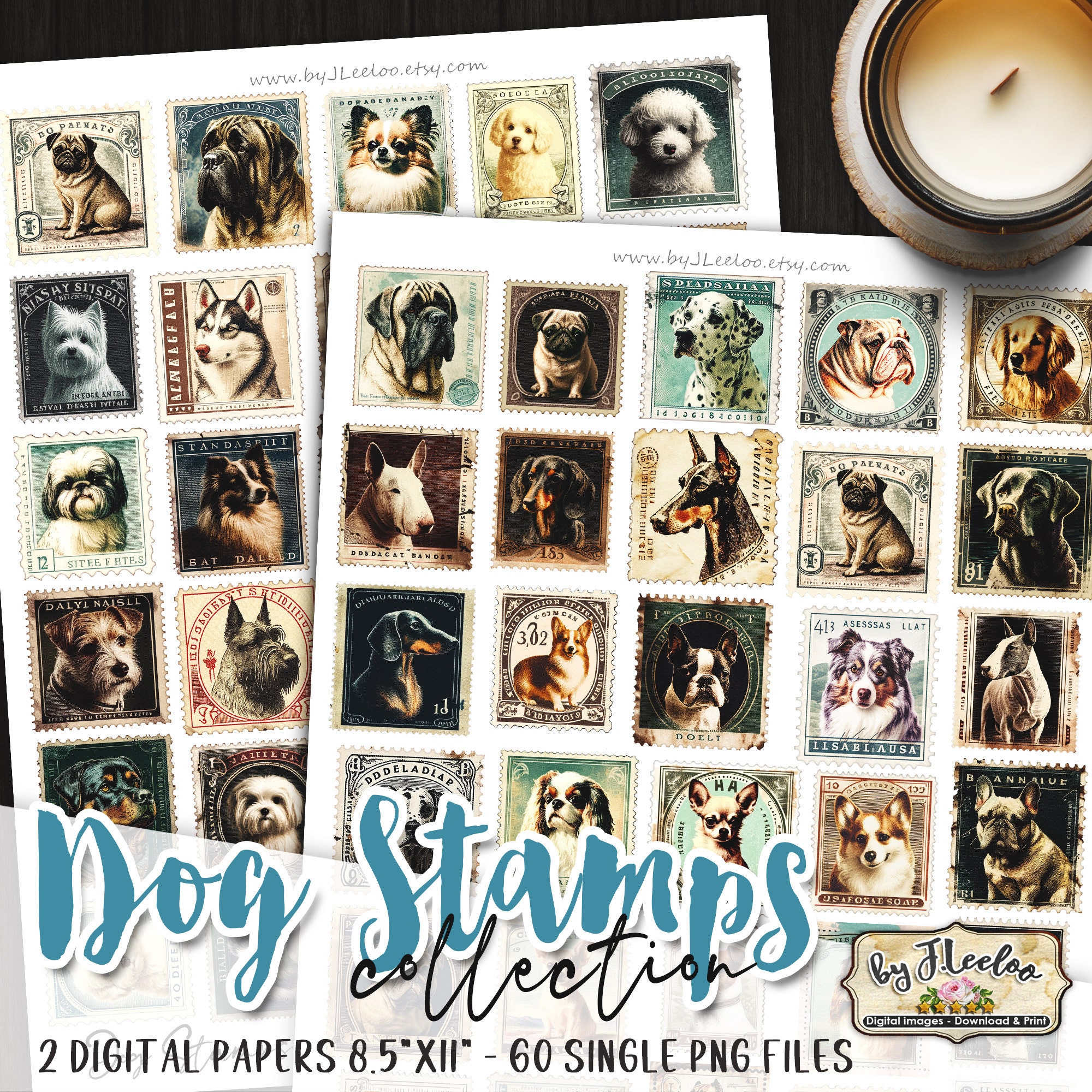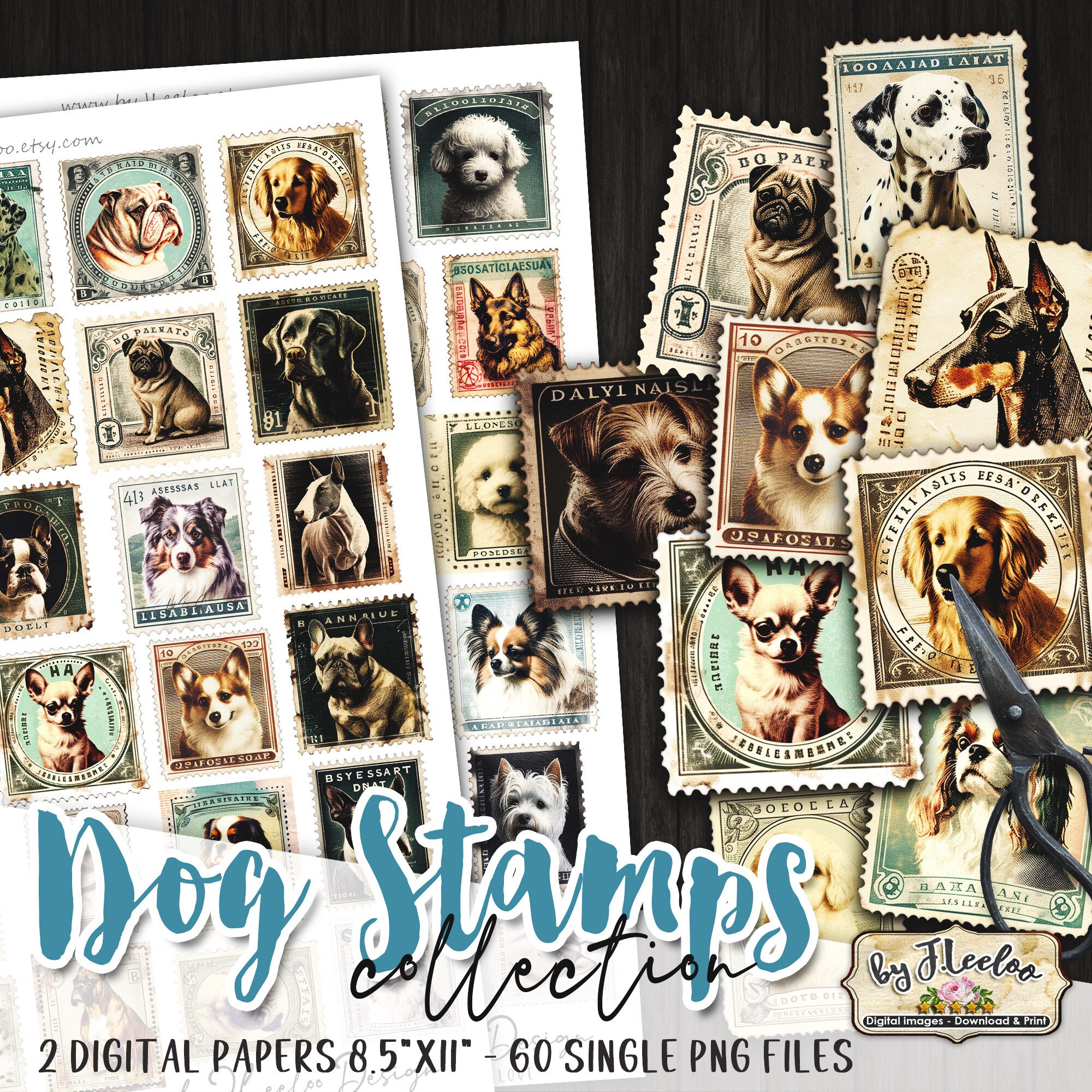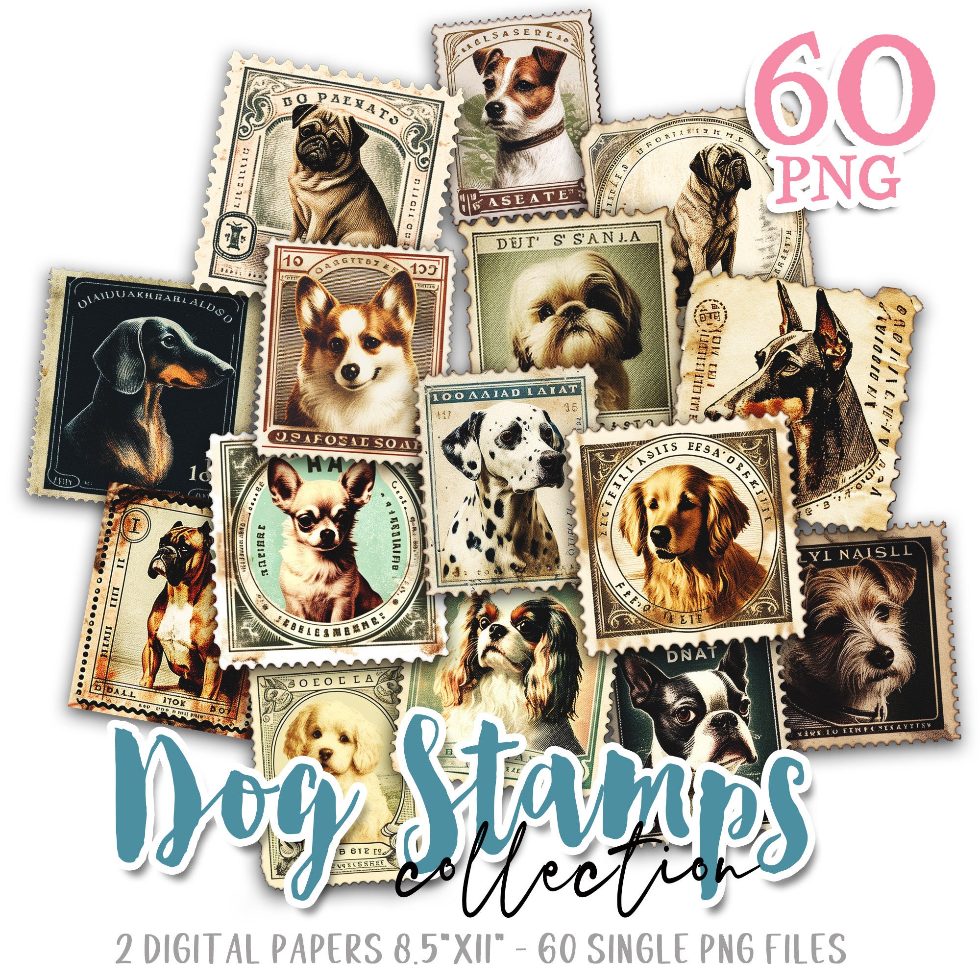 Fake DOG STAMPS postage Png printable | Junk Journal cute puppies supplies | Pets vintage ephemera fussy cuts scrapbook Download | cl139
