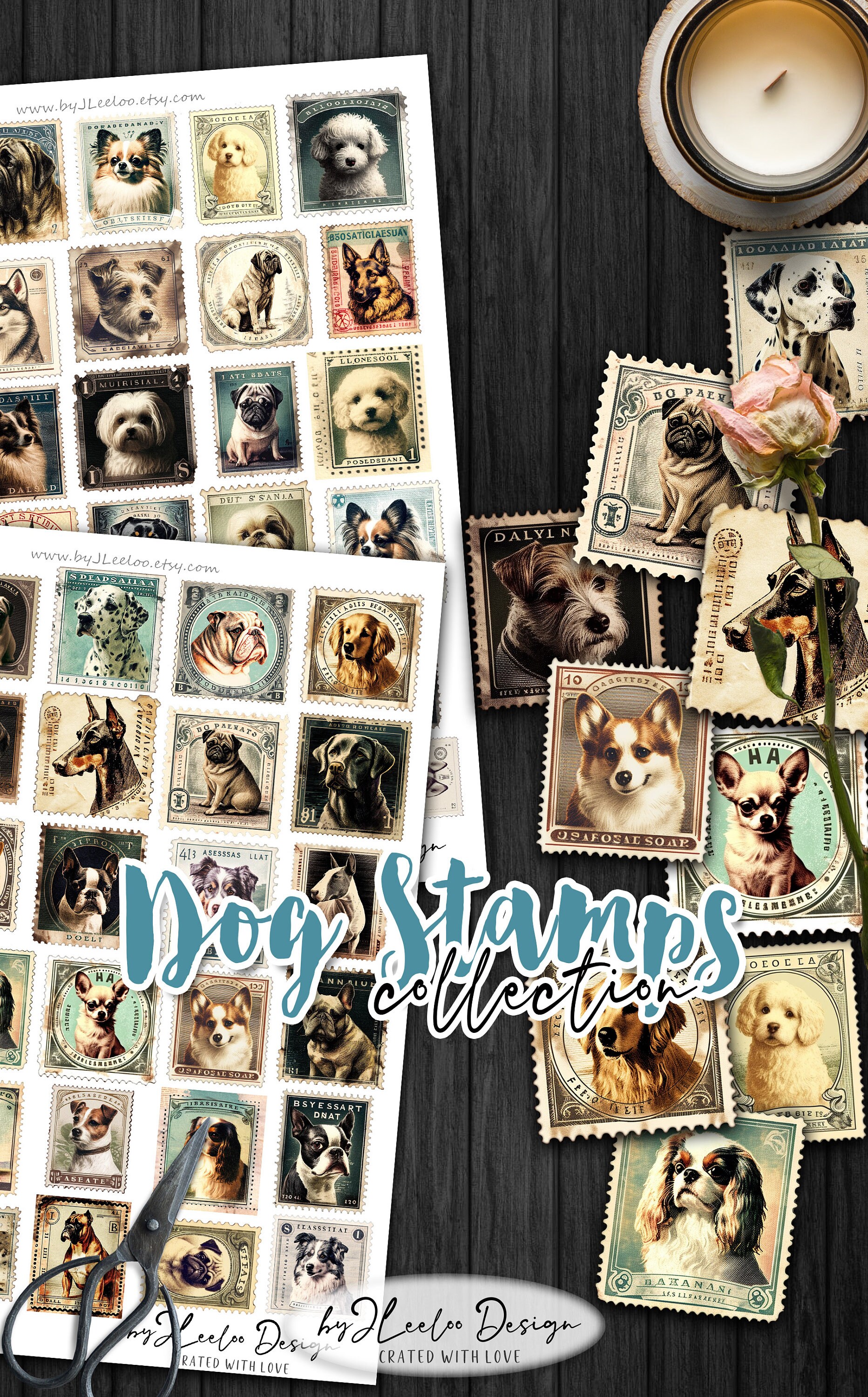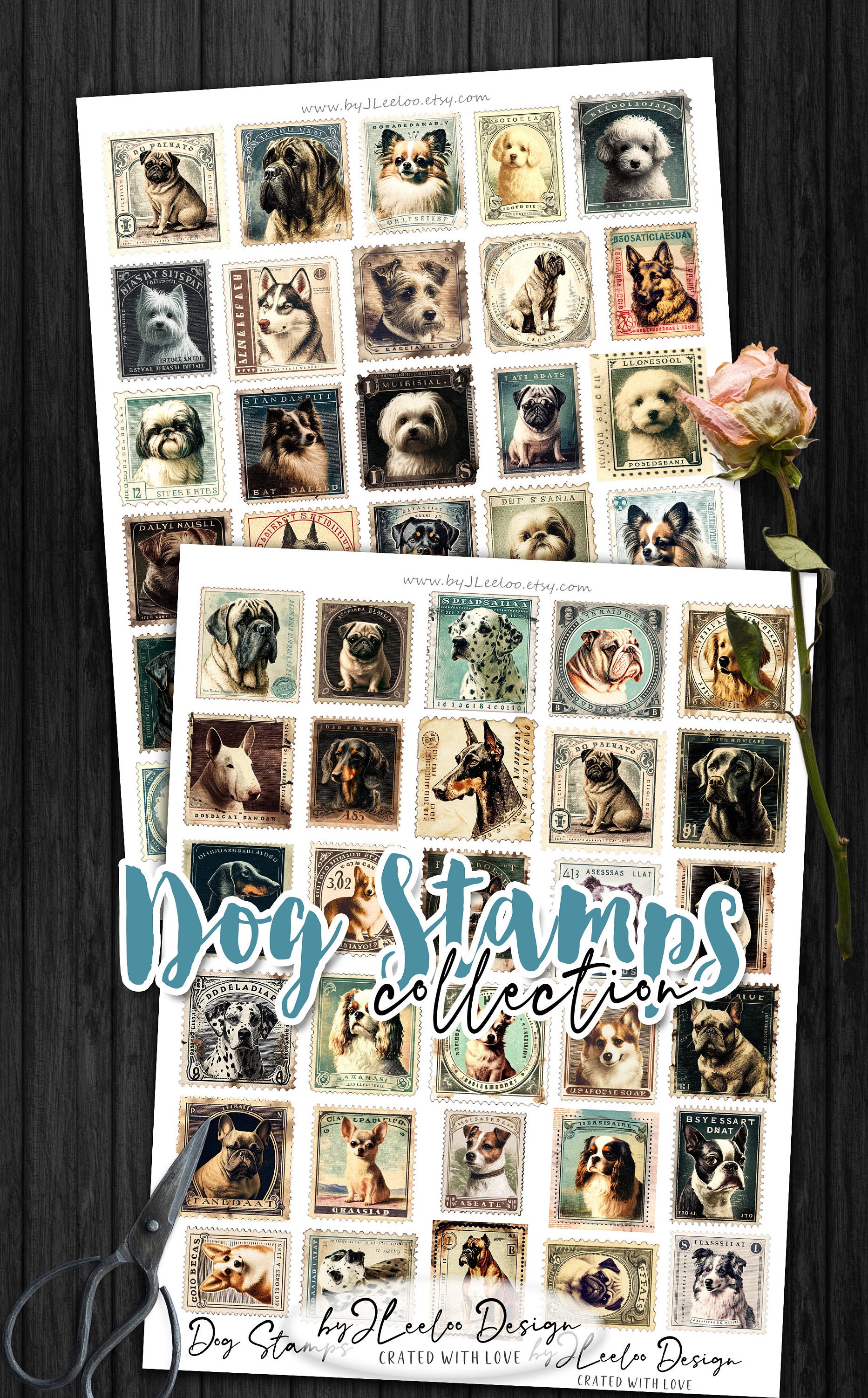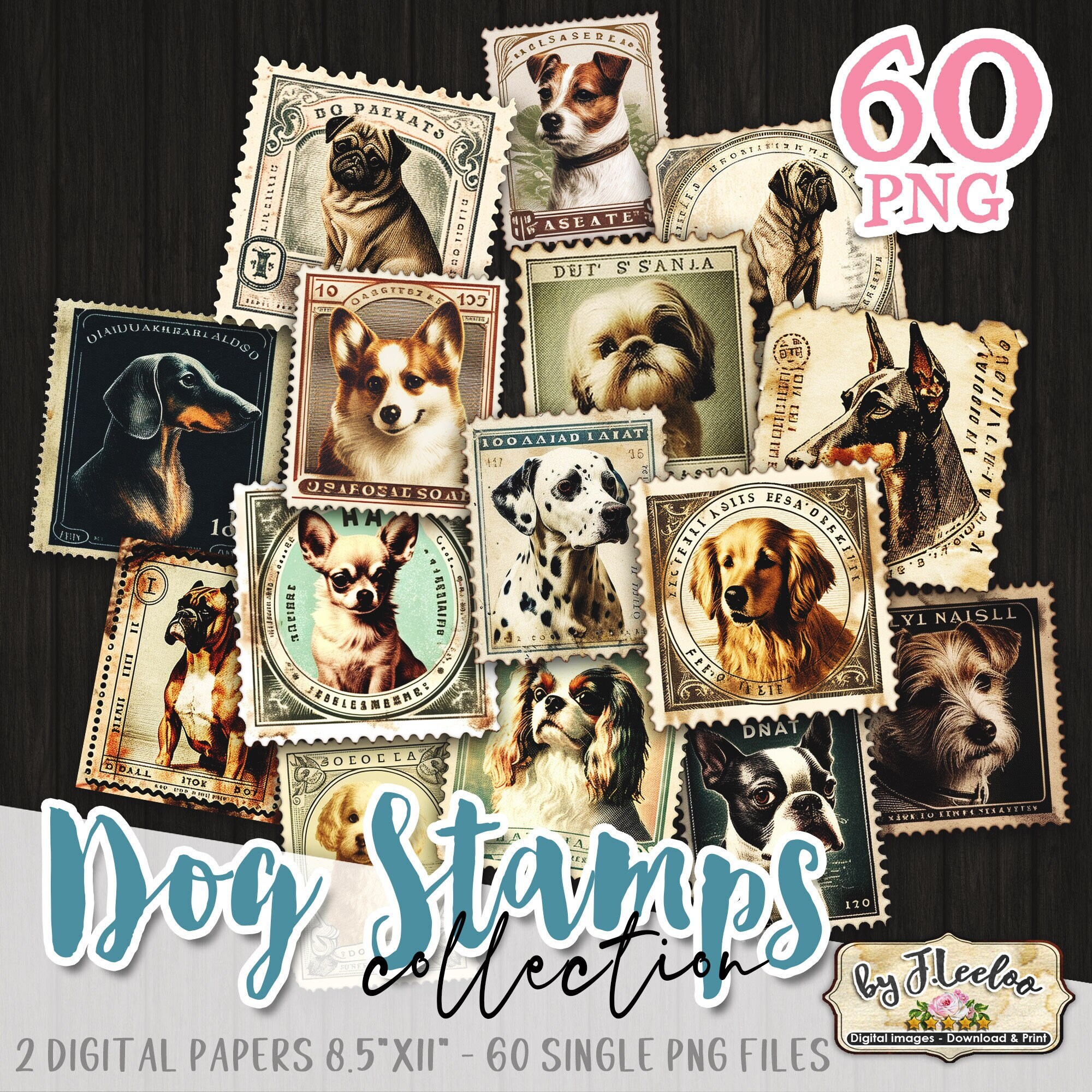 Fake DOG STAMPS postage Png printable | Junk Journal cute puppies supplies | Pets vintage ephemera fussy cuts scrapbook Download | cl139