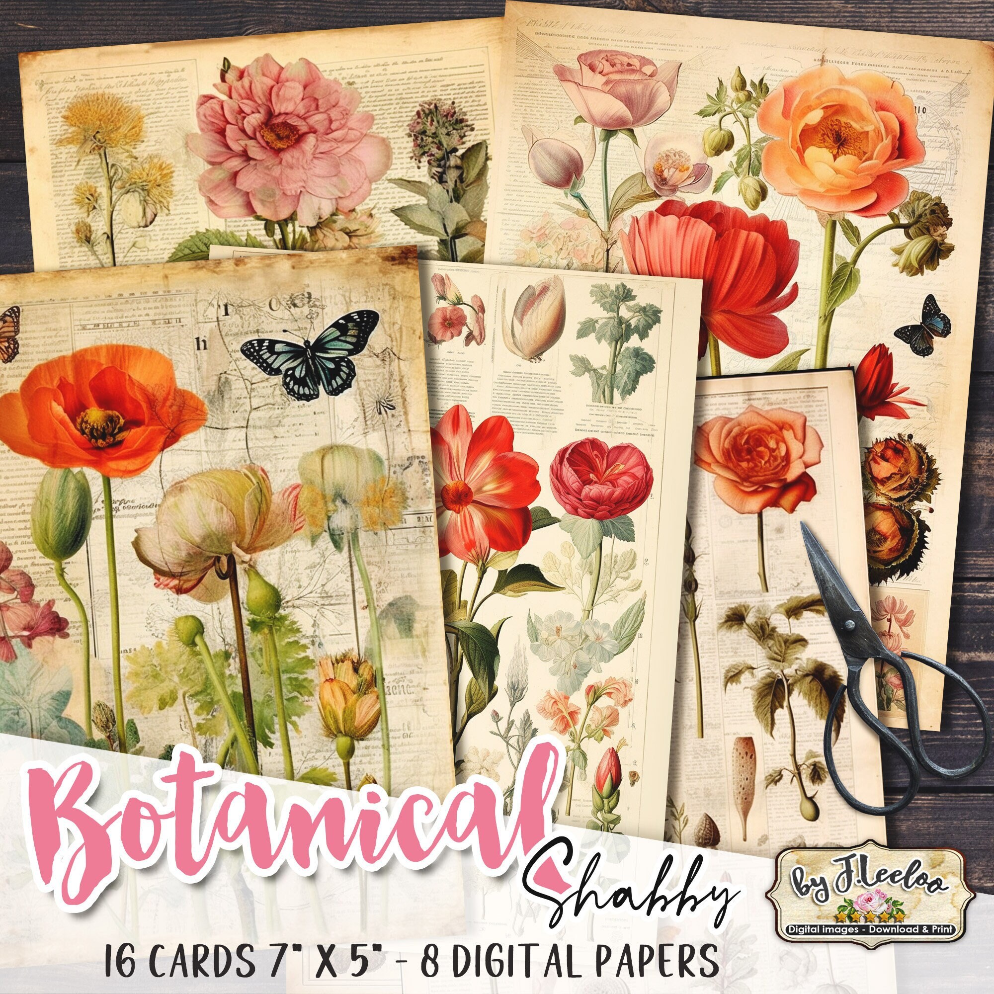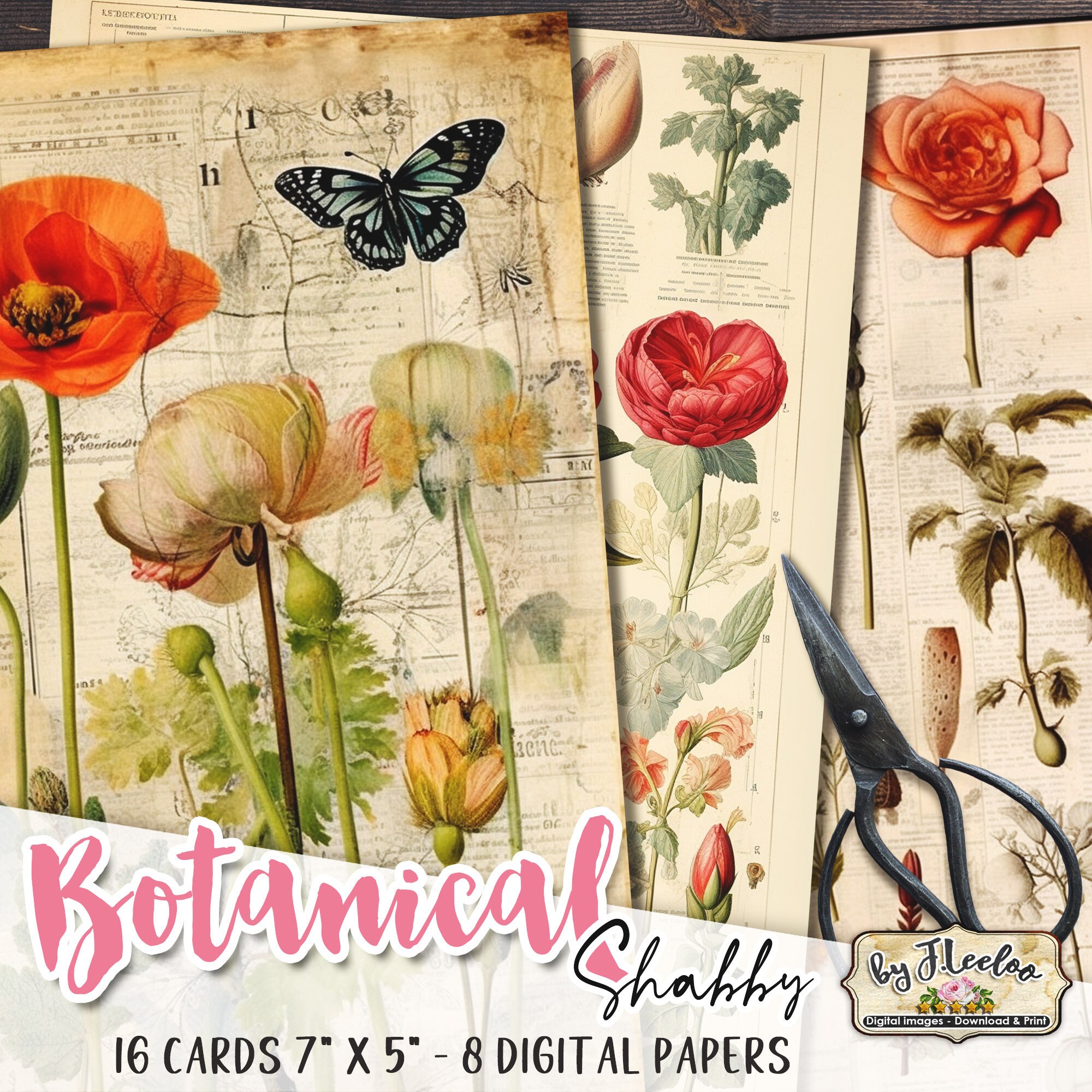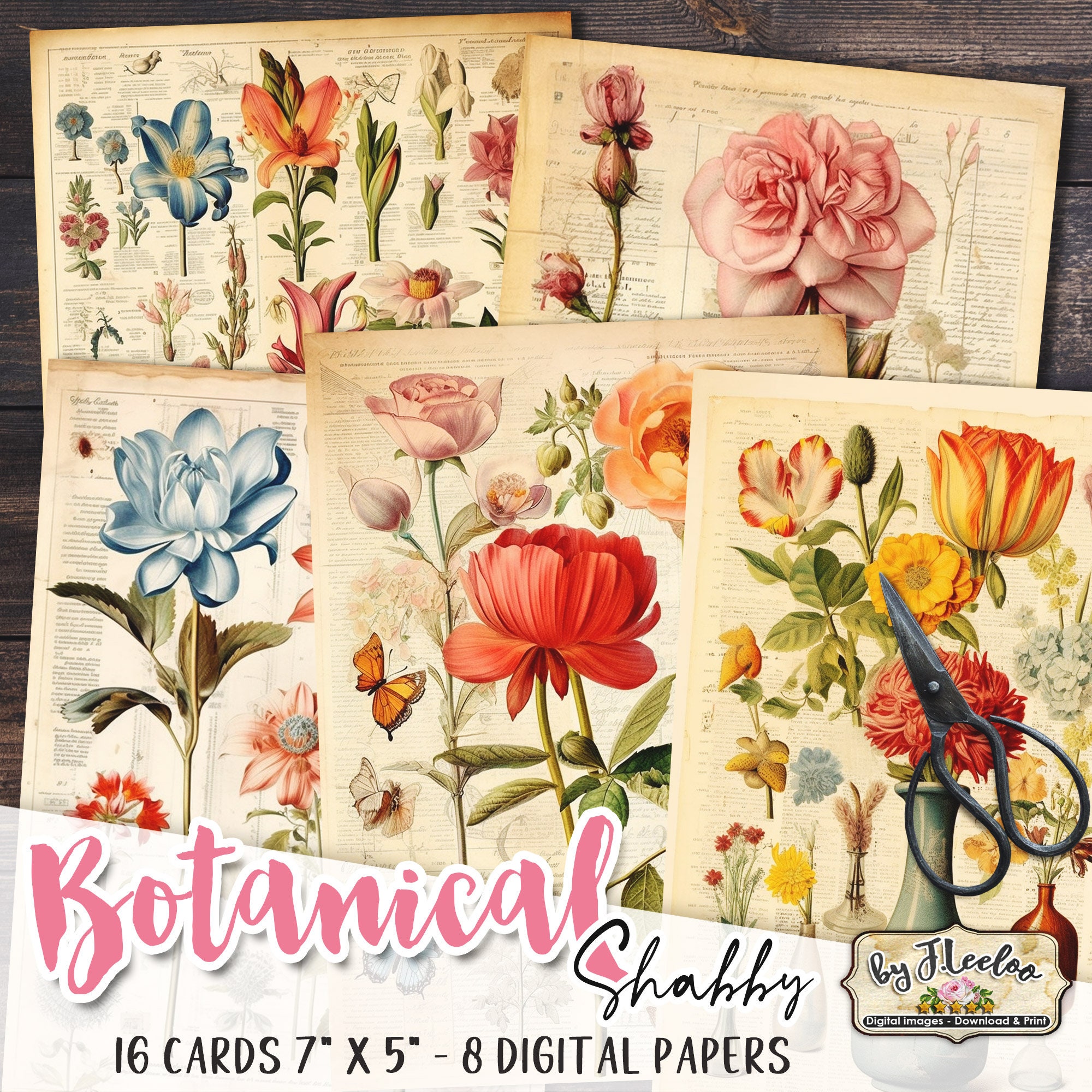 SHABBY BOTANICAL 16 cards for junk journal | Digital shabby chic collage sheet French style card making diary scrapbook | Ephemera DiY Printable pp605