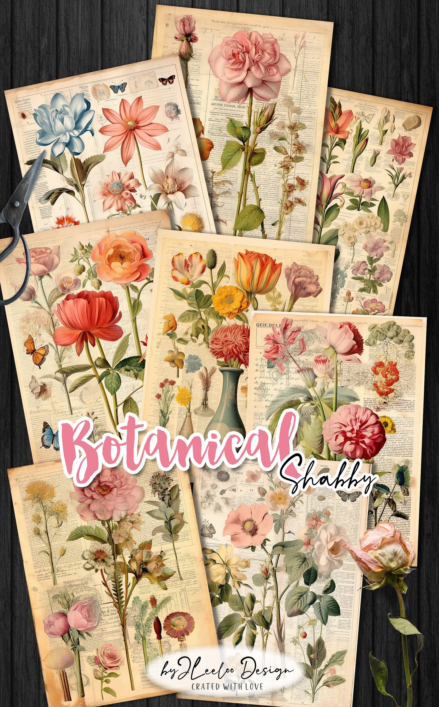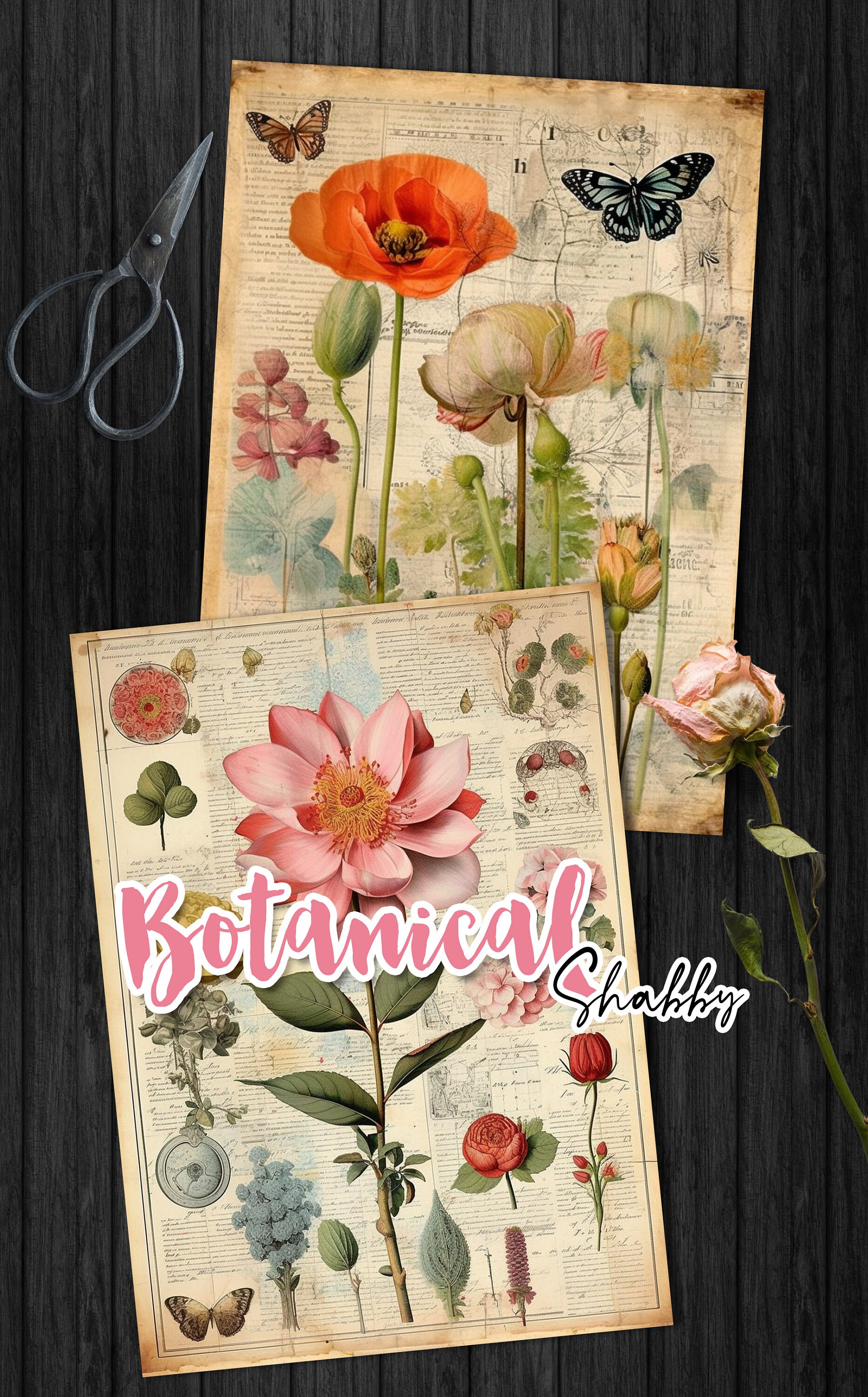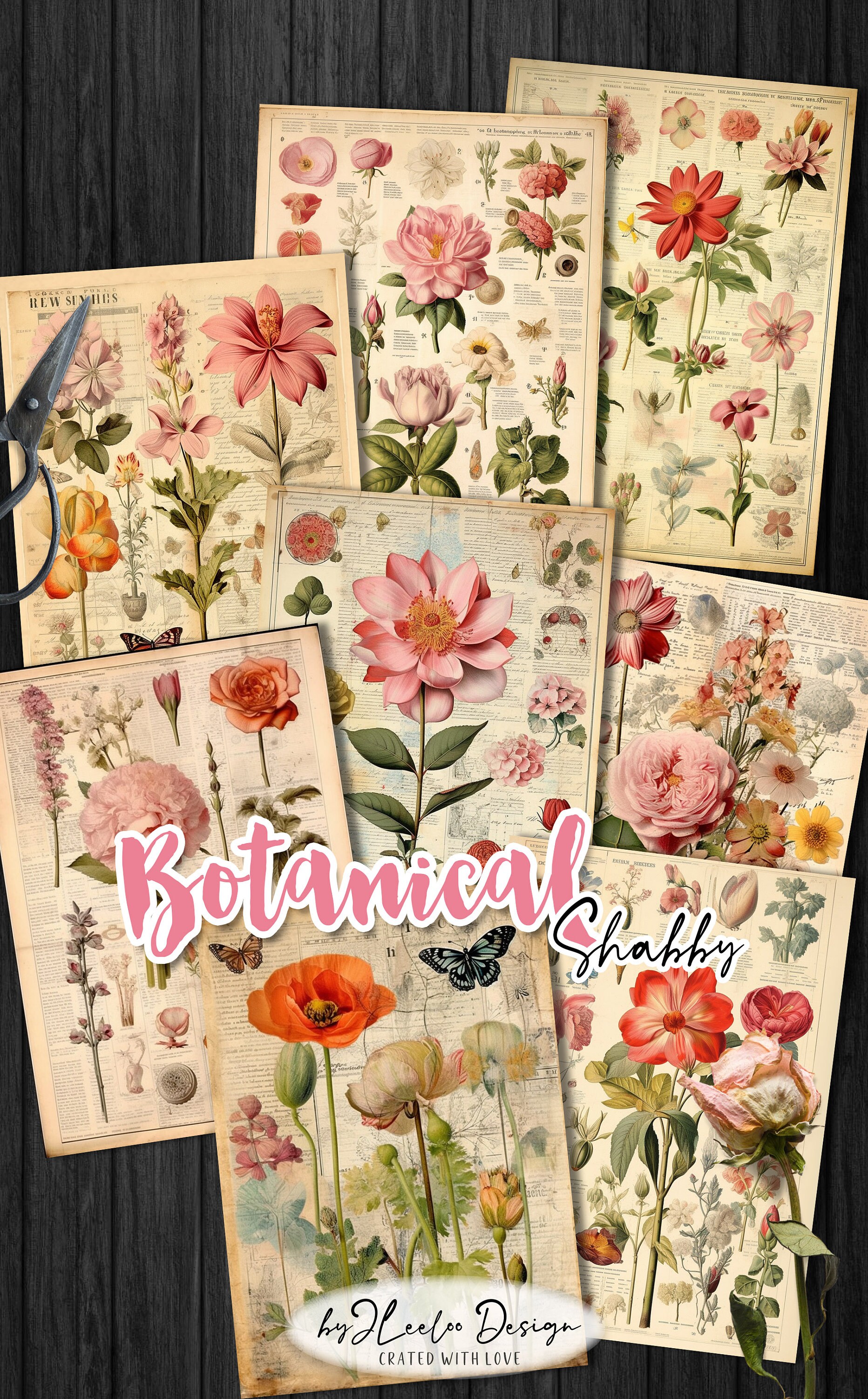 SHABBY BOTANICAL 16 cards for junk journal | Digital shabby chic collage sheet French style card making diary scrapbook | Ephemera DiY Printable pp605