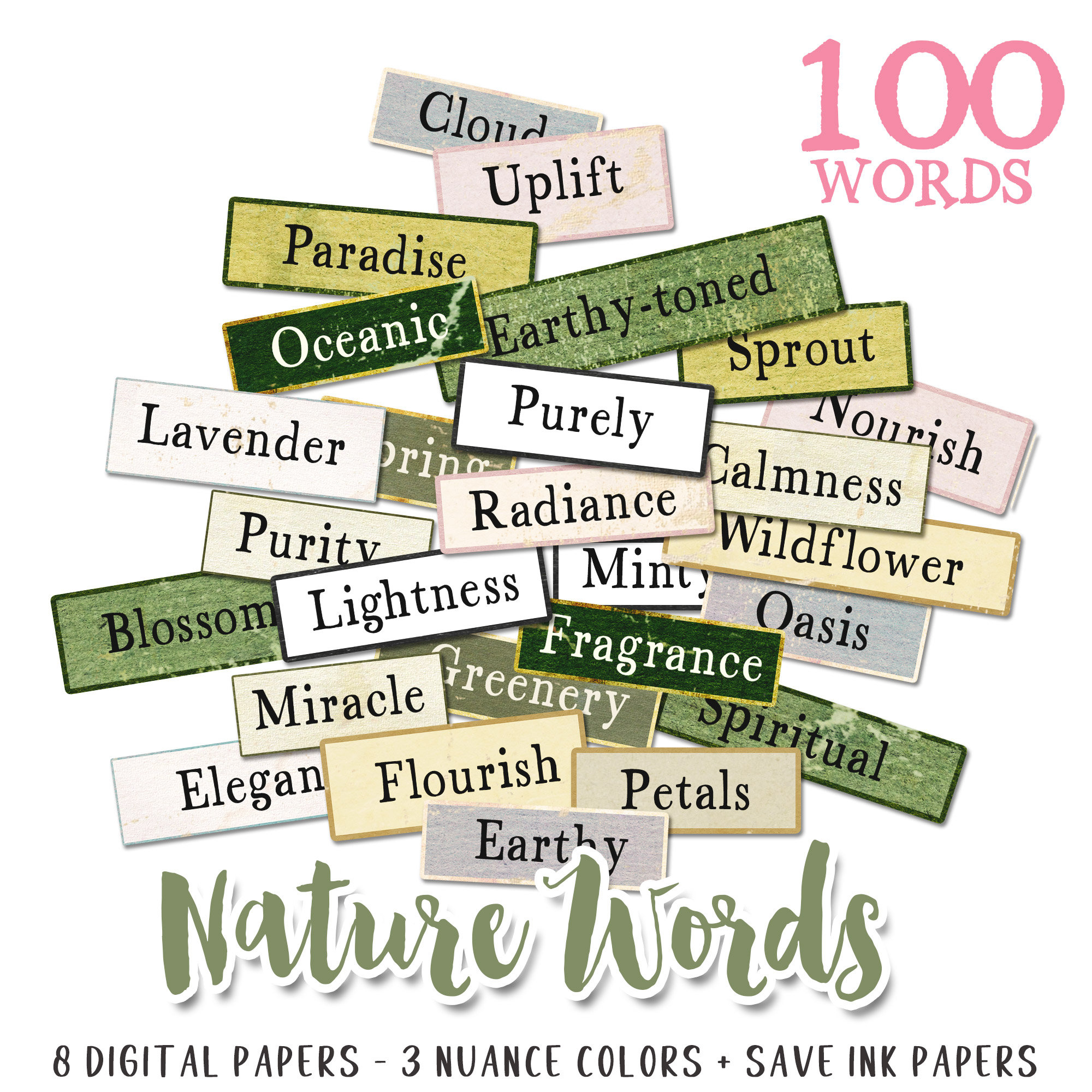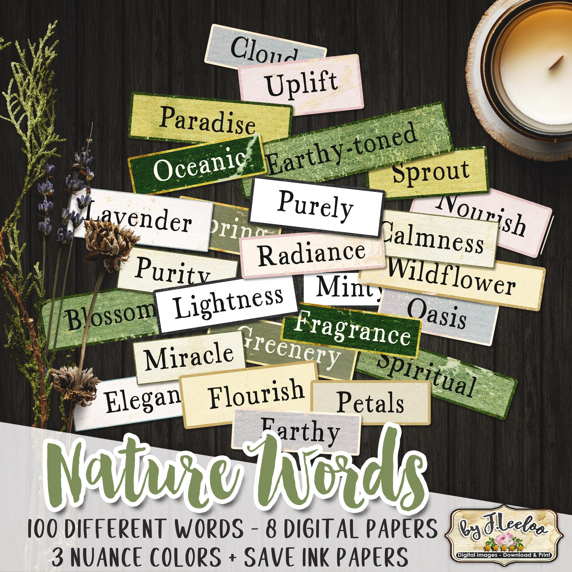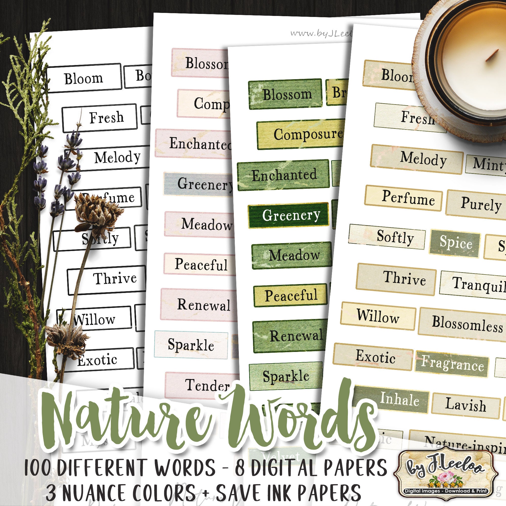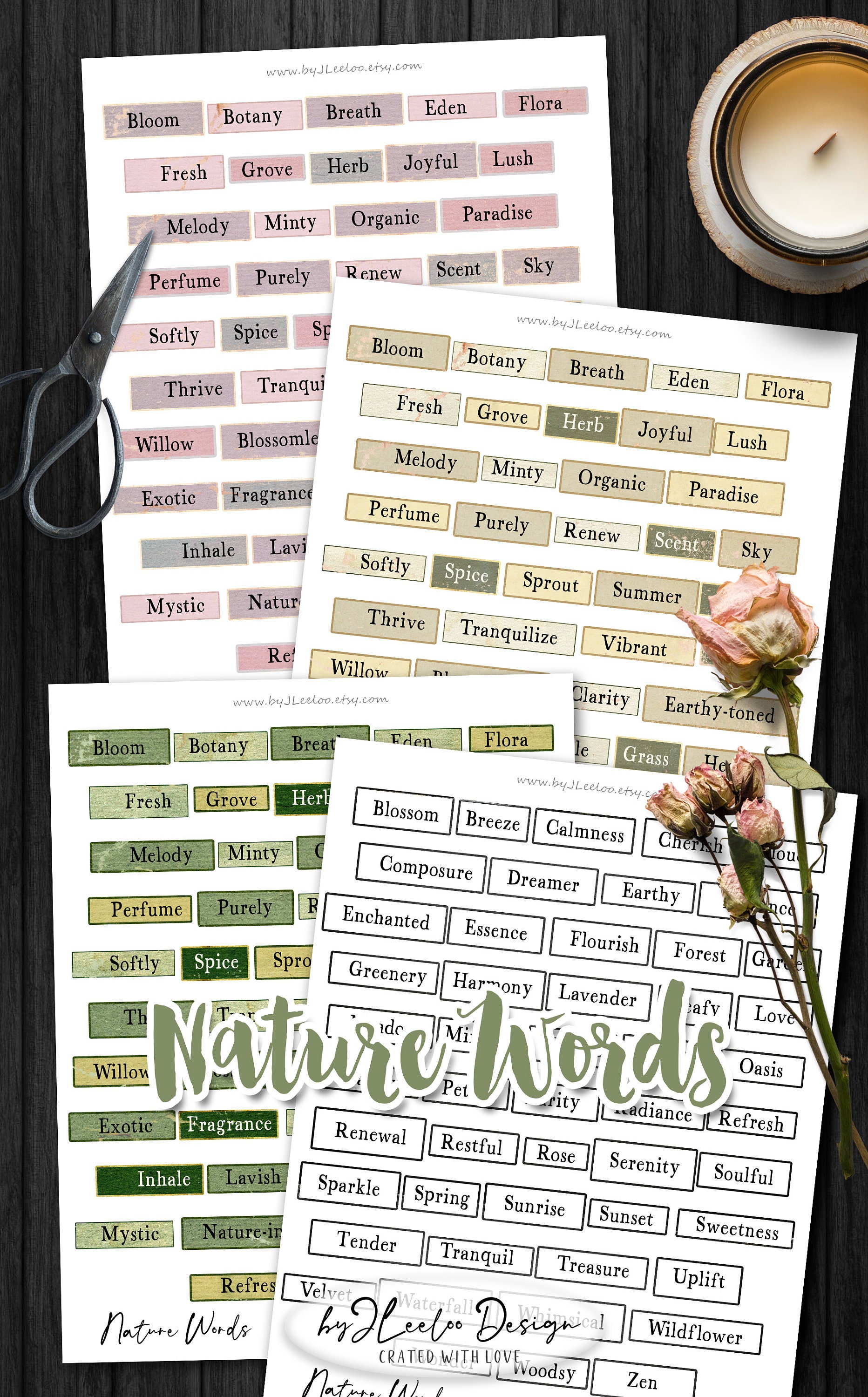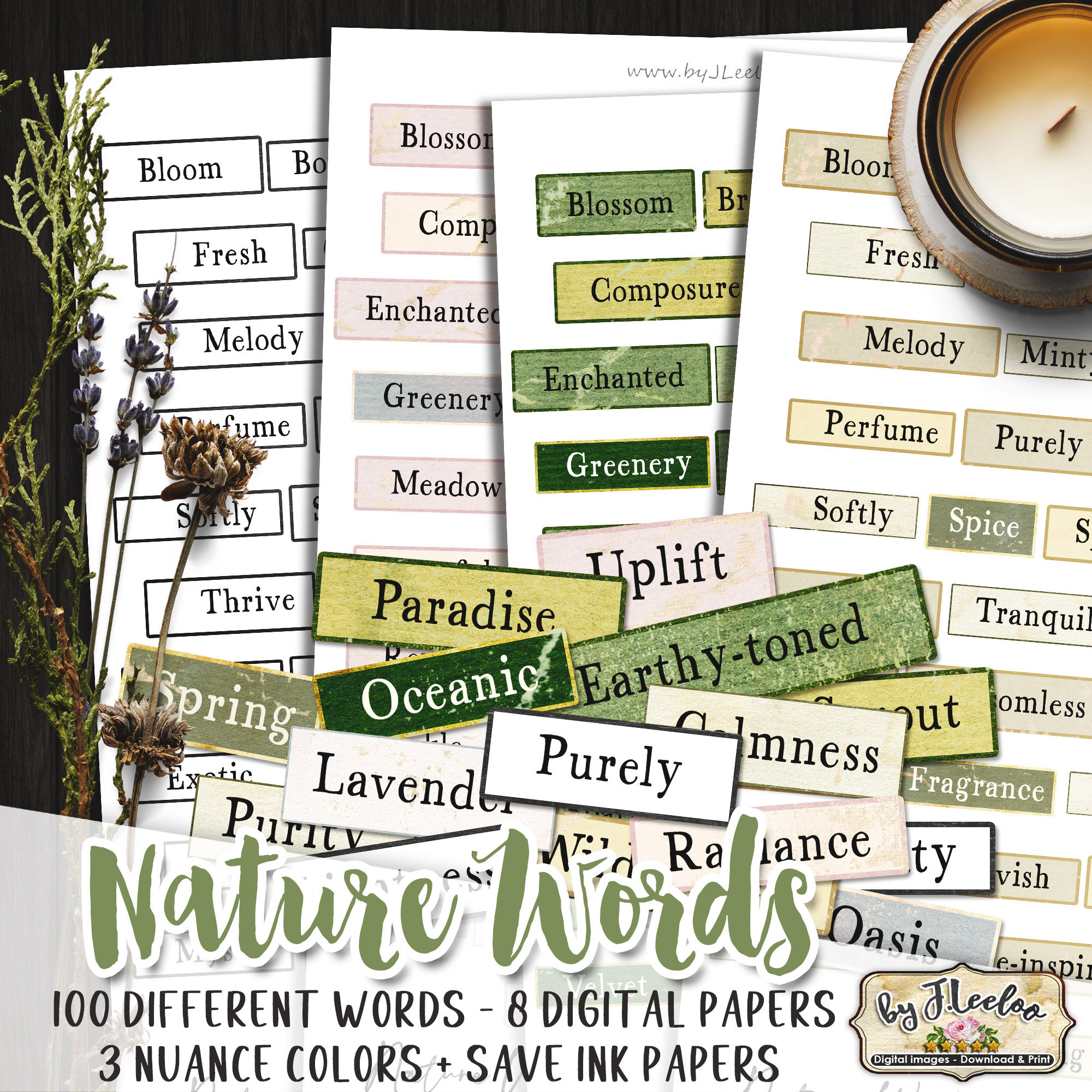 NATURE WORDS labels printable positive words | vintage ephemera junk journal diary | instant download images digital collage sheet | tl255