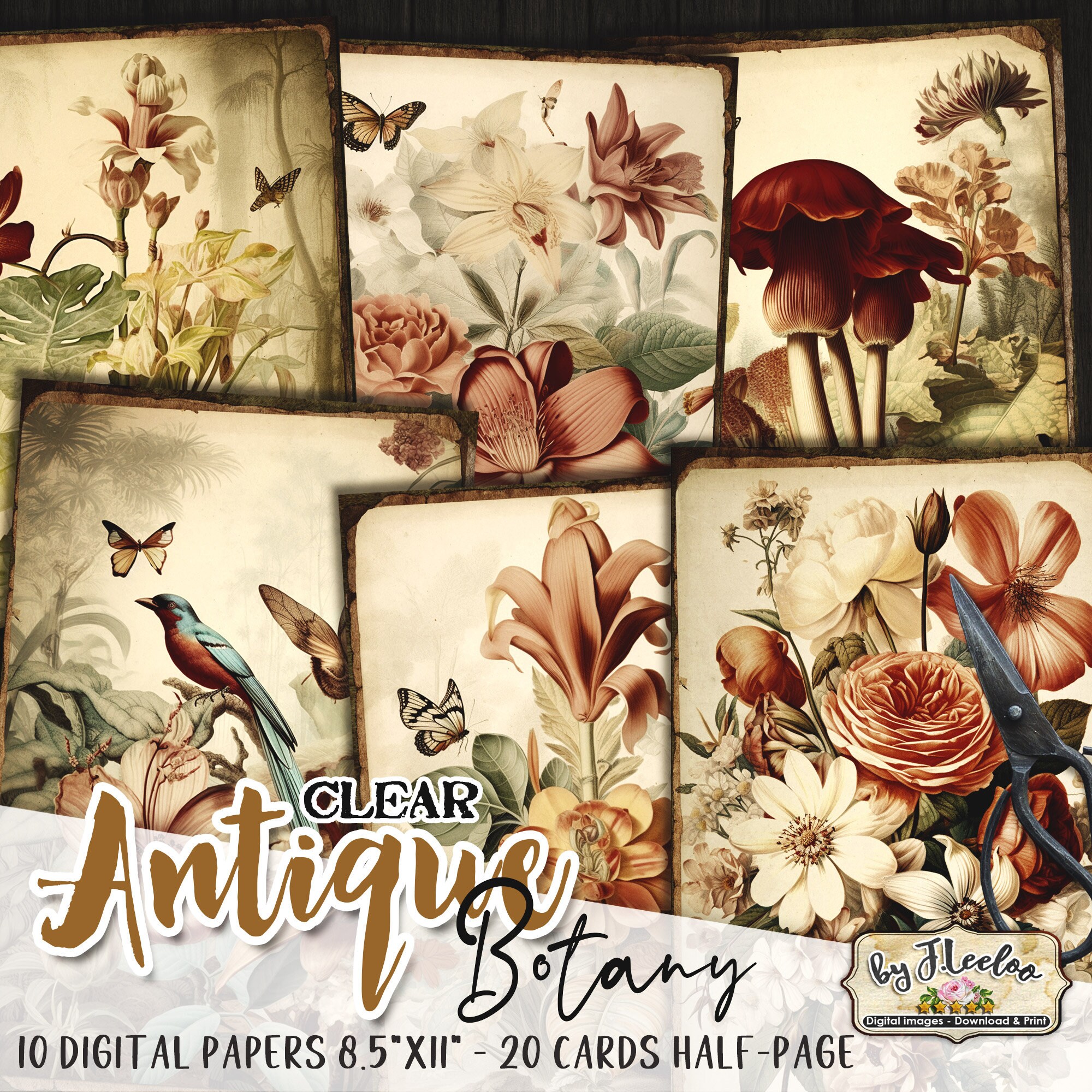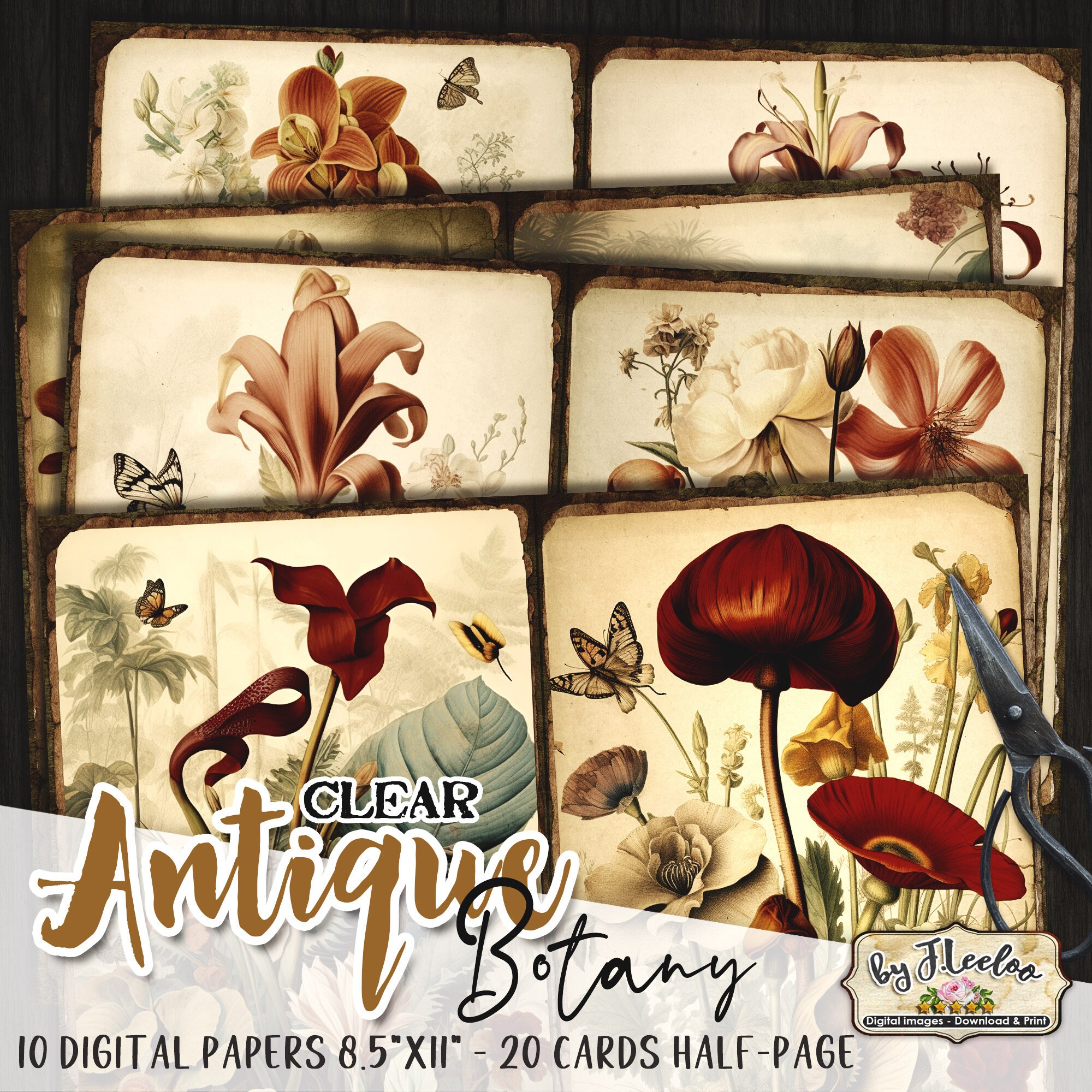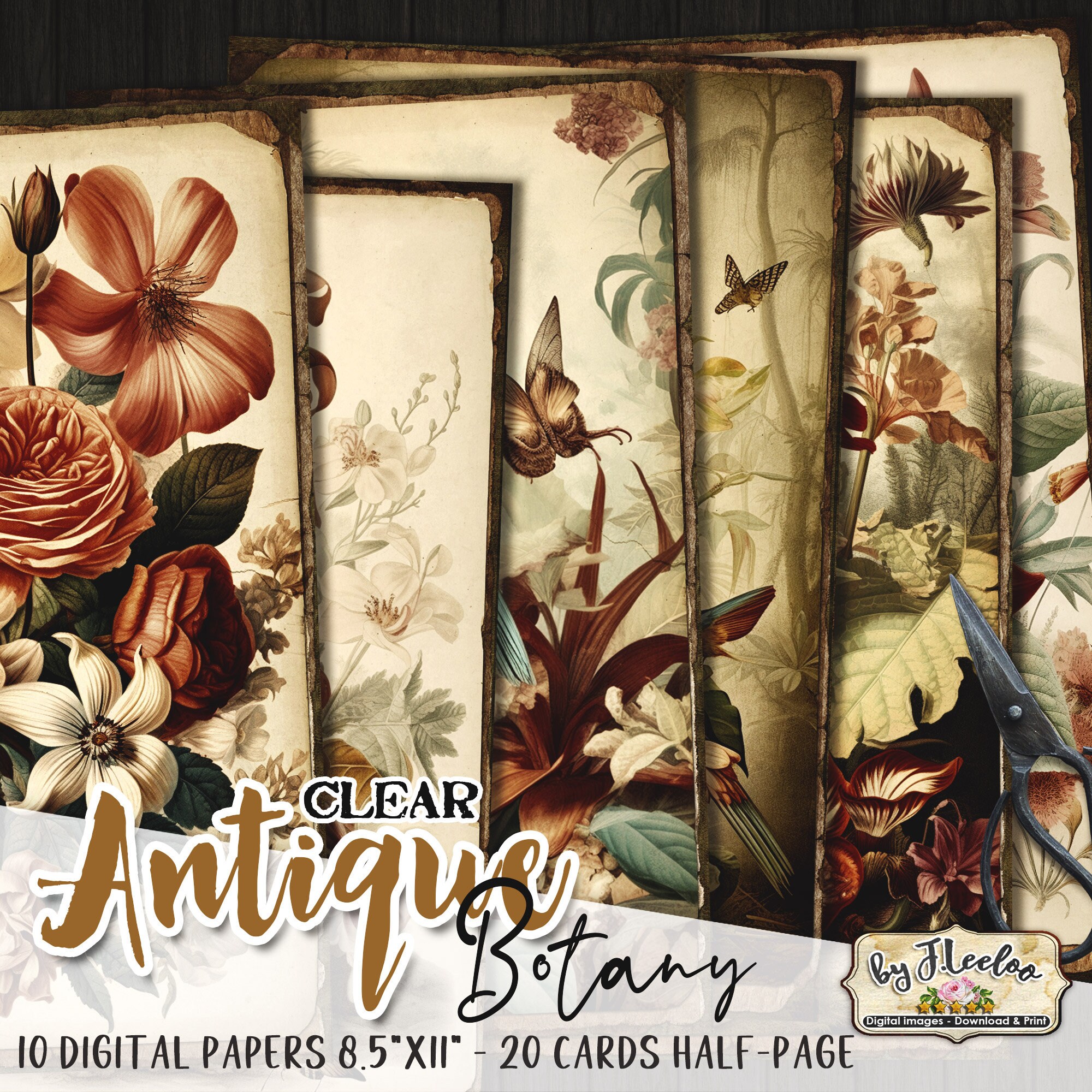 Clear ANTIQUE BOTANY Journal pages | Botanical scrapbook supplies junk journal ephemera chart book | card collage journaling nature | pp606