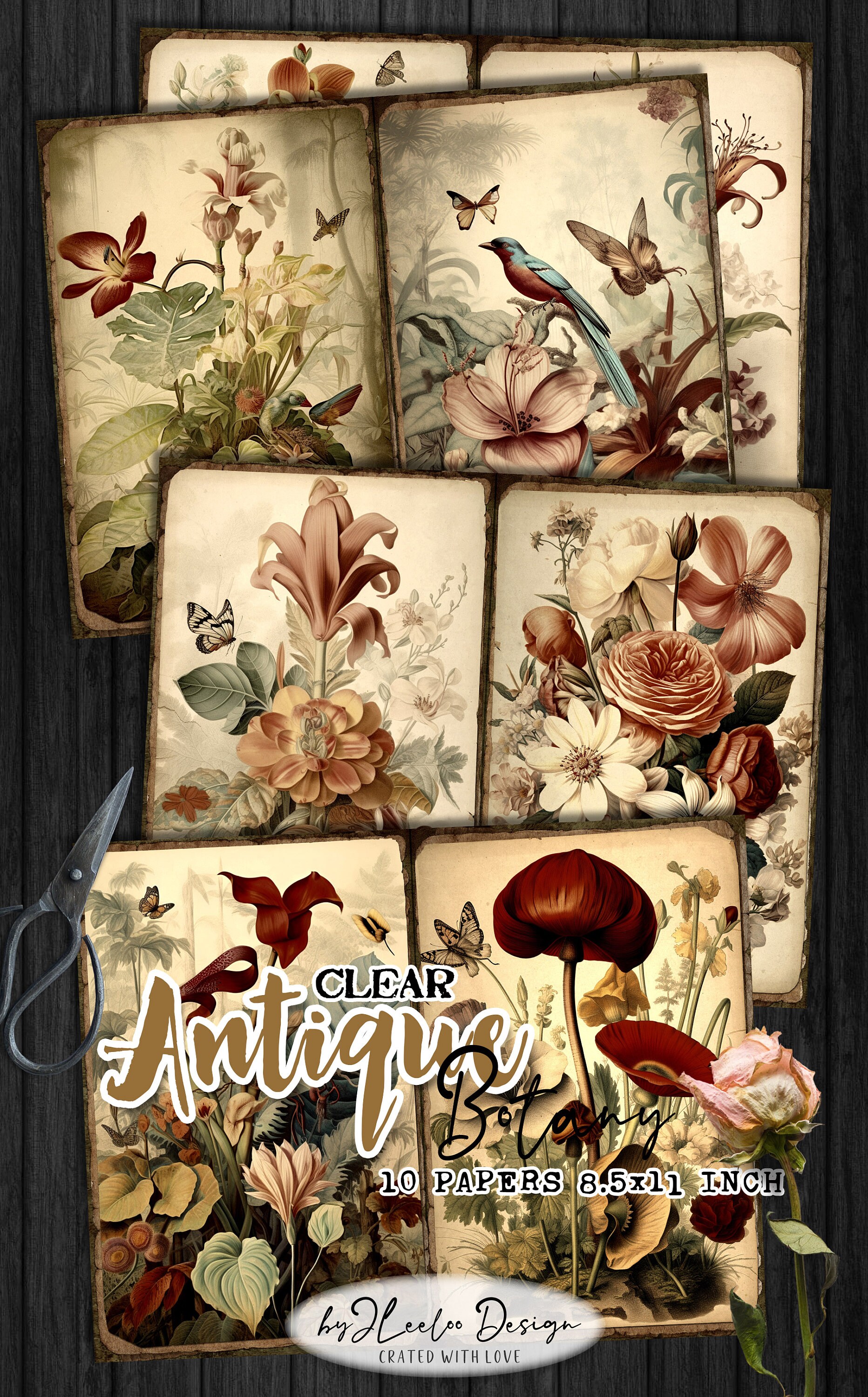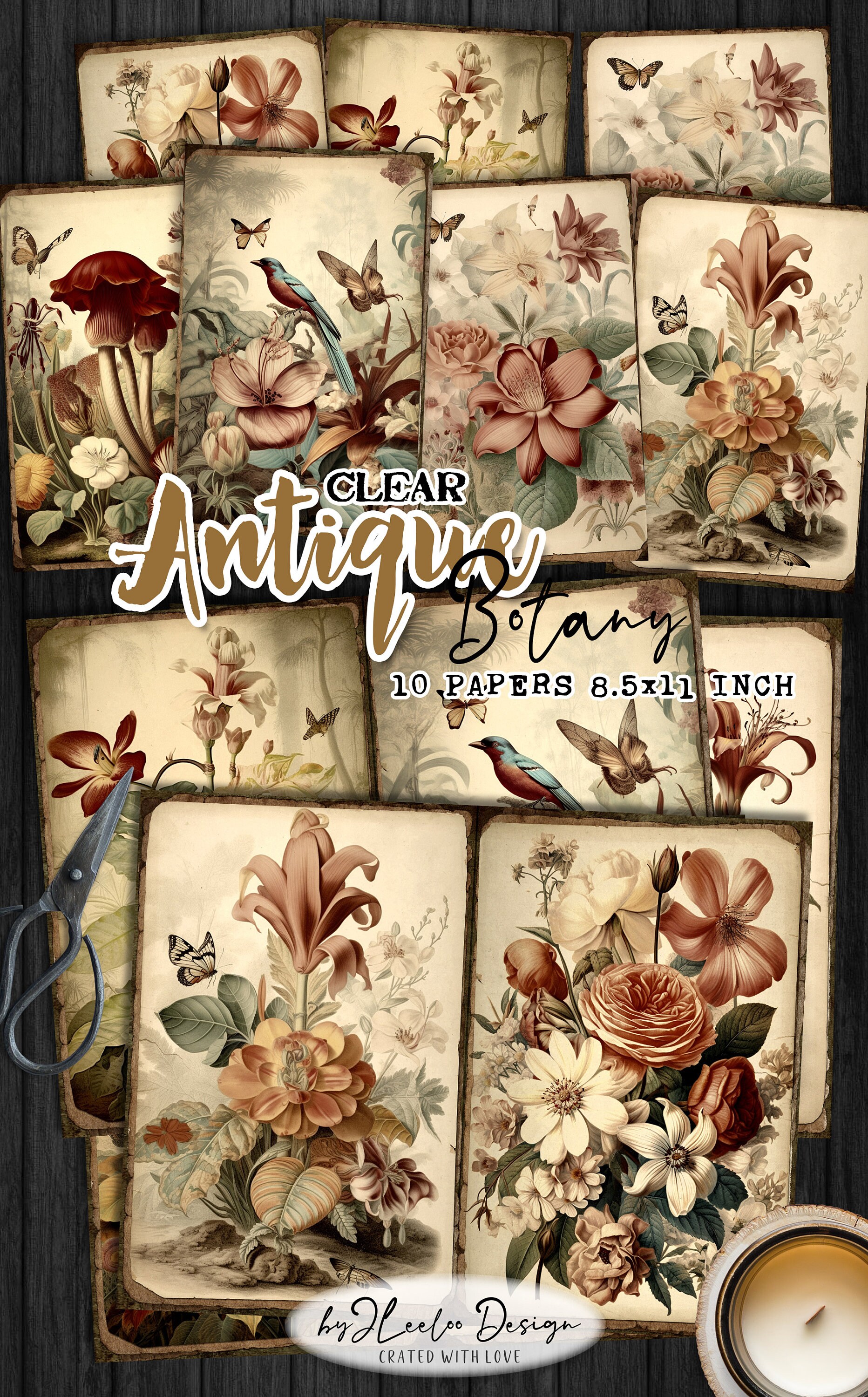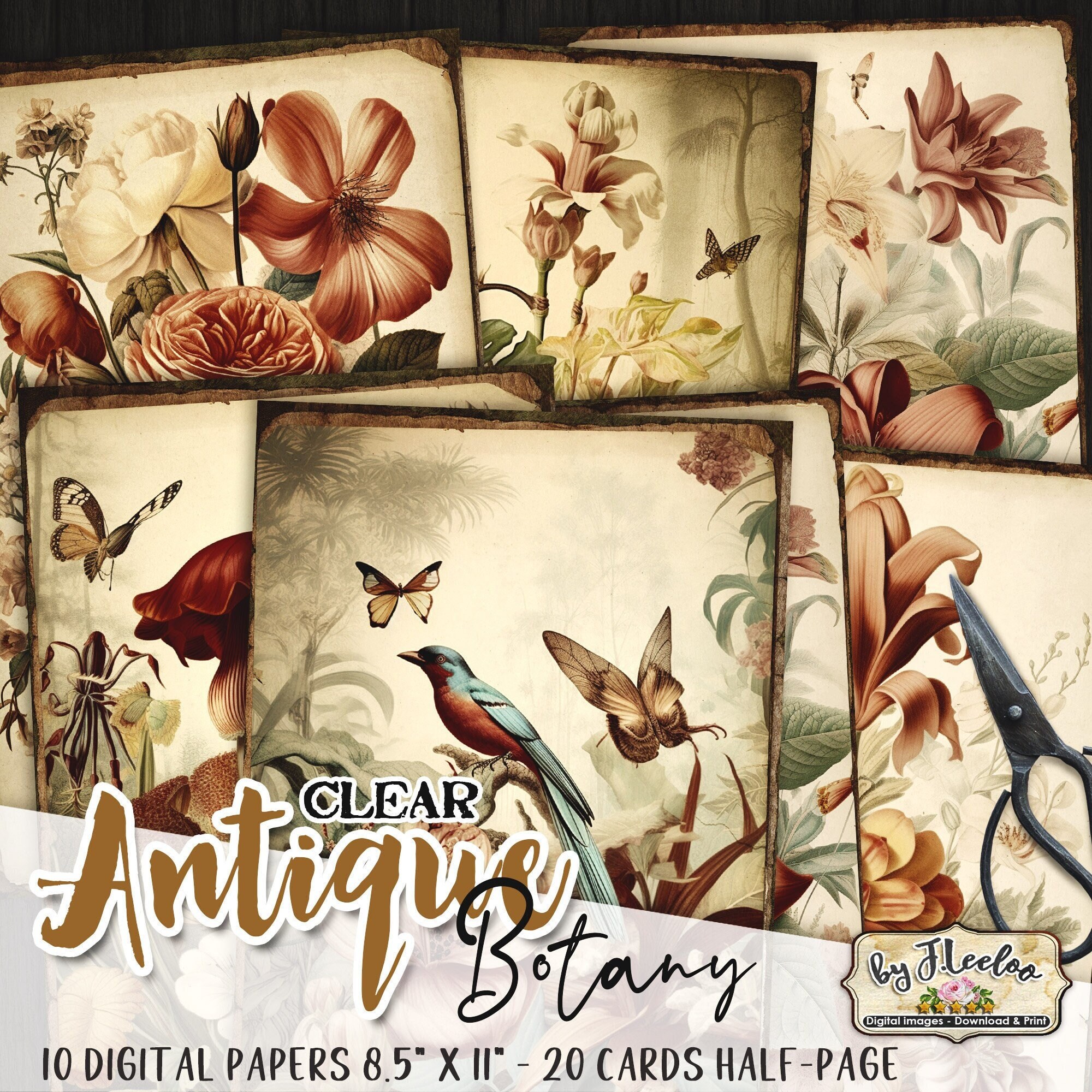 Clear ANTIQUE BOTANY Journal pages | Botanical scrapbook supplies junk journal ephemera chart book | card collage journaling nature | pp606