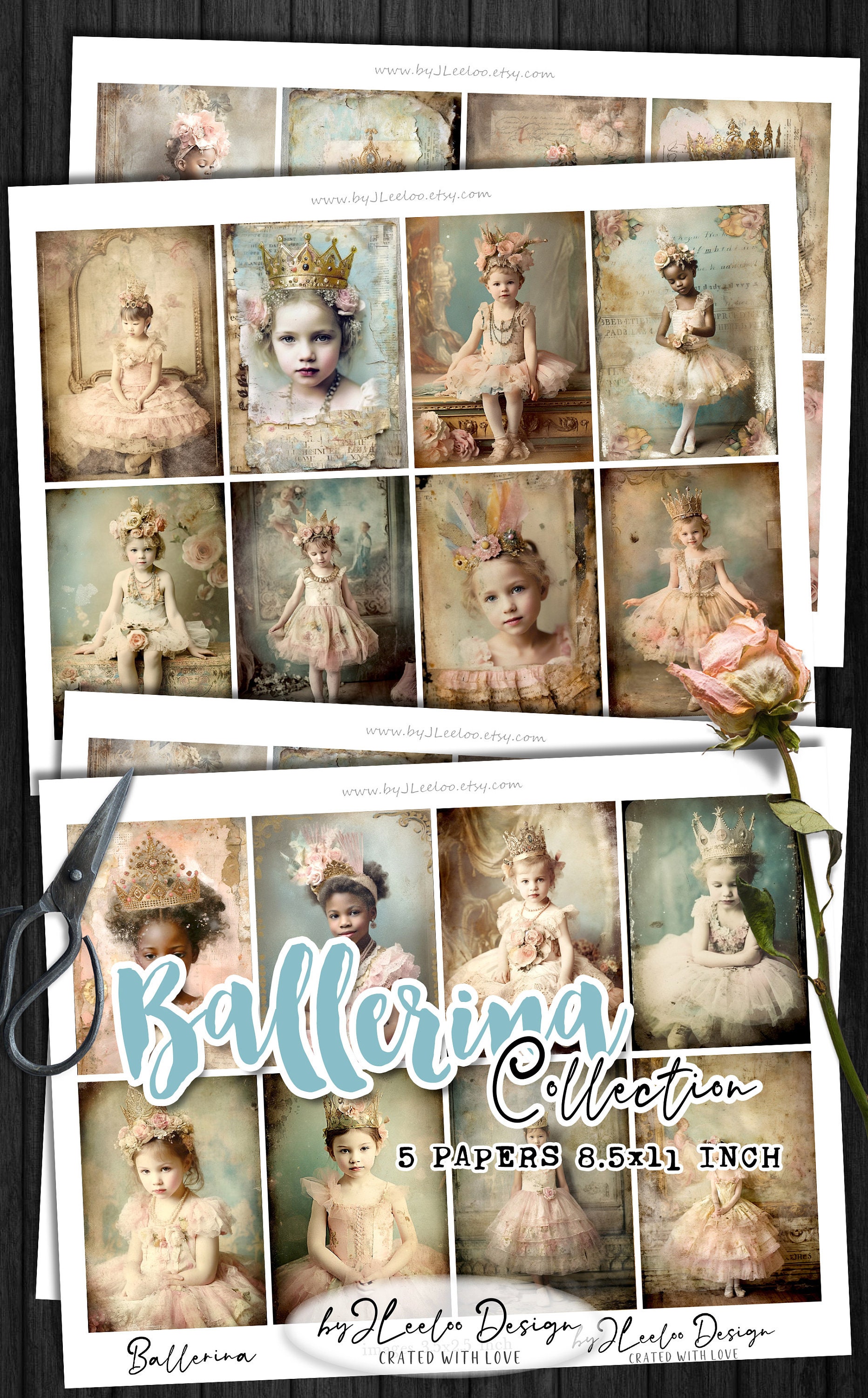 BALLERINA Collection 40 aceo cards | vintage ephemera junk journal | Shabby chic supplies printable | making tattered ballet theme | ac134