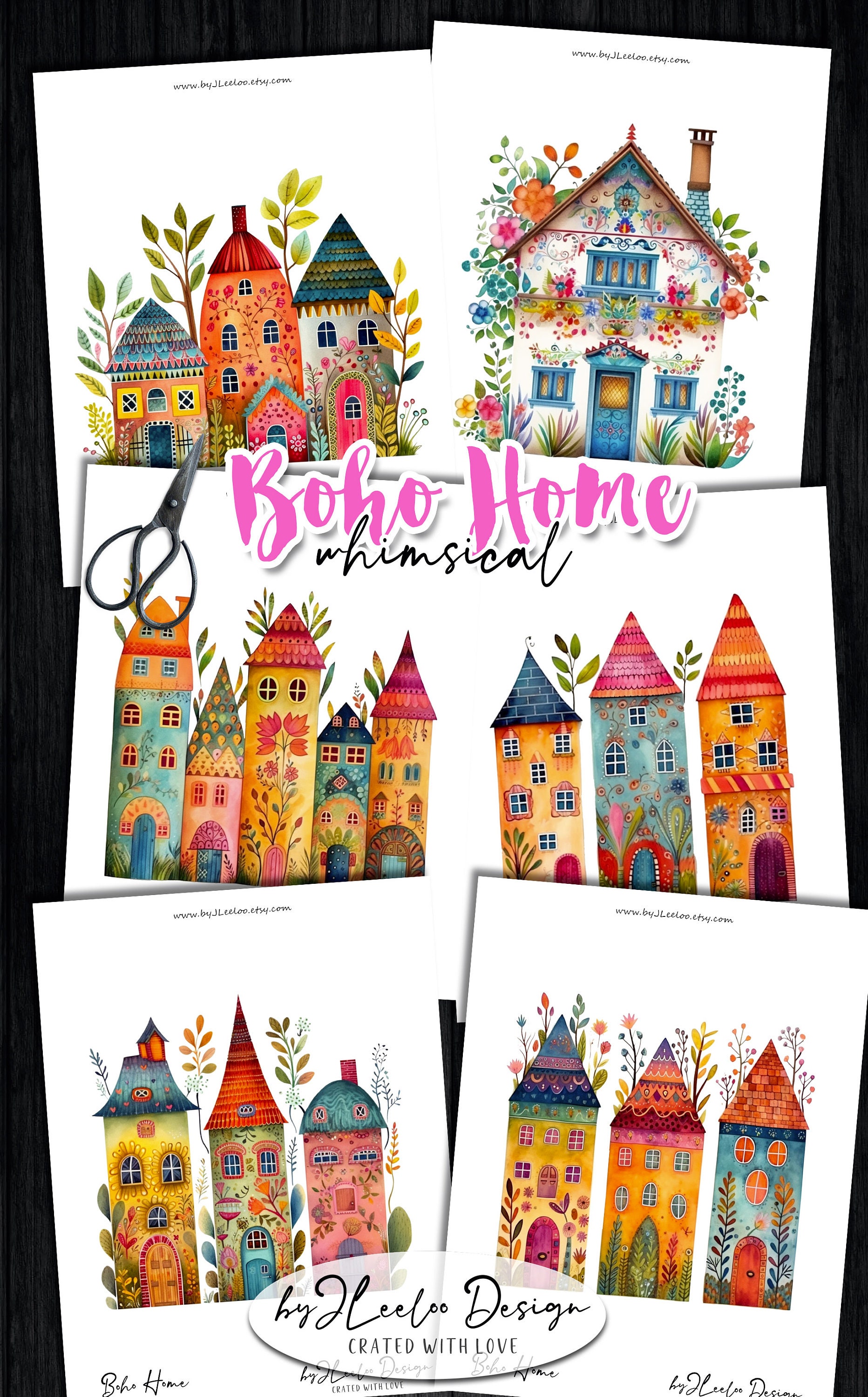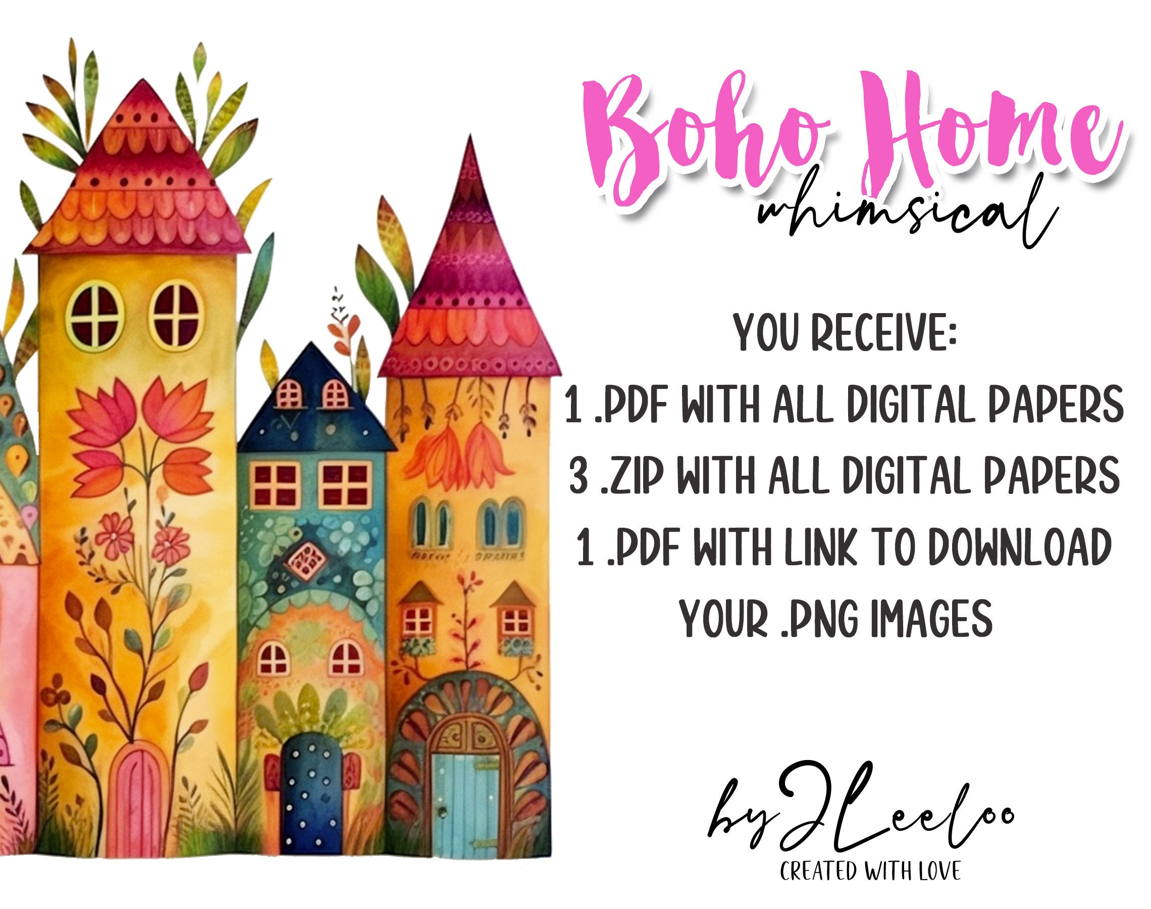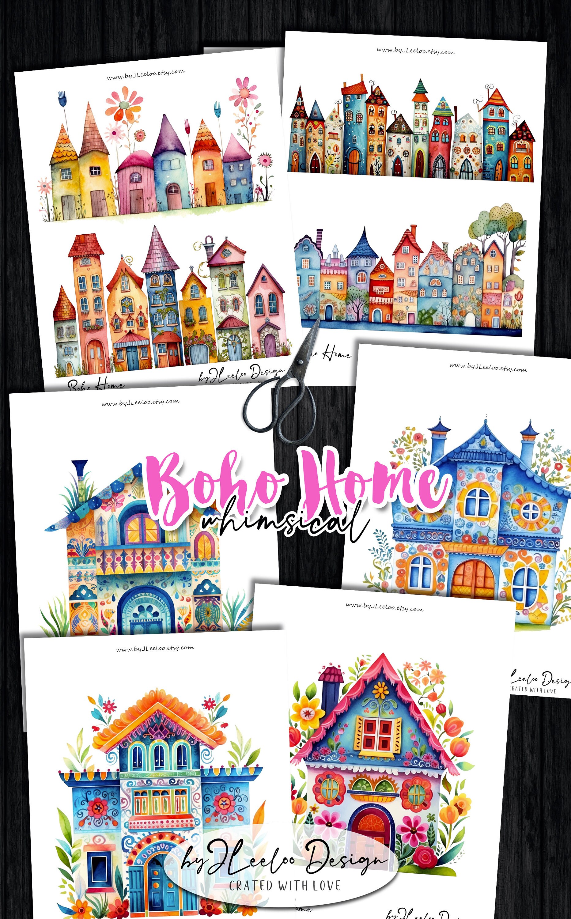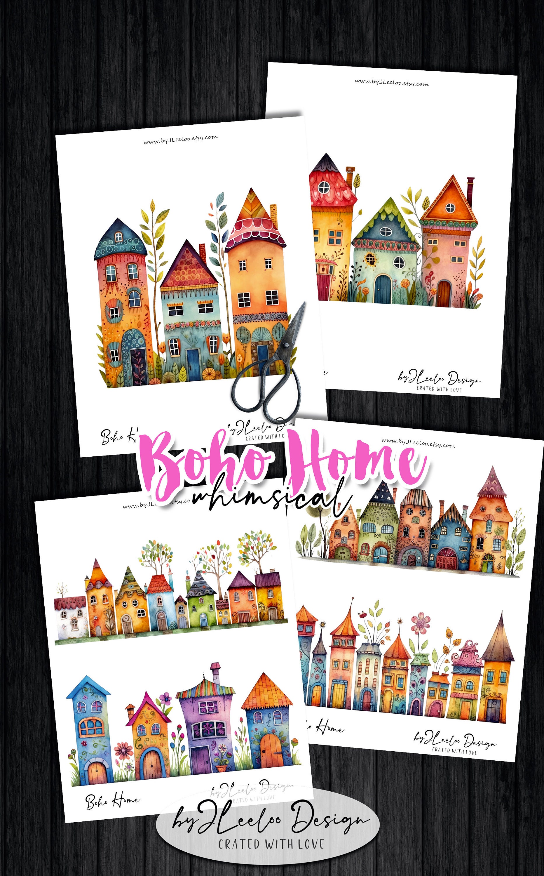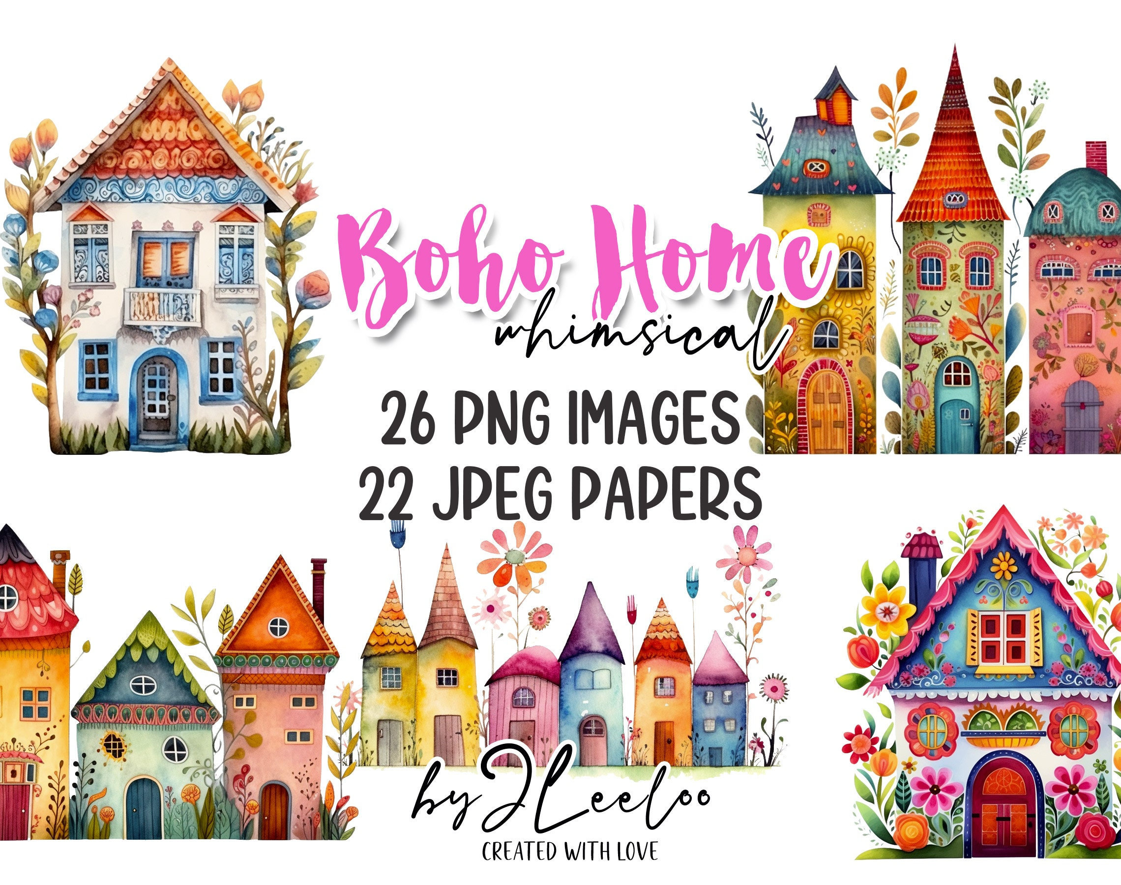 BOHO HOME PNG Clipart paper craft supplies | whimsical junk journal elements vintage | quirky mixed media printable | commercial use | cl148