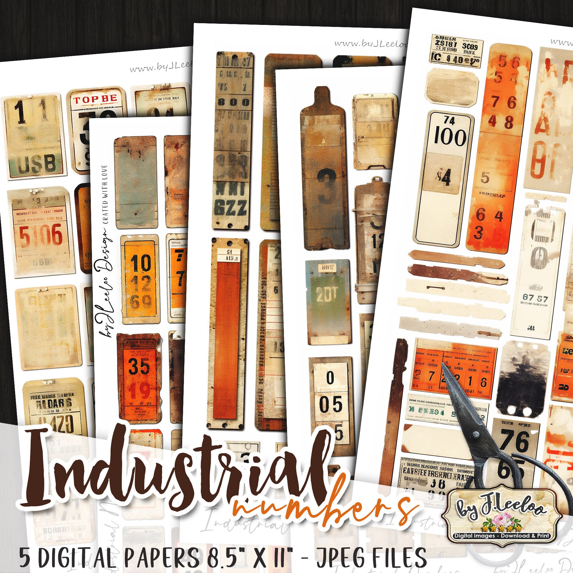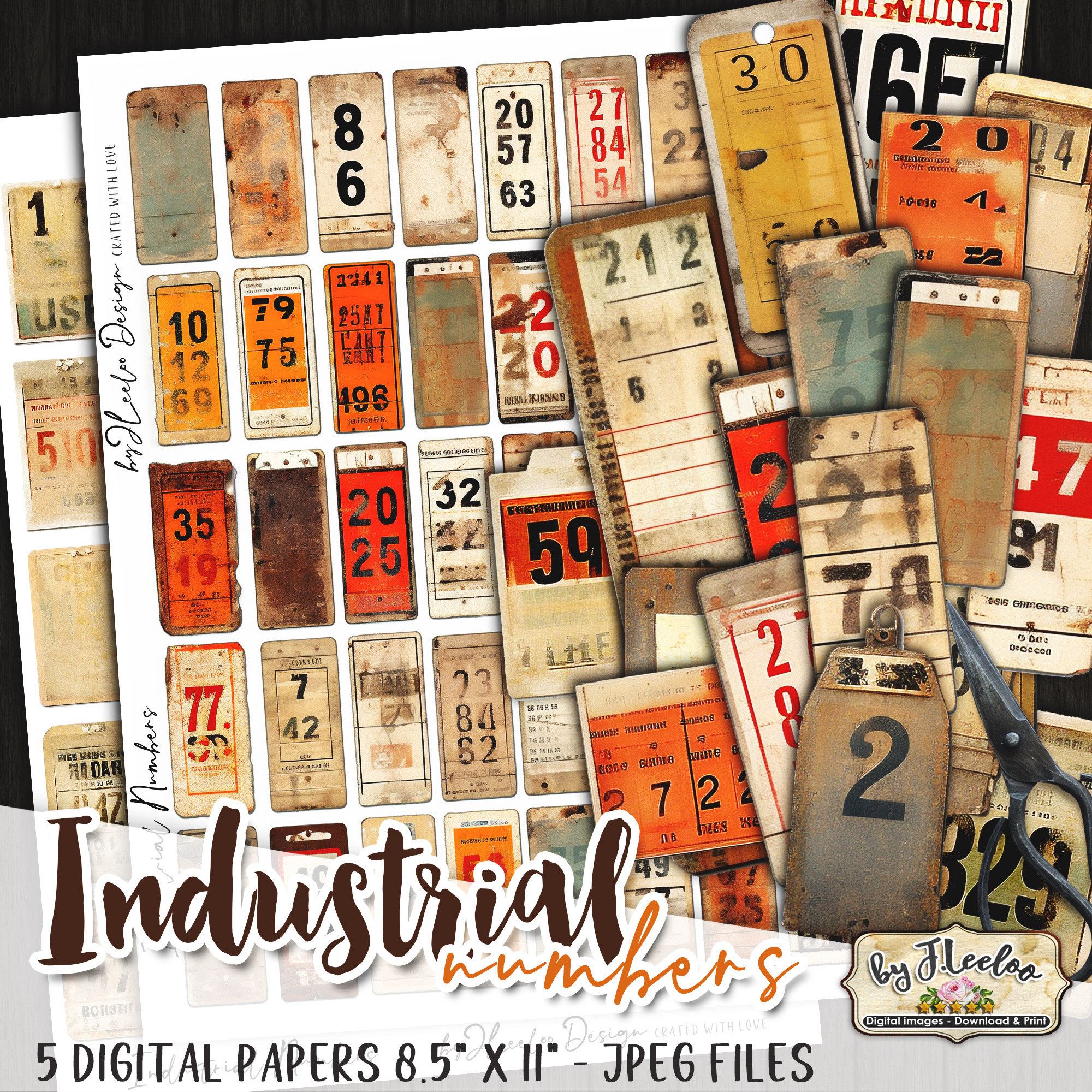 INDUSTRIAL NUMBERS labels printable steampunk supplies | tags vintage ephemera junk journal | masculine images digital collage sheet | tl256