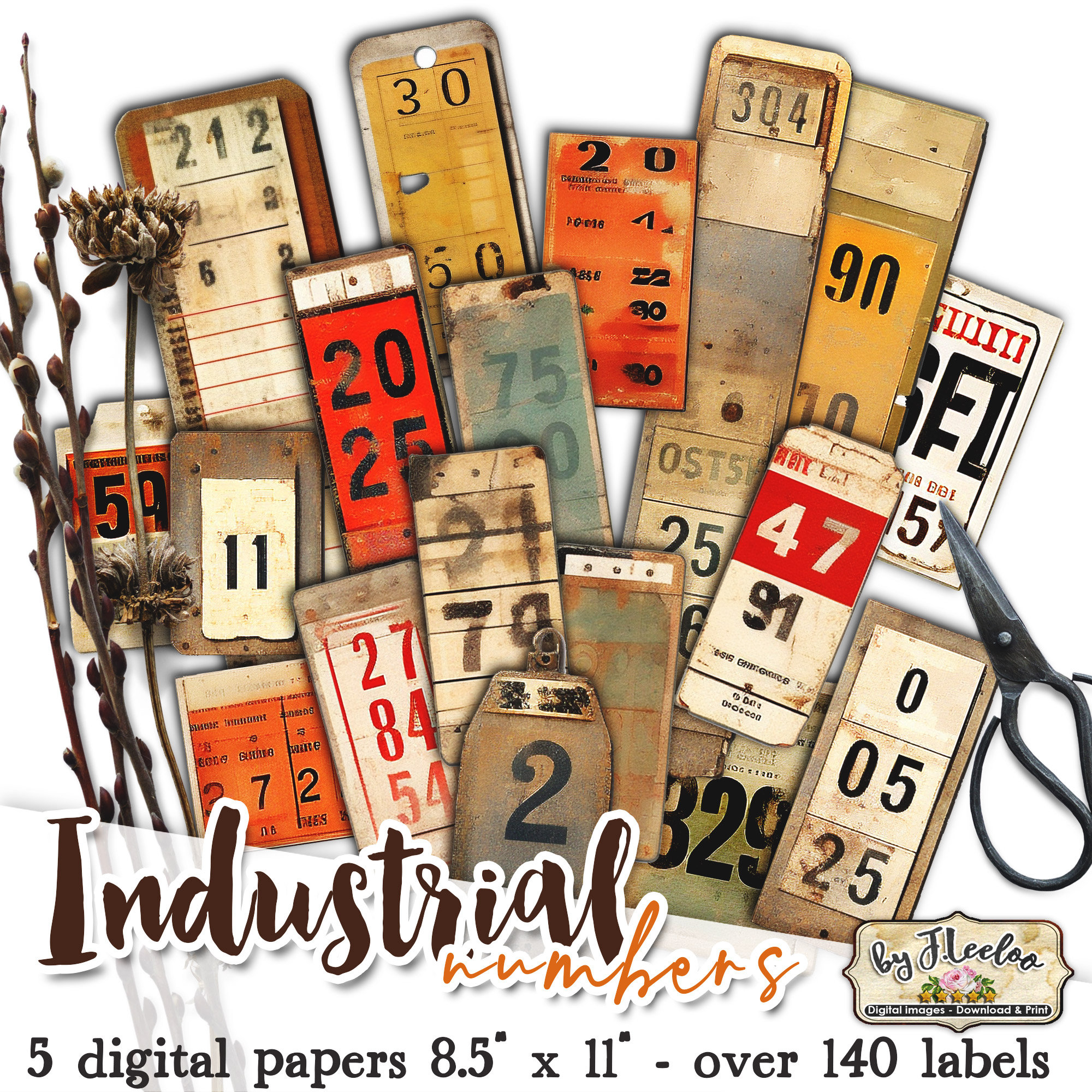 If you like these industrial labels here you can see another collection: https://www.etsy.com/listing/1474134272/vintage-numbers-labels-printable?click_key=cb1e0dbdc9efe43754e5ad1f95636637aaf09ea9%3A1474134272&click_sum=a7d81958&ref=shop_home_active_1&pro=1&sts=1