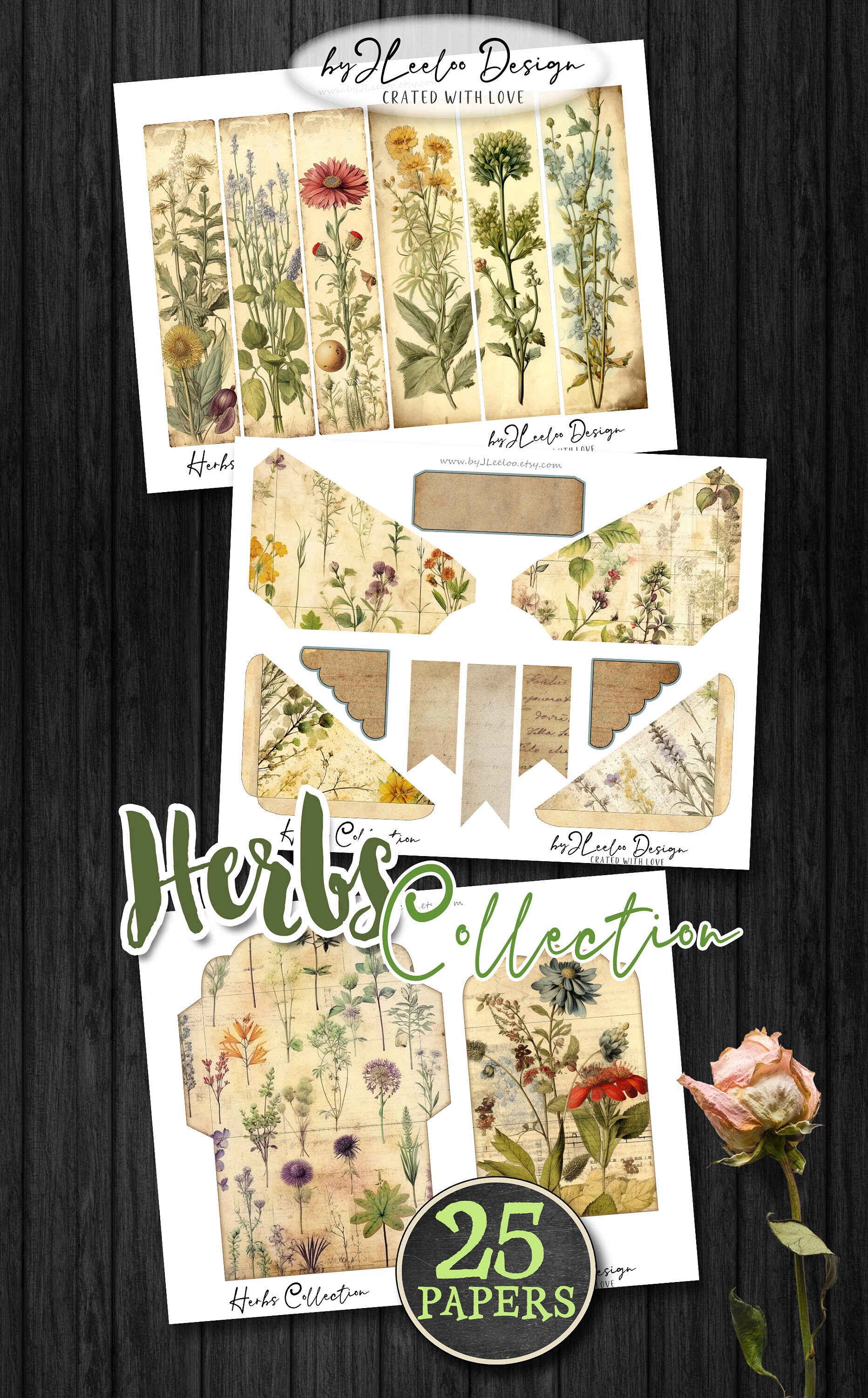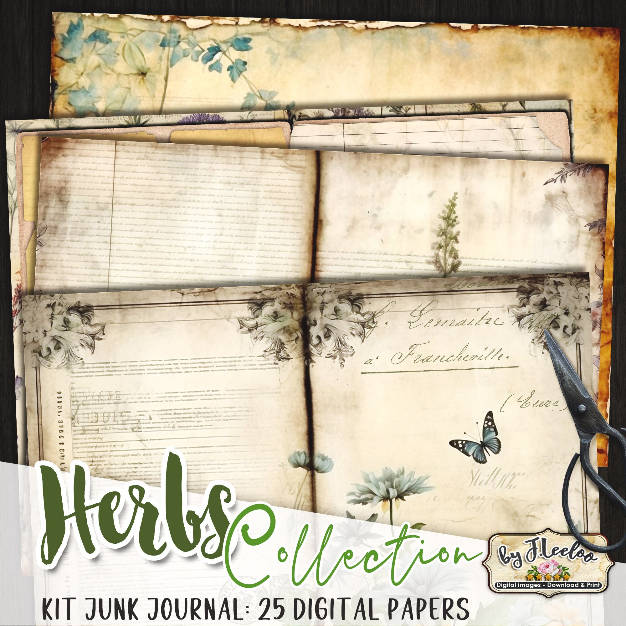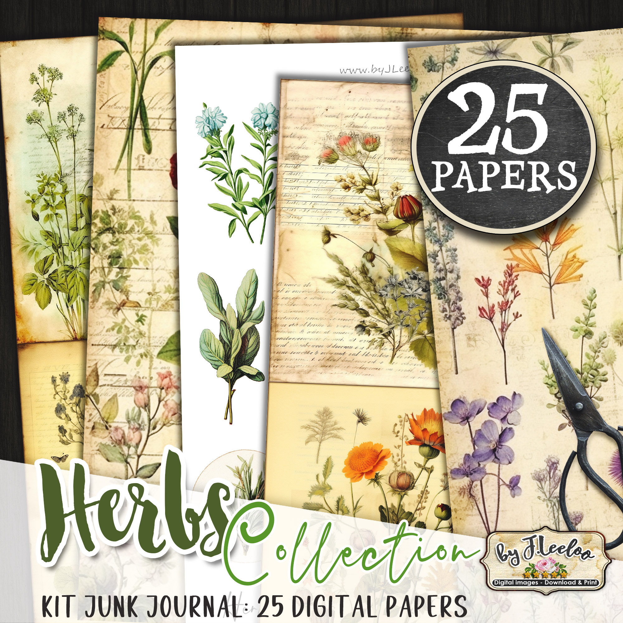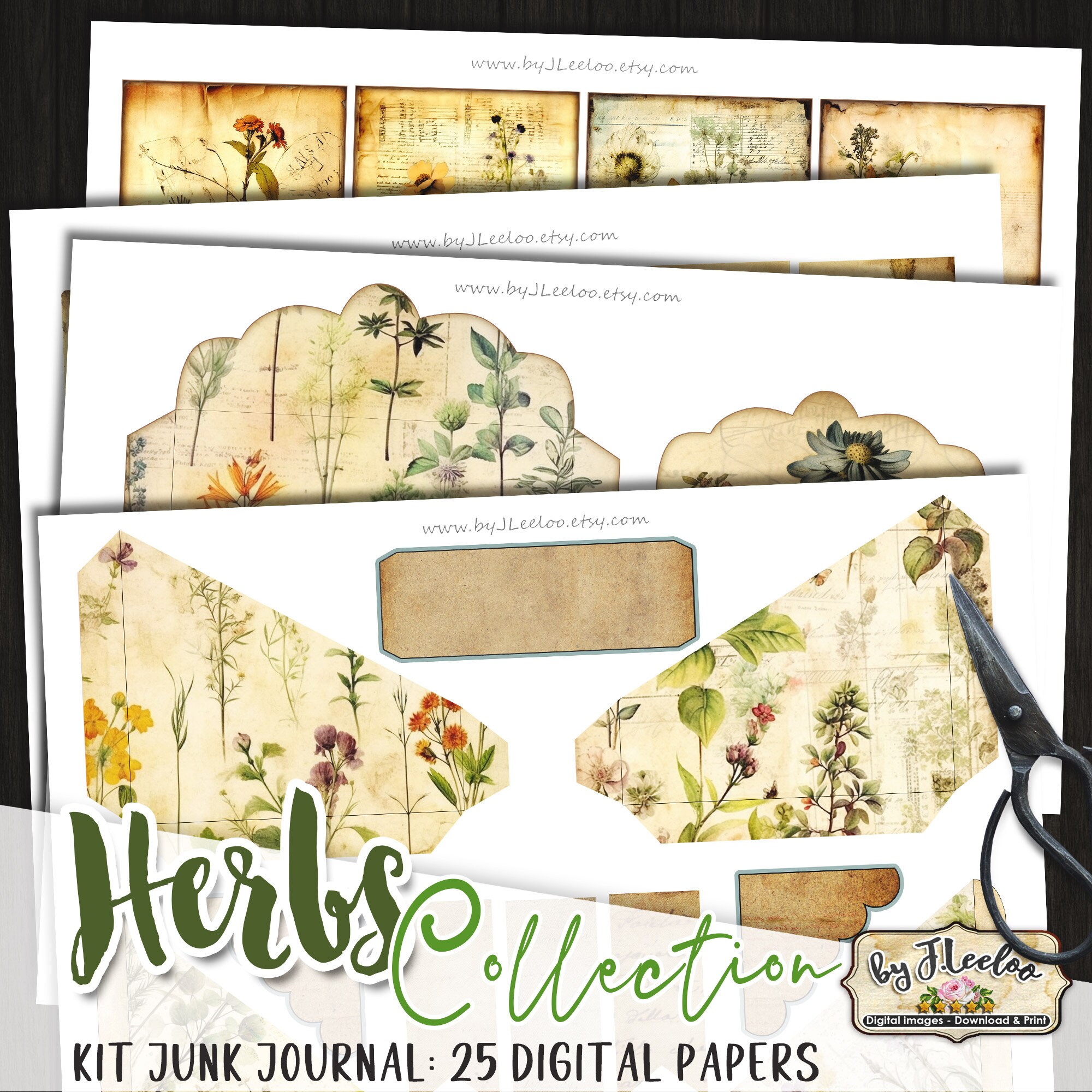 HERBS collection Journal KIT vintage romantic shabby chic papers diy vintage ephemera diary printable collage sheets | pp609
