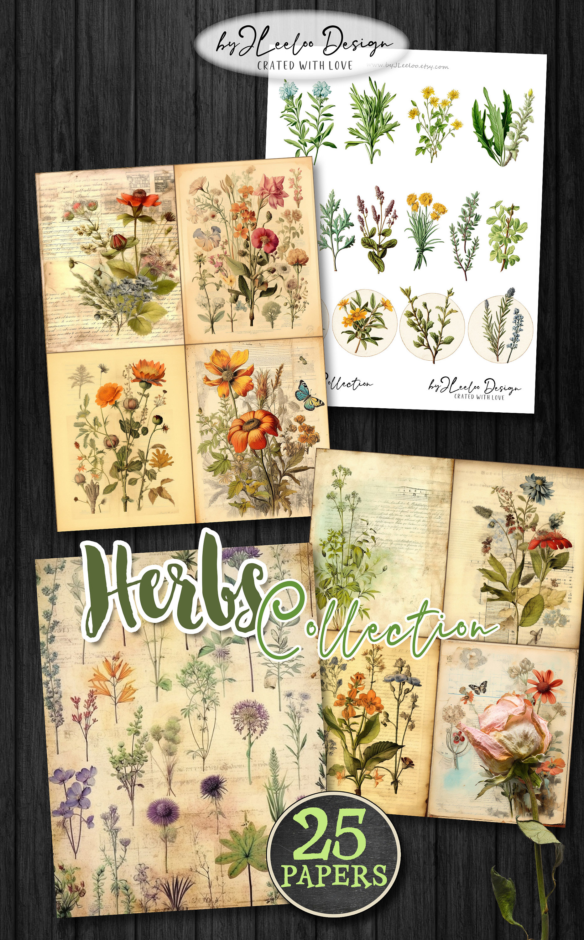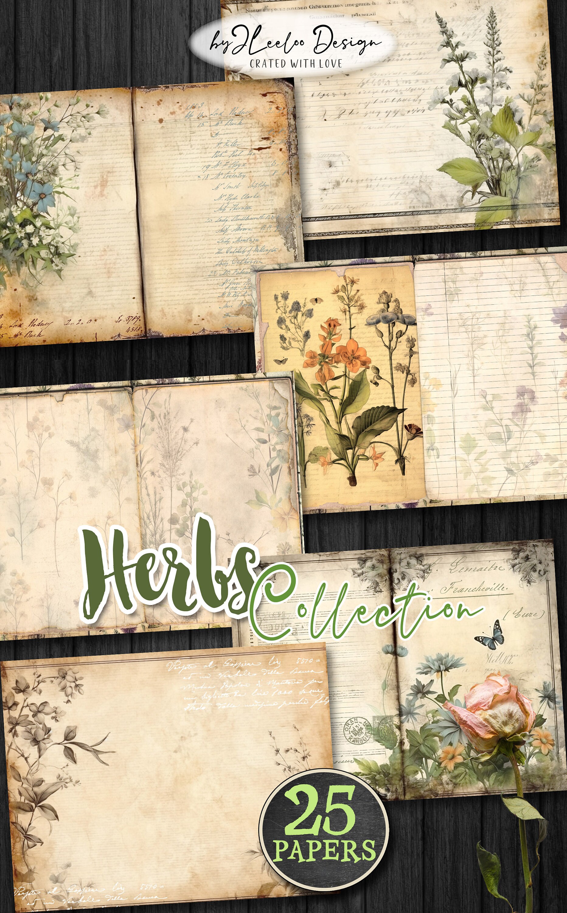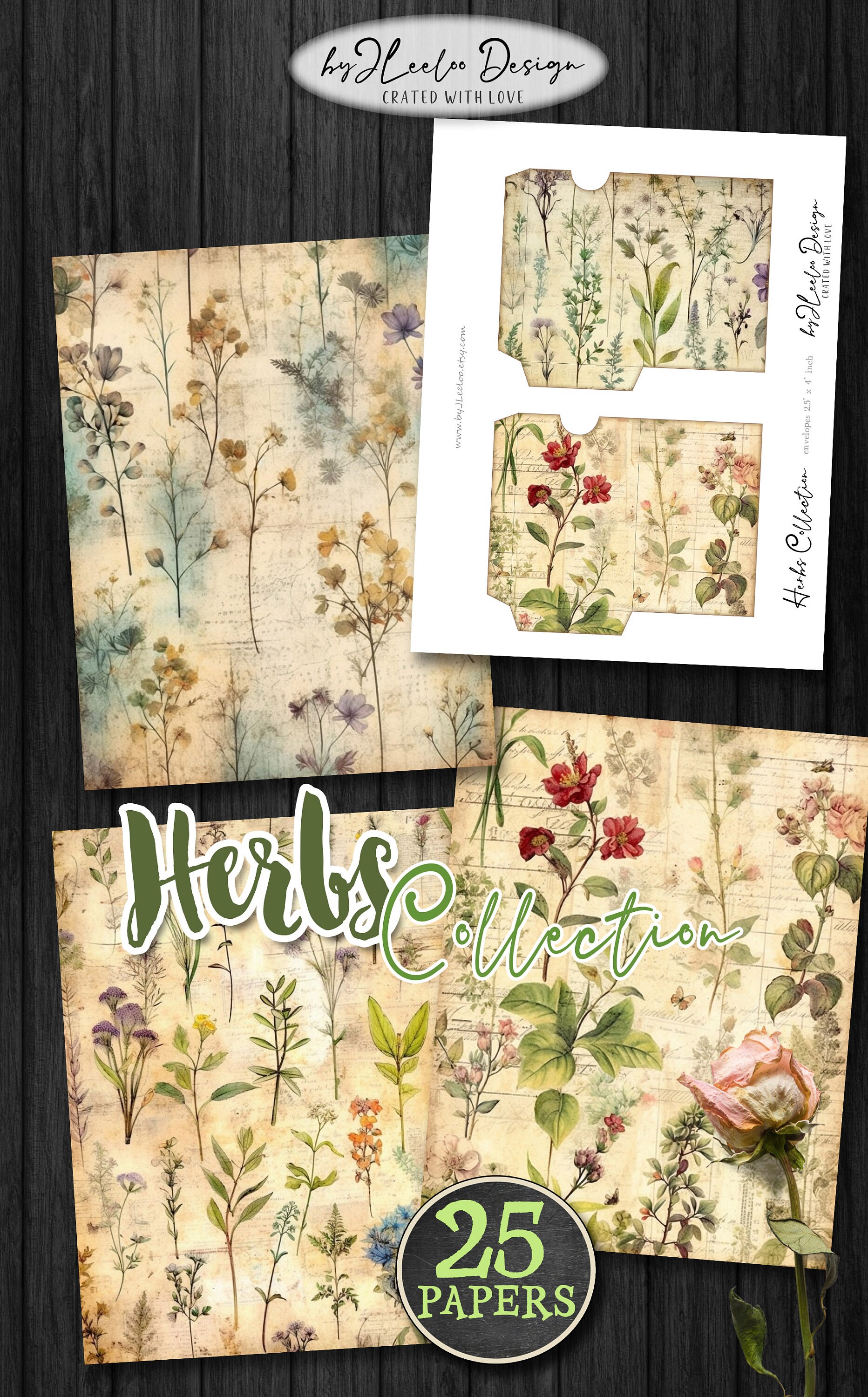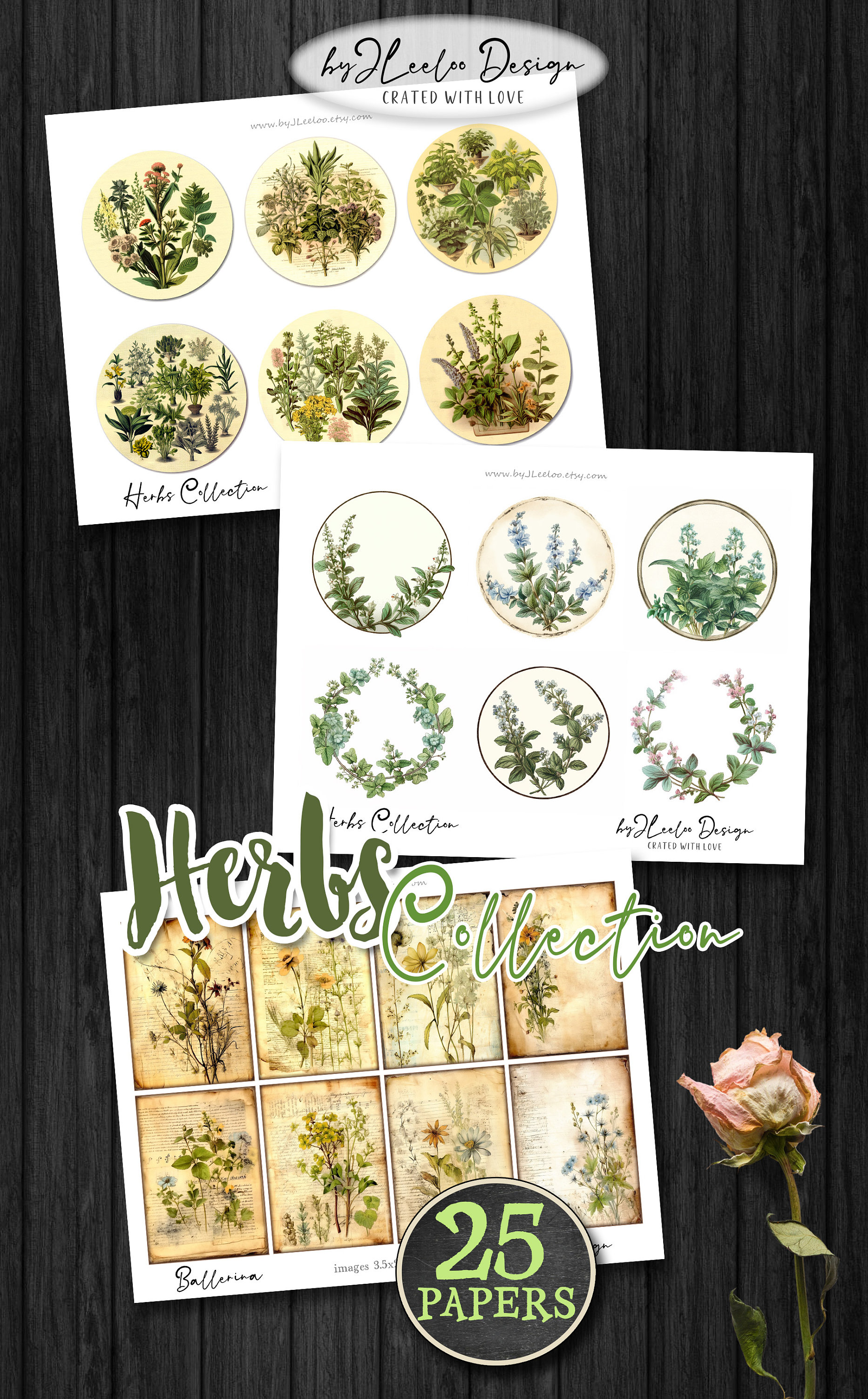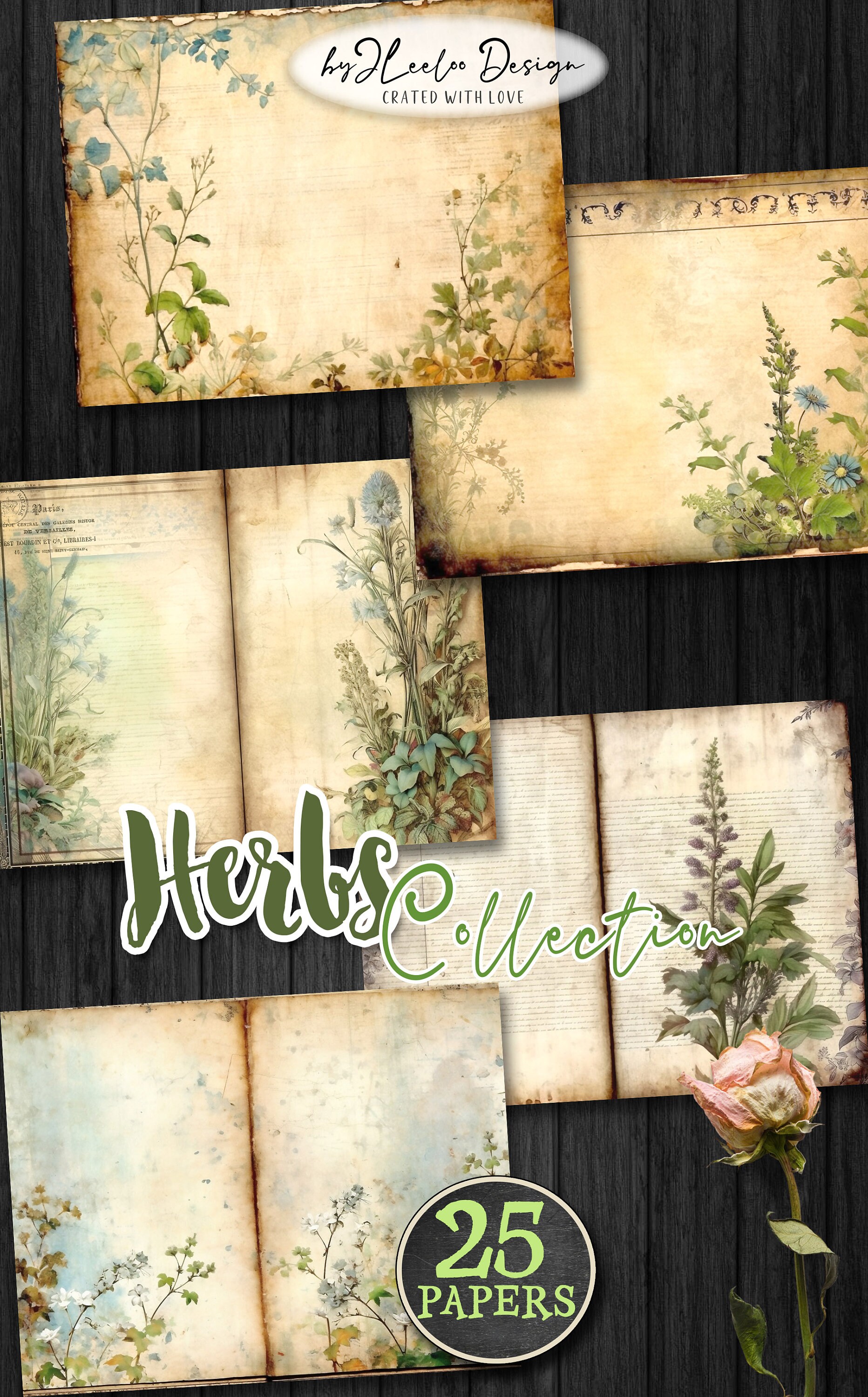 HERBS collection Journal KIT vintage romantic shabby chic papers diy vintage ephemera diary printable collage sheets | pp609