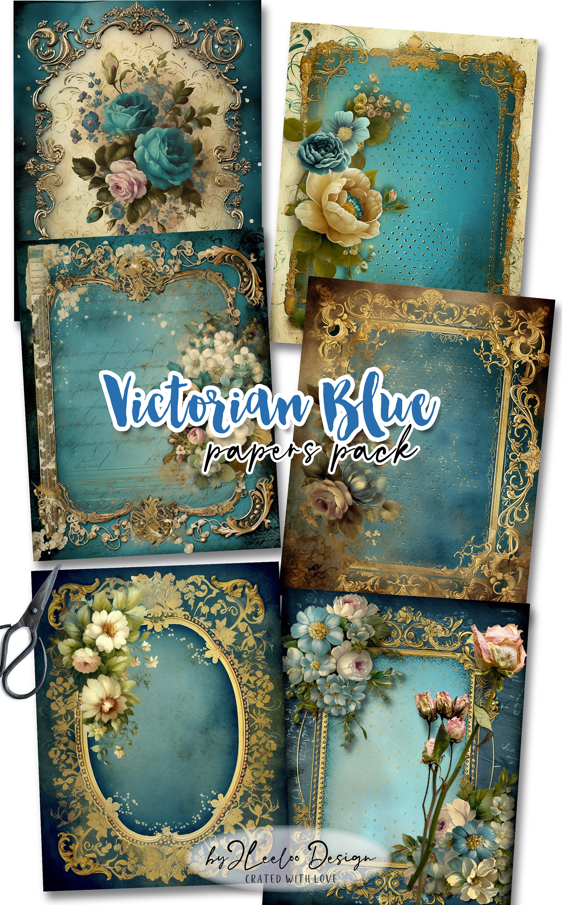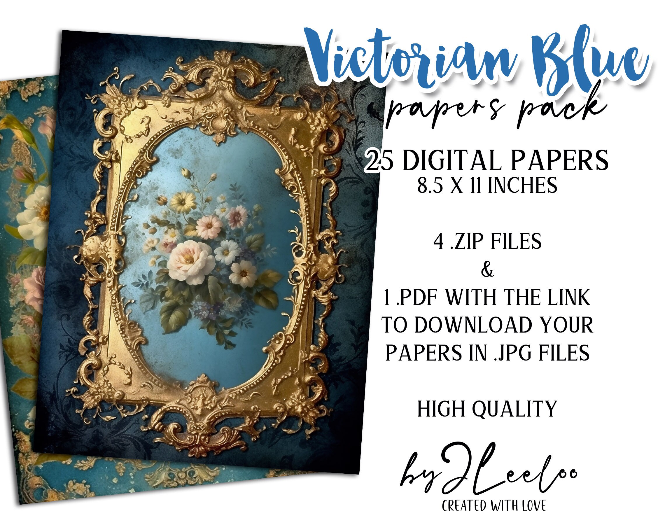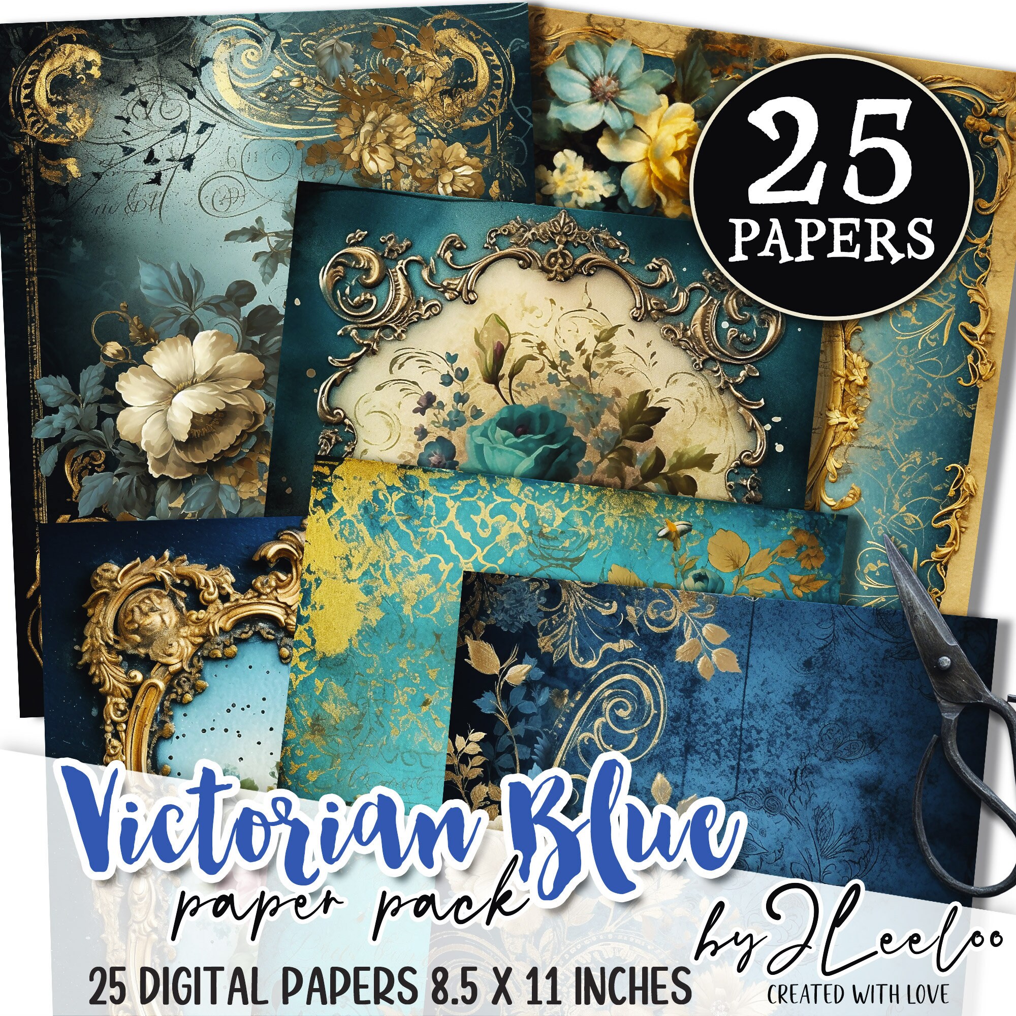 VICTORIAN BLUE french tattered papers | Shabby Chic Junk Journal pages | background vintage card making digital ephemera | pp617