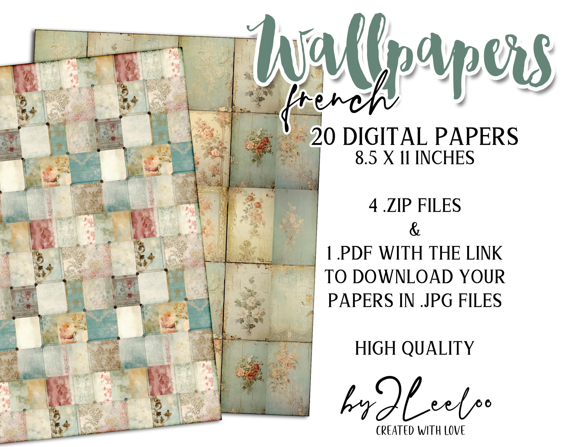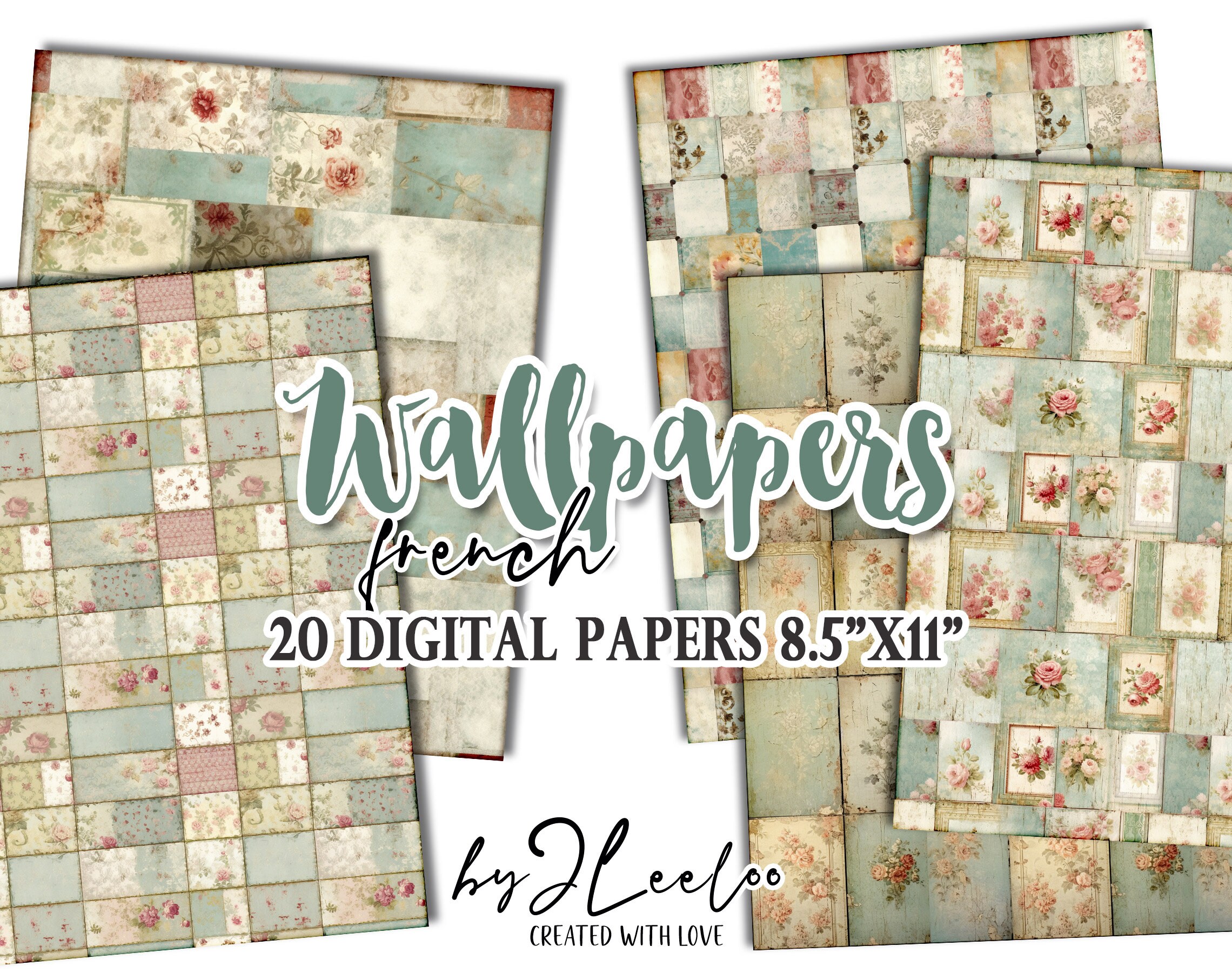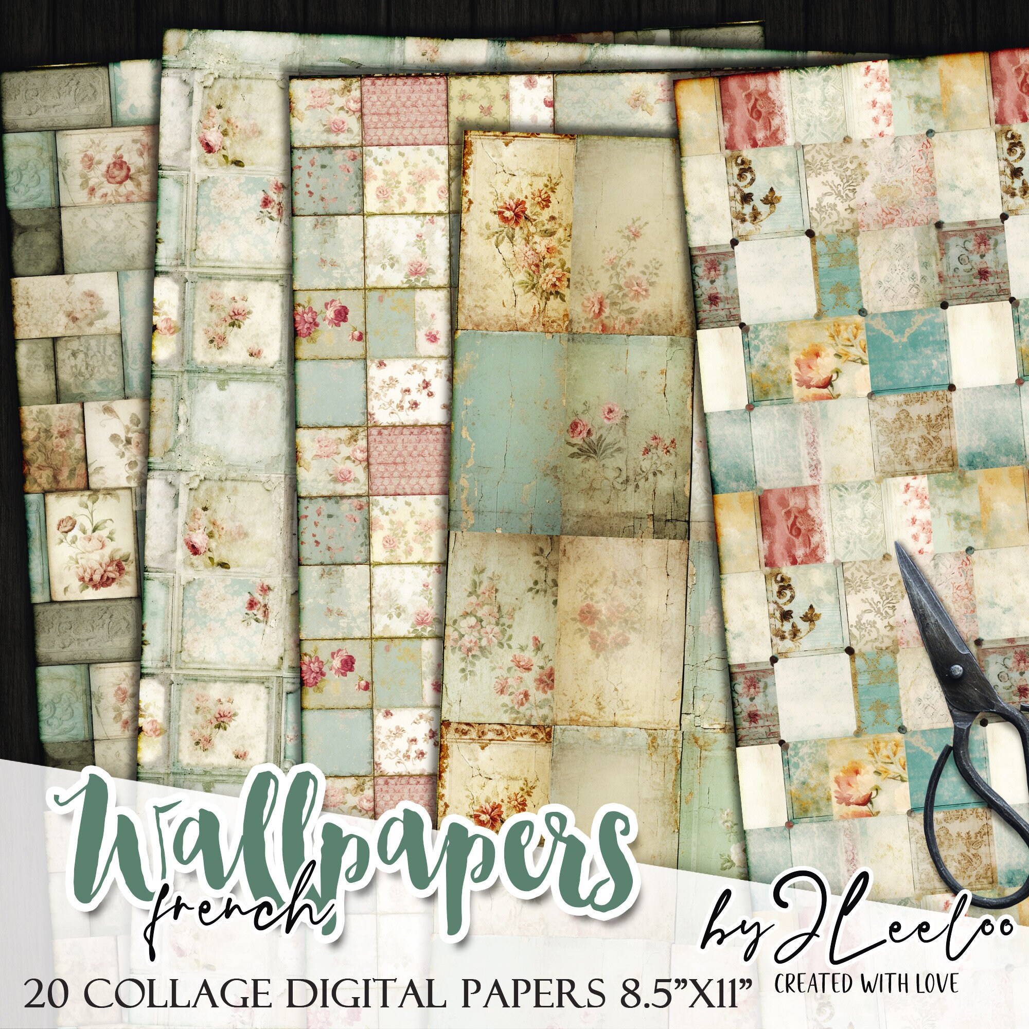 FRENCH WALLPAPERS rough collage papers | Shabby Chic Junk Journal pages | background vintage craft paper digital ephemera | pp618