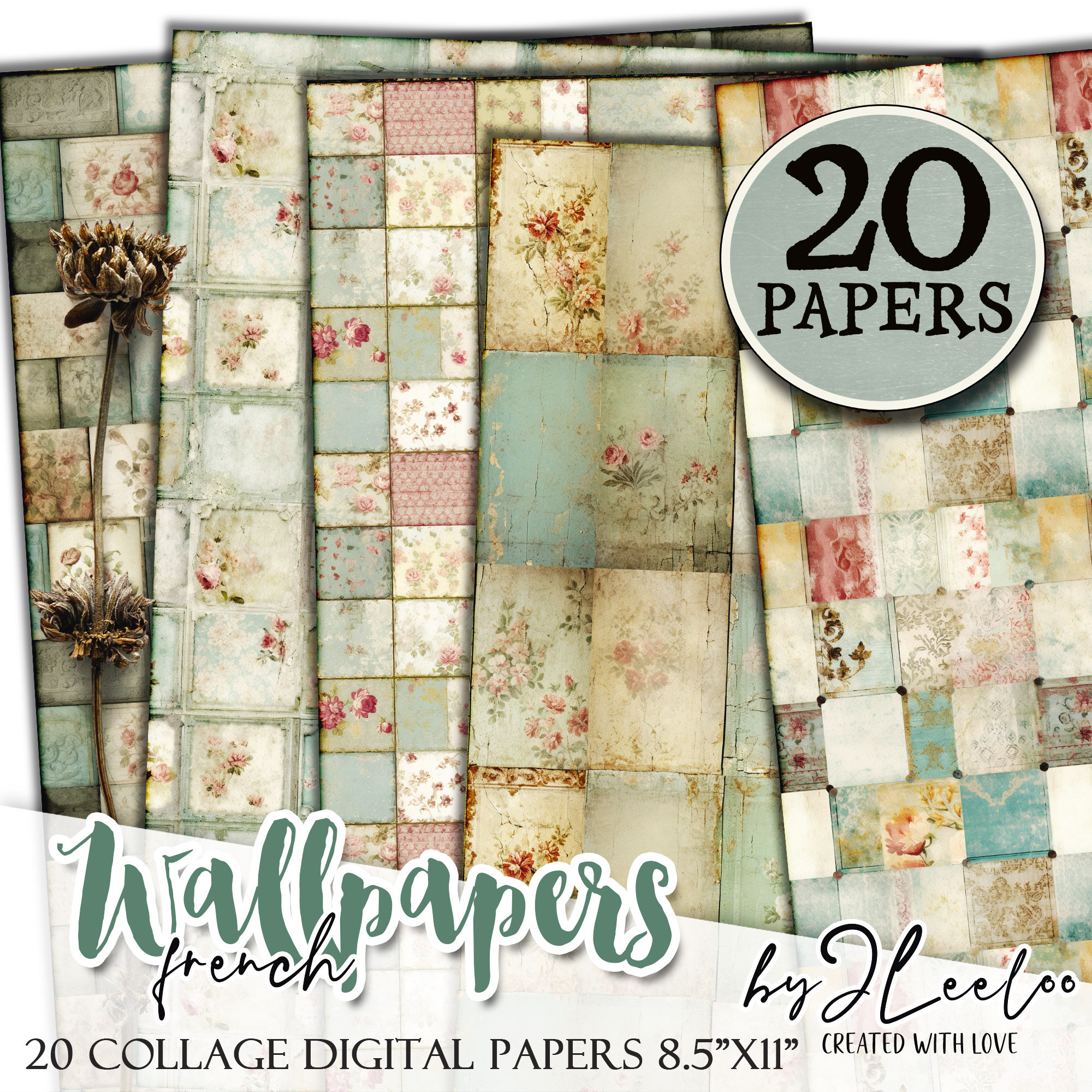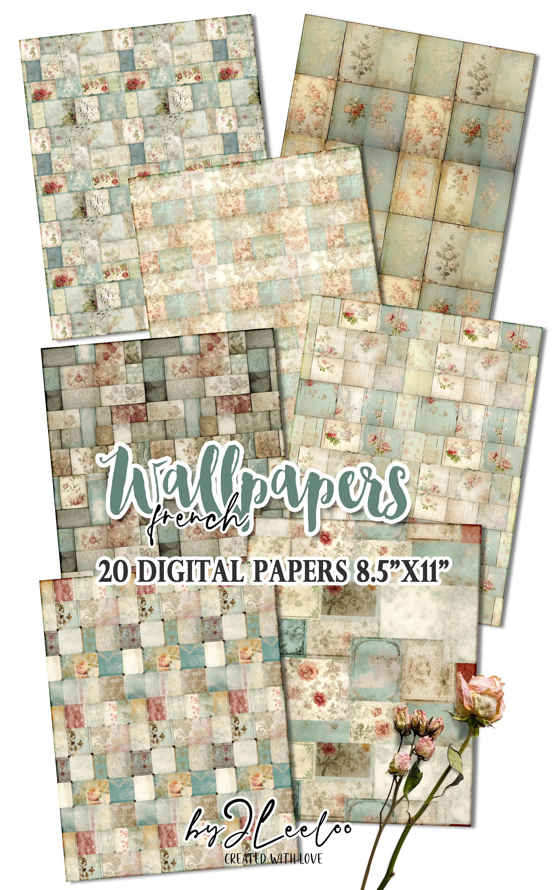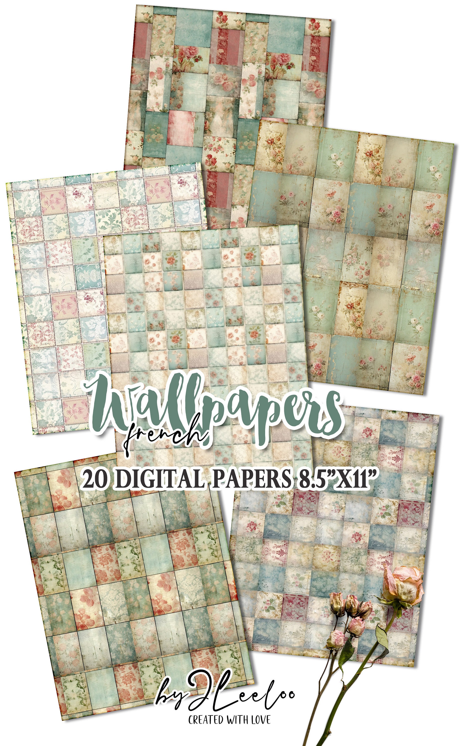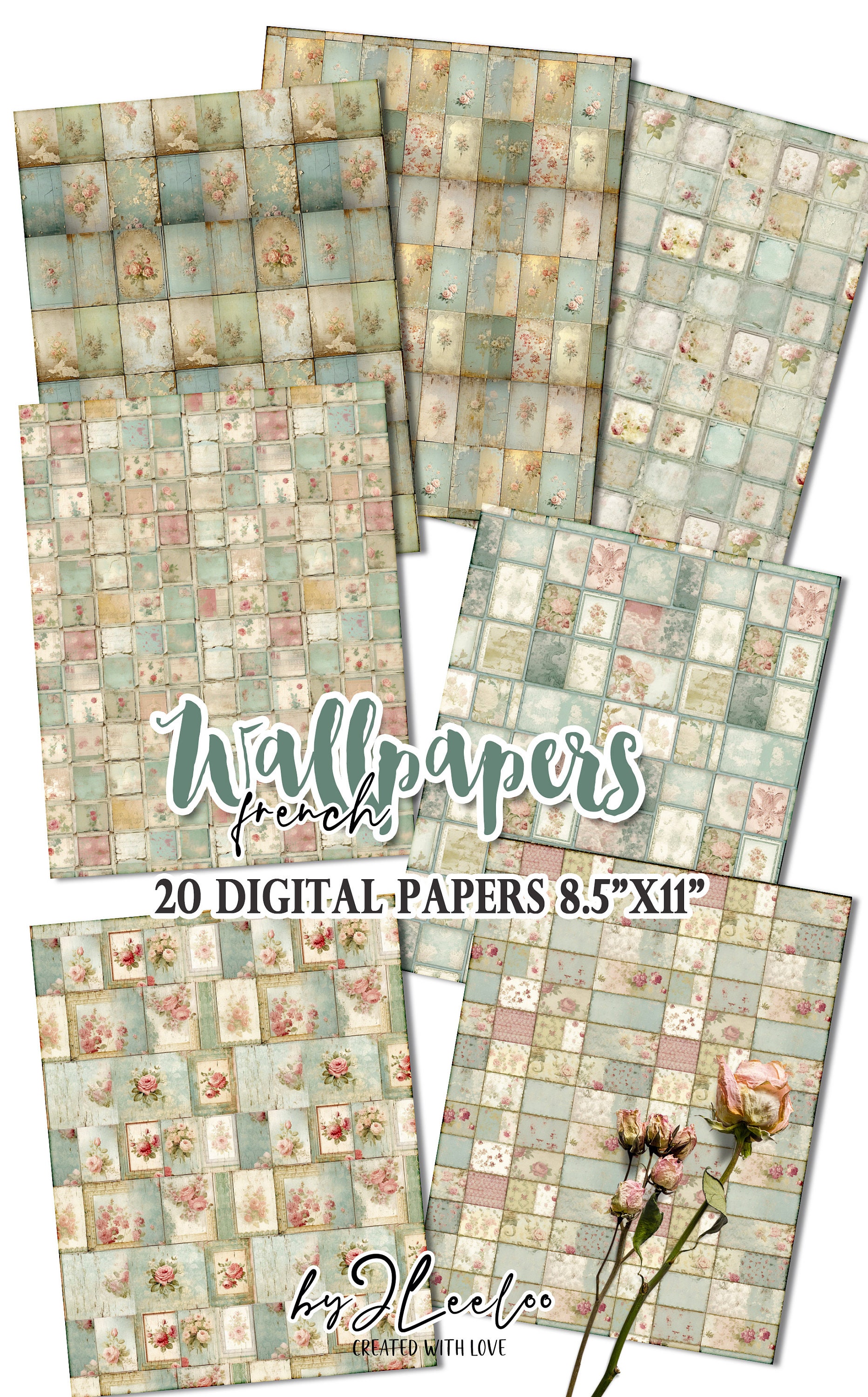 FRENCH WALLPAPERS rough collage papers | Shabby Chic Junk Journal pages | background vintage craft paper digital ephemera | pp618